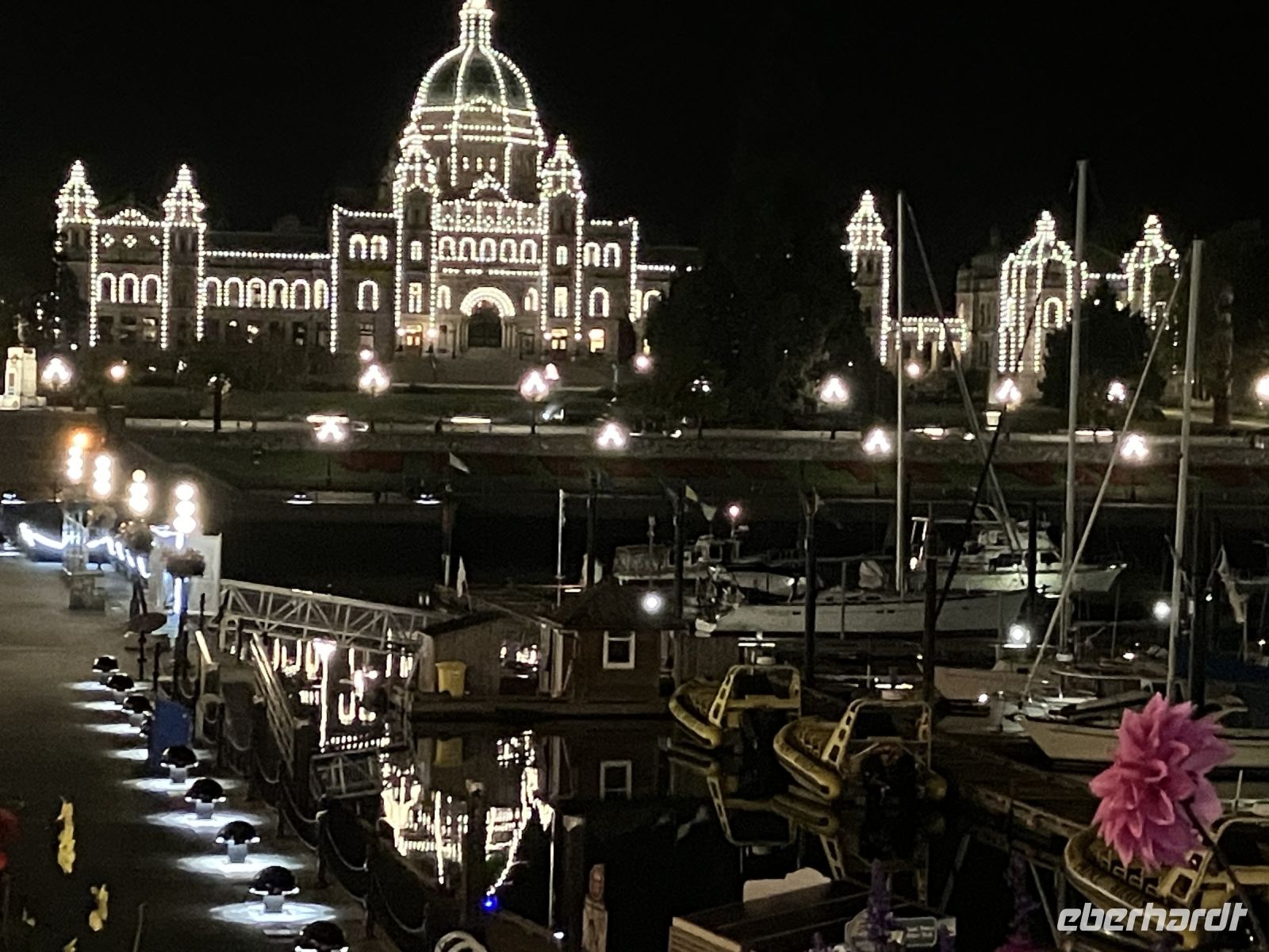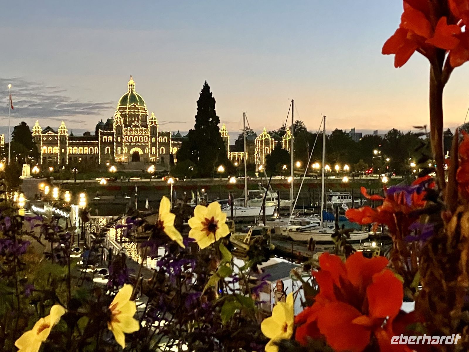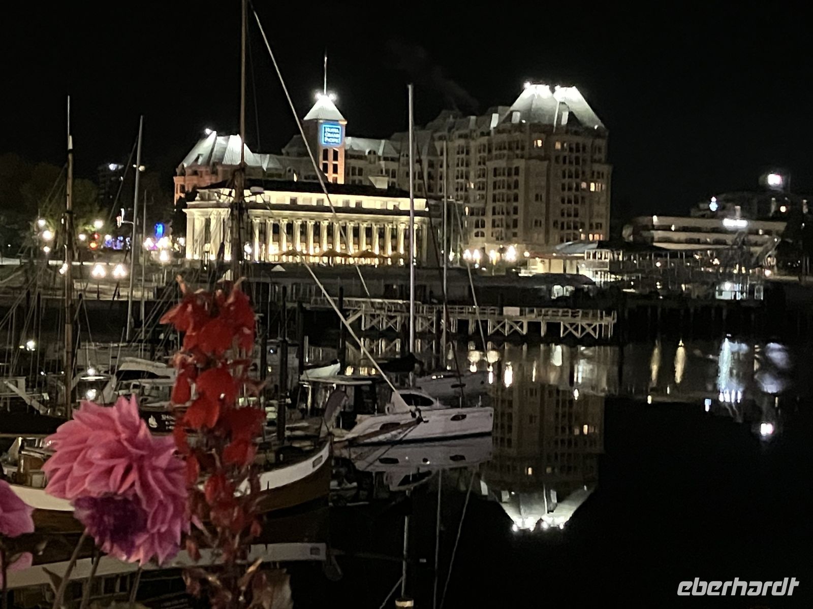 Zurueck im Hafen geht nun jeder seinen Weg, da alle etwas vor haben. Die einen besuchen das BC Museum, andere das Parlament, einige machen Einkaeufe und einige gehen auf eine Stadtwanderung wieder andere spannen einfach aus und setzen sich in ein Kaffeehaus oder ins Empress Hotel und geniessen diesen herrlichen sonnigen Nachmittag. Unser Abendessen ist mit Sicht auf das beleuchtete Parlamentsgebaeude. Besser und schoener geht es nicht. Die Musik im Irish Pub laedt zum Tanz ein, doch wir gehen noch in weitere Pub‘s auf unserer Pub-Safari. Erst weit nach Mitternacht gehts dann ins Land der Traeume.