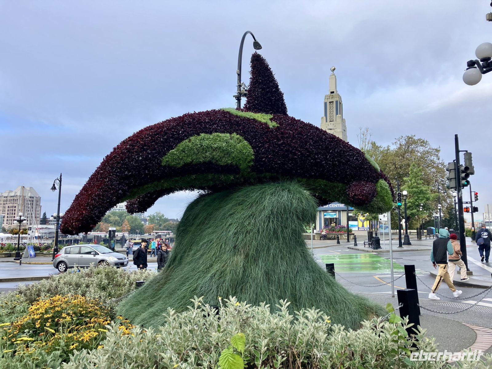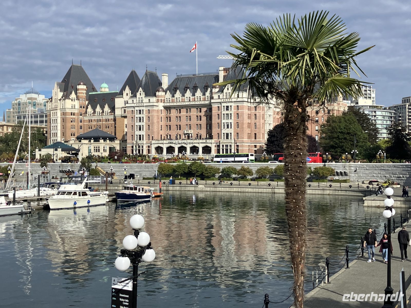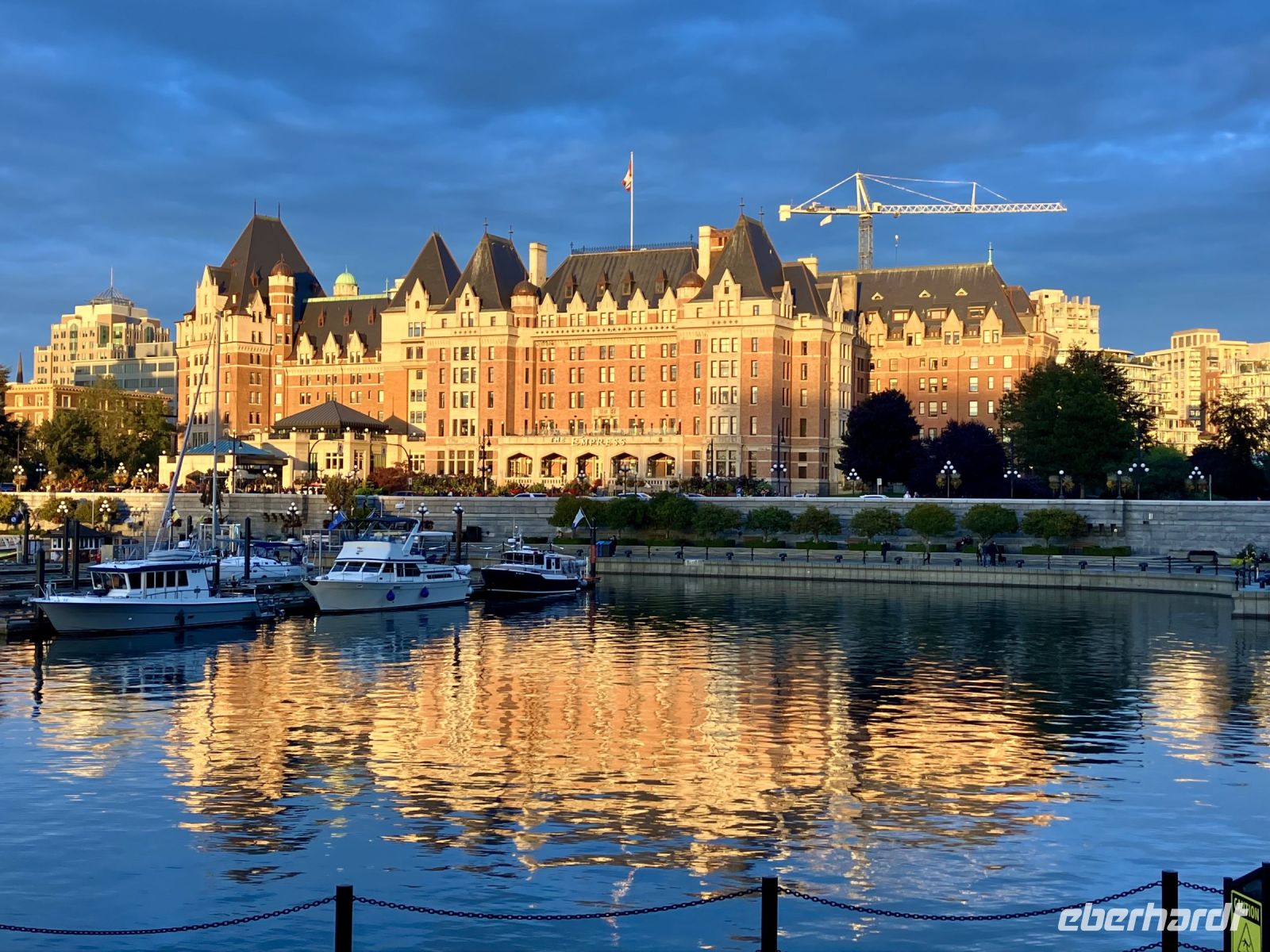 Die Stadtfuehrung zu Fuss durch die Hauptstadt von BC ist nicht sehr lange, denn die Innenstadt ist eher klein mit seinem alten Chinesenviertel, der Governement Street und dem Hafen mit dem gewaltigen Empress Hotel und dem Regierungsgebaeude. Die Geschichten von Francis Rattenburry, Mr. Dunsmuir, James Cook und vielen anderen Herrschaften vergangener Zeiten sind interessant, unterhaltsam und auch lustig. Morgen haben wir am Nachmittag Freizeit, dann werden die Geschaefte durchstoebert und nochmals diese Stadtteile angeschaut, welche besonders gefallen haben. Der Hafen mit seinen vielen Attraktionen sowie die Pubs stehen ganz oben auf der Victoria Lieblings-liste. Unser Hotel ist am inneren Hafen gelegen, ganz toll. Anhand des Stadtplanes finden auch alle ein geeignetes Restaurant, oder man isst im Hotel oder auch gleich im Zimmer mit der herrlichen Aussicht auf die Stadt, den Hafen oder das Parlament. Gute Nacht.