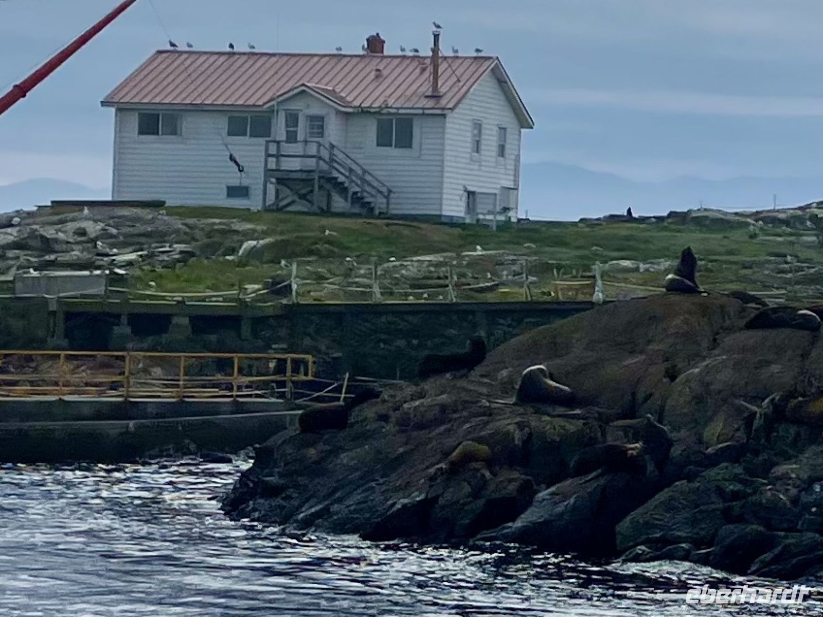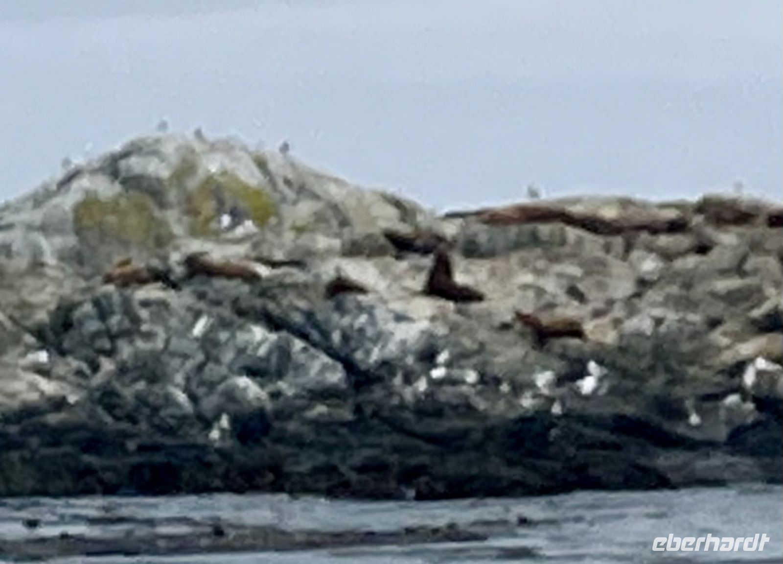 Es ist unser freier Tag in Victoria, aber wir haben ein ganz tolles Programm. Stahlblauer Himmel begleitet uns und schon sind wir unterwegs zum heutigen Highlight. Wir gehen naemlich auf Walbeobachtung. Das Boot wartet bereits am Hafen auf uns. Scott, der Kapitaen winkt und die junge Marine-Biologin begleitet noch andere Gaeste auf dieses Boot. An Kaffee, Tee und heisser Schokolade kann man sich hier kostenlos bedienen. Es ist etwas kuehl, aber die Sonne will uns aufwaermen. Das Meer, ist heute spiegelglatt, kein Wind jedoch lange weiche Wellen halten das Meer in leichter Bewegung. Wir fahren und fahren, schauen und suchen. Wir sehen viel Wasser und in der Ferne auch Nebel. Auf einmal aber geschieht es, ein Rueckenflosse, nichts wie hin....es ist ein Buckelwal, nein es sind gleich zwei. Es soll eine Mama mit Kalb sein meint die Marine-Biologin. Sie sind unterwegs in den Sueden. Immer wieder sieht man die grossen Fontaenen der riesen grossen Buckelwale. Gute 15 Minuten spielen sie sich im Wasser bis sich auf einmal ihr Koerper absonderlich kruemmt, und sie uns ihre tolle Schwanzflosse zeigt ehe sie abtaucht. Wie wild hoert man nun das Knipsen der Kameras, denn wir wollen alle die Schwanzflosse erwischen. Nun koennen wir wieder atmen, aber nach ein paar Minuten kommt wieder ein Buckelwal hoch, veschwindet, kommt hoch, verschwindt und kommt danach noch einmal hoch ehe er sich wieder kruemmt…. Gespannt wie eine Violinsaite warten wir auf das erscheinen der Schwanzflosse. Was fuer ein tolles Erlebniss. Lange schauen wir den Buckelwale zu, aber irgendwann gehts weiter zu einigen grossen und kleinere Felsen, Race Rocks heissen sie, wie Schaeren, einige Kilometer vom Land entfernt. Auf der groessten steht ein Leuchtturm. Ueberall liegen Seeloewen und Seehunde. Die besichtigen wir auch, das oink oink oink hoert man schon von weitem und der Geruch verraet das Versteck der Tiere. Diese Stellar- und Kalifornia-Seeloewen machen hier jeweils Station auf dem Weg nach Alaska oder, im Herbst, hinunter nach Kalifornien. Wir sehen sie schwer, dick und riesig. Bereit um den Maedel in Kalifornien zu imponieren. Ein herrlicher Ausflug geht so zu Ende.