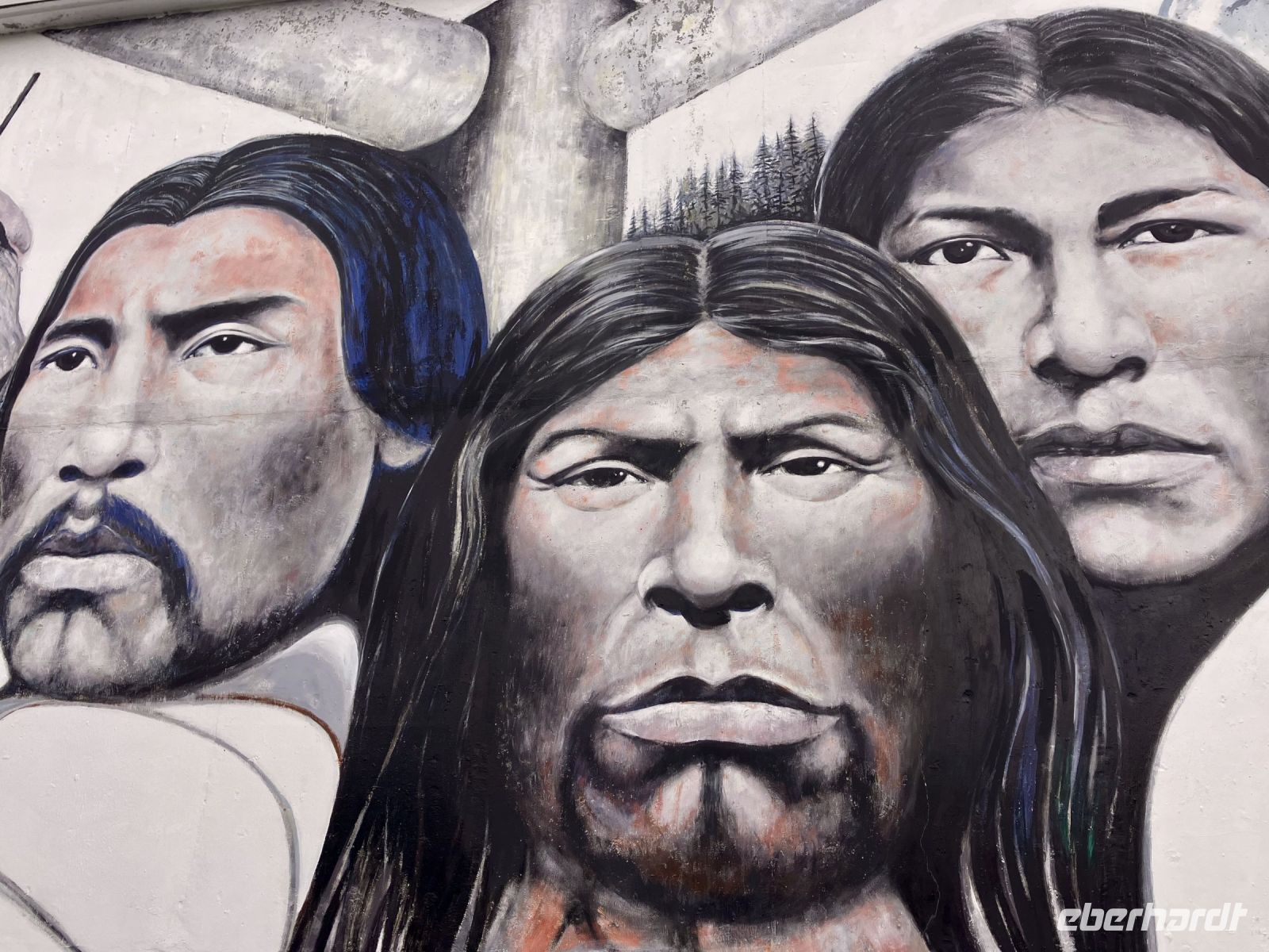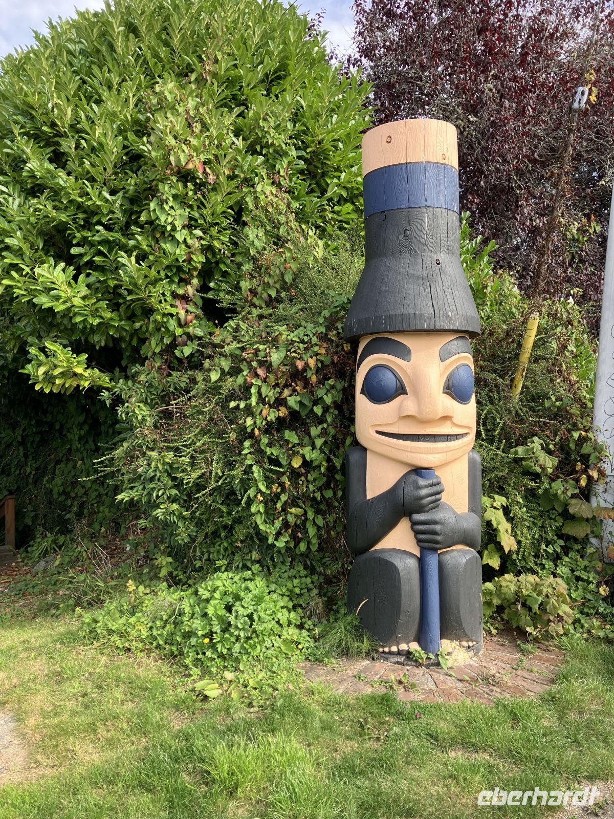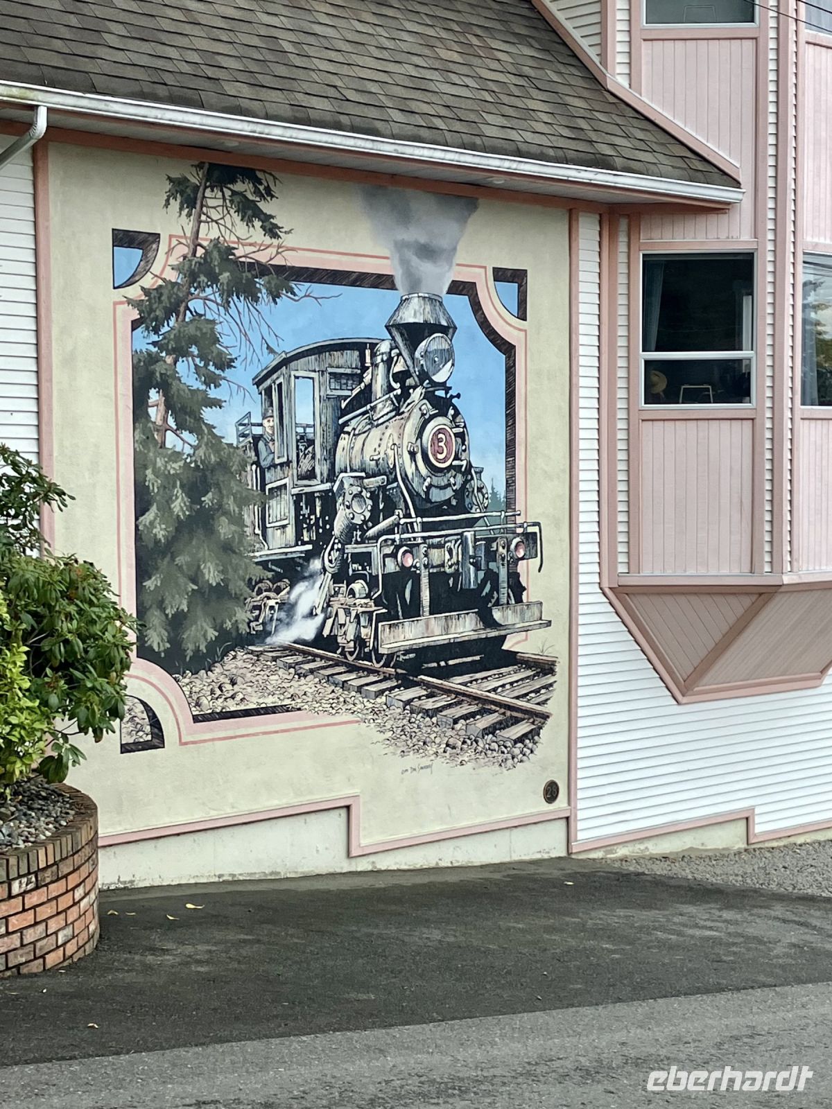 Der naechste Halt ist in einer Freilicht-Gallerie. In Chemainus sind naemlich viele Hauswaende mit historischen Gemaelde bemalt. Man kann von einem Bild zum anderen gehen und sich manchmal sogar in ein Gemaelde hineinfotografieren. Das ist alles sehr schoen und amuesant und das Eis ist auch wunderbar. Die Sonne zeigt sich auch wieder, die Welt ist in Ordnung. Daraufhin gehts weiter in Richtung Sueden bis nach Victoria, unser heutiges Ziel der Reise.