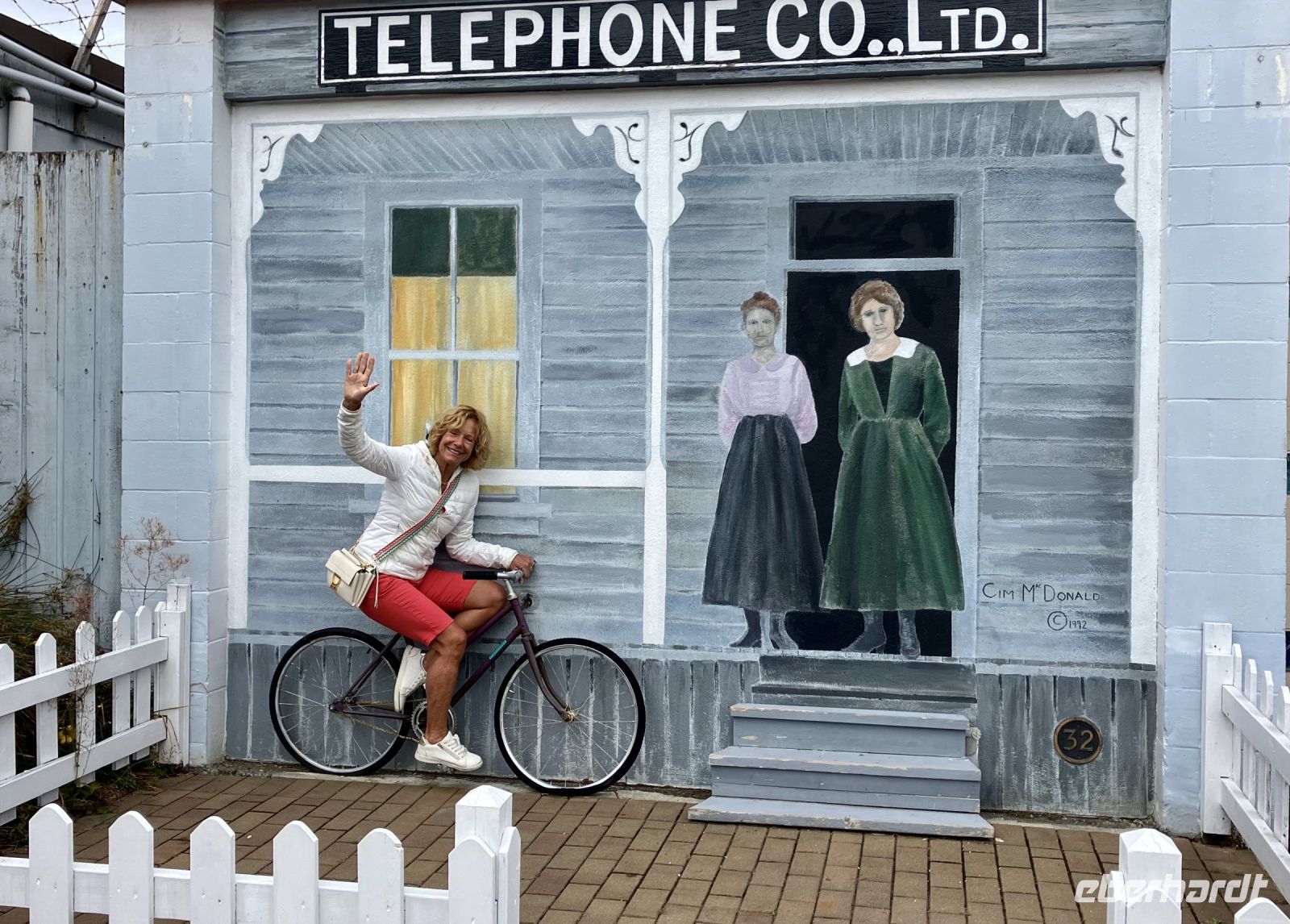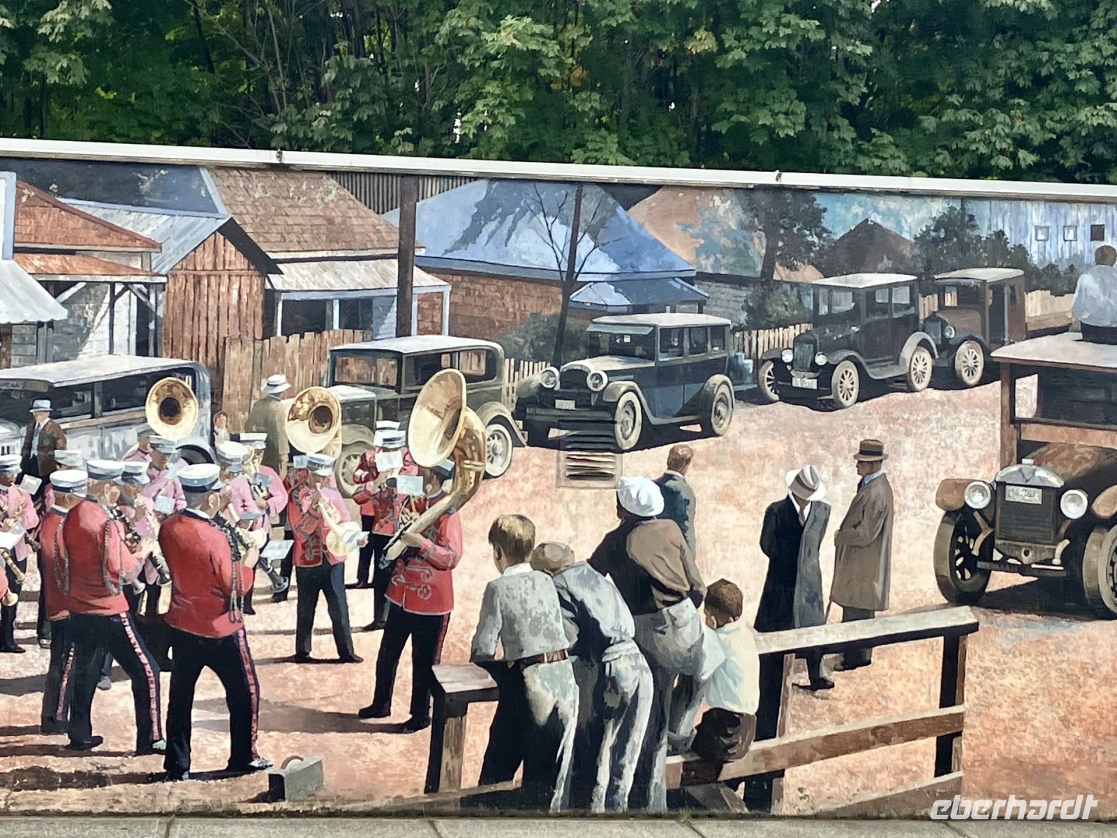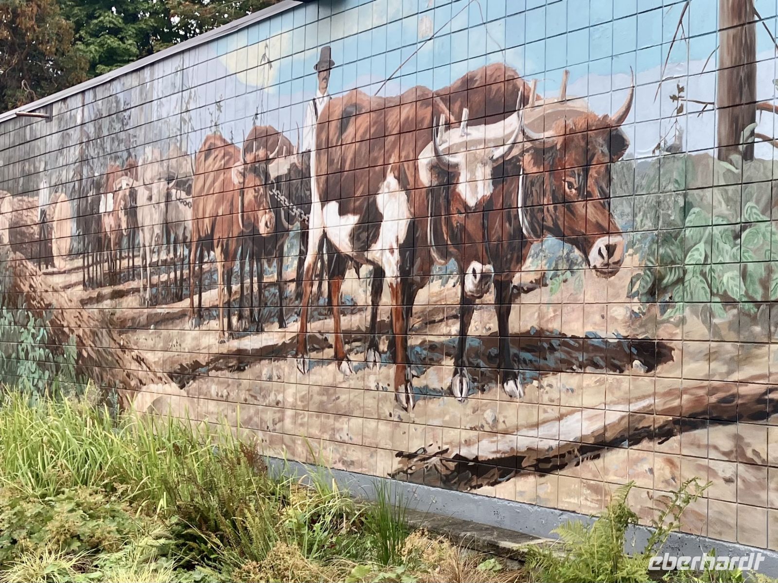 Der naechste Halt ist in einer Freilicht-Gallerie. In Chemainus sind naemlich viele Hauswaende mit historischen Gemaelde bemalt. Man kann von einem Bild zum anderen gehen und sich manchmal sogar in ein Gemaelde hineinfotografieren. Das ist alles sehr schoen und amuesant und das Eis ist auch wunderbar. Die Sonne zeigt sich auch wieder, die Welt ist in Ordnung. Daraufhin gehts weiter in Richtung Sueden bis nach Victoria, unser heutiges Ziel der Reise.