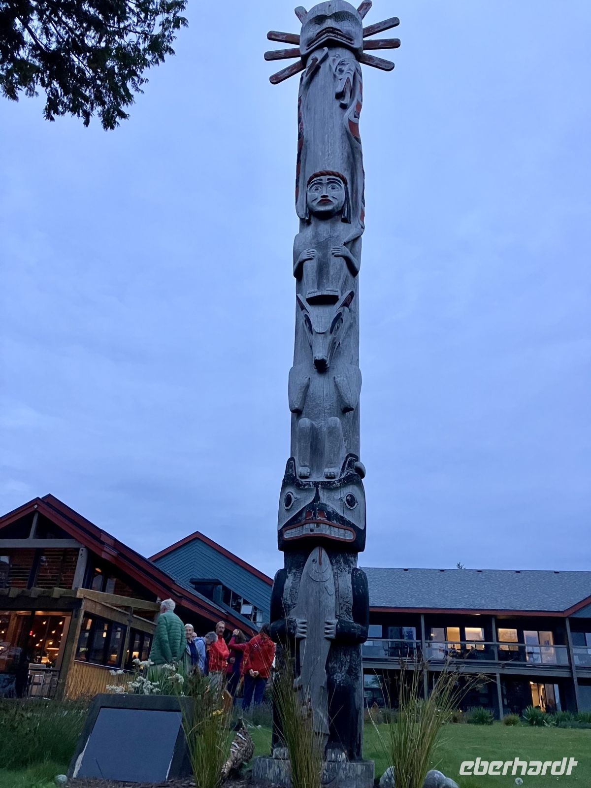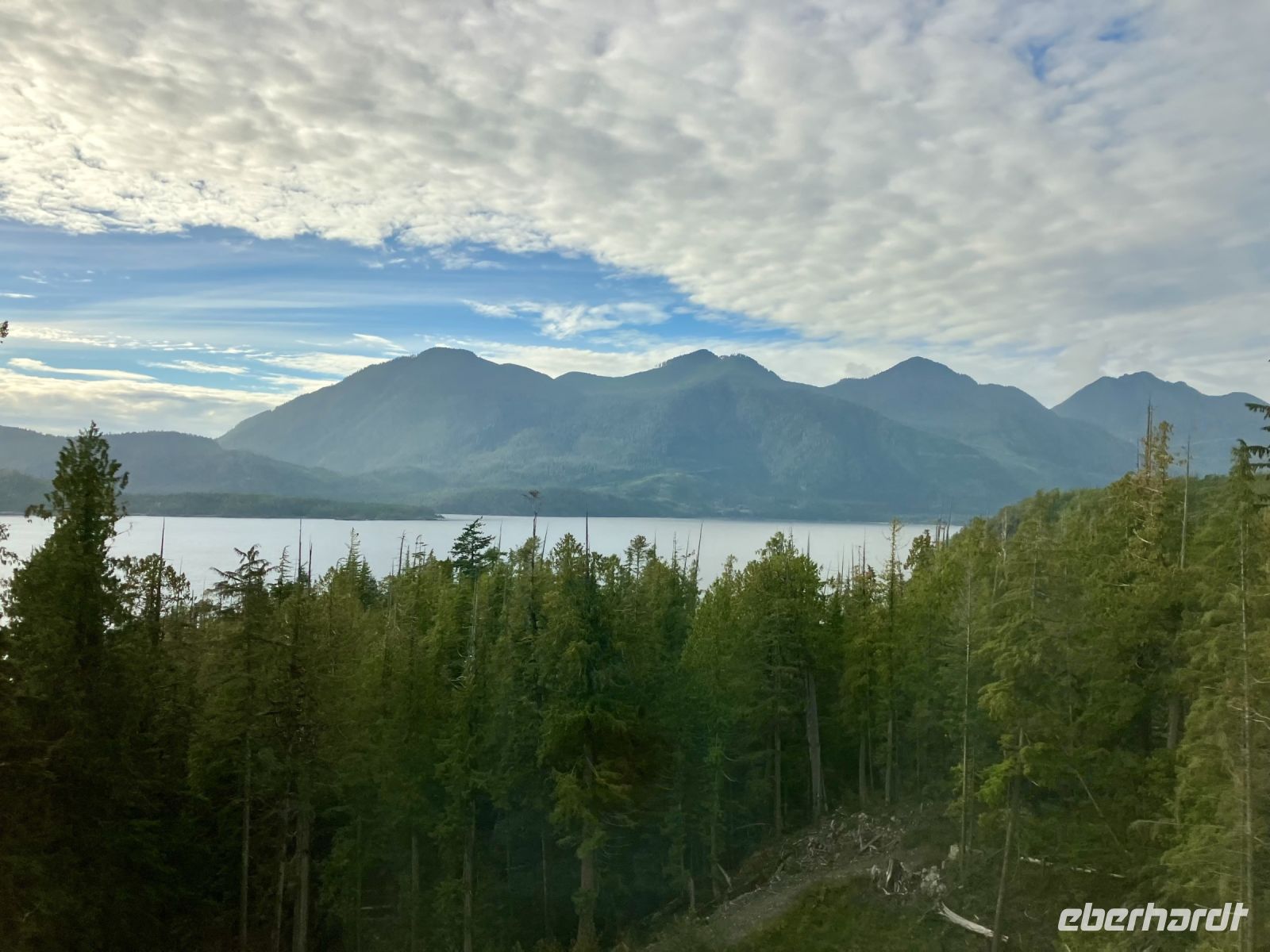 Es ist unser Westkuesten-Tag, der Regenwald-Tag, und es regnet nicht, es scheint prachtvoll die Sonne, so ein Glueck. Und ein Mitreisender hat heute auch Geburtstag. Was fuer ein Glueckspilz ! Heute gibt es ein gemuetliches Fruehstueck am Meer fuer die paar Mitreisenden die sich nicht fuer die Baerenbeobachtung eingeschrieben haben und fuer alle anderen wartet bereits frueh morgends ein schoenes verpacktes Fruehstueck in der Lobby des Hotels. Oh nein, einem Mitreisenden geht es heute nicht so gut, er und seine Frau moechten heute in Ruhe bleiben bis zum Nachmittagsprogramm.