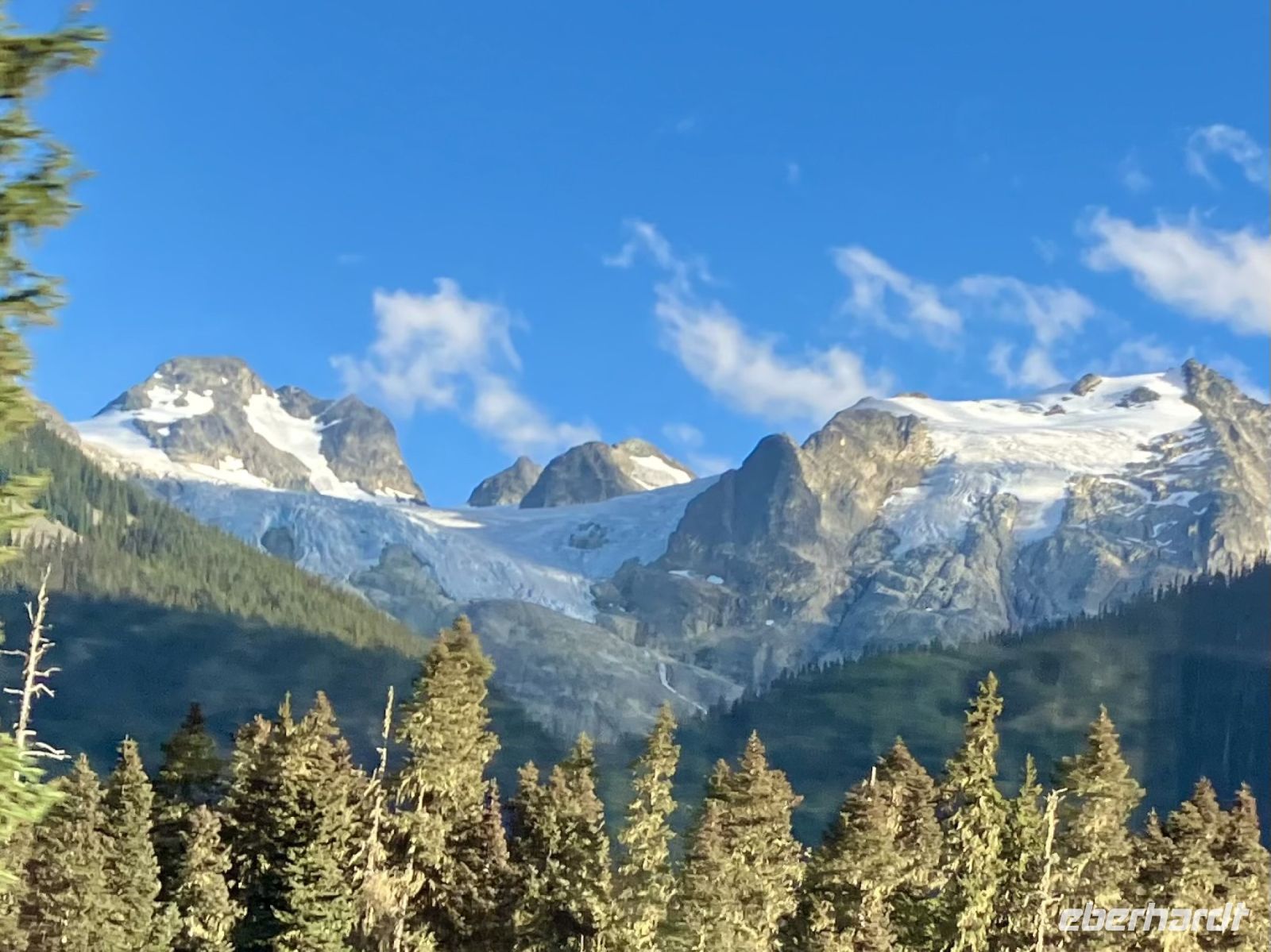 Nun geht es auf die Duffy Lake Road, auch die Rock‘n Roll Strasse genannt, da sie, aehnlich einer Passtrasse, das wasserarme Mittelland verlaesst und nach tausenden von abenteuerlichen Kurven das Kuestengebirge erreicht. Chris entpuppt sich nun als echter Kurvenkoenig. Whistler ist unser Ziel und wir kommen auch planmaessig um 18:30 Uhr an. Dieses Olympiadorf und Spielwiese der Vancouveriten, hat eine Fussgaengerzone die wir gleich erforschen. Elisabeth hat hier auch 2 Jahre gelebt und gibt uns alle Insider Tips. Bei der Gondel schauen wir den Mountain Biker zu wie sie die Pisten hinuntersaussen in ihren kriegerischen Ausruestungen. In Whistler ist was los, so viele junge Leute beleben dieses Dorf, es jagen sich geradezu Bars, Restaurants, Sportgeschaefte, Clubs und Pubs. Jeder findet auch «sein» Restaurant. Es ist erst Donnerstag, doch jeder feiert bis lange in die Nacht hinein. Nur gut, dass unser Hotel laermgedaemmte Fenster hat. Oder sollen wir nicht doch in so eine wilde Bar gehen und einfach mitfeiern ?