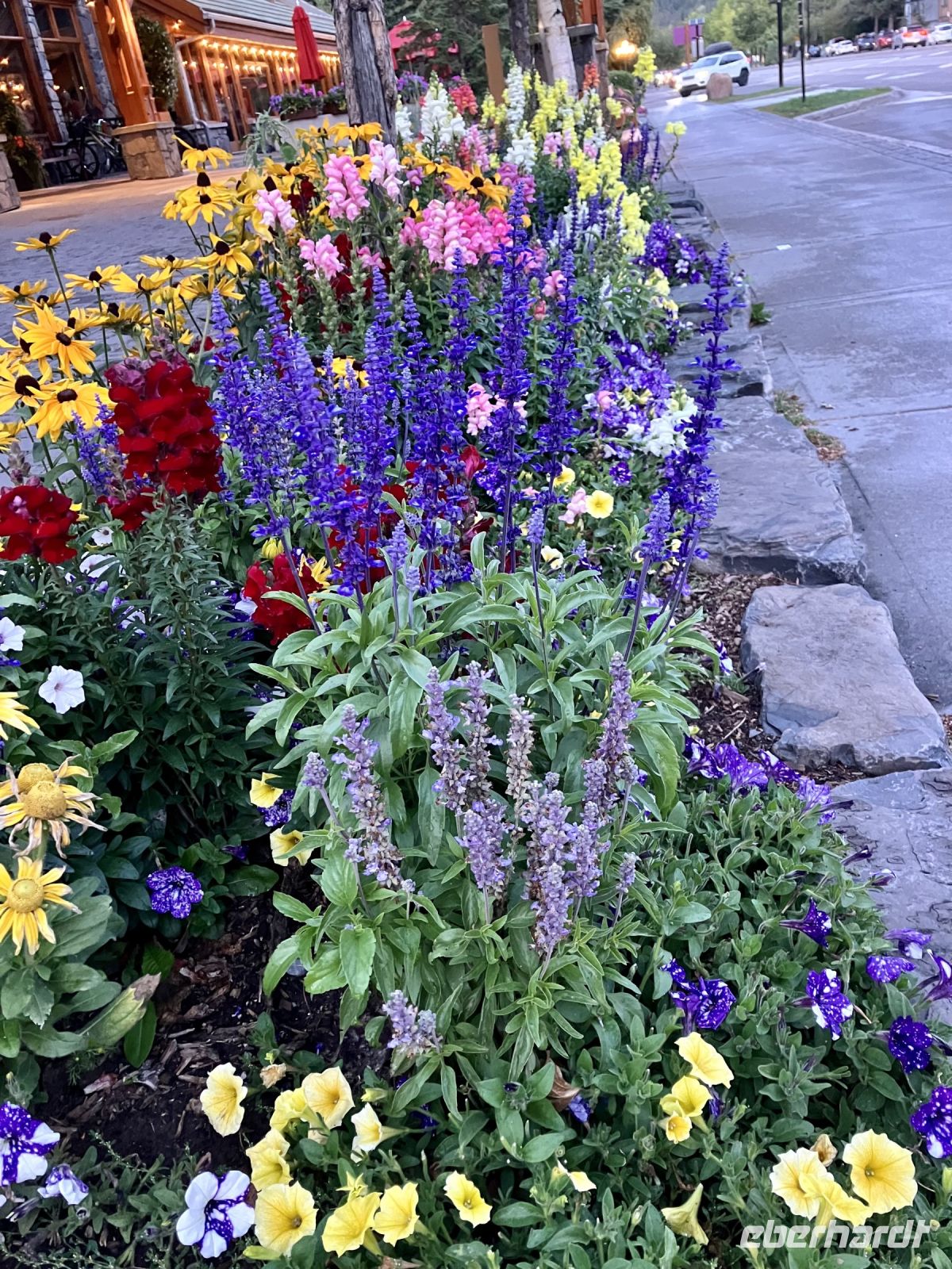 Die Wanderschuhe stehen bereit um auf eine unvergessliche Reise zu gehen. Der stolze Schuhbesitzer ist bereit seinen/ihren Traum zu verwirklichen. Auf gehts in den Westen Kanadas. Passen die Wanderschuhe noch in den Koffer ? Notfalls koennen sie ja auch jetzt schon die Fuesse zieren. Der Rucksack wird ja auch zum Handgepaeck. In Frankfurt treffen wir uns alle beim Gate nach Calgary aber leider sind wir 2 Personen weniger. Sie mussten kurz vor Abreise die Tour absagen. Dies tut uns allen sehr leid und wir wuenschen Ihnen das Allerbeste. Unser Abenteuer kann beginnen. Erst mal den Pass abstempeln lassen und ploetzlich kommt der Aufruf zum Einstieg in den Flieger. An die 60 quadratische Zentimeter Spielwiese die jedem angeboten werden, koennen wir uns schlecht gewoehnen aber wir haben ja fast 9,5 Stunden Zeit um uns damit anzufreunden. Herr Dieter Werner Martin ist unser Kapitaen heute. Alles laeuft wie am Schnuerchen, unser Flieger ist ein Discovery und nicht das neueste Modell, aber das Flugpersonal ist sehr freundlich und jung. Wir kommen in Calgary mit derselben 1/2 Stude Verspaetung an, wie wir abgeflogen sind. Also am Nachmittag desselben Tages. Unser Bussfahrer, Chris sieht uns schon kommen und bald sind wir unterwegs um das Zentrum dieser neuen Glaeserpalast-Stadt von einer Terrasse aus zu sehen. Es regnet, der Bow River fliesst still um das Downtown und die Hochhaeuser kaempfen um vielleicht doch noch aus den Wolken hinaus in die Sonne schauen zu koennen. Ein paar Fotos spaeter fahren wir nun Richtung Berge, d.h. in den Westen. Beim Olympia Zentrum fahren wir vorbei und denken gerne an 1988. Hier glaenzte unsere Katarina Witt als Goldmedalien Siegerin, Eddy the Eagle war das Kukuksei, die jamaikanische Bobmanschaft war der Liebling dieser aussergewoehnlichen Winterolympiade. Wir sind alle ganz schoen geschaffen und doesen nun ein Stuendchen im Bus ehe es mit einchecken in Banff weitergeht. Noch ein Orientierungs-spaziergang ins Zentrum und zum Supermarkt dann sind wir geschafft. Mit einem Picknick fuer die morgige Wanderung versorgt, finden wir auch wieder unser Hotel und unsere Zimmer. Ohhh der Schlaf in dem weichen Bett, wir koennen es kaum erwarten.