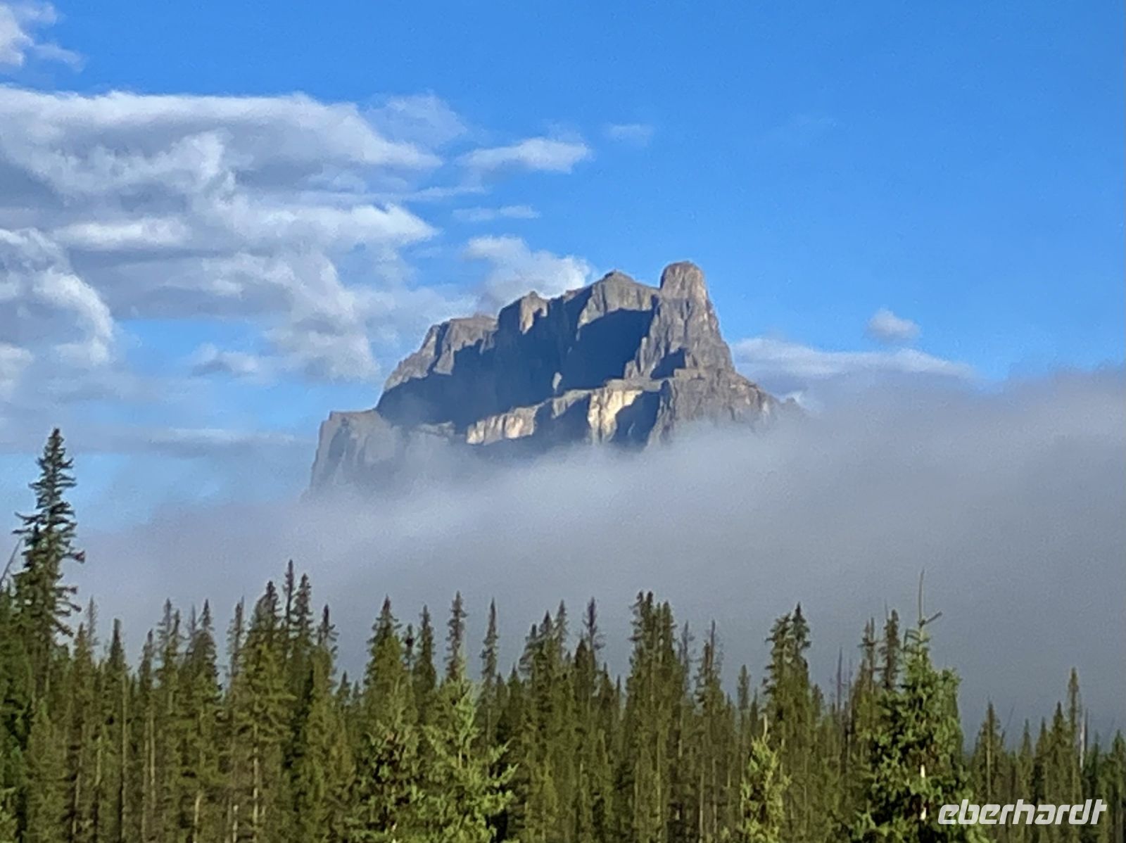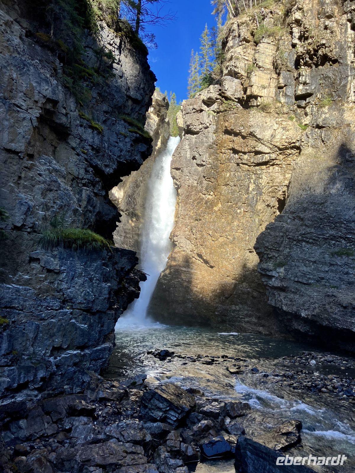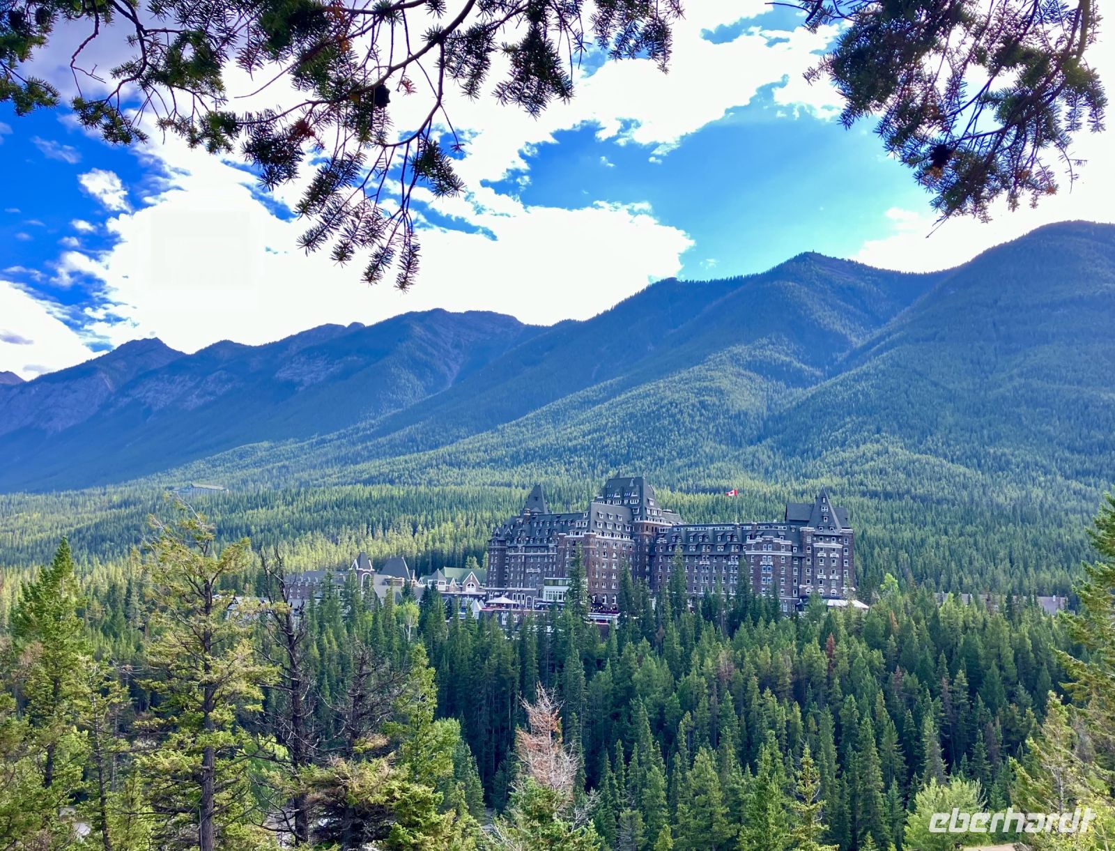 Ein herrlicher Tag bricht an. Wir erwachen im Banff National Park. Oh wie majestaetitsch sie doch in den Himmel ragen, wie eindrucksvoll sie doch gezeichnet sind und wie imposant sie doch wirken, diese herrlichen Rocky Mountains. Gleich nach dem Fruehstueck sind wir schon bereit, denn heute ist die Wanderung in einer Schlucht angesagt. Also begeben wir uns vorerst auf die Highway und horchen, unter anderem der Entstehungsgeschichte Kanadas zu. Ohh schaut mal wie toll, der Schlossberg ist heute besonders imposant denn er schaut aus als waere er soeben aus einer Wolke gekrochen. Schnell ein Foto. Nun geht die Kanada-Geschichte weiter und wir erfahren alles ueber Kanadas erste Startup Firma die Hundsons Bay Company.