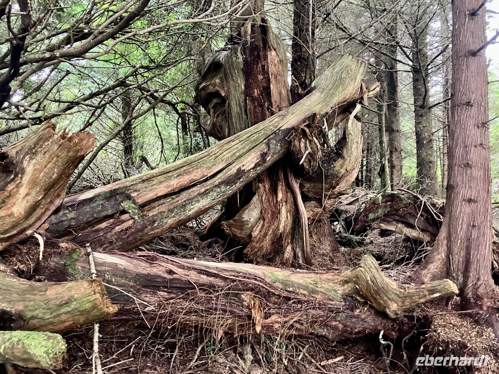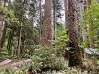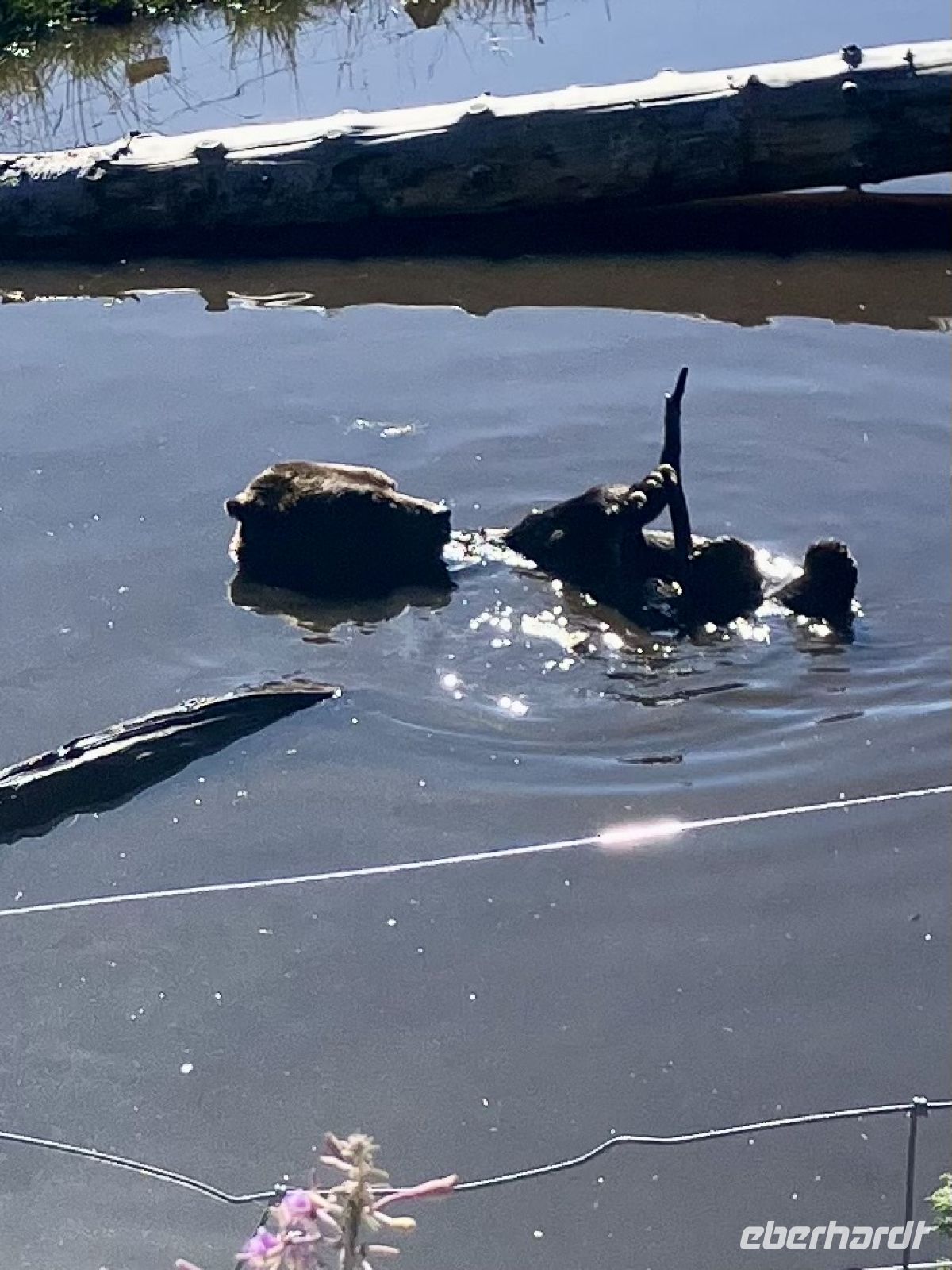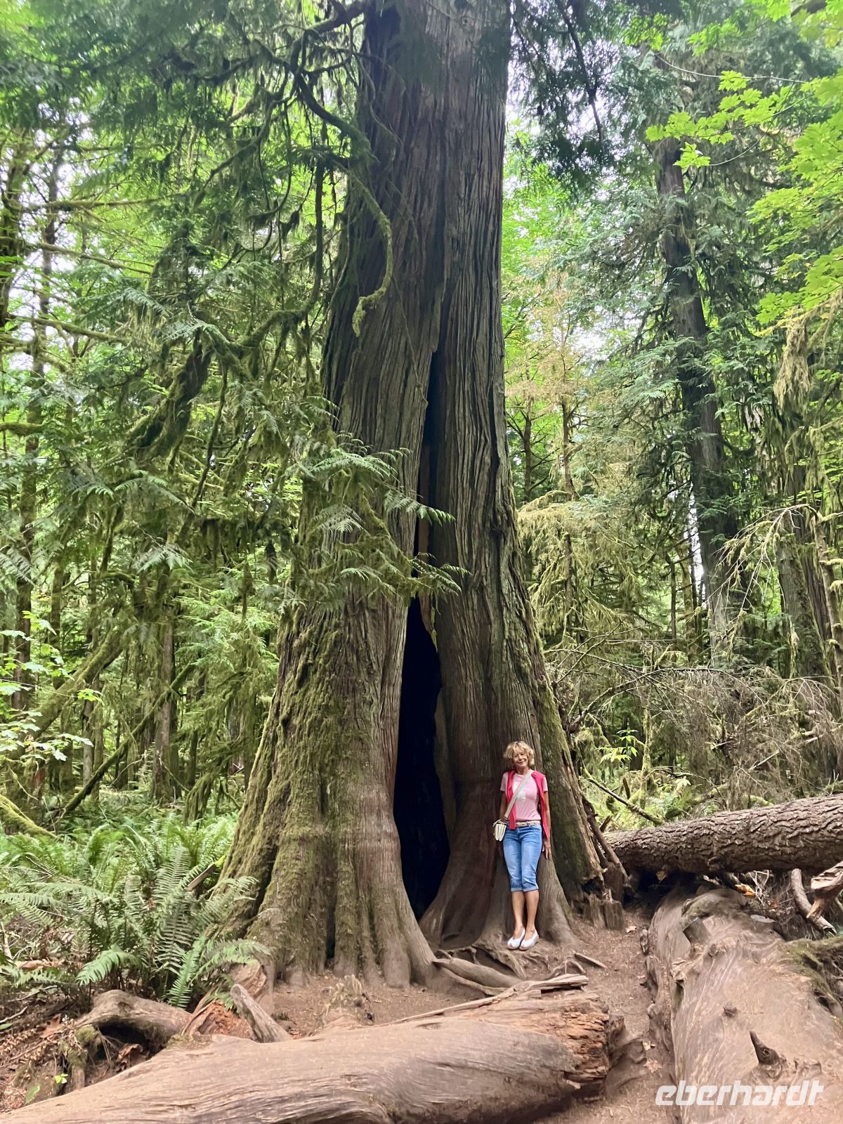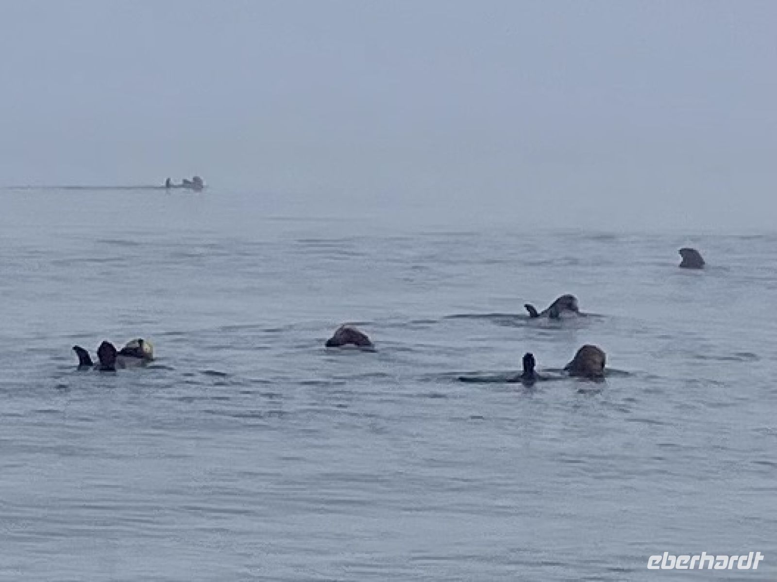 Es ist unser Westkuesten-Tag, der Regenwald-Tag, und die Sonne ist wieder da. Alle Geaste haben sich fuer die Baerenbeobachtung eingeschrieben. Also haben wir heute eine fruehe Tagwacht. Um 6:15 koennen wir die Schachteln mit dem Fruehstueck bei der Rezeption abholen, uns einen Kaffe aus der Maschine lassen (oder im Zimmer brauen) und um 7:00 faengt das erste Abenteuer an. Alles ist perfekt in Tofino, das Meer vor dem Hotel ist spiegelglatt, es weht ein zartes kleines Lueftchen, die Temperatur ist lau, und die zwei Boote warten bereits auf uns und wir sind bereit. Rasant saussen wir zwischen vielen Inseln durch, mal rechts, mal links, mal mitten im Morgennebel mal bei guter Sicht. Ploetzlich geht die Sonne auf, der Nebel laesst alles in die pure Romatik verfallen. Baeren, sehen wir auch, einen etwas weiter entfernt auf einem Steinchenstrand. Er schaut was es da heute zum Fruehstueck gibt und dreht deshalb groessere Steine um, da drunter, da sind sie, kleine Krebschen, Muscheln, Schneckchen, Mmmm. Wir sehen aber auch riesen Seehunde wie sie sich auf den Felsen raekeln und sich sonnen. Aber die Otter, die sind faszinierend, auf dem Ruecken schwimmend mit Koepfchen hoch und den Vorder- und Hinterbeinchen in die Luft streckend ruhen sie sich hier einfach aus und schauen zu, wie wir mit unserem Zodiak ganz nahe zu ihnen kommen. Wir sehen nicht bloss einer oder zwei Otter, nein gleich eine ganze Meute, etwa 20 an der Zahl ! Bitte schaut in die Bildergalerie. Nach diesem wunderbaren Ausflug auf dem Wasser geht es nun zum Wasserflugzeug Landeplatz. Da sind wir bereits gebucht. Es gibt wohl nichts schoeneres, als ueber diese wunderbare, wilde Meer- und Insellandschaft des Pacific Rim Nationalparks zu fliegen. Bitte schaut in die Bildergalerie. Sehen um zu glauben. Es ist fabelhaft besonders wenn man denn auch noch einen Wal von oben sieht wie er auf- und abtaucht. Nach diesem schoenen Erlebnis wandern wir durch Tofino durch und auf die andere Seite der Halbinsel zu Tonquin Beach. Etwas weiter an einem wilden kleinen Strand halten wir auch um nun endlich die beiden Champagner aufzuknallen. Heute hat ein Mitreisender seinen Geburtstag und das wollen wir nun hier gebuehrend feiern. Zum Geburtstag also Bären, Wale, Bootsfahrt, Wasserflugzeug, Wanderung und eine kleine Party ! Das Geburtstagskind ist ganz schön gerührt. Wir andern wieder zurück durch diese legendaeren Riesenbaeume des Pacific Rim Nationalpark. Auf einem schönen Pfad gehend, geniessen wir die Ueberschwenglichkeit und Vielfalt dieses Waldes. Es ist wirklich ein Urwald auf 3 Etagen und wir bewegen uns mal im Unterholz und mal im Mittelbereich. Die Krone des Waldes ist kaum sichtbar...so hoch oben... 80 Meter hoch werden diese Riesen. Der hoechste soll ueber 100 Meter hoch sein. Heute sind diese Waelder am schoensten, alles glitzert, die Farne leuchten und die Troepfchen des Taus trauen sich aus dem Moos und aus den Luftpflanzen, auch bei einem schoenen, sonnigen Tag wie heute regnet es daher immer ein bisschen in diesem dichten Regenwald. Baeren soll es hier viele geben, doch wir sind eine muntere Gruppe und somit sind alle Baeren gewarnt und verstecken sich im Dickicht. Ihre Jungen haben sie bereits auf die Baeume gejagt. Wir gehen staunend weiter knipsen viele Bilder bleiben immer wieder stehen, reden und lachen viel. Ploetzlich sind wir wieder bei der Strasse wo Tracey auf uns wartet um uns zurück in unser Hotel zu fahren. Jetzt haben wir Zeit zum genießen, baden, essen und plaudern bis die Augenlider von innen beobachtet werden können.