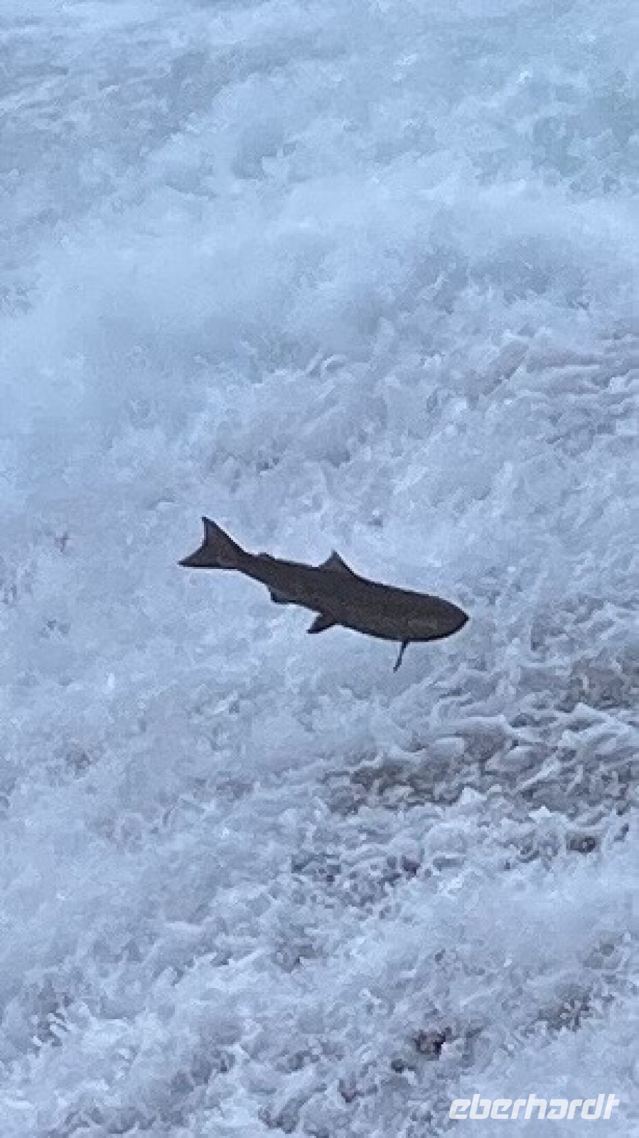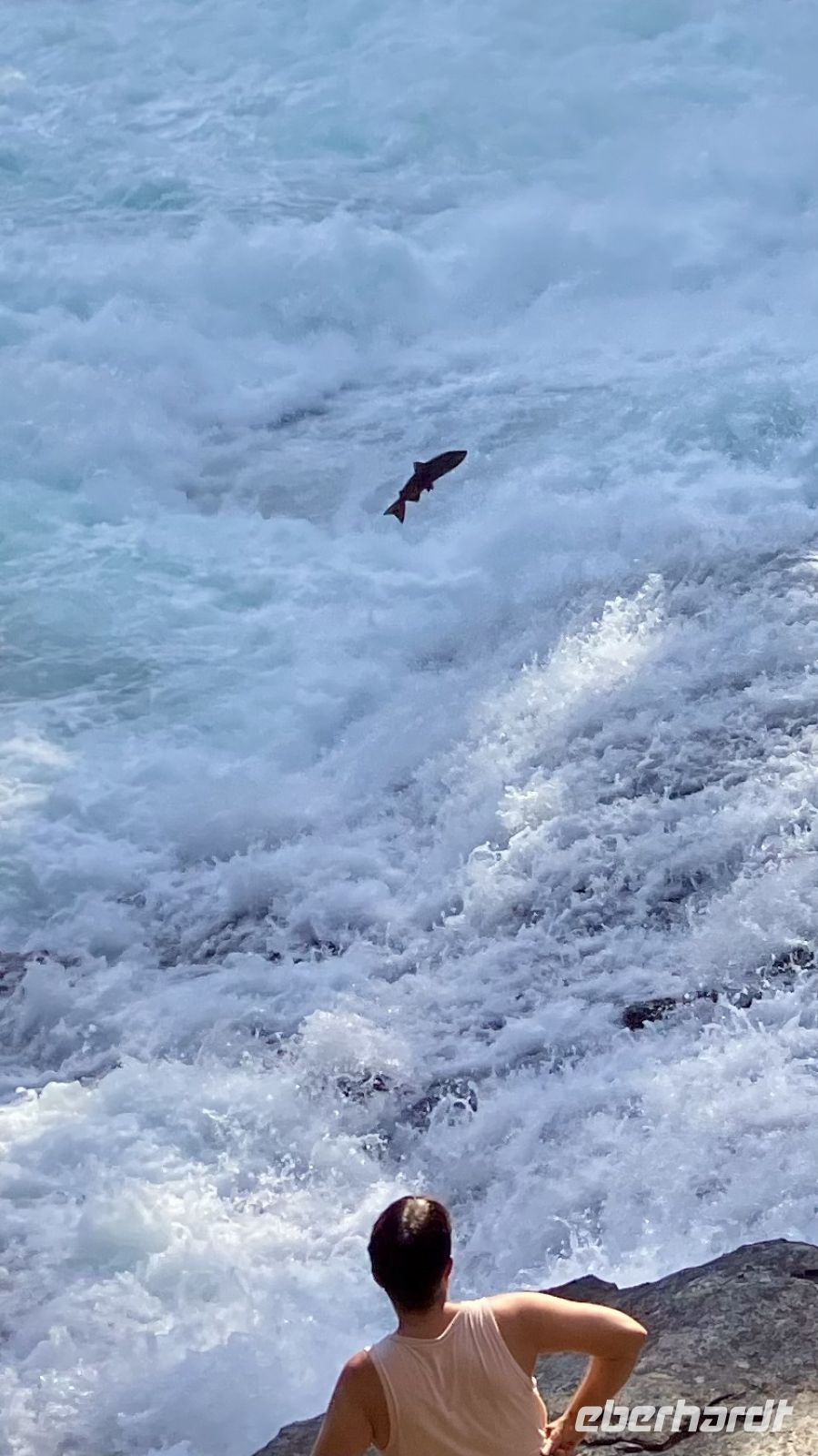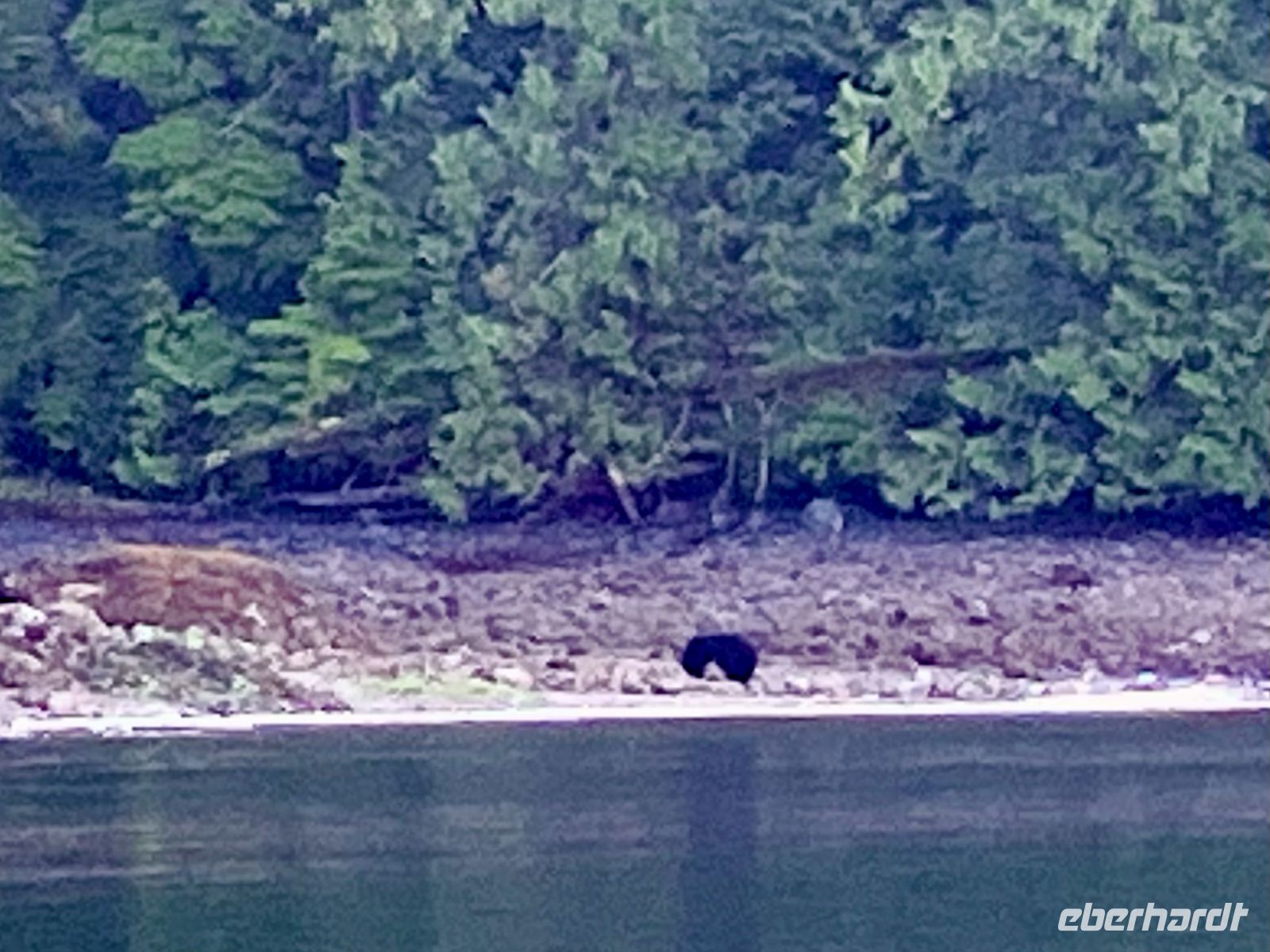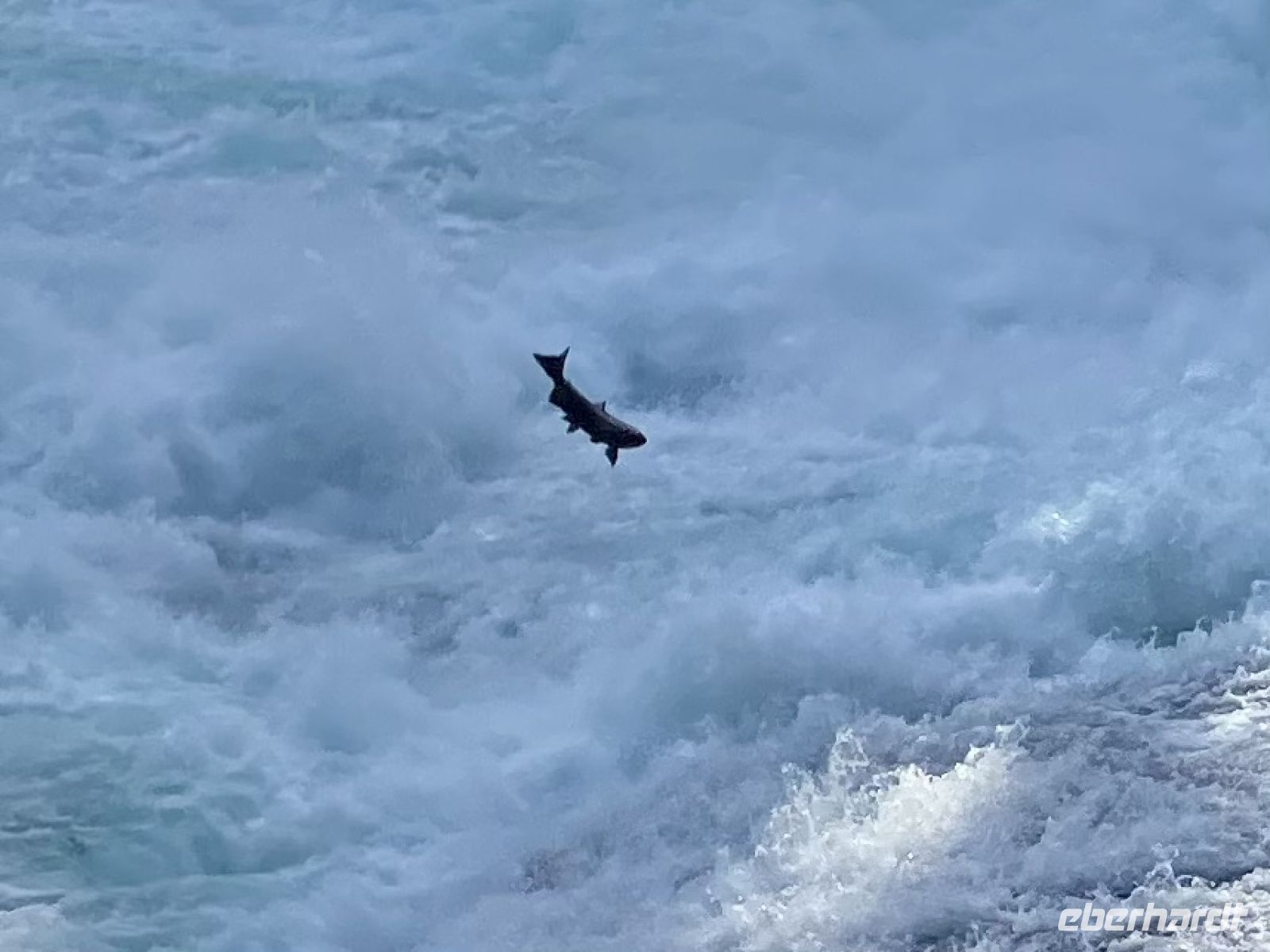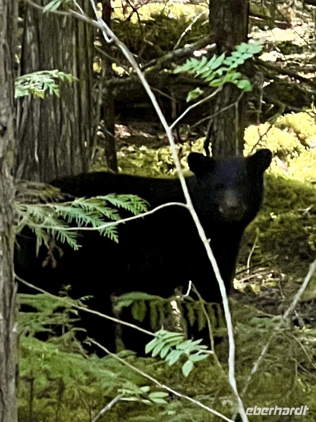 Ruhig und gut haben wir hier geschlafen und beim oeffenen der Balkontuere sehen wir schon wieder, strahlend blauer Himmel. Wir scheinen wirklich die reisenden Engel zu sein. Oder haben wir das echt dazugebucht? Nach dem wahrlich koeniglichen Fruehstueckbuffet welches nur fuer uns bereitet wurde, starten wir den Tag mit den Spahat Faellen. Dieser hohe Wasserfall ist einer von drei ganz besonders schoenen Wasserfaellen hier in diesem Park. In Wells Grey Park gibt es rund 300 Wasserfaelle und in den ersten 20 km auch Farmen und eine davon gehoert Daniel und Elvira. Mike, der wilde Oesterreicher, wartet bereits auf seiner Ranch auf uns und gibt uns das OK zum See hinauf zu fahren fuer unsere Kanu Tour. Bald sind wir schon unterwegs zu diesem Abenteuer. Schoen ist es durch diesen Park zu fahren, so schöne Wälder. Die Helmcken Faelle, welche wir nun besichtigen sind den Spahat Faellen aehnlich, bloss noch viel hoeher und imposanter. Nach einem Spaziergang durch den Wald und einer Weiterfahrt kommen wir so vor Mittag zum Clearwater See. Nun faengt unser heutiges Highlight an. Wir werden von Asraf und seinem Kollegen eingewiesen wie man so ein Kanu ueberhaupt fuehrt, wer vorne und wer hinten sitzt, wer Richtung und wer Tempo angibt und wie man geradeaus faehrt. Wir lernen auch Kurven fahren, was wir jedoch bloss einigermassen verstehen. Denn im zig zag Muster paddeln wir froehlich nicht allzuweit bis zu einem schoenen Strand. Einige unter uns fahren erst einige Runden im Kreis bis auch sie das zig zag Muster meistern ☺ Die Sonne lacht, es ist angenehm warm und der Clearwater Lake ist spiegelglatt. Am Caribou Strand «parken» wir unsere Kanus und inspizieren vorerst die Gegend. Wir sind mitten in einem herrlichen Wald, es gibt sogar einen Camping Tisch und eine Feuerstelle. Aber da haben sich eine kleine Gruppe Kanadier bereits eingenistet und Zelte aufgestellt. Einige unter uns ziehen sich in windeseile um und hüpfen in den kristallklaren See. Ja, frisch ist der Clearwater Lake aber nach der Paddelfahrt genau das richtige. Asraf zaubert in windeseile ein Picknick auf den Tisch. Ein Lagerfeuer kann heuer nicht angefacht werden, es ist das Jahr der grossen Waldbraende und natuerlich sind alle offenen Feuer in ganz Kanada bis auf weiteres untersagt. Als Nachtisch gibt es Fruechte und Granola Bars jeder Art. Gestaerkt paddeln wir nun fleissig auf dem grossen See zurück Richtung Steg. Der See glitzert, ein leichter Wind kommt auf, alles ist ruhig, man hoert nur die Paddel wie sie das Wasser ruehren. Alles schaut sehr romantisch aus. Etwa 1/2 Stunde spaeter sind wir wieder beim Steg, wo wir nun versuchen so elegant wie moeglich anzulegen und auszusteigen. Gar nicht so einfach, dieses Kanufahren. Nach dem Wegraeumen der Kanus, faehrt uns Tracey wieder zurueck. Aber ein paar Stops muessen wir noch einlegen. Vorerst moechten wir gerne Lachse sehen. Also ab zu den Baileys Chutes….tatsaechlich, da ist ein tobender Wasserfall, wir stehen auf einer Aussichtsterrasse….schauen….und sehen tatsaechlich immer wieder so riesengrosse Lachse meterhoch hinaufspringen. Als waere es ein Stabhochsprung-Wettbewerb. Einfach toll. Wir schauen eine ganze Weile zu und knipsen hunderte Fotos. Nun aber weiter zum 4. Wasserfall heute. Den muessen wir noch anschauen. Es sind die Dawson Falls. Diese Faelle sind den Niagara Faellen sehr aehnlich, Hufeisenfoermig, bloss ein wenig kleiner hingegen von herrlichem Wald umrandet anstatt der Hochhaeuser. Die Kroenung dieses Ausflugs zeigt sich einige Minuten spaeter. Der Schwarzbaer…er hat wohl auf uns gewartet und dachte schon wir kaemen nie mehr von den Dawson Faellen zurueck zur Strasse. Er steht zwischen den Baeumen gleich neben der Strasse. So suess, mit seinen runden Ohren und der helleren Nase schaut er fast aus wie die Plueschtiere in den Souveniershops. So bleiben wir eine Weile mit ihm und fahren dann weiter. Und, schau da, ein Reh X mit Esel oder Hase laeuft ueber den Schotterweg und bleibt am Strassenrand einfach stehen und schaut uns verdutzt an. Ulkig schaut das Kid aus mit seinen langen Beinen und noch laengere Ohren. Was fuer ein Tag, Lachse, Baer und Reh ! Der Abschluss dieses Tages gestaltet sich auch sehr angenehm, denn auf der Ranch wird fuer uns ein BBQ Dinner vorbereitet und an der Theke gibts unter anderem auch ein gutes Bierchen dazu. Die Pferde rennen ueber das Feld, die Highland Kuehe spazieren mit ihren Jungen bei uns vorbei und die beiden alten Ranch-Hunde liegen mitten in dem Speise-feld. Es ist einfach wunderbar ruhig und gelassen hier, ein echtes Ranch-leben. Naja, der Besitzer ist heute wohl nich sehr gut aufgelegt aber seine Frau Elvira macht dies wieder Wett. Es war ein herrlicher Tag, mit bloss 5.5 Km Wanderung jedoch, so scheint uns, mindestens 20 Km im Kanu paddelnd !! Sagen die Oberarme !!
