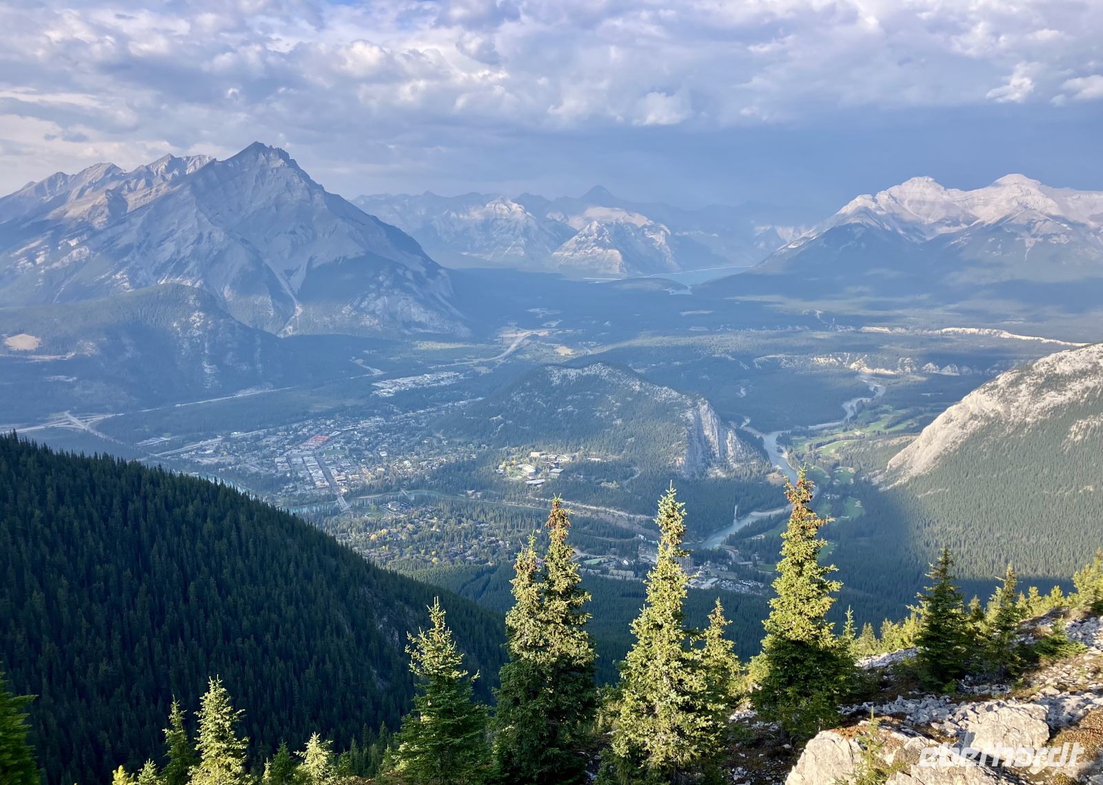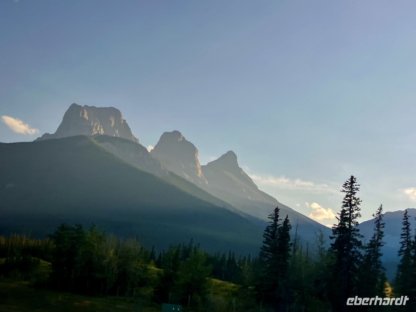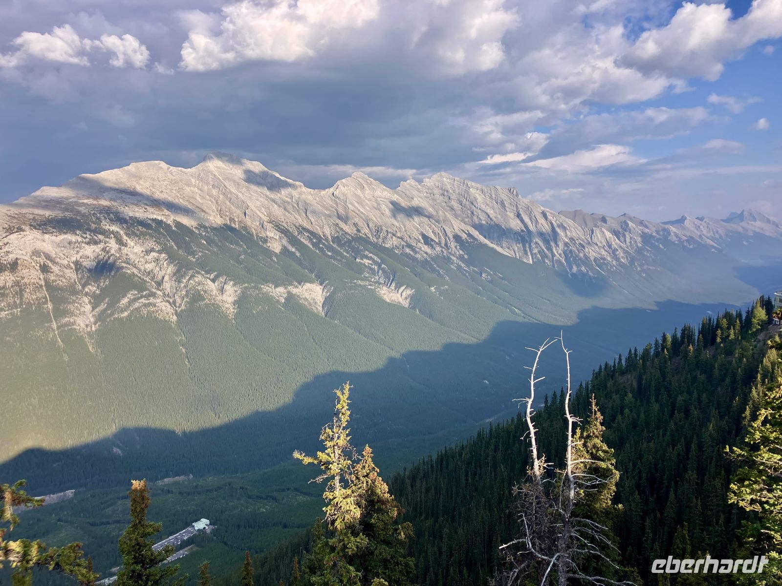 Die Wanderschuhe stehen bereit um auf eine unvergessliche Reise zu gehen. Der stolze Schuhbesitzer ist bereit seinen/ihren Traum zu verwirklichen. Auf gehts, in den Westen Kanadas. Passen die Wanderschuhe noch in den Koffer ? Notfalls koennen sie ja auch jetzt schon die Fuesse zieren. Der Rucksack wird sicherlich zum Handgepaeck. In Frankfurt treffen wir uns alle beim Gate nach Calgary. Das Abenteuer kann beginnen. Erst mal den Pass abstempeln lassen und ploetzlich kommt der Aufruf zum Einstieg in den Discovery Flieger. Oliver Stoecklin ist unser Pilot auf diesem Flug, wir sind sicher in guten Haenden. An die 60 Quadrat Zentimeter Spielwiese die nun jedem angeboten werden, koennen wir uns schlecht gewoehnen aber wir haben ja 8 Stunden und 40 Minuten Zeit, um uns damit anzufreunden. Alles laeuft wie am Schnuerchen, unsere A 330 ist nicht mehr nigel-nagel-neu aber das Flugpersonal ist jung. Ein paar Filme, Nickerchen, Snacks und Mittagessen spaeter, kommen wir puenktlich am Nachmittag desselben Tages in Calgary an. Unser Bussfahrer, Tracey sieht uns schon kommen und bald sind wir bereits unterwegs um das Zentrum dieser neuen Glasspalast-Stadt zu erkunden. Das Wetter ist wunderbar, der Bow River glitzert in der Sonne und die Hochhaeuser kaempfen um die beste Spiegelung. Viele Fotos spaeter fahren wir nun Richtung Berge, d.h. in den Westen. Uuups wir stecken im Stau. Das gibt es also auch hier. Feierabend startet hier bereits um 4 Uhr nachmittags ! Wir fahren beim Olympia Zentrum vorbei, wo 1988 unsere Katarina Witt als Goldmedalien Siegerin glaenzte, Eddy the Eagle das Kukuksei spielte, die jamaikanische Bobmanschaft der Liebling dieser aussergewoehnlichen Winterolympiade wurde und viele neue Sportarten in diese Spiele aufgenommen wurden. Außer Tracey sind wir allesamt ganz schoen geschaffen und doesen nun ein Stuendchen im Bus ehe wir in Banff ankommen und in dem schoenen und so zentral gelegenen Hotel unsere Zimmer beziehen koennen. Noch mal kurz Einkaufen im Nebenhaus und bald sehen wir die Bettdecken von unten. Ohhh der Schlaf in diesem tollen Bett, wir koennen es kaum erwarten.