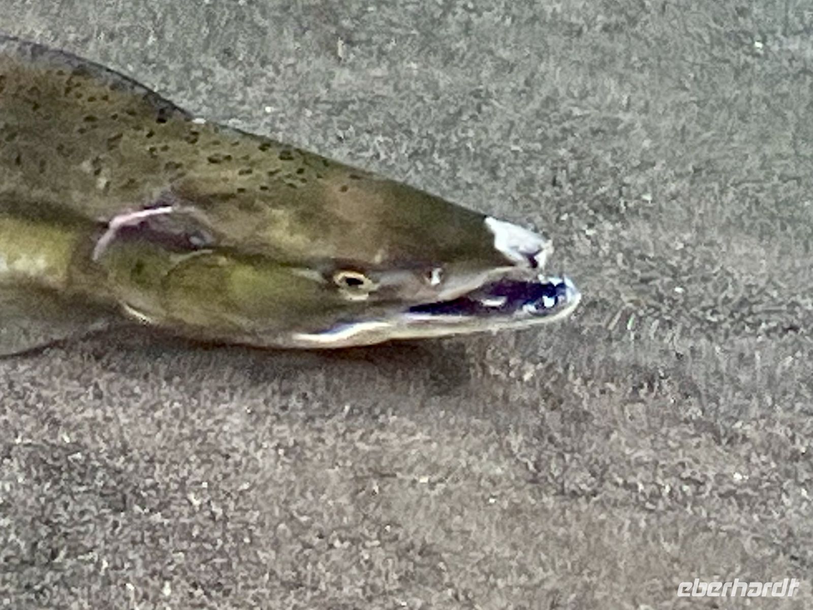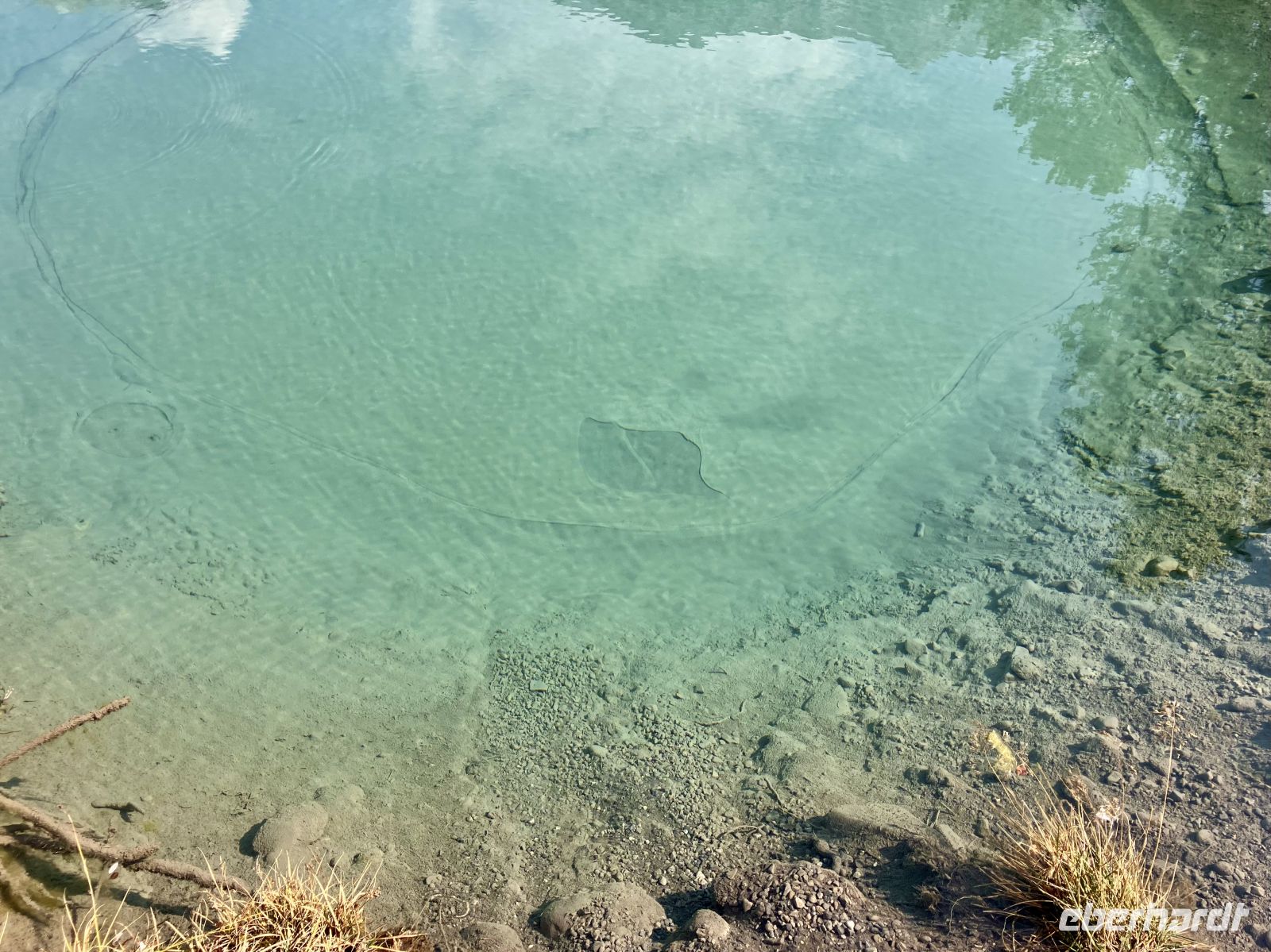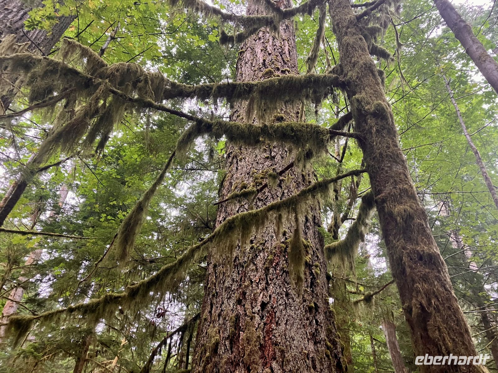 Nach einem kurzen technischen Halt in Jasper ist es aber wirklich Zeit diese schoene Gegen zu verlassen, denn Britisch Columbien erwartet uns schon. Ueber der grossen Wasserscheide treffen wir auf den Fraser Fluss. Der erste Fluss der in den Pazifischen Ozean fliesst. Da wir bereits die Uhren eine Stunde zurueckstellen koennen, ist es wieder frueh vormittags, es ist frisch und wir freuen uns ueber die Extrastunde Spielzeit heute. Da wir so eine muntere Wanderrunde sind, gehen wir vorerst auf den Ueberlaender Trail dem Fraser und Robson Fluss entlang. Ueber Stock und Stein und den Wald hier kennenlernend, treffen wir eine Stunde spaeter Tracey der auf uns wartet. Wir fahren 4 Km mit dem Bus bis zum Start der eigentlichen Wanderung entlang des Robson Rivers bis zu einem tollen See. Es geht gemuetlich auf einem breiteren Pfad dem Ufer des Robson Flusses entlang, stetig ein wenig steigend. Nach einer Stunde sehen wir ihn ploetzlich, der wunderbare, grosse, ruhige Kinney See. Der Magen hat sich auch schon gemeldet also setzen wir uns ans Ufer mit Blick auf den See und Whitehorn Mountain. Mmm ein schmackhaftes Sandwich ist nun die richtige Staerkung. Kein Lueftchen ergibt auch hier wieder die perfekte Spiegelung. Heute ist wieder so ein Spiegelungen Tag ! Auf der Fahrt nach Clearwater sprechen wir ueber die Lachse und ihren Lebenszyklus. In Valemount halten wir auch kurz an, um uns so eine Laichstelle anzuschauen. Die Lachse habe alle schon vor 2 Wochen gelaicht. Vielleicht sehen wir sie ja noch in einem anderen Fluss. Britisch Kolumbien ist durchzogen von Fluessen die von Lachsen heimgesucht werden. Nun machen wir endlich Siesta im Bus. Die Reise dauert 2 Stunden bis Clearwater also hat Elisabeth auch eine kleine Abwechslung fuer uns bereit. Ein Bierchen bei Larry in seiner tollen Kneipe ist genau das Richtige. Nun reden wir ueber Waelder, Studenten, Sozialwesen, Arbeit, Mieten, Pensionskasse usw bis wir in Clearwater ankommen. Ach ja, ein Baer zeigt sich auch noch aber er verschwindet auch recht schnell wieder im Dickicht. So vergeht die Zeit sehr schnell. Das Abendessen ist heute im Hotel. Dieser schoene Wander- und Reise-Tag endet in strahlendem Sonnen-und Mondschein.