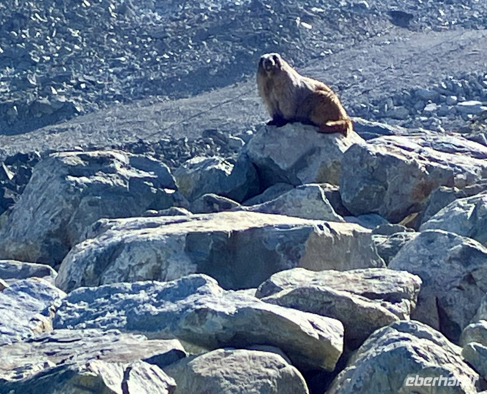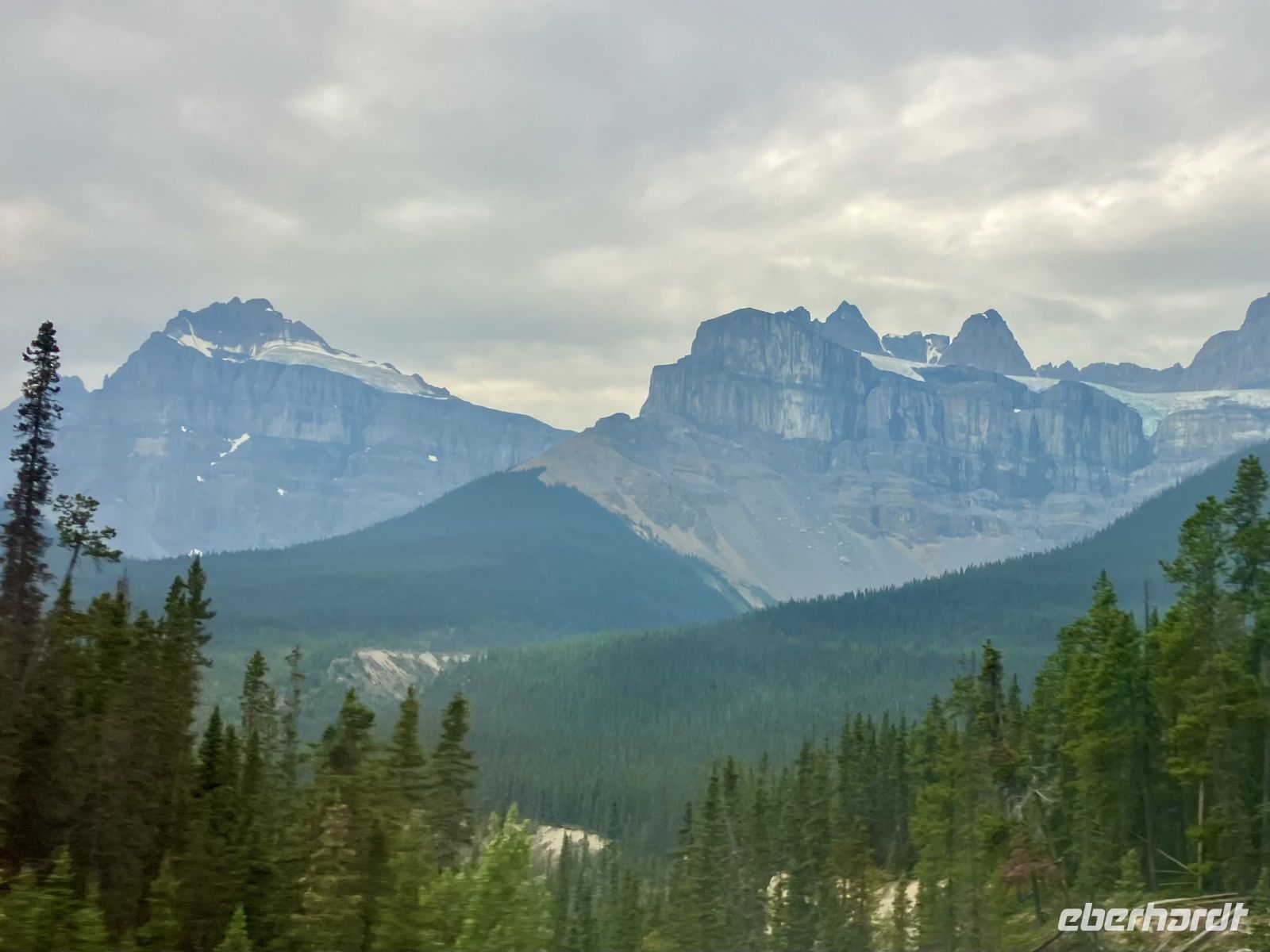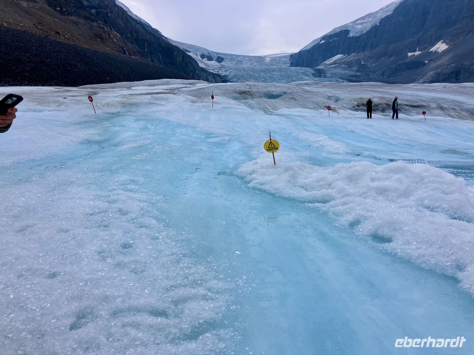 In der Frueh, so gegen 7 Uhr ist es recht kuehl, der Himmel ist blau, die Laune ist gut, sowie das Fruehstueck um 7:30. Wie auch die anderen Tage verlassen wir das Hotel um 8:30 dieses mal aber mit Koffer denn wir fahren heute Richtung Jasper. Alles ist perfekt, die Berge strahlen, die Gletscher glitzern, die Wasserfaelle schaeumen weiss und die Seen liegen ruhig in den endlosen Waeldern. Genau wie in der Ausschreibung. Viele Stops sind heute angesagt und auch viel Wissenswertes wird verkuendet. Wie ist das mit den Baeren und wieso soll man auf die Zaehne achten bei einer Baerenbegegnung. Wie ist das mit den Gletscher und den Schneefelder und wieso gibt es Silt und Moraenen. So bestaunen wir vorerst den Kraehenfuss-Gletscher und gedenken auch des Haeuptlings Kraehenfuss. Gleich danach fahren wir zum Bow See. WOW, heute ist er perfekt. Die Spiegelung ist enorm und so gibt es nun auch den Fotokurs „ Spiegelung mit IPhone 101“. Leider ist nun keine Zeit mehr fuer den Mokka in der Num Ti Jah Lodge, denn wir haben noch einige Stops vor uns ehe wir zum Columbia Eisfeld kommen. Bald gehts weiter auf der Parkstrasse, aber nicht lange, denn 5 Min spaeter halten wir schon wieder an, wir wollen uns Peto Lake anschauen. Von einer riesen Terrasse aus, haben wir eine herrliche Aussicht auf diesen dackelfoermigen, hellblauen See der inmitten eines Waldes weit unten im Tal liegt. Heute ist wohl unser Glueckstag denn Peyto Lake zeigt sich in seinem schoensten Kleid und auch hier spiegeln sich die umliegenen Berge im Wasser. Nun gehts weiter, dem Waterfowl Lake entlang. Dieser See wartet noch immer geduldig auf seine vielen Wasservoegel. Auf der Parkstrasse schauen die Gletscher von jedem Berg auf uns hinunter. Wir sehen Haengegletscher, Zungengletscher, Engelsgletscher, Zirkulargletscher und natuerlich die Hauben der Eisfelder. Nach der Mittagspause am Ufer des Saskatchewan Flusses zeigen sich einige Wolken am Himmel aber auch eine Schneeziege auf der gegenueberliegenden Bergwand. Ach wie herrlich sind doch diese Rockies und ach wie sehr werden wir von Mutter Natur verwoehnt. Auf dem Weg zu unserem Highlight heute erfahren wir, dass es in Kanada sogar Kurven auf der Strasse gibt !! Mit unserer Hilfe schaffen wir auch alle 3 Kurven, sodass wir heil beim Columbia Icefield Center ankommen. Nun sind wir da, beim Icefield Center, ach ne, so viele Leute und vor allem so viele Damen-Toiletten. Sie sind sogar im Guiness Book of Records vermerkt und das muessen wir natuerlich gleich ausforschen. Einige entscheiden sich fuer eine Moraene-Wanderung am Fusse des Athabasca Gletschers aber die Mehrheit faehrt mit dem riesen Snowcoach aufs Eis. Wir fahren vorerst mit einem normalen Bus auf eine Seitenmoraene und dann steigt man in den Snowcoach um. Damit fahren wir auf den Athabasca Gletscher. Der Fahrer James ist echt nett und ist noch immer unter dem hiesigen Durchschnittsalter von 25 Jahren. Er ist 23 und arbeitet bereits seit zwei Jahren hier. Unser Bus beherbergt noch eine grosse Gruppe Deutschsprachiger mit Marion als Reiseleitung. Wir sitzen alle brav auf unseren Baenken und horchen James zu, wie er nicht gerade leise und mit viel Entuhusiasmus etwas sehr kompliziertes auf Englisch erklaert. Oben angekommen, haben wir nun 25 Minuten Zeit das Eis zu erleben, darauf herumzu-rutschen und -turnen und mit dem klaren Gletscherwasser das mitgebrachte Flaeschchen abzufuellen. Das rutschige Bild mit der herrlichen Kulisse des Eisfalls wird sicher ein Hit. Ist Eis nicht hart ? Weshalb sind unsere Schuhe nass ? Nun gibt es noch eine Ueberraschung, denn die Whiskyflasche von Vorgestern hat noch die Haelfte drin und so stossen wir mit Whisky on the Rocks an. Wieder unten angekommen, treffen wir unsere Wanderfreunde und sind bald bereit weiter zu fahren. Nun mache wir ein kurzes Stuendchen Siesta im Bus, eher wir bei den Sunwapta Faellen halten. Ja, das steinerne Eichhörnchen sitzt noch immer mitten im Wasserfall. Was für ein schönes Motiv. Als nächsten Aussichtspunkt haben wir noch die Athabasca Faelle und seine Schlucht. Es nieselt nun leicht und so, koennen wir auch endlich unsere Regenjacken herzeigen. Eindrucksvoll hat sich hier der Athabasca Fluss ins Gebirge eingefressen, man kann sogar in einem trockenen Flusslauf gehen. Von hier ist es nicht weit zu unserem heutigen Nachtquartier. Die Beckers Chalets liegen wirklich idyllisch am Flussufer des Sunwapta Flusses. Das Abendessen ist ausgezeichnet und unsere Chalets sind sehr gemuetlich. Nach diesem vollen Tag wollen wir uns bald mal zurueckziehen und in dieser Idylle ruhig schlafen gehen.