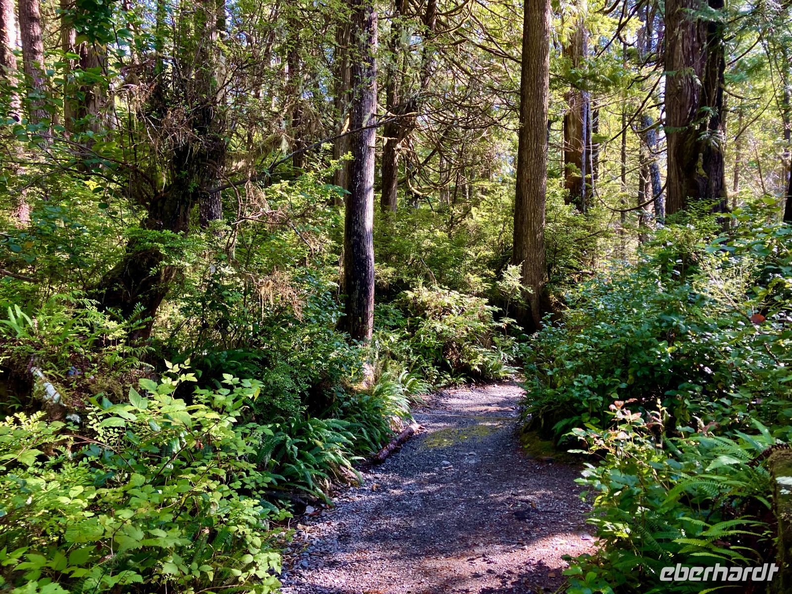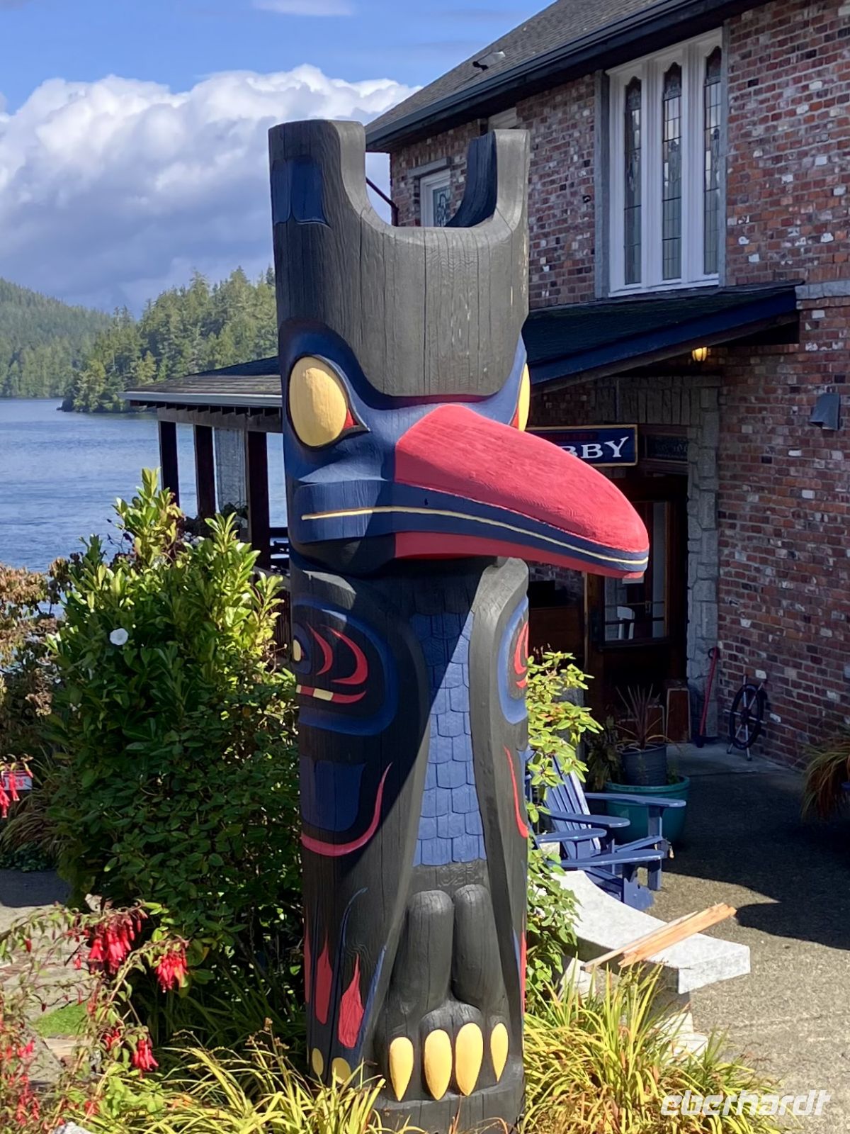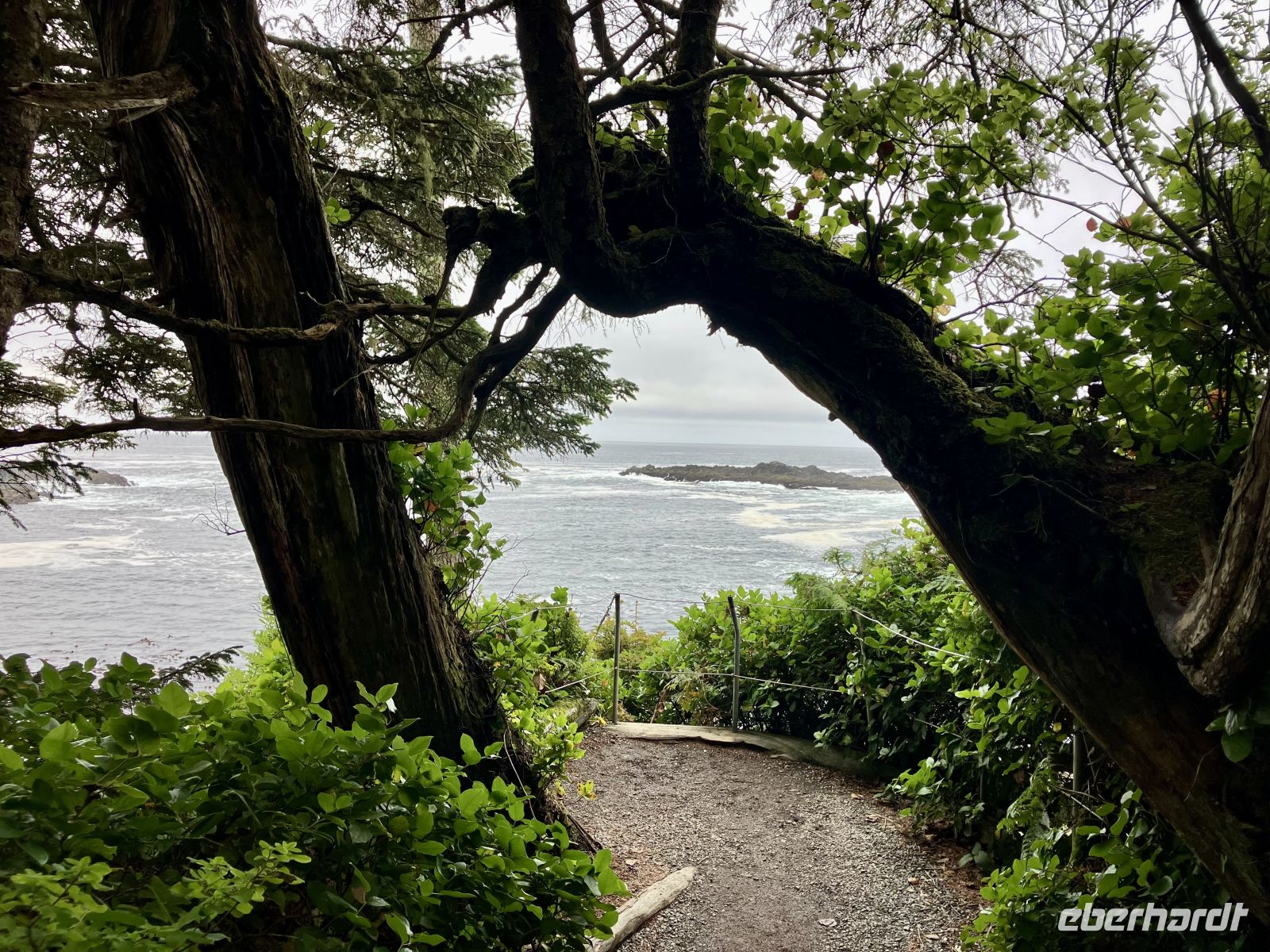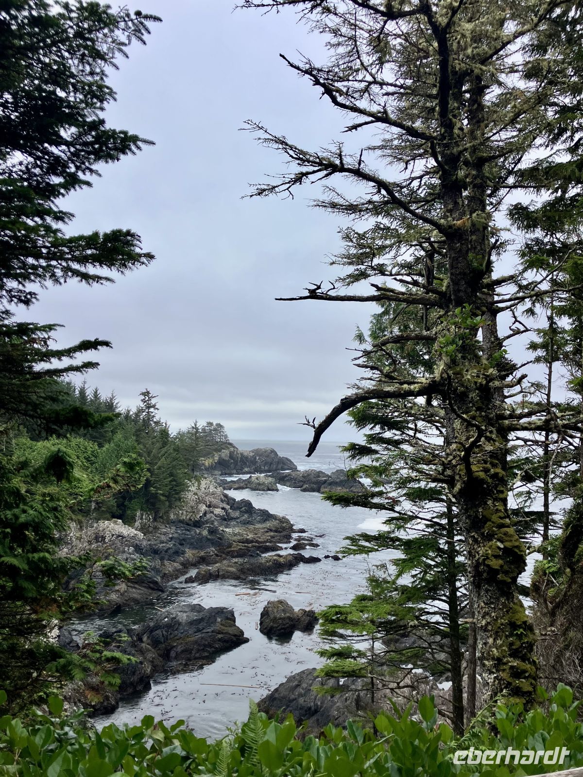 Oh wie herrlich, man erblickt wieder blauen Himmel, das Zimmer ist sehr gross und angenehm temperiert und die Decken sind warm, wer will da schon aufstehen....Wir, denn auch heute wird sicher wieder ein toller Tag. Nach dem Fruehstueck in unserem Strandhotel gehts gleich auf unsere «Romantische Wanderung». Erst fahren wir aus dem Pacific Rim National Park raus und gleich ins kleine Staedtchen Ucuelet. Hier wandern wir nun eine laengere Stunde der Kueste entlang in einem Urwald. Die Aussichten aufs Meer, die Felsen, Straende und Inseln sind einfach atemberaubend, die Eindruecke haftend. Mit dieser maerchenhafter Wanderung verabschieden wir uns nun von der Westkueste Kanadas. Die Rueckfahrt nach Nanaimo wird kurz mit einem Besuch bei einem legendaeren Tim Hortons unterbrochen, ansonsten werden noch alle offenen Fragen zu verschiedenen Themen durchgenommen bis wir nicht einfach vor uns hin doesen. Der naechste Halt ist in einer Freilicht-Gallerie. In Chemainus sind naemlich viele Hauswaende mit historischen Gemaelde bemalt. Man kann von einem Bild zum anderen gehen und sich manchmal sogar in ein Gemaelde hineinfotografieren. Daraufhin gehts weiter in Richtung Sueden bis nach Victoria, unser heutiges Ziel der Reise. Die Stadtfuehrung durch die Hauptstadt von BC passt in die 90 Minute die wir noch zur Verfuegung haben, denn die Innenstadt ist eher klein mit seinem alten Chinesenviertel, der Governement Street und dem Hafen mit dem gewaltigen Empress Hotel und dem Regierungsgebaeude. Die Geschichten von Francis Rattenburry, Mr. Dunsmuir, James Cook und vielen anderen Herrschaften vergangener Zeiten sind interessant, unterhaltsam und auch lustig. Der Hafen mit seinen vielen Attraktionen sowie die Pubs stehen ganz oben auf der Victoria Lieblings-liste. Unser Hotel ist am inneren Hafen, ganz toll gelegen. Das Abendessen geniessen wir in einem schoenen Restaurant mit herrlichem Blick auf das tolle Empress Hotel. Heute abend gehen wir auch noch in den Irischen Pub. Es unterhaelt uns eine Irin mit flotter Musik. Das Bierchen der lokalen Brauerei schmeckt vorzueglich es ist eines der rund 30 verschiedenen Biere vom Zapfen. So klingt auch dieser Tag erfolgreich aus.