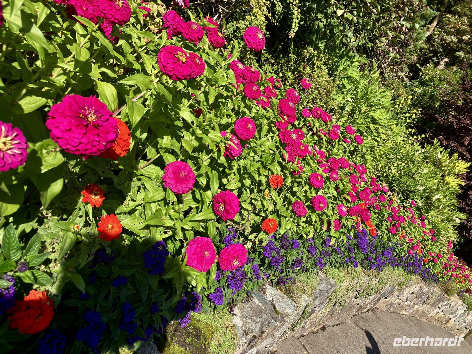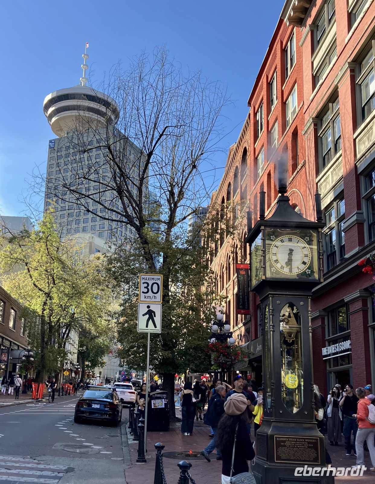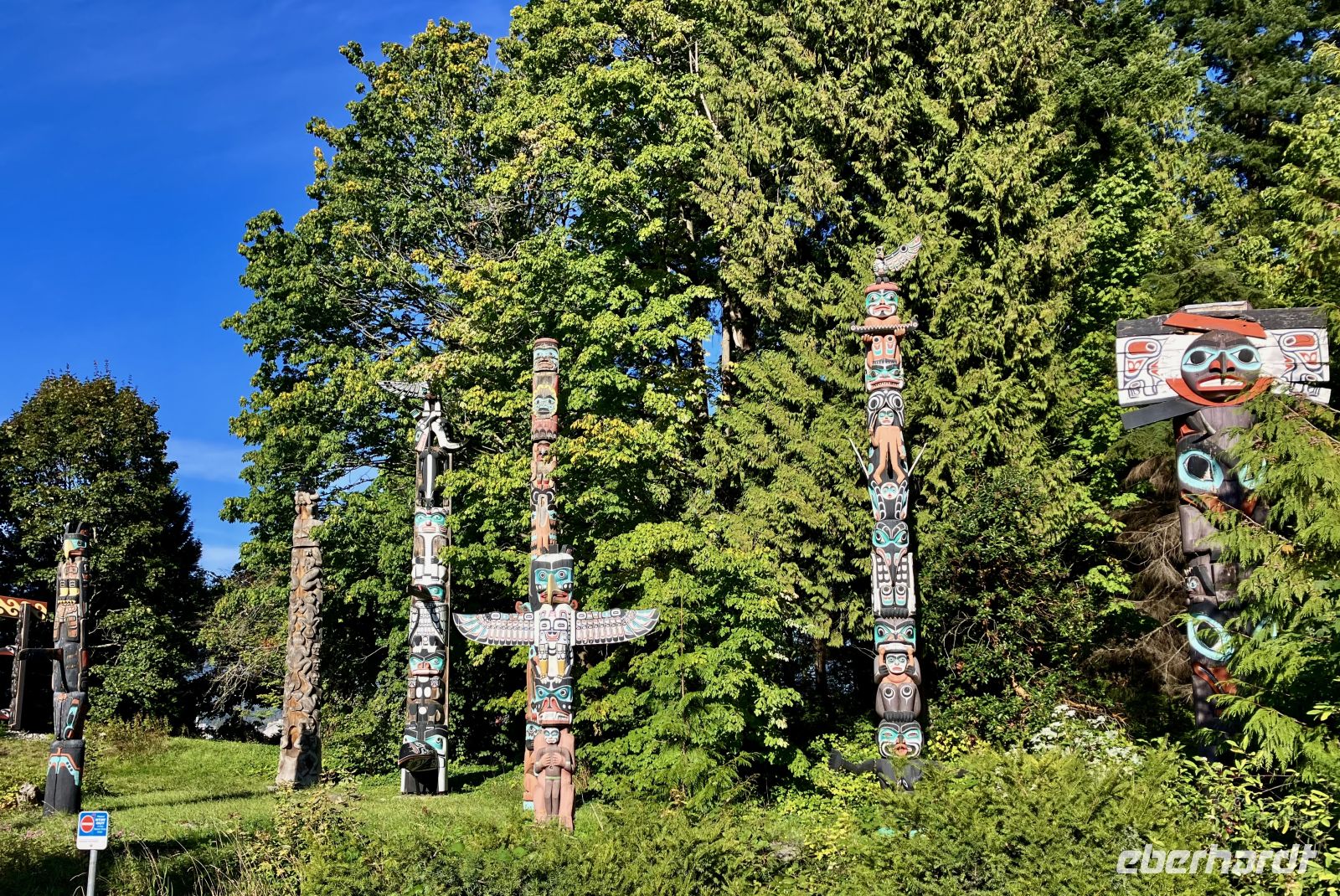 Abreise von Victoria steht heute auf dem Programm. Sobald die Koffer im Bus verstaut sind, fahren wir vorerst zur Meile 0 der Trans Canada Highway und dem Denkmal an Terry Fox. Wir gehen auch nochmals an einen kleinen Strand mit Blick auf die Olympia Peninsola die sich im Staate Washington der USA befindet. Wir fahren auf der HWY No 1 aus der Stadt hinaus, bei der Universitaet vorbei in die beruehmten Butchart Gardens. Dies ist eine riesengrosse Anlage mit verschiedenen Gaerten welche von ueber einer Milion Besucher jaehrlich besucht wird. Vorerst schauen wir uns den haengenden Garten an, danach den Wald-Garten, den versunkene Garten mit seiner Fontaene, danach den Rosengarten, den japanischen Garten, den franzoesischen- und, zu guter Letzt, den italienischen Garten. Bis wir wieder beim Kaffeehaus landen. Wir sehen bloss noch Blueten und Blumen vor unseren Augen. So beeindruckend sind diese Gaerten, dass wir uns nun einen Kaffee goennen wollen und vielleicht im Giftshop noch etwas geblumtes finden fuer die daheim gebliebenen die auf die Pflanzen aufpassen. Mittags sind wir auf der Faehre. Die Sonne strahlt. Aehnlich einem Kreuzschiff auf der Inside Passage schaut es hier aus. Wir verbringen fast die ganze Zeit auf dem oberen Sonnendeck. Die 1 ½ Stunden sind sehr schnell vorbei. Bei Ankunft auf dem Festland fahren wir in Richtung Norden nach Vancouver. Wir lernen die Stadt auch gleich kennen, denn die Stadtfuehrung fuehrt uns vorerst nach Chinatown. Es ist das 2. groesste Chinatown nach San Francisco und die angepriesene Ware ist bloss auf chinesisch beschrieben. Das meiste scheint getrocknet oder gesalzen zu sein. Anschliessend gehts nach Gastown. Es ist der aelteste Stadteil Vancouvers mit seiner interessanten Geschichte und seiner Dampfuhr die man auf jedem Vancouver Prospekt auch sehen kann. Und nun stehen wir vor der Dampfuhr. Die Stunde wird durch viel Dampf im Big Ben Muster angezeigt und durchs Glass kann man das Getriebe anschauen. Ganz schoen einfallsreich der britische Lok-Ingenieur ! Nun sehen wir noch viele Sehenswuerdigkeite der Perle des Pazifiks und halten wieder in Stanley Park bei den Geschichts-erzaehlenden-Pfaehlen. Auch hier weiss Elisabeth noch Geschichten dazu. Die lustige Kinder-Trockenanlage beim Wasserspielplatz ist sehr amuesant und die Loewenbruecke ist beeindruckend. Bald gelangen wir so zu unserem Hotel wo wir uns von Tracey mit einem dicken Umschlag und besten Wuenschen verabschieden. Wir werden ihn vermissen, er hat uns sicher und gut gefuehrt. Heute Abend ist freies Abendbrot und so ziehen wir alle, mit unseren Stadtkarten ausgeruestet, durch die Strassen Vancouvers. Wichtig ist jedoch das Rendez-vous am englischen Strand zum Sonnenuntergang
