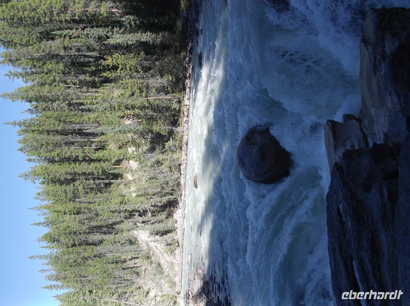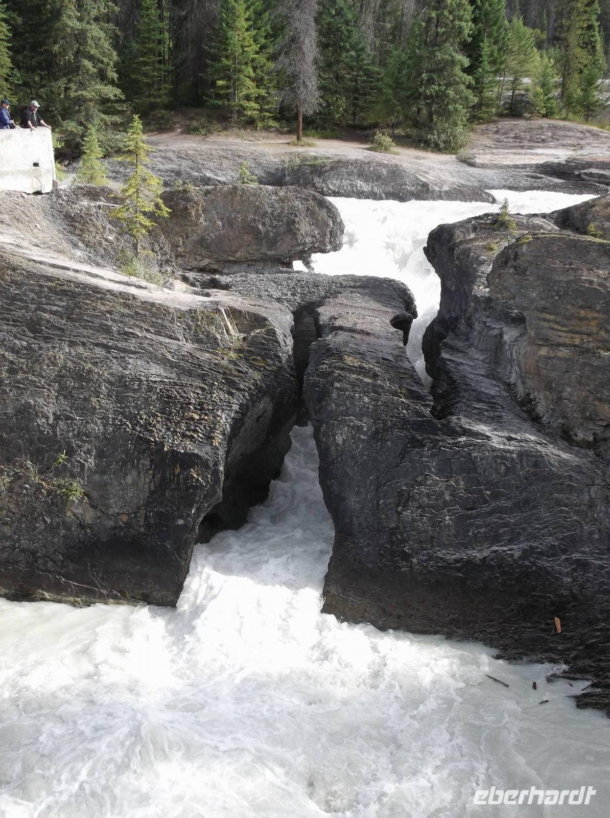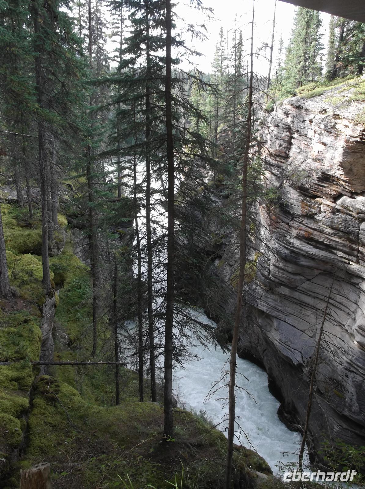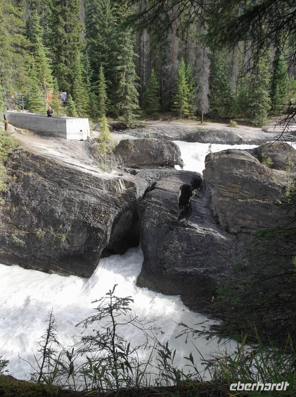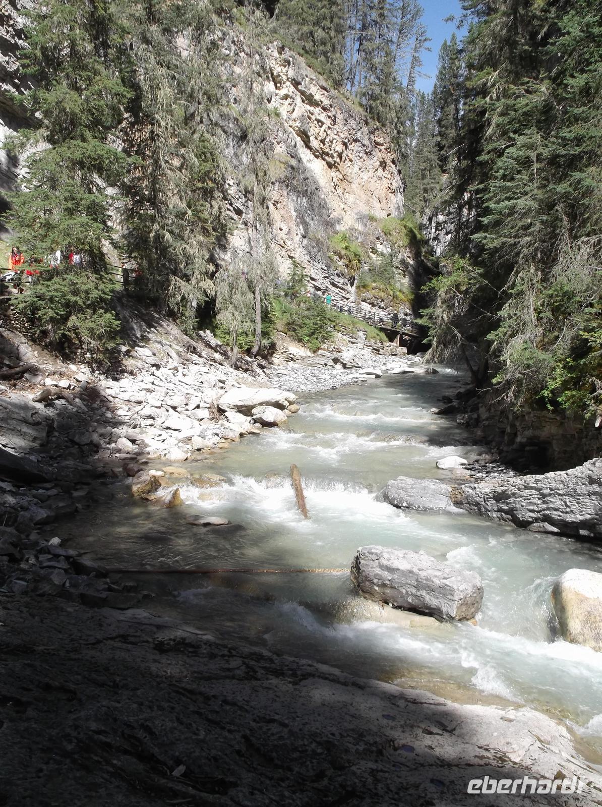 Maligne Canyon. Dort gibt es einen wildromantischen 4 km langen naturkundlichen Lehrpfad. Mehrere Brücken überspannen die sich stellenweise zur Klamm verengenden Schlucht.