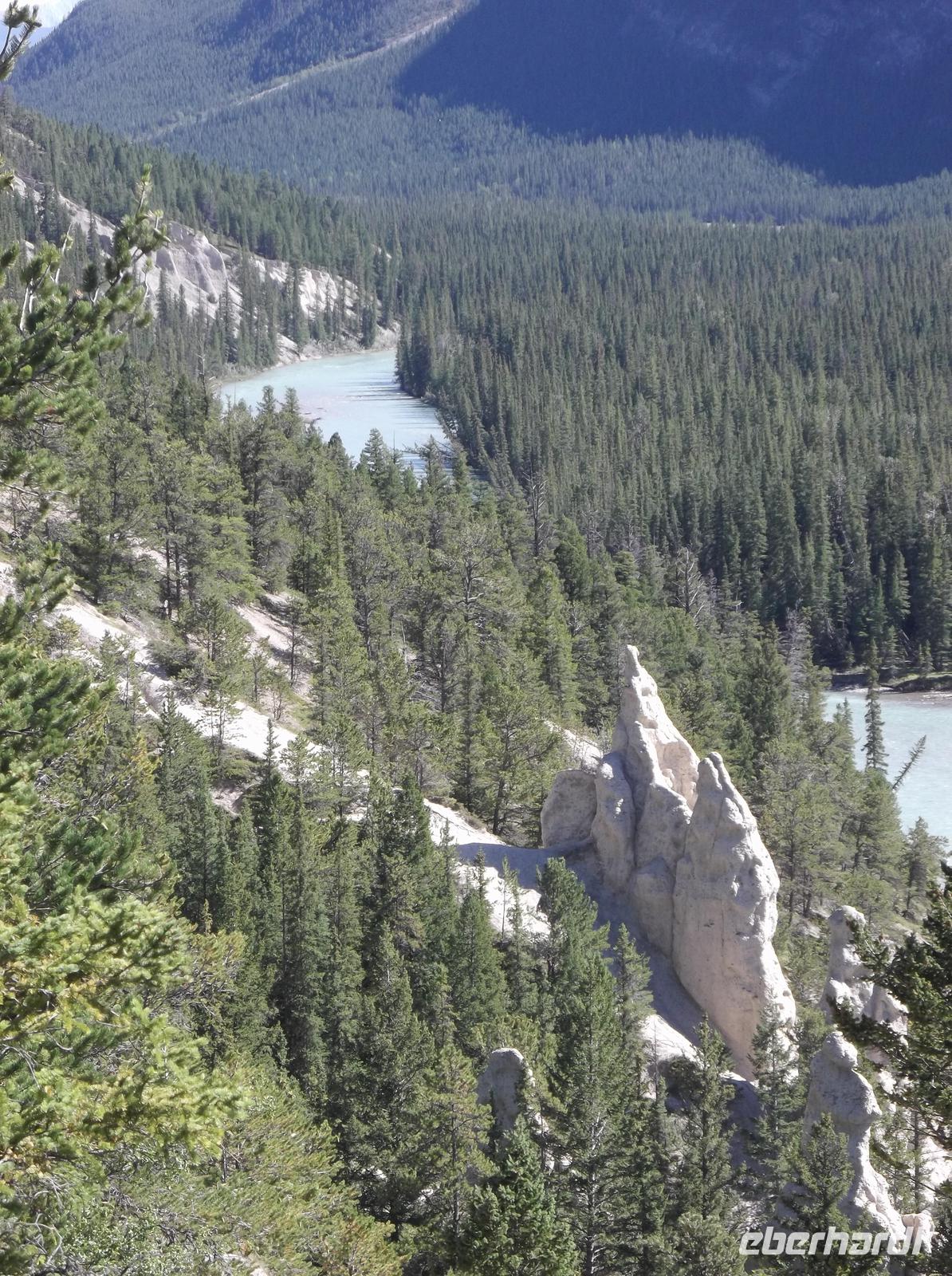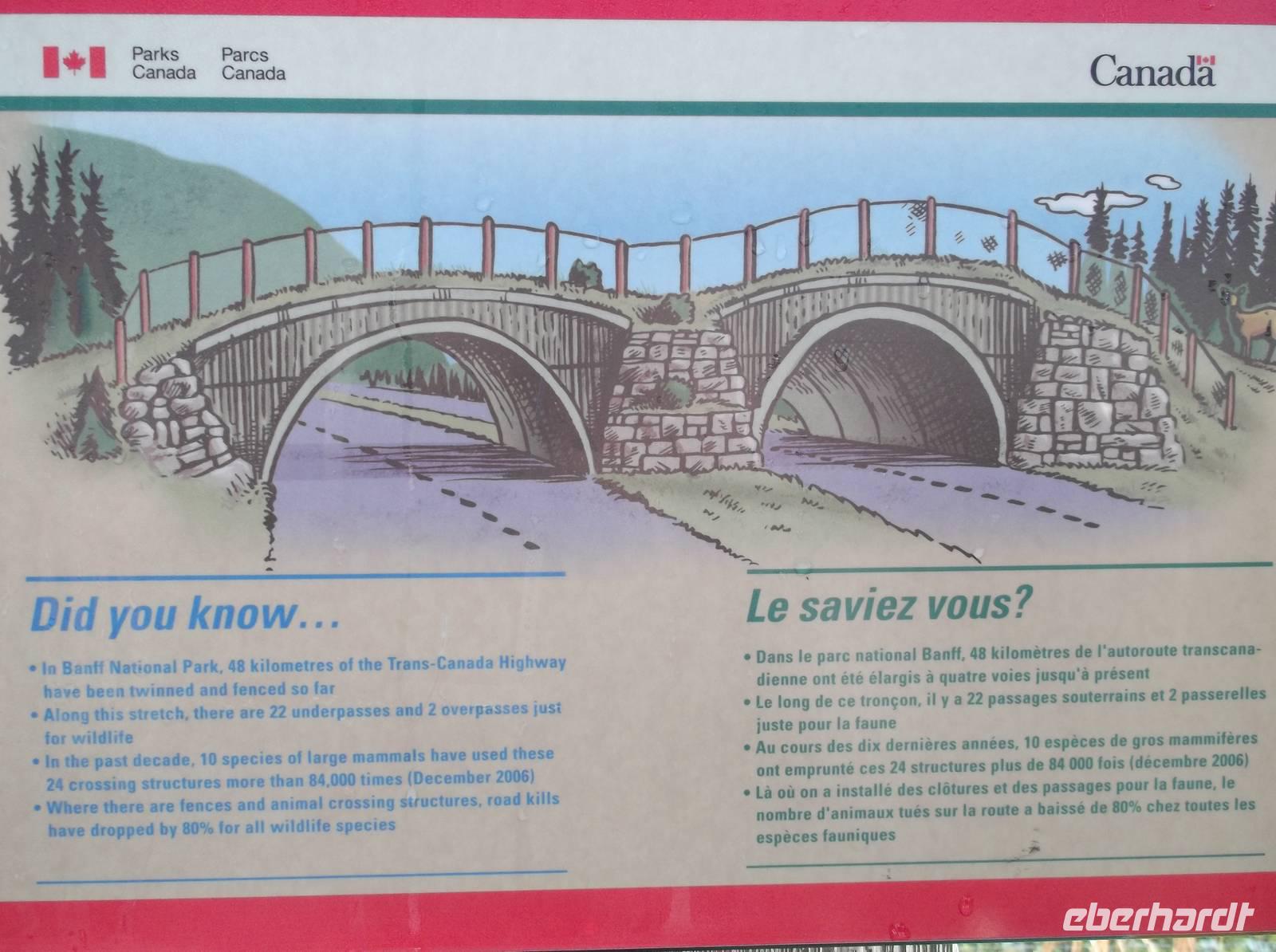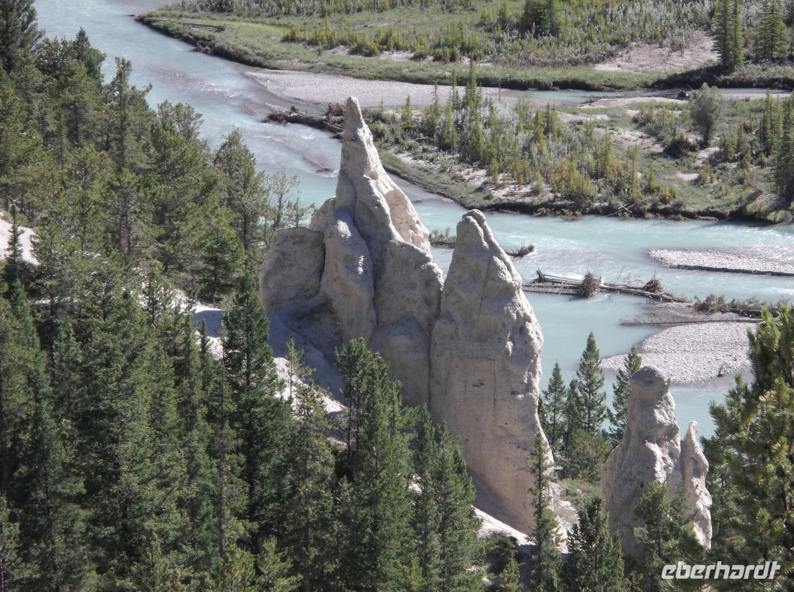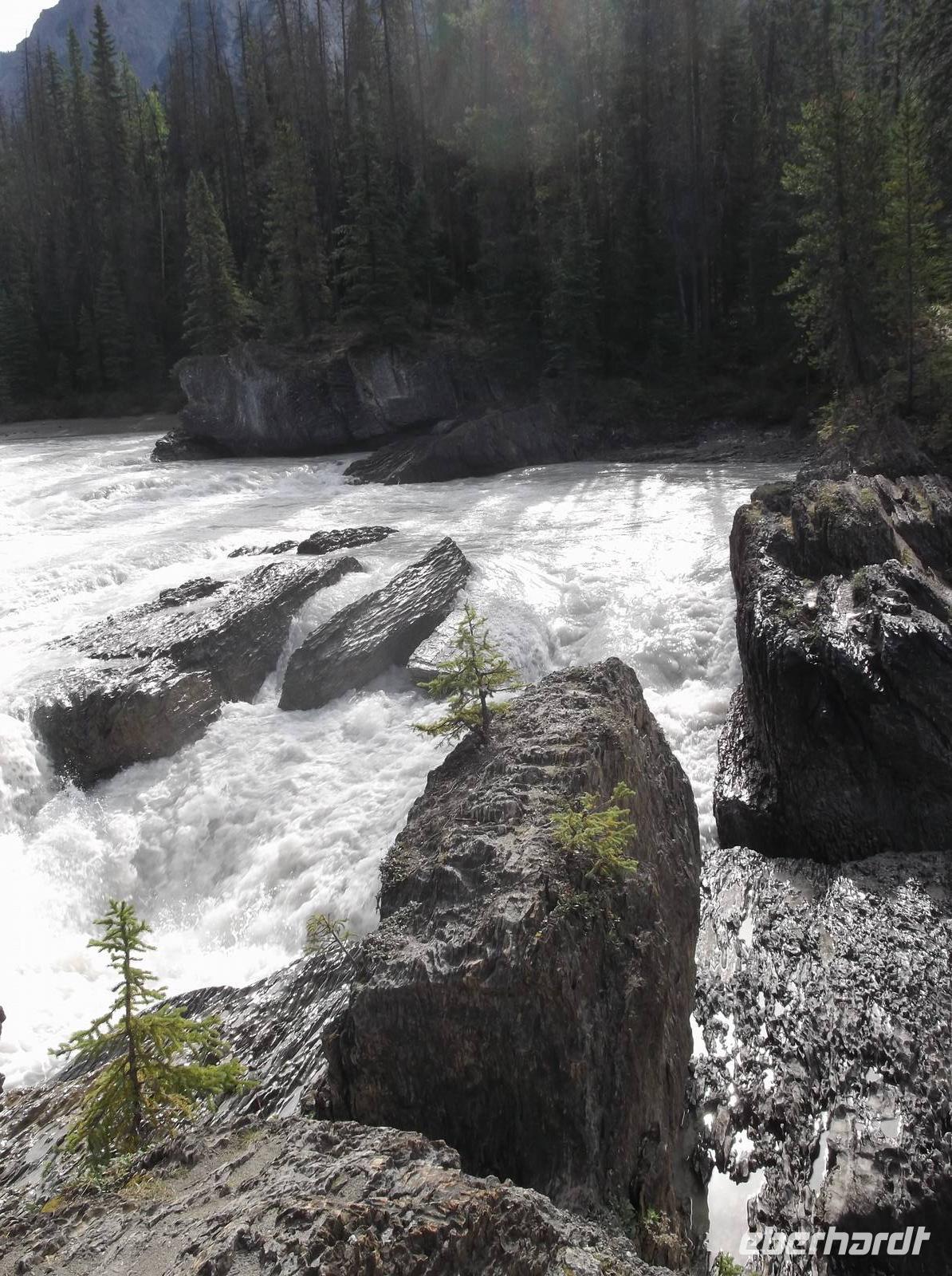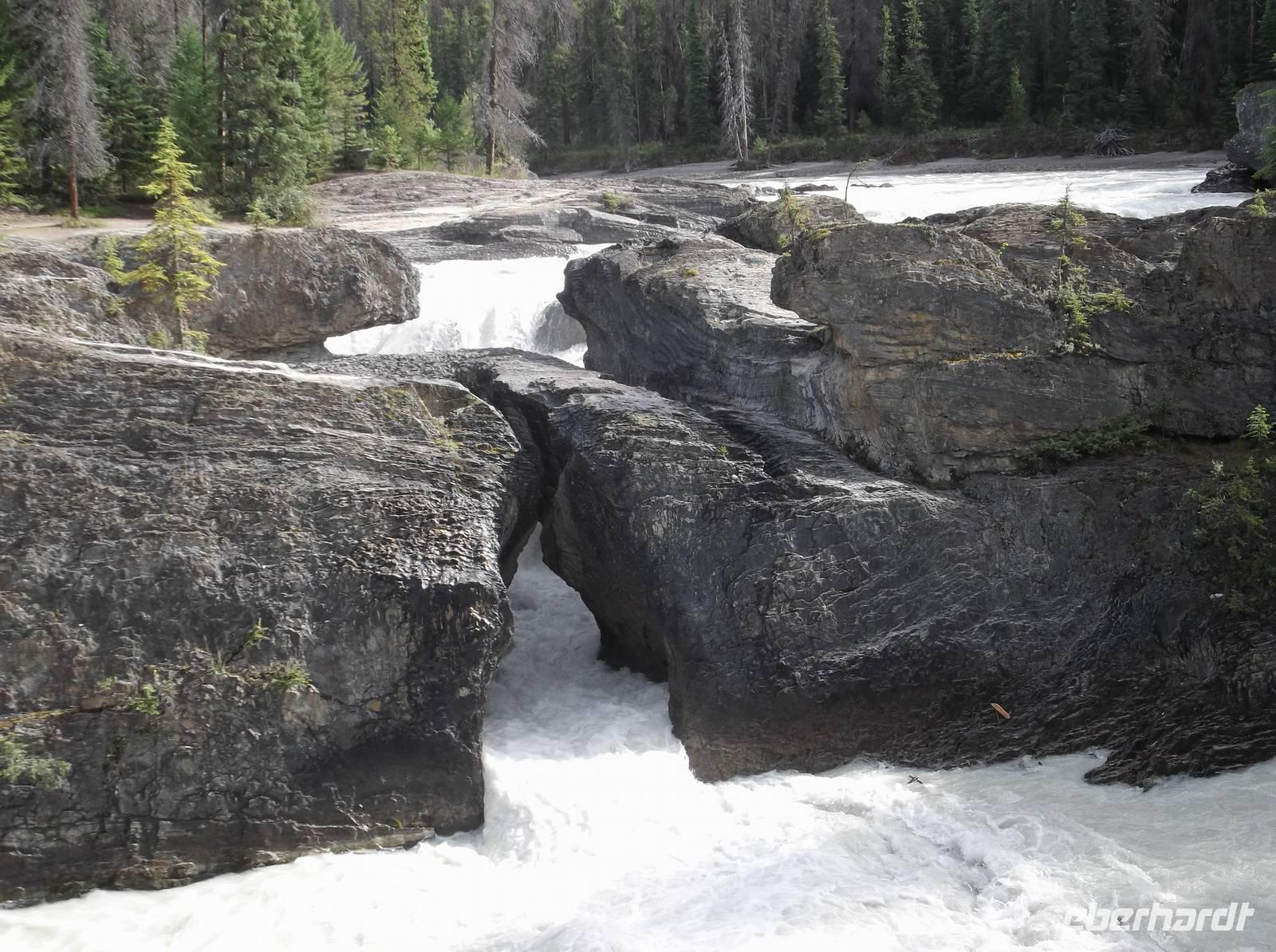 Maligne Canyon. Dort gibt es einen wildromantischen 4 km langen naturkundlichen Lehrpfad. Mehrere Brücken überspannen die sich stellenweise zur Klamm verengenden Schlucht.
