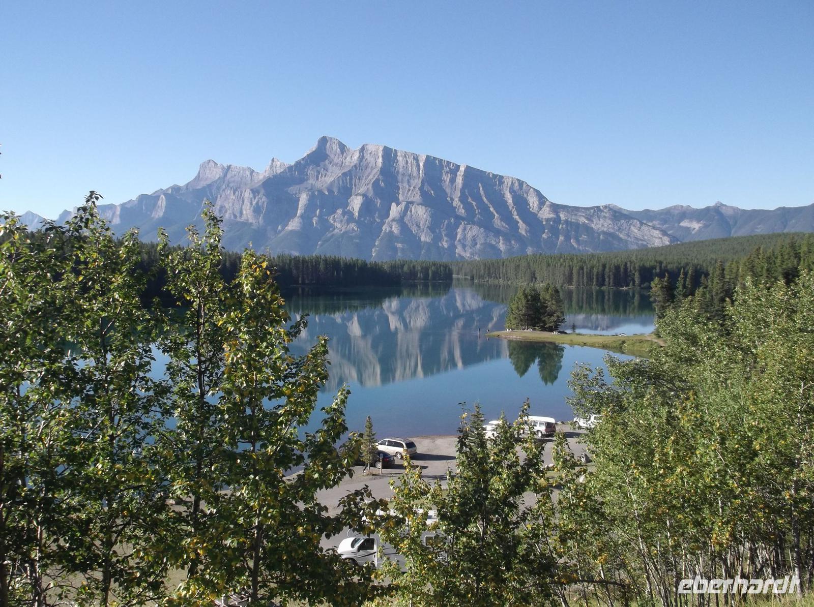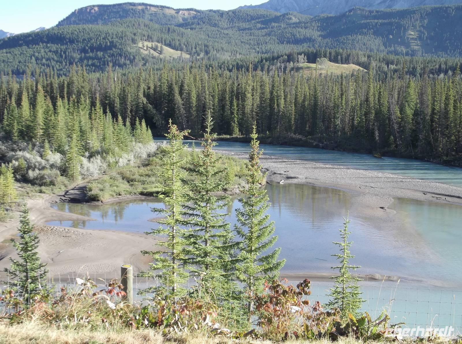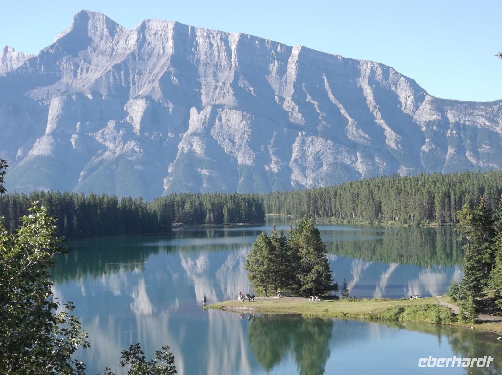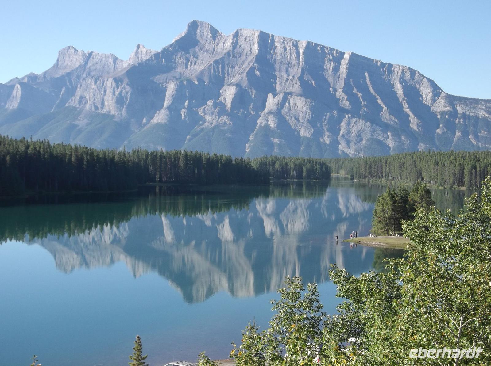 02.09.13:Wenn Engel reisen..... Wieder ein wunderschöner sonniger Tag. Heute steht ein Ausflug zum Maligne See auf dem Programm. Aber vorher machen wir einen kurzen Halt am Medicine Lake. Hier treffen wir auf ein beeindruckendes geologisches Phänomen. Frühere Indianer glaubten, Geister seien für das temporäre Verschwinden dieses von Maligne River gespeisten Sees verantwortlich. Tatsächlich versickert im Herbst das Wasser jedoch in poröse Kalksteinschichten und in ein einzigartiges unterirdisches Drainagesystem der Natur. Die Quellen frieren ein und tauen erst im folgenden Frühjahr wieder auf. nach kurzer Fahrt sind wir am Malignesee angekommen. Die Ausmaße des Sees sind ebenso beeindruckend wie die Gebirgskulissse im Hintergrund. Mit dem Boot fährt man bis zur Südspitze des Sees zur Spirit Island, einer weltbekannten Postkartenansicht und eines der meistforografierten Panoramen. Bevor es zurück nach Jasper geht, bleibt Zeit für einen kurzen Abstecher in den