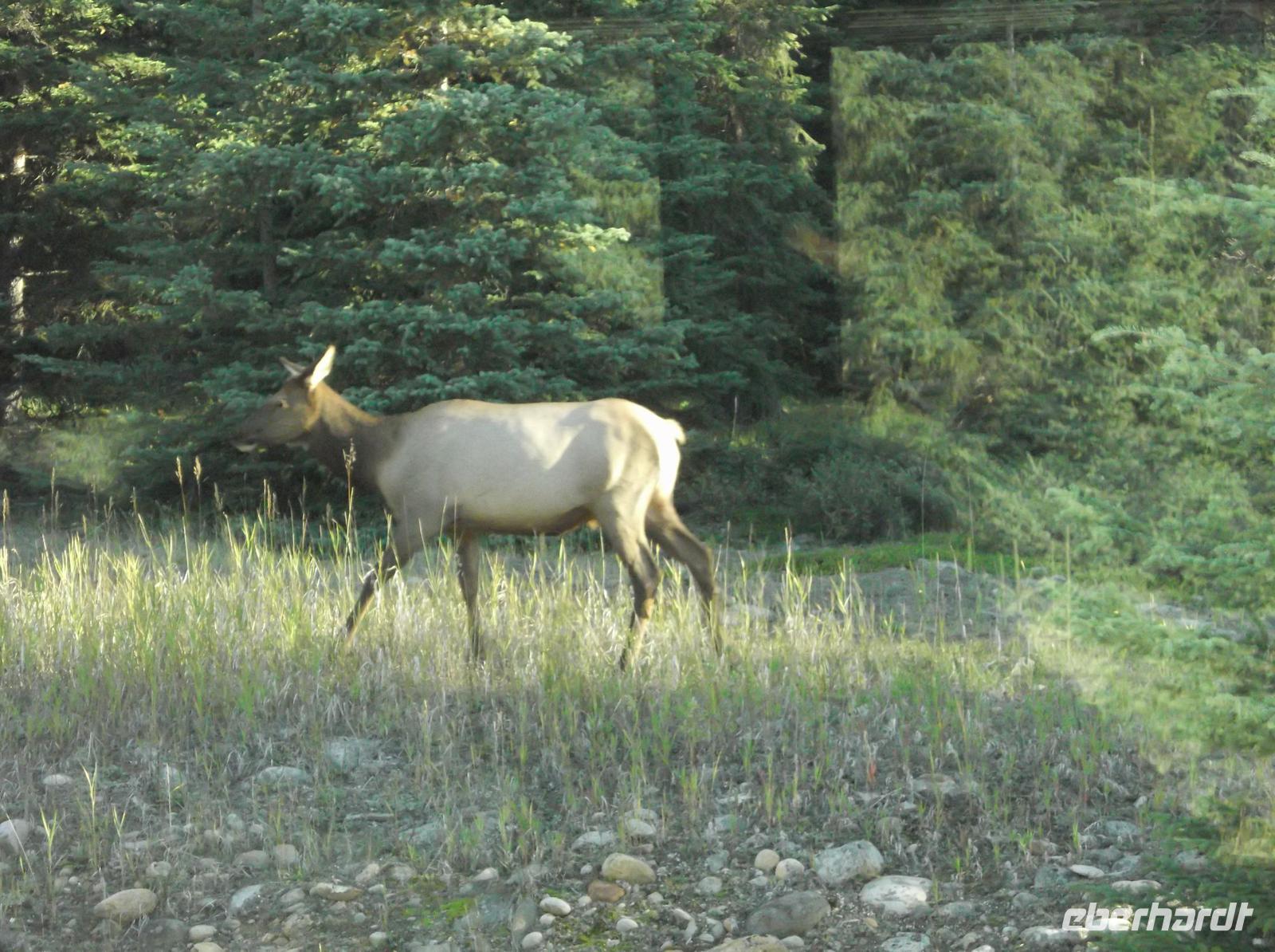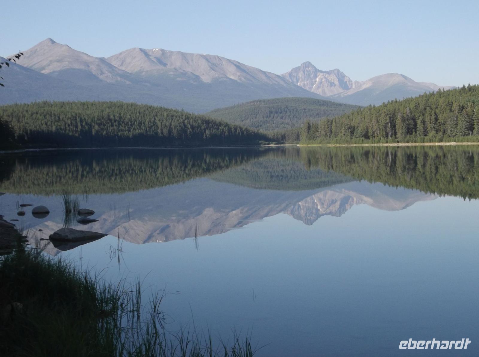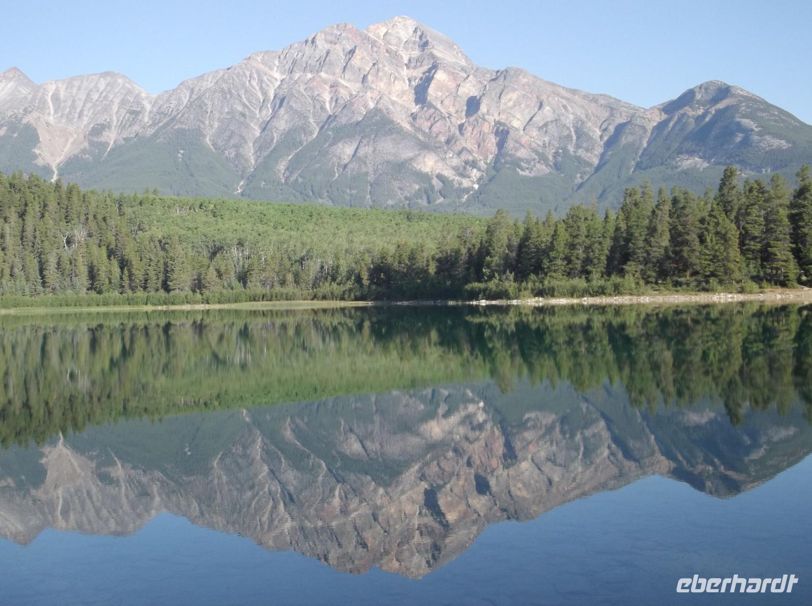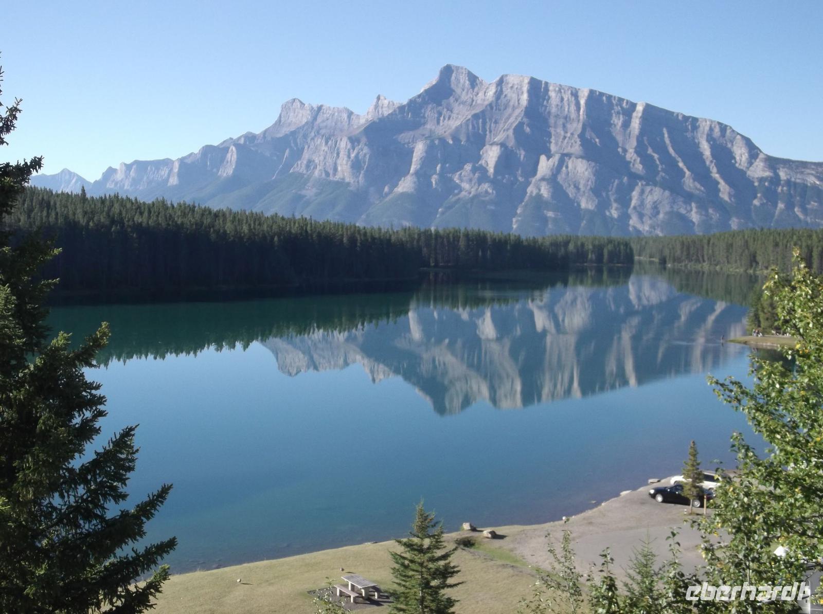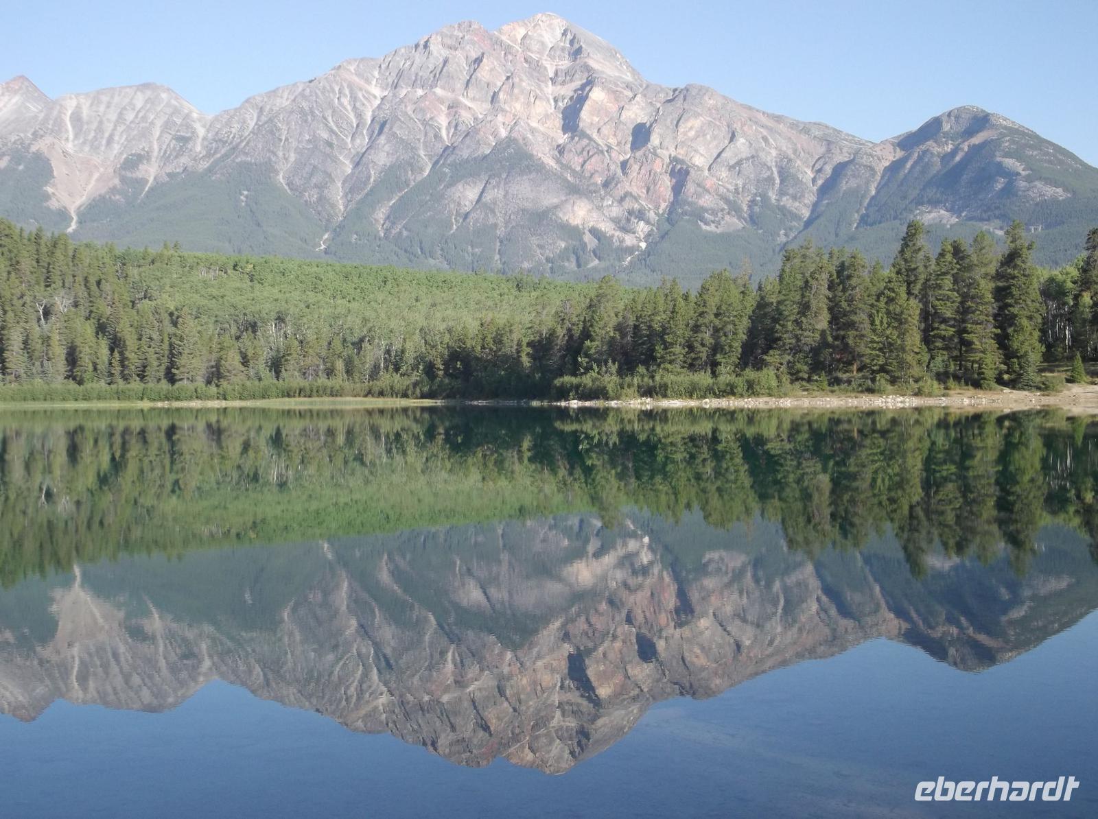 02.09.13:Wenn Engel reisen..... Wieder ein wunderschöner sonniger Tag. Heute steht ein Ausflug zum Maligne See auf dem Programm. Aber vorher machen wir einen kurzen Halt am Medicine Lake. Hier treffen wir auf ein beeindruckendes geologisches Phänomen. Frühere Indianer glaubten, Geister seien für das temporäre Verschwinden dieses von Maligne River gespeisten Sees verantwortlich. Tatsächlich versickert im Herbst das Wasser jedoch in poröse Kalksteinschichten und in ein einzigartiges unterirdisches Drainagesystem der Natur. Die Quellen frieren ein und tauen erst im folgenden Frühjahr wieder auf. nach kurzer Fahrt sind wir am Malignesee angekommen. Die Ausmaße des Sees sind ebenso beeindruckend wie die Gebirgskulissse im Hintergrund. Mit dem Boot fährt man bis zur Südspitze des Sees zur Spirit Island, einer weltbekannten Postkartenansicht und eines der meistforografierten Panoramen. Bevor es zurück nach Jasper geht, bleibt Zeit für einen kurzen Abstecher in den