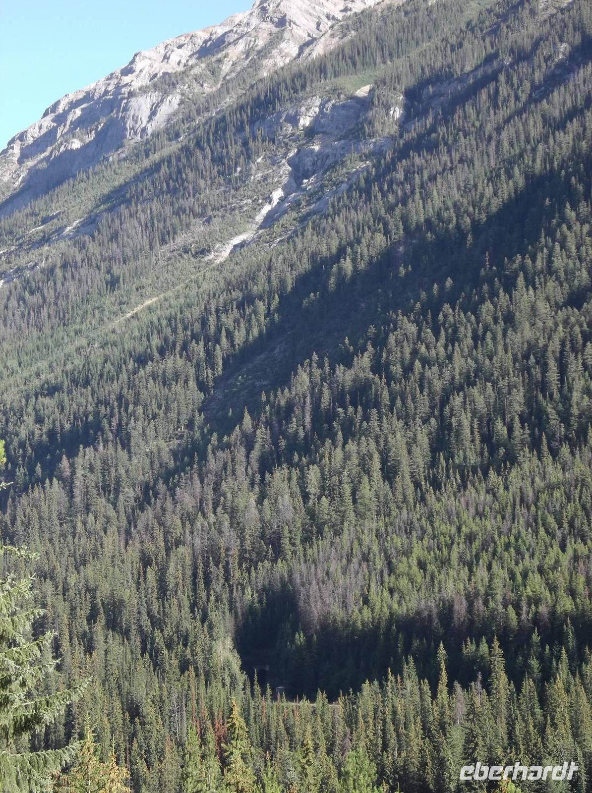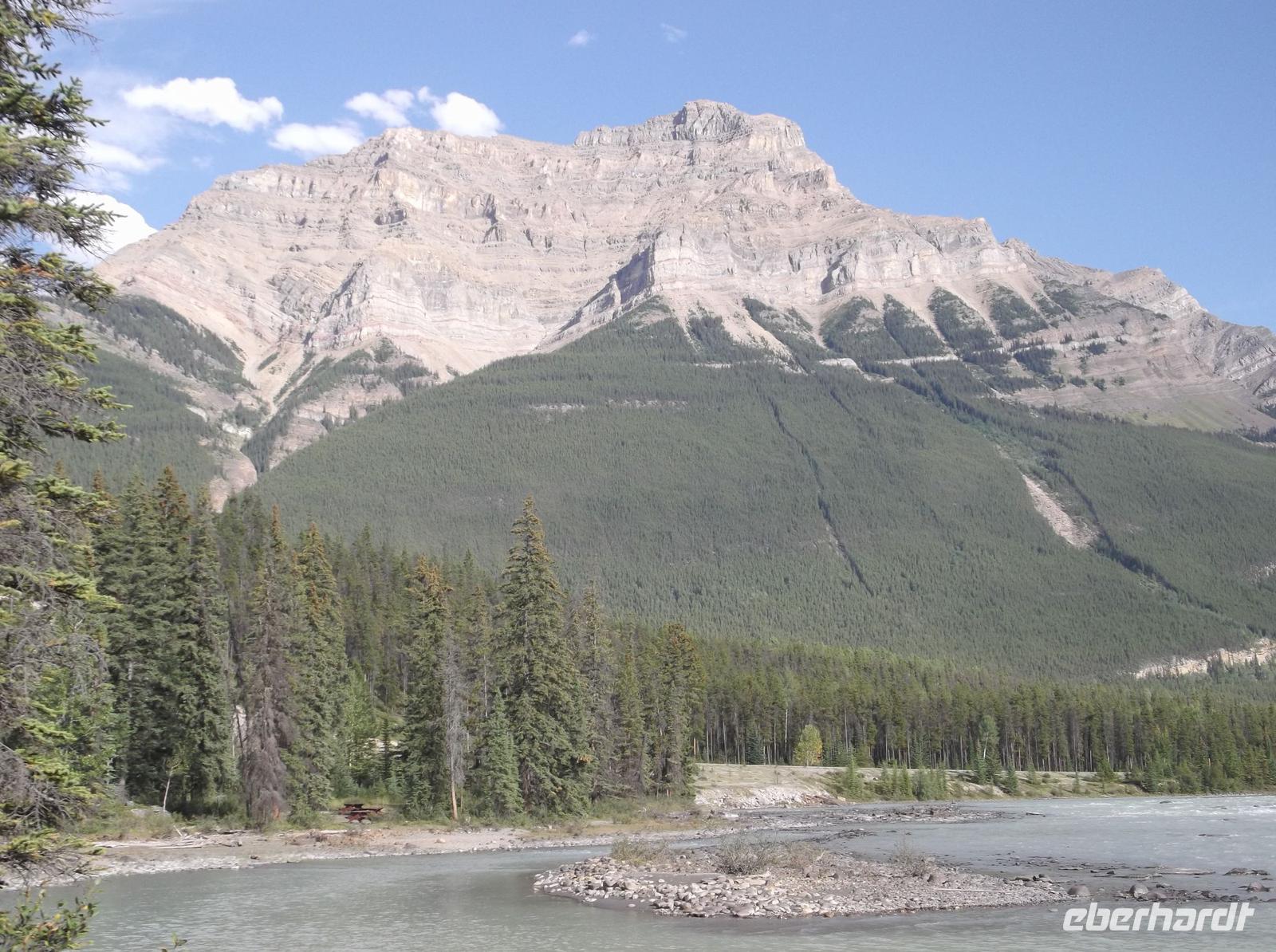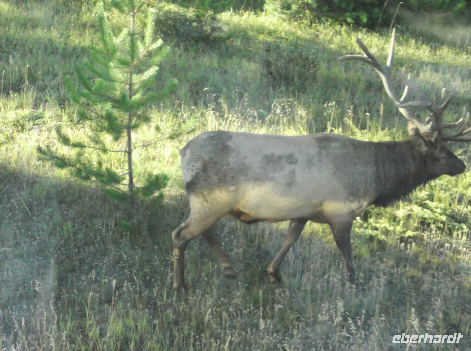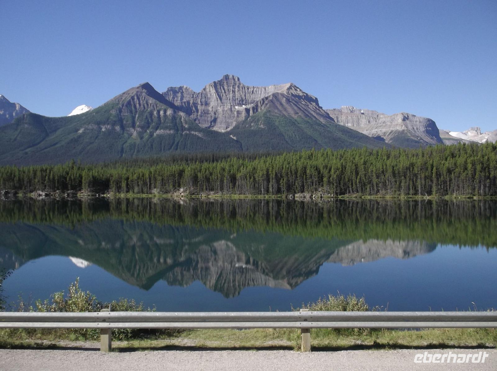 02.09.13:Wenn Engel reisen..... Wieder ein wunderschöner sonniger Tag. Heute steht ein Ausflug zum Maligne See auf dem Programm. Aber vorher machen wir einen kurzen Halt am Medicine Lake. Hier treffen wir auf ein beeindruckendes geologisches Phänomen. Frühere Indianer glaubten, Geister seien für das temporäre Verschwinden dieses von Maligne River gespeisten Sees verantwortlich. Tatsächlich versickert im Herbst das Wasser jedoch in poröse Kalksteinschichten und in ein einzigartiges unterirdisches Drainagesystem der Natur. Die Quellen frieren ein und tauen erst im folgenden Frühjahr wieder auf. nach kurzer Fahrt sind wir am Malignesee angekommen. Die Ausmaße des Sees sind ebenso beeindruckend wie die Gebirgskulissse im Hintergrund. Mit dem Boot fährt man bis zur Südspitze des Sees zur Spirit Island, einer weltbekannten Postkartenansicht und eines der meistforografierten Panoramen. Bevor es zurück nach Jasper geht, bleibt Zeit für einen kurzen Abstecher in den