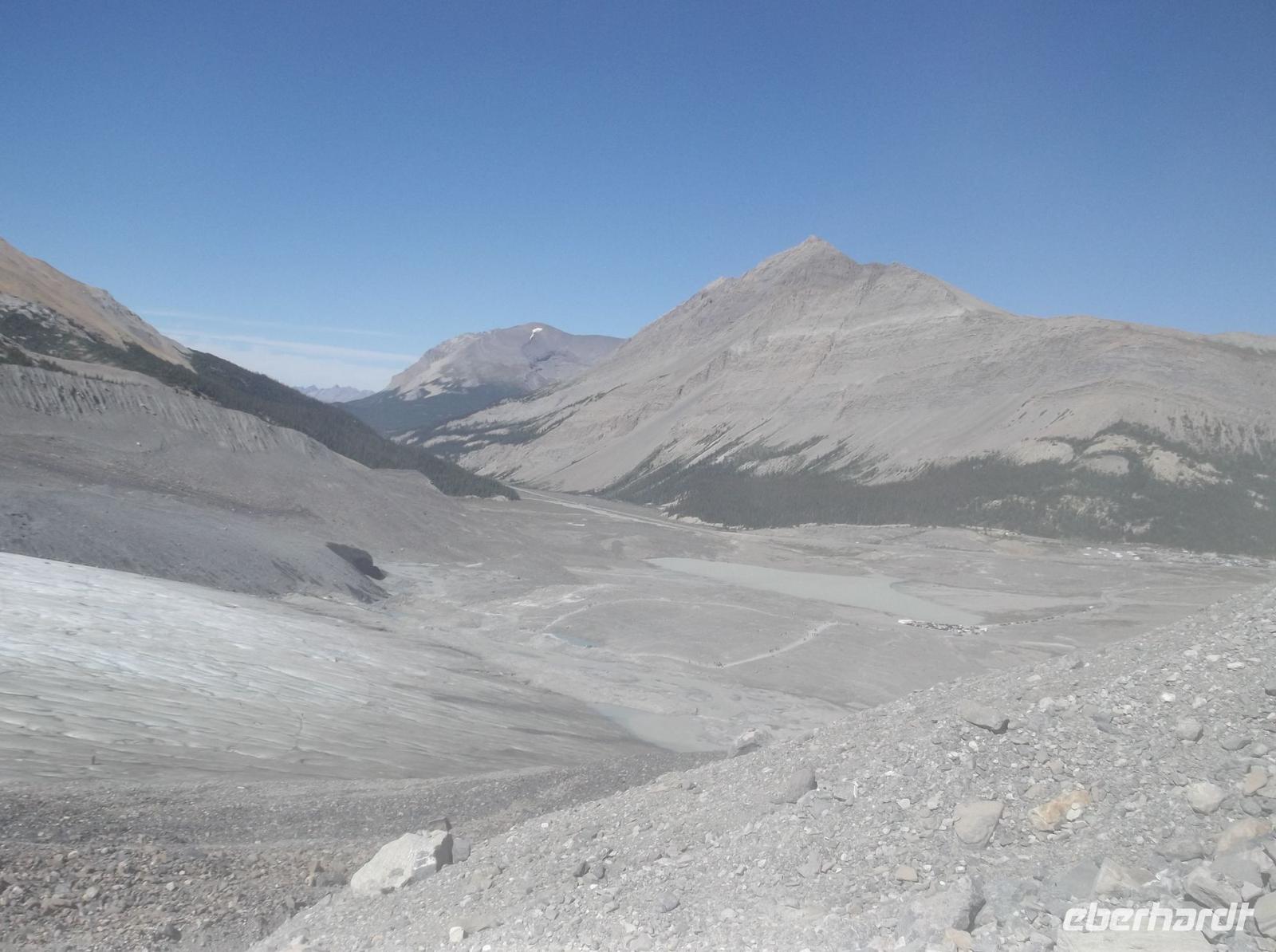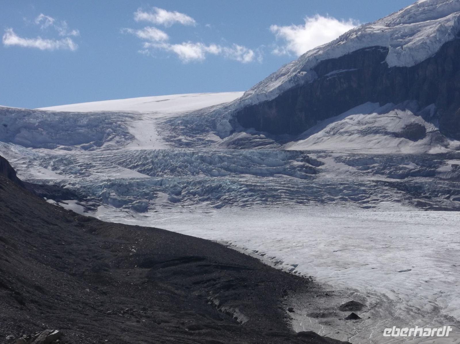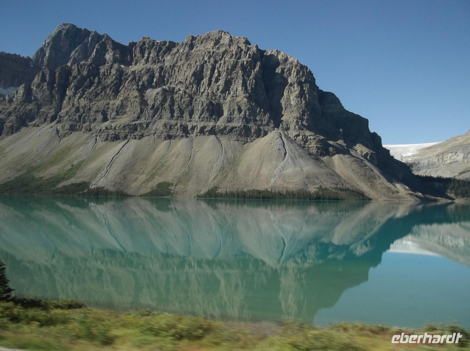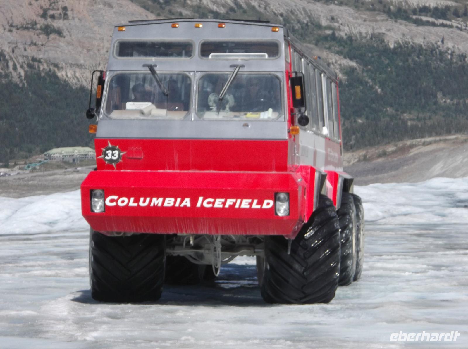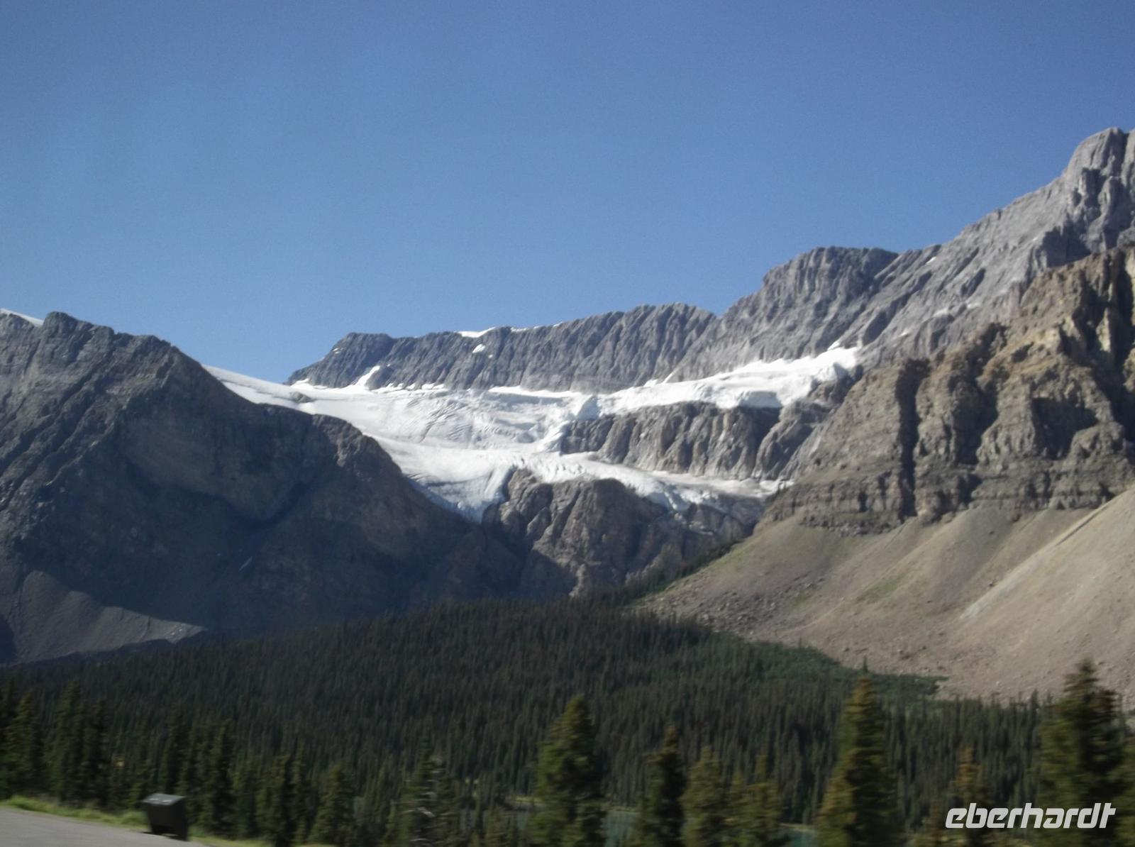 01.09.13: Wir verlassen Banff und begeben uns bei strahlendem Sonnenschein in Richtung Jasper. Unterwegs sichten wir ein Kojotenpaar, das sich scheinbar ungerührt von uns Menschen und dem Bus am Straßenrand aufhält. Auch Wapitis und Maultierhirsche laufen uns über den Weg, naja jetzt fehlen nur noch die etwas größeren Kaliber: Grizzly oder Braunbären müssen her. Warten wir es ab. Immer wieder stehen wir einer faszinierenden Landschaft gegenüber. Eine majestätische Stille breitet sich aus, wunderbare Farbspiele und wir sagen: Das glaubt uns kein Mensch. Die Postkarten lügen wirklich nicht. Ein See ist schöner als der andere, sei es der Bow Lake oder der Lake Peyto. Für den Nachmittag ist ein Ausflug zum Columbia Icefield geplant. Das 325 Quadratkilometer große und bis zu 350 m dicke Eisfeld ist das größte der Rocky Mountains. Alle machen mit bei einer Tour mit dem Schneemobil zum Athabasca Gletscher. Die mit riesigen Reifen ausgestatteten , allradangetriebenen Schneemobile fahren die östliche Seitenmoräne hinauf, legen ca. 1km auf dem Eis zurück, halten unterhalb des Eisfalles an , wo wir aussteigen und auf dem Gletscher spazierengehen können. Danach geht es nach Sunwapta. Vor dem Abendessen machen wir noch einen kurzen Spaziergang zum Sunwapta Wasserfall, quasi gleich um die Ecke von unserer Bugalowanlage und freuen uns auf Spezialitäten vom Grill. Nach dem Essen wird uns Heidi, die sich in der Tierwelt Kanadas bestens auskennt, viel Interessantes vermitteln, zumindest kennen wir am Ende des Vortrags den Unterschied zwischen Grizzly und Braunbär und wissen, wie wir uns zu verhalten haben, sollten wir ihnen von Angesicht zu Angesicht gegenüberstehen. Ein schöner und gelungener Abschluß des Tages.