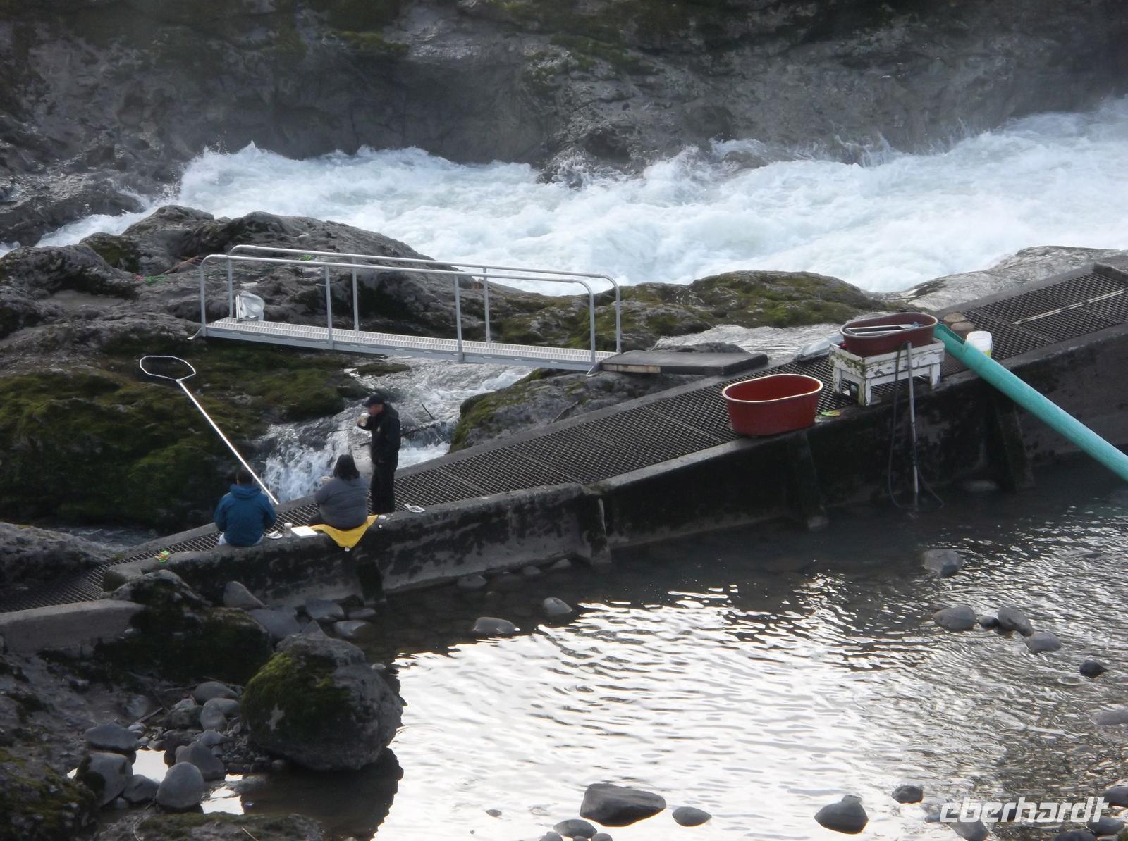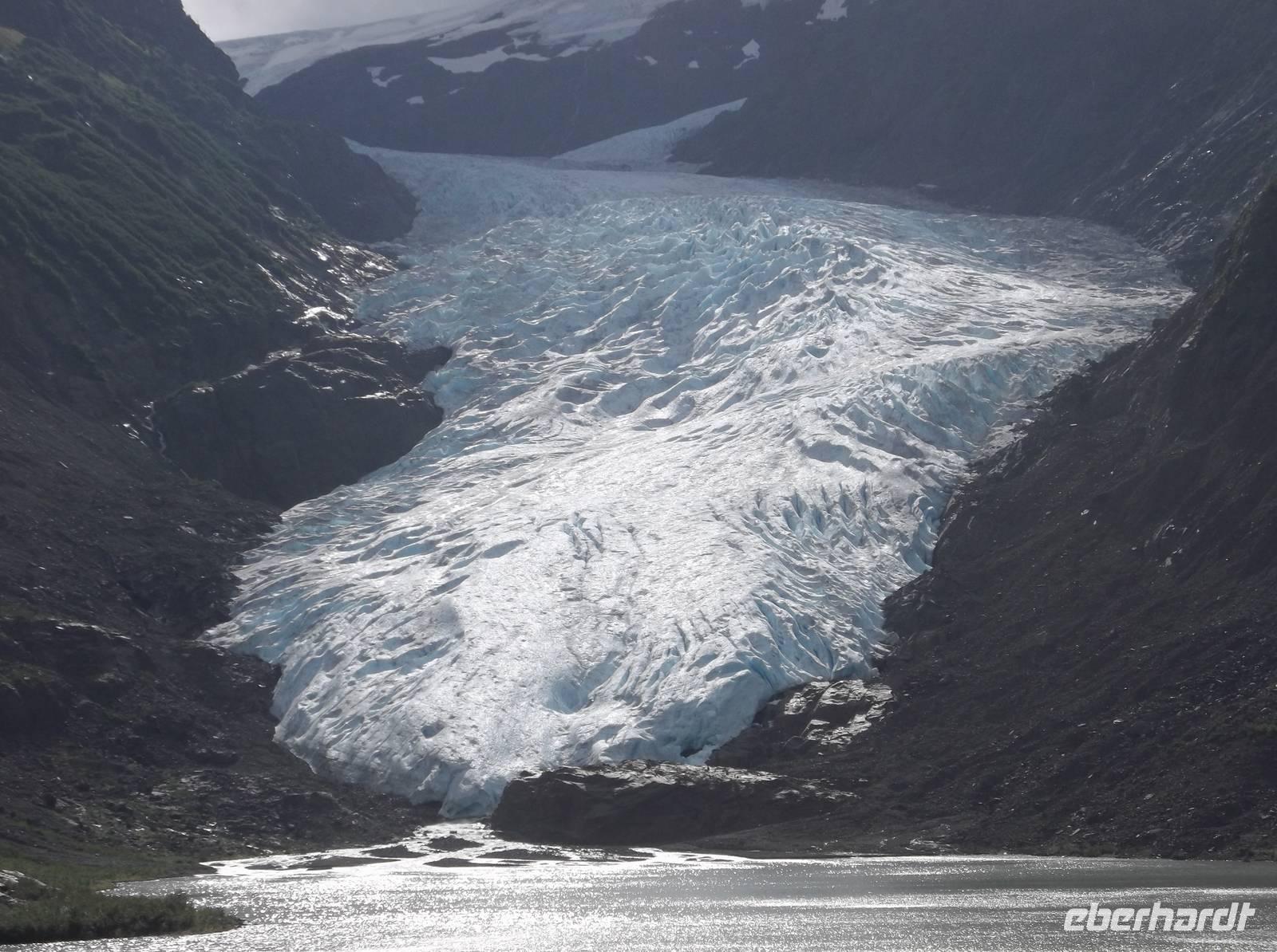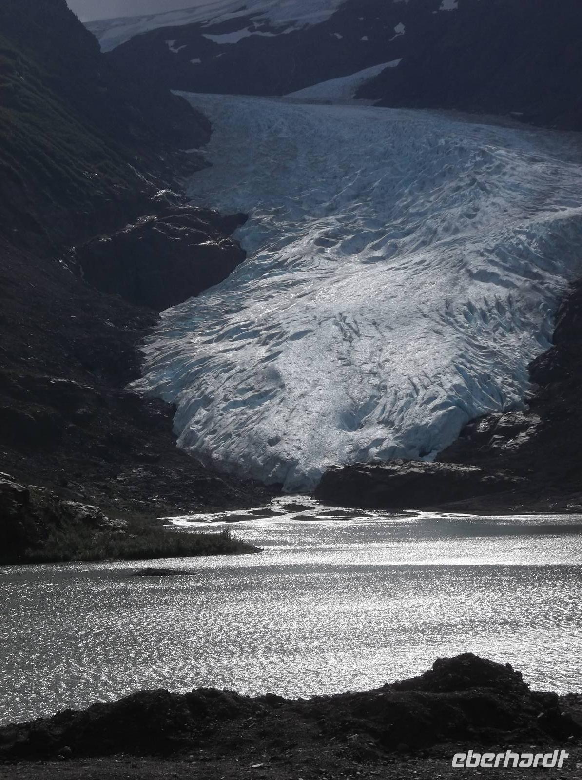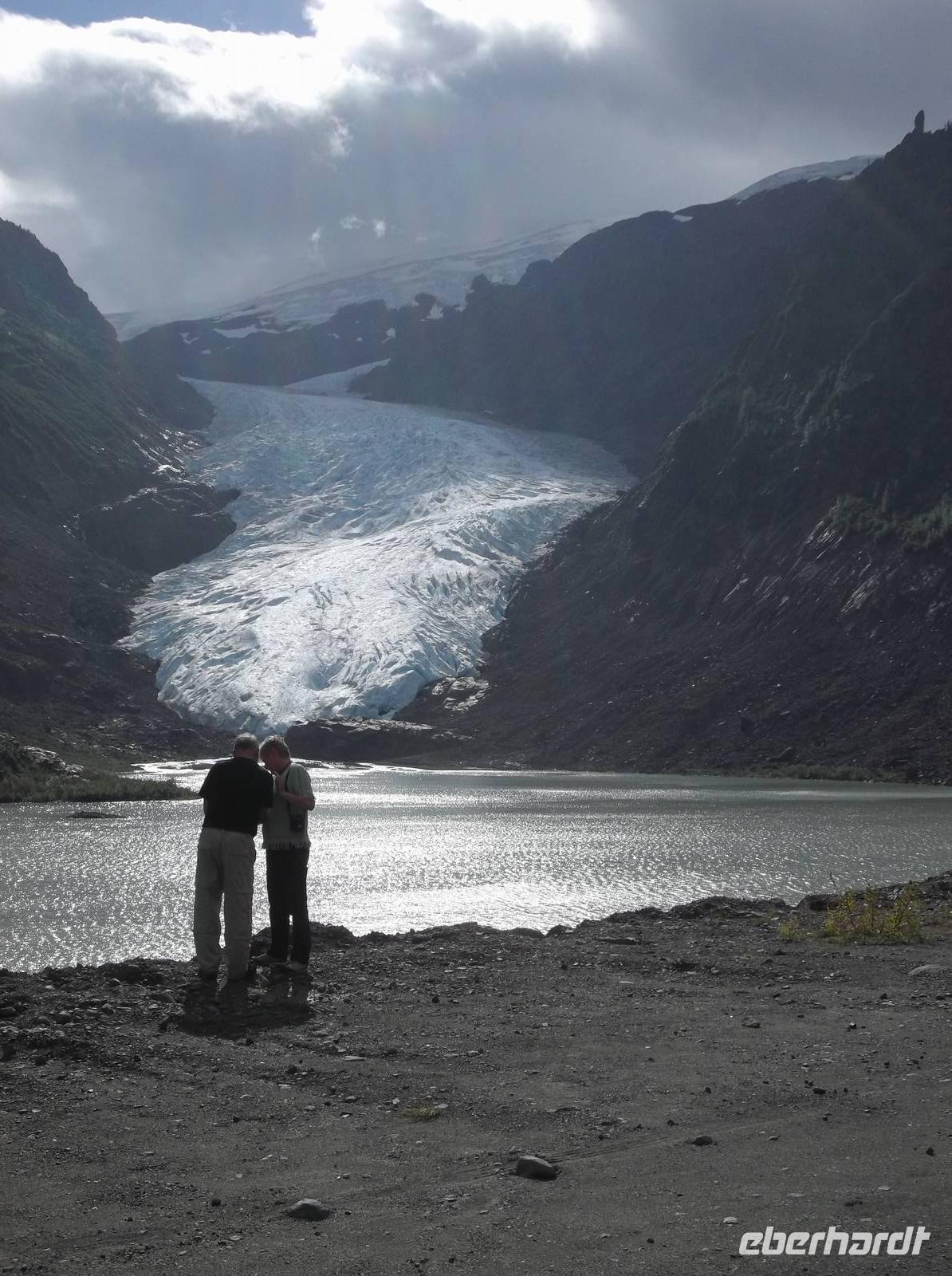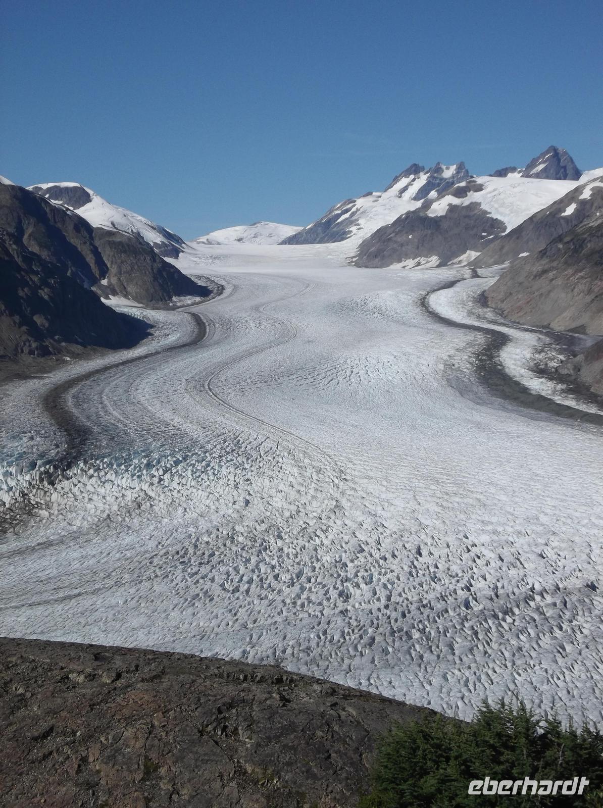 05.09.13: Heute fahren wir nach Stewart, an der Grenze zu Alaska gelegen. Wenn man dem Yellowhead Highway südwärts folgt, gelangt man bald zum Moricetown Canyon mit seinen tosenden Stromschnellen. Hier konnten wir Indianer beobachten, die in althergebrachter Manier die begehrten Fische fangen. Auf unserer Weiterfahrt kommen wir nach Hazelton, wo sich in der Nähe das Indianerdorf Ksan Village befindet, das bei einem traditionellen Siedlungsplatz der Gitskan Indianer eingerichtet wurde. In drei original nachgebauten, ursprünglich jeweils von einem Klan bewohnten Langhäusern erfährt man viel über das Leben und die Traditionen der Indianer und auch über die tiefe Symbolik der kunstvoll geschnitzten Totempfähle. Mit vielen neuen Eindrücken geht es nach Stewart vorbei am Beargletscher, der ab und zu große Eisblöcke in den See poltern läßt. Unterwegs geht es durch eine Szenerie von schroffen, schneebedeckten Gipfeln, Wasserfällen, Seen und Gletschern bis wir in Stewart ankommen.