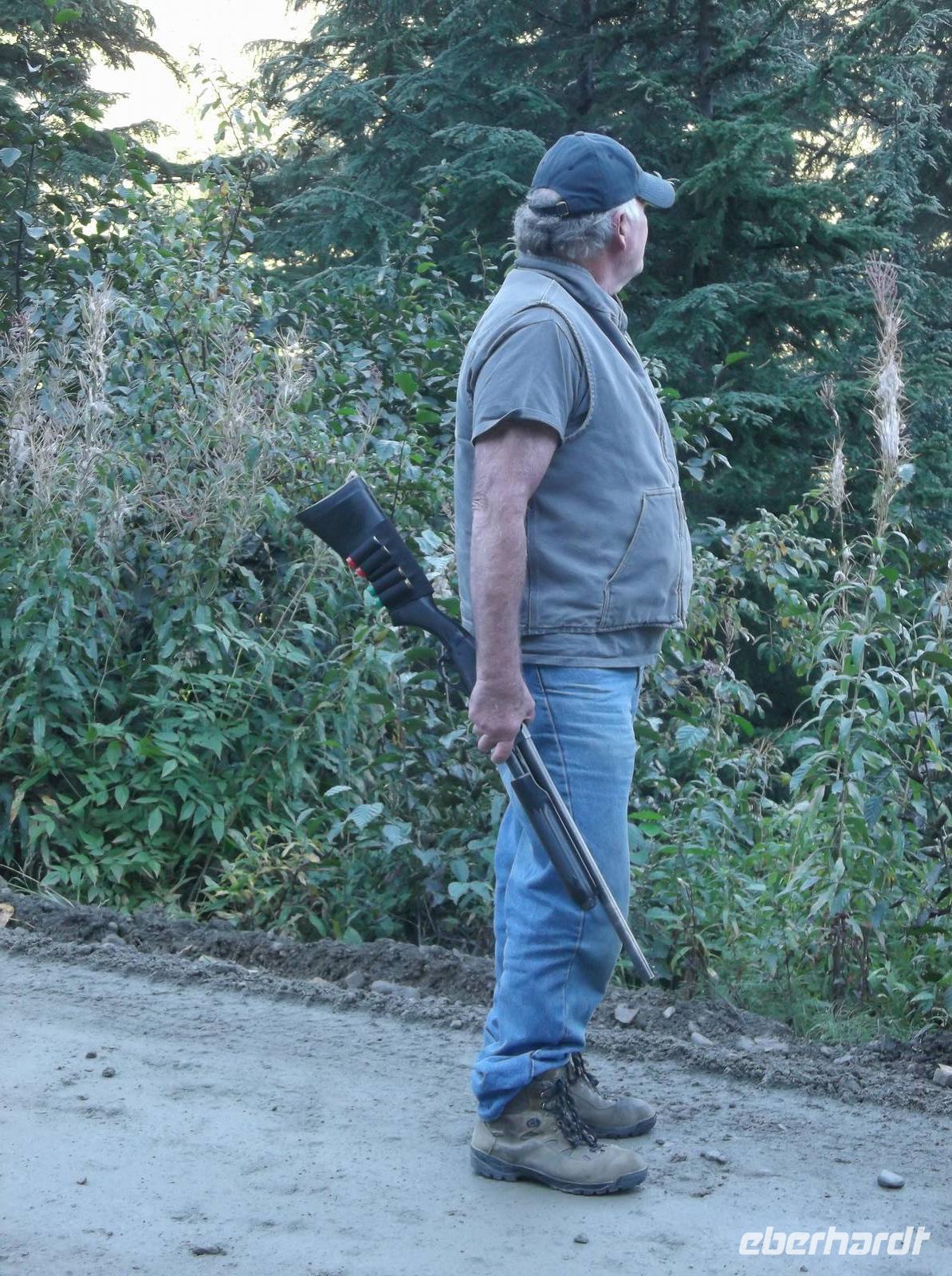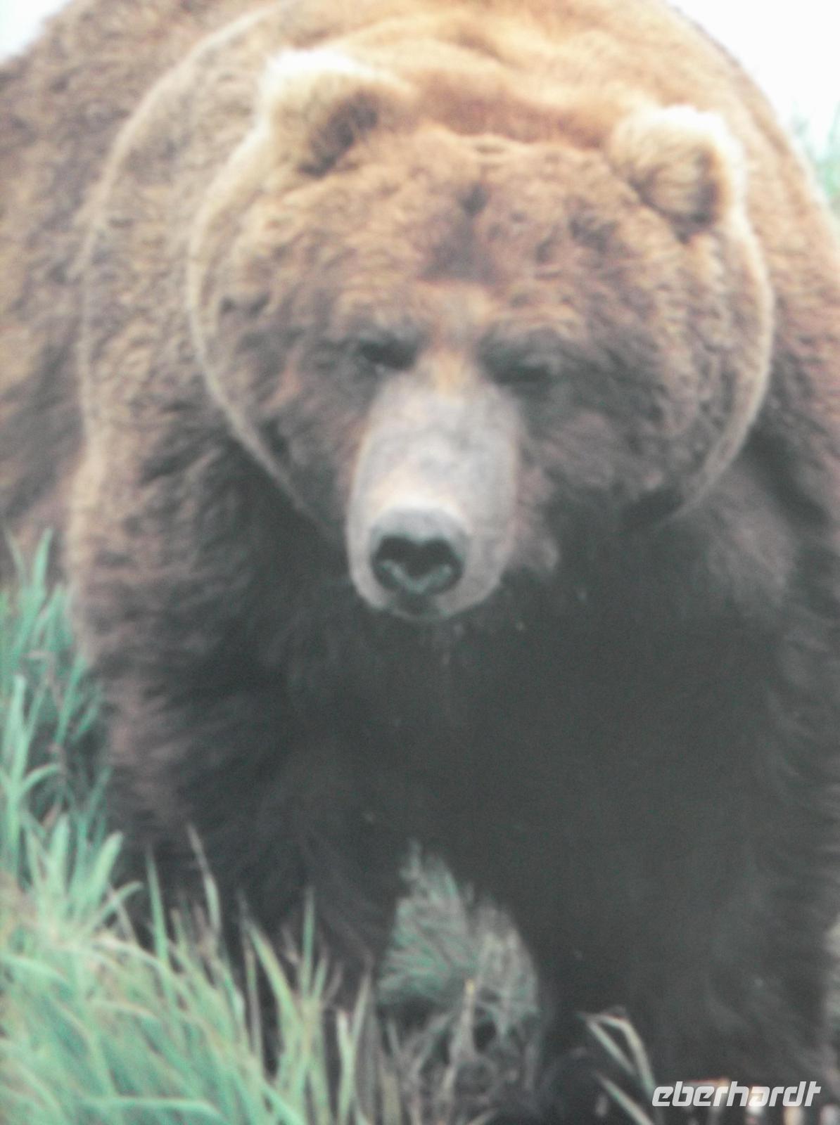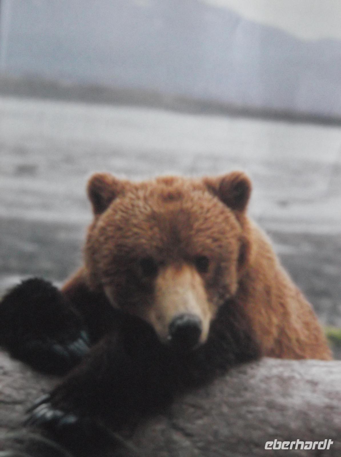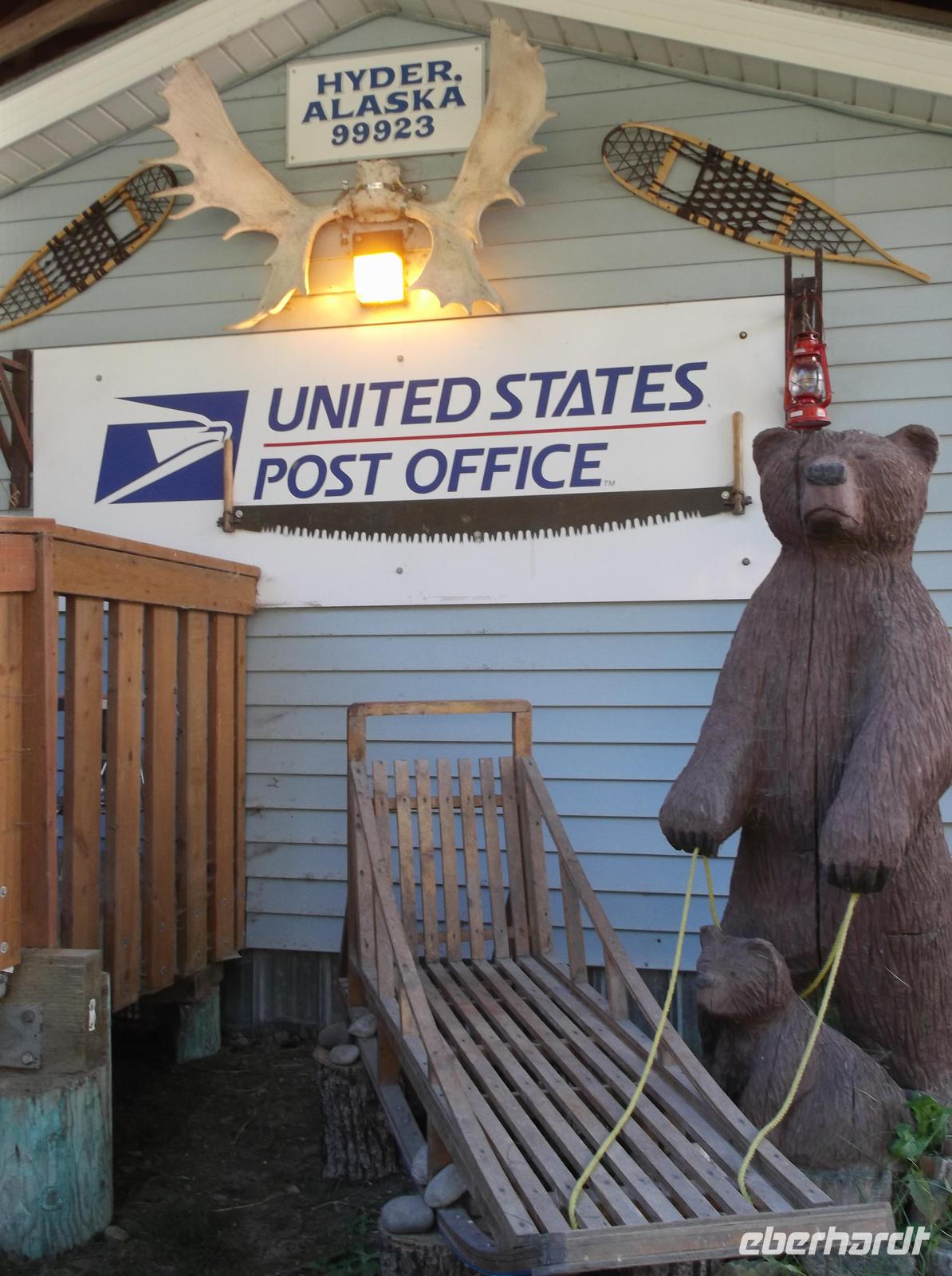 viel Lokalkolorit - der Clou ist ein winziges Postamt , von dem aus man Feriengrüße aus Alaska verschicken kann. Im "Glacier Inn" , einer urigen Kneipe, bekommen alle einen sogenannten "Snake bite". Das ist ein hochprozentiger Schnaps , der ohne mit der Wimper zu zucken, in einem Zug ausgetrunken werden muß. Dann ist man hyderized und alaskatauglich. Über die offene Grenze zwischen beiden Ländern gibt es kaum Grenzformalitäten , doch selbstverständlich gelten unterschiedliche Gesetzgebungen und Sperrstunden. Am frühen Abend starten wir von Stewart aus erneut zum Fish Creek und wollen endlich Bären sehen. Langsam setzt die Dämmerung ein, die Hoffnung stirbt wie so oft zuletzt, aber ein Bär läßt sich trotzdem nicht blicken.