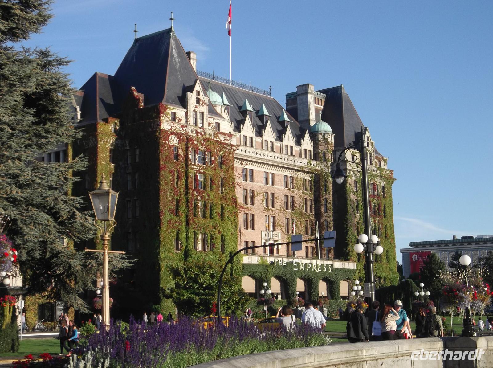 09.09.13: Bevor wir nach Vancouver reisen, statten wir der Kleinstadt Chemainus noch einen Besuch ab. Als Ende der 1970iger Jahre das örtliche Sägewerk schloß waren viele Einwohner arbeitslos. Aber das malerische Chemainus avancierte durch riesige, über die Stadt verteilte Wandbilder, sogenannte Murals, die die Geschichte der Region zeigen, zur echten Attraktion. Einheimische Künstler setzten das Projekt fort. Heute kann man über 40 Wandbilder bestaunen, die sich thematisch an begebenheiten der Stadtgeschichte orientieren. Die überlebensgroßen Porträts von Ureinwohnern , Pionieren und Holzfällern haben der Stadt neues Leben eingehaucht. Am Nachmittag erreichen wir Victoria. bei einer orientierenden Stadtrundfahrt lernen wir die wichtigsten Sehenswürdigkeiten kennen und jeder kann im Anschluß das überschaubare Zentrum auch ohne weiteres allein zu Fuß erkunden. Victoria, eine ruhige, attraktive Stadt, ist bekannt für ihr altmodisches Flair, das durch die sommerliche Blumenpracht, die Laternen, Balkone und Schaufenster noch mehr zur Geltung kommt. Der ehemalige Pelzhandelsposten der Hudson's Bay Company wurde im Jahr 1843 von James Douglas gegründet und erlebte während des Goldrausches turbulente Zeiten, als Tausende Schürfer in über 60 Saloons am Market Square zechten. Victoria wurde Hauptstadt von British Columbiajedoch ist sie bald von Vancouver überholt worden.Dennoch blieb Victoria das politische Zentrum der Provinz und ist gleichermaßen bei Besuchern und Einheimischen sehr beliebt.