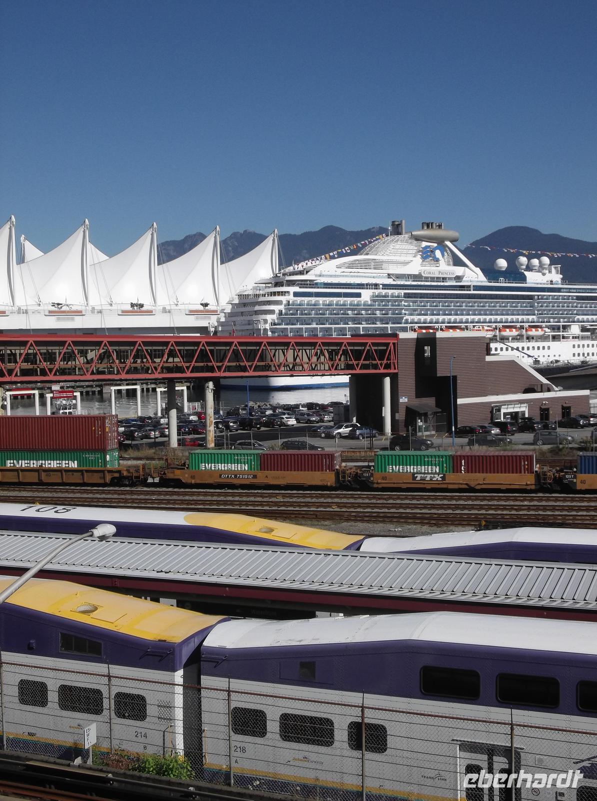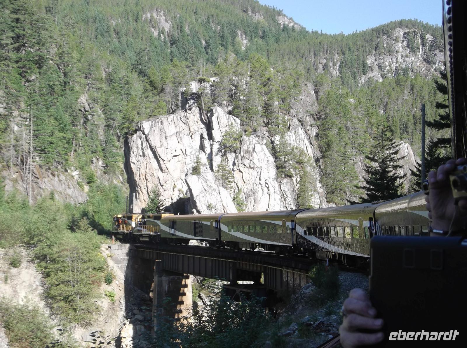 12.09.13: Bald neigt sich unsere Reise dem Ende. Heute sind wir an Bord des legendären Zuges "Rocky Mountaineer", um die Strecke Vancouver-Whistler durch malerische Landschaften und touristisch besonders interessanten Orten zurückzulegen.Whistler, ca. 120 km nördlich von Vancouver entfernt , befindet sich in dem grandiosen Hochgebirgslandschaft der Coast Mountains und gehört zu den bekanntesten Wintersportorten Nordamerikas. Hier wurden 2010 die olympischen Wettbewerbe in den Disziplinen Ski alpin, Ski nordisch, Skispringen, Biathlon, Bob und Rodeln ausgetragen. Das Erscheinungsbild von Whistler ist das eines alpenländischen Feriendorfes. Der Ort wurde generalstabsmäßig als Wintersport Resort geplant und erschlossen. Eine Attraktion der besonderen Art ist die Fahrt mit der Peak2Peak Gondola, einer Kabinenseilbahn, die den Blackcomb Mountain mit dem Whistler Mountain verbindet.