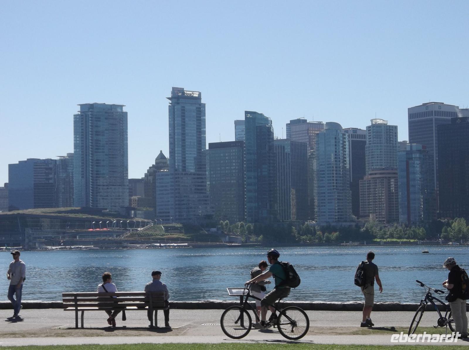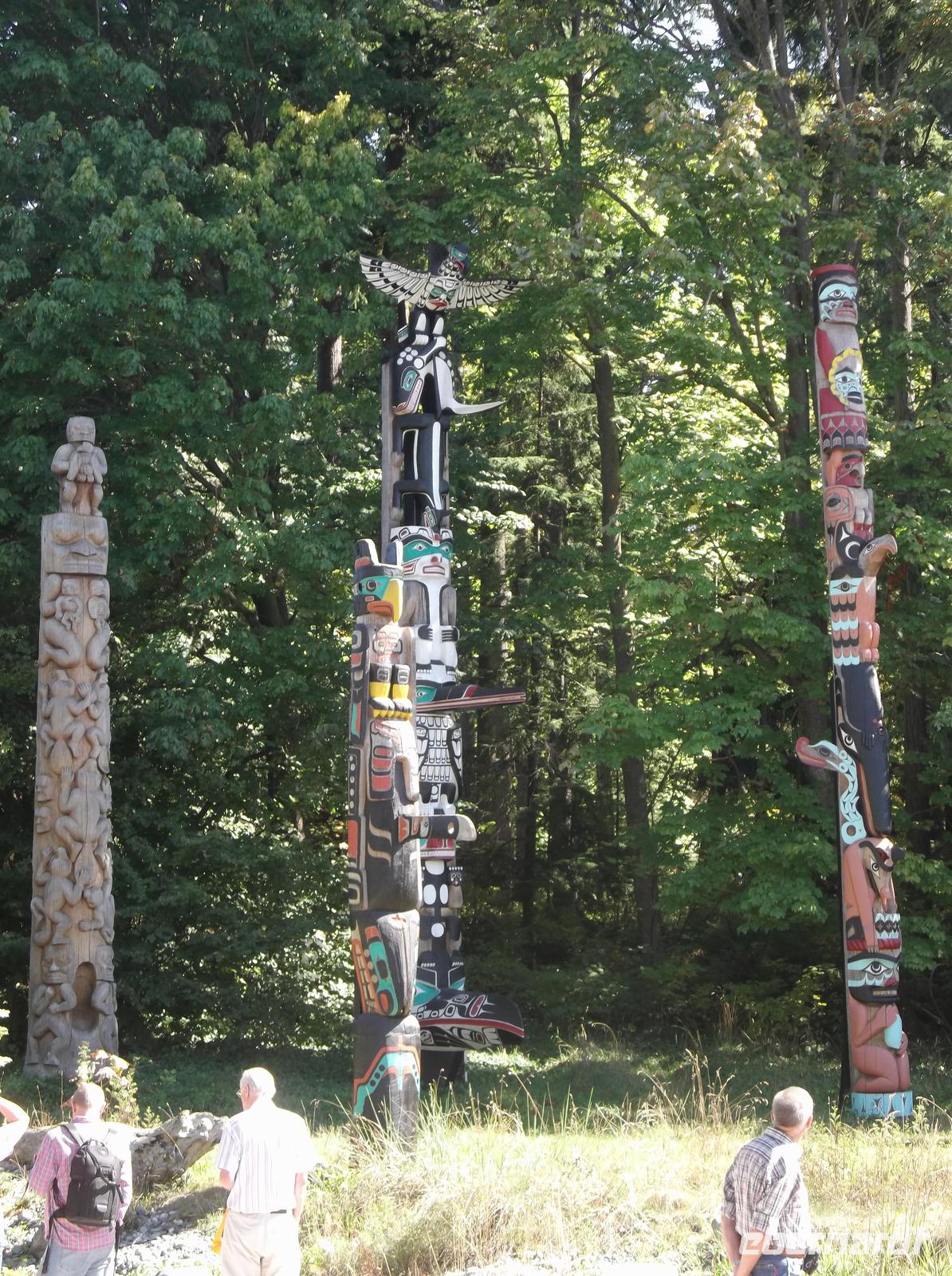 11.09.13: Bei einer Stadtrundfahrt durch die Metropole Vancouver können wir uns ein Bild davon machen, warum die Stadt so viel Flair hat und Charme ausstrahlt. Auf Granville Island herrscht buntes Künstlertreiben in den umgebauten Lagerhallen hinter den hausbooten. Ein grünes Juwel ist unbestritten der Stanley Park, eine weitgehend naturbelassene Anlage mit schönem alten Baumbestand. Die Totempfähle im Osten des Parks zählen zu Vancouvers beliebtesten Fotomotiven. Vancouvers ältester Stadtteil ist Gastown mit einer reizenden Mischung aus Antiqitäten- und Souvenirgeschäften, Kunstgalerien und Restaurants. Die historischen Straßenzüge wurden Anfang der 70er Jahre vor der Abrißbirne gerettet, restauriert und unter Denkmalschutz gestellt. Gastown's vielfotografiertes Wahrzeichen ist die Steam Clock, die zur vollen Stunde Dampf ausstößt und im Viertelstundentakt pfeift. Östlich an Gastown schließt sich Vancouvers Chinatown an, Kanadas größtes und vielleicht authentischstes Chinesenviertel, dessen Entstehung auf die Einwanderung von chinesischen Eisenbahnarbeitern des 19.Jahrhunderts zurückgeht. Vancouver ist einfach eine Stadt mit Niveau.