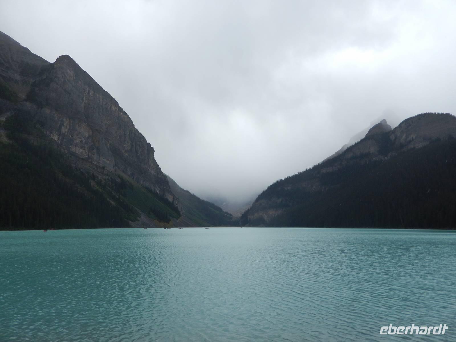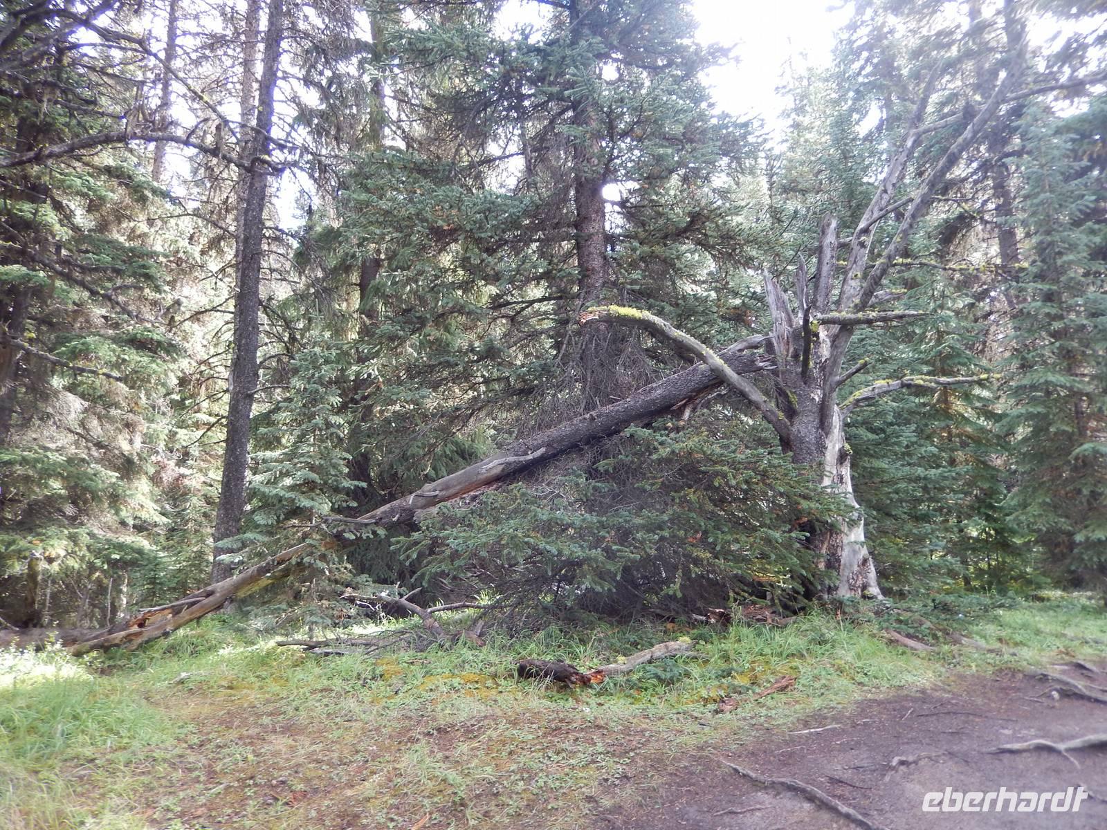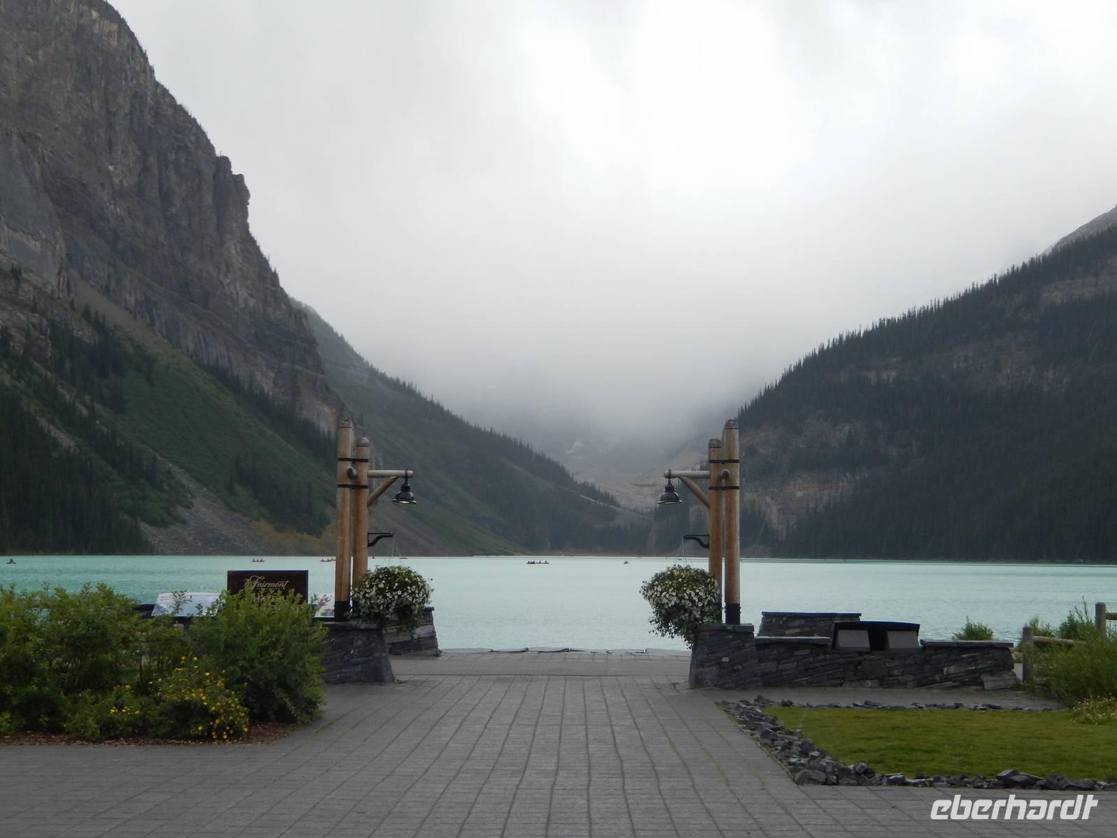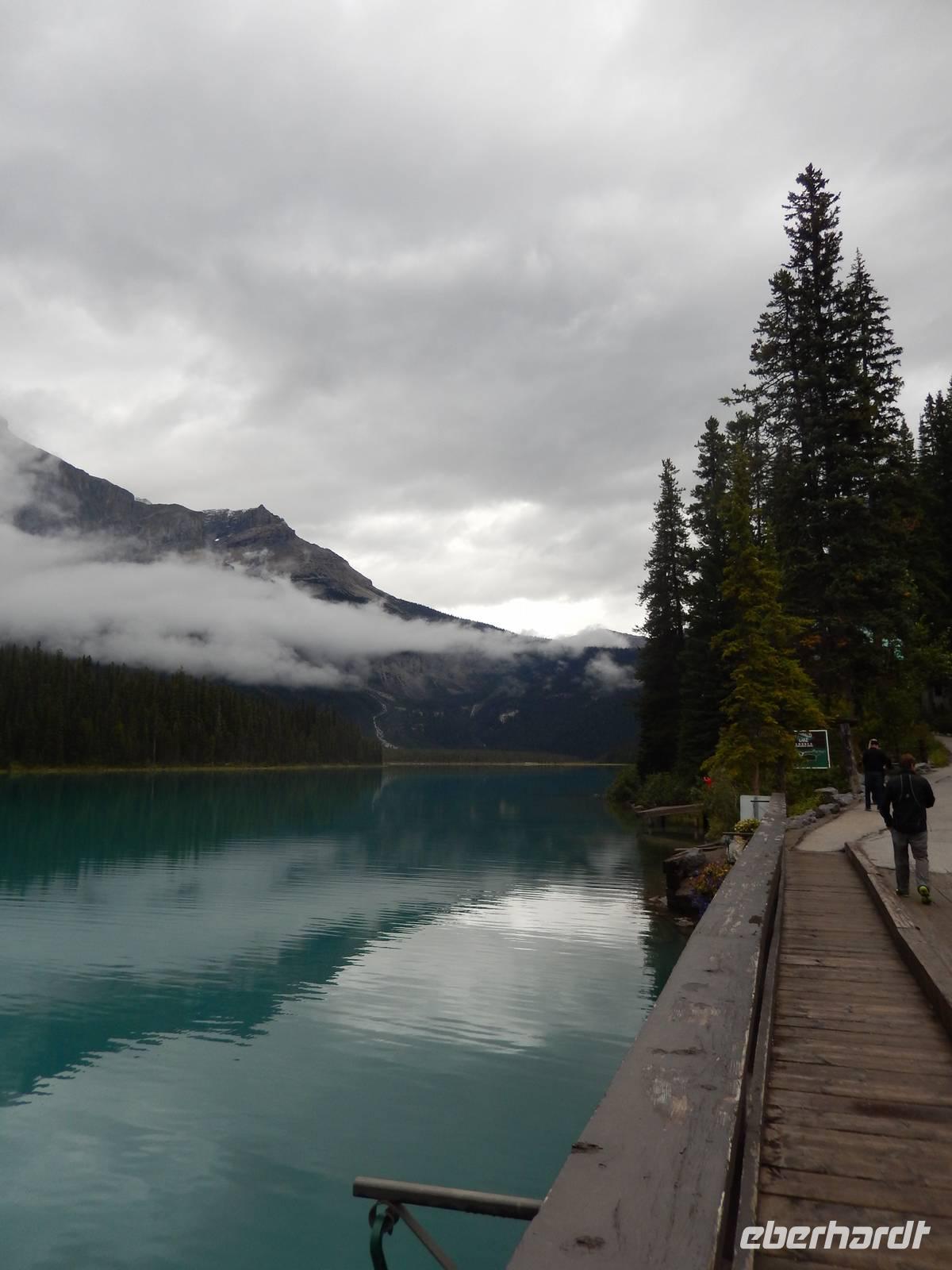 Nach einem reichhaltigen kanadischen Frühstück starteten wir heute mit leichten Jetjag-Erscheinungen zum ersten Tagesausflug. Wir legten einen Stopp am Castle Mountain ein, einem gewaltigen Bergmassiv, dessen höchster Punkt - Eisenhower Peak genannt - 2728 Meter in die Höhe ragt. Kurz darauf besuchten wir die sogenannten Spiraltunnel, von deren Aussichtspunkt aus man die langen Güterzüge bei der Durchfahrt beobachten kann. Dies konnten wir leider nicht, da kein Zug durch das Tunnelsystem unterwegs war, aber Schautafeln und Modelle zeigten uns trotzdem anschaulich, wie die Gleise unterirdisch angelegt sind, um bei dem starken Gefälle am Hang durch die künstliche Streckenverlängerung das Unfallrisiko zu mindern. Weiter ging die Fahrt zu einem kurzen Aufenthalt am Emerald Lake mit seiner wunderschönen smaragdgrünen Farbe. Wir spazierten individuell am Ufer entlang und genossen die frische Bergluft. Als nächstes sahen wir die eindrucksvolle Natural Bridge am Kicking Horse River. Durch natürliche Ausspülung entstand diese natürliche Brücke und zieht viele Besucher an. Damit wir nicht einrosten ging es gleich weiter zum nächsten Stopp an den Takakkaw Falls, einem imposantem Wasserfall inmitten romantisch-wilder Natur. Zur Mittagspause machten wir schließlich Halt am Schmelzwassersee Lake Louise, trotz wolkigem Wetter konnten wir sogar kurz einen Blick auf den Victoria Gletscher erhaschen, der ihn speist. Im glamourösen Grandhotel Chateau Lake Louise aus dem Jahr 1894 konnte jeder für sich etwas Essen gehen, die luxuriöse Anlage besichtigen oder gemütlich am Seeufer entlang spazieren - und das Bisschen Regen verdarb uns sicher auch nicht die Laune. Auf dem Rückweg entdeckten wir alte indianische Geister, die sogenannten „Hoodoos", helle, schmal aufragende Kalksteinfelsen, die durch Erosion eine ganz eigene Form erhielten und den alten Naturvölkern vielleicht ein wenig Angst einjagten. Außerdem genossen wir noch kurz den Ausblick auf das Banff Springs Hotel, ebenfalls aus dem 19. Jahrhundert, welches als Luxusdomizil für die besonders wohlhabenden Touristen dient. Zurück in Banff konnte jeder (trotz Sonntag) den verbleibenden Nachmittag für eigene Erkundungen auf der belebten Einkaufsstraße nutzen oder sich im Supermarkt ein paar Snacks für den nächsten Tag besorgen. Zum Abendessen fanden wir uns schließlich im Restaurant „Ticino" ein ließen den Abend gemütlich ausklingen.
