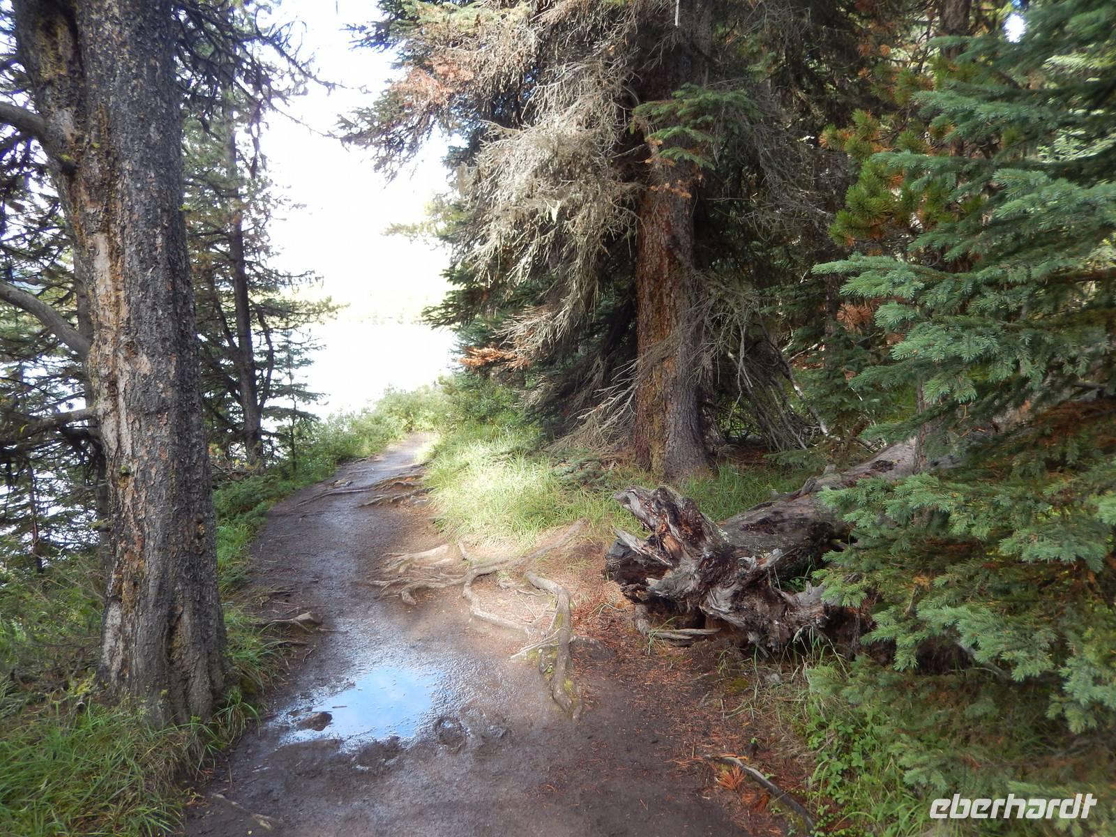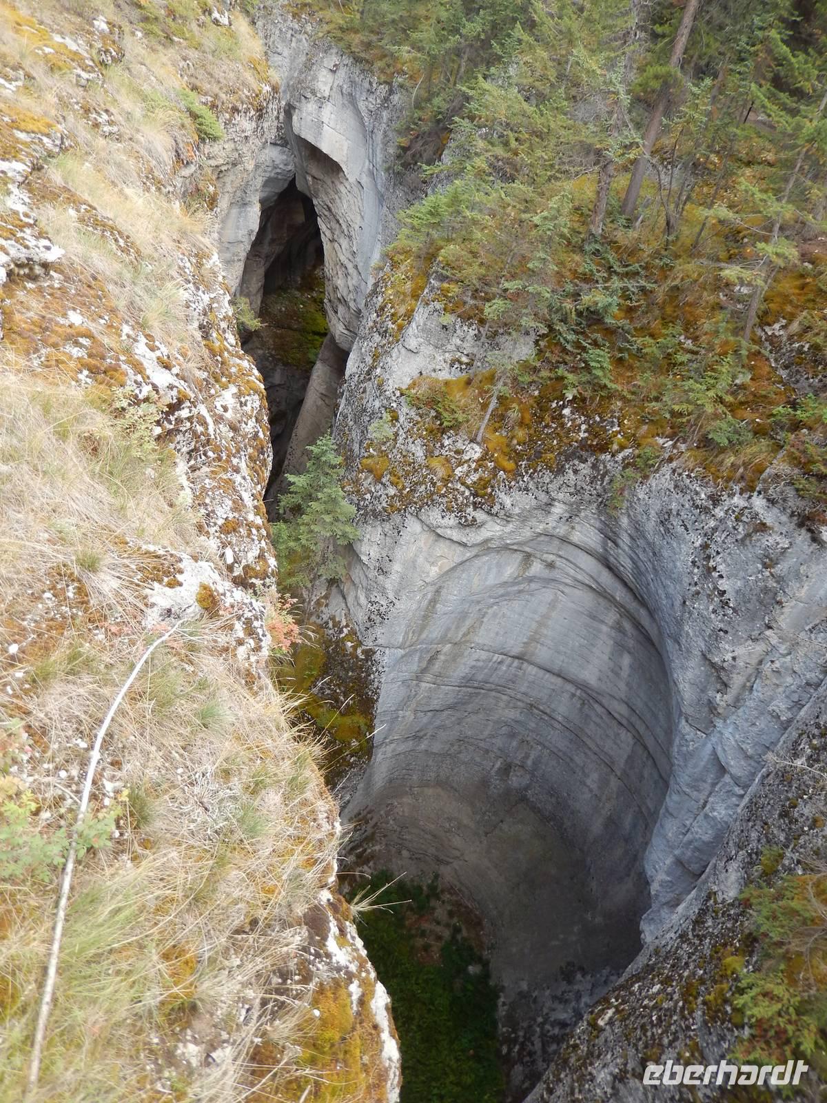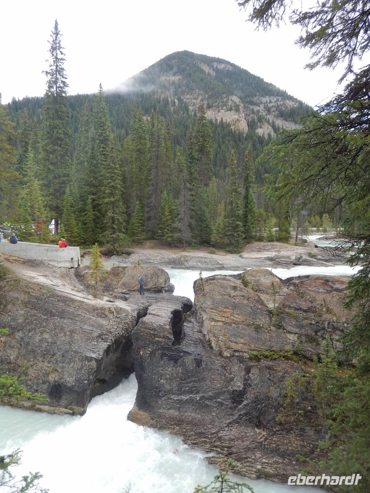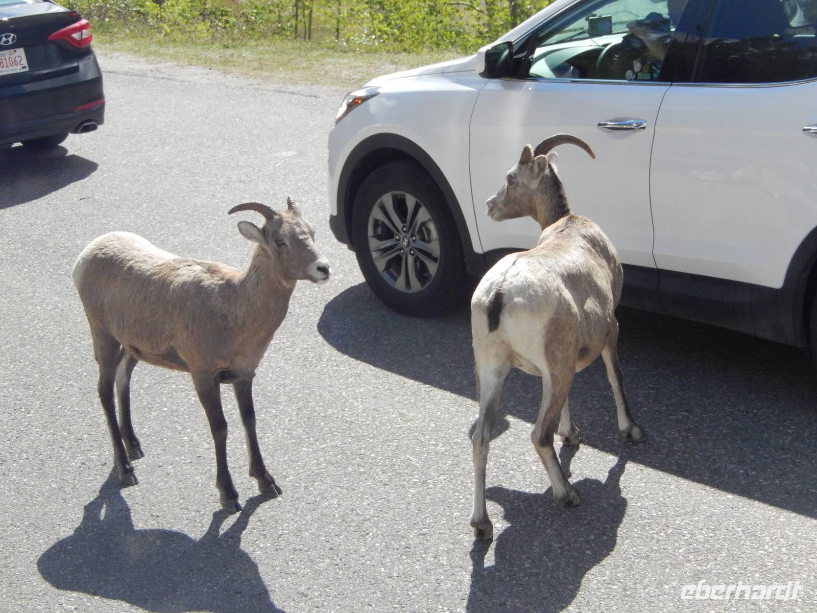 Auf dem Weg zum über 40 Kilometer langen Maligne Lake machten wir einen Zwischenstopp am Medicine Lake, der je nach Jahreszeit teilweise völlig im Erdreich versickert oder wieder vollläuft. Bei der Weiterfahrt konnten wir gut die vielen Tierspuren im flachen Wasser erkennen und entdeckten sogar einige Dickhornschafe an der Straße. Am Maligne Lake angekommen unternahmen wir einen gemächlichen Spaziergang am Ufer entlang, da das Wetter für eine Bootsfahrt zu wechselhaft war und eine schöne Aussicht damit nicht garantiert. Im Besucherzentrum direkt am See stärkten wir uns mit Suppe oder einem Sandwich und fuhren schließlich die gleiche Strecke zurück zu einem Abstecher an dem Maligne Canyon, eine eindrucksvolle Felsschlucht mit sprudelnden Wasserfällen, die man mithilfe mehrer Brücken überqueren und besichtigen kann. Weiter ging die Heimfahrt mit einer Pause in Jasper, wo wir noch etwas Zeit zum Bummeln hatten. Am späten Nachmittag erreichten wir wieder unsere Bungalow-Lodge in der Nähe der Sunwapta Falls.