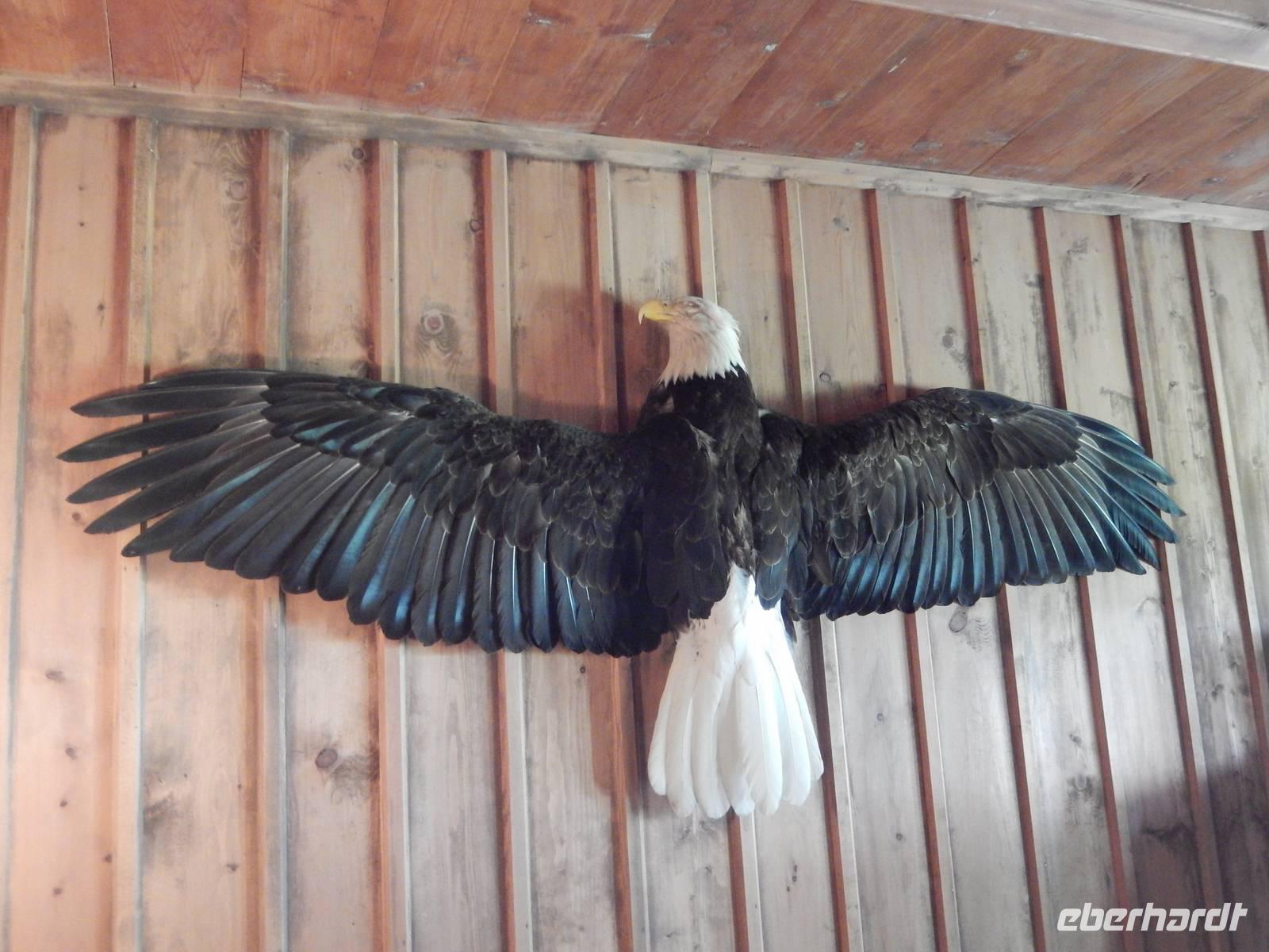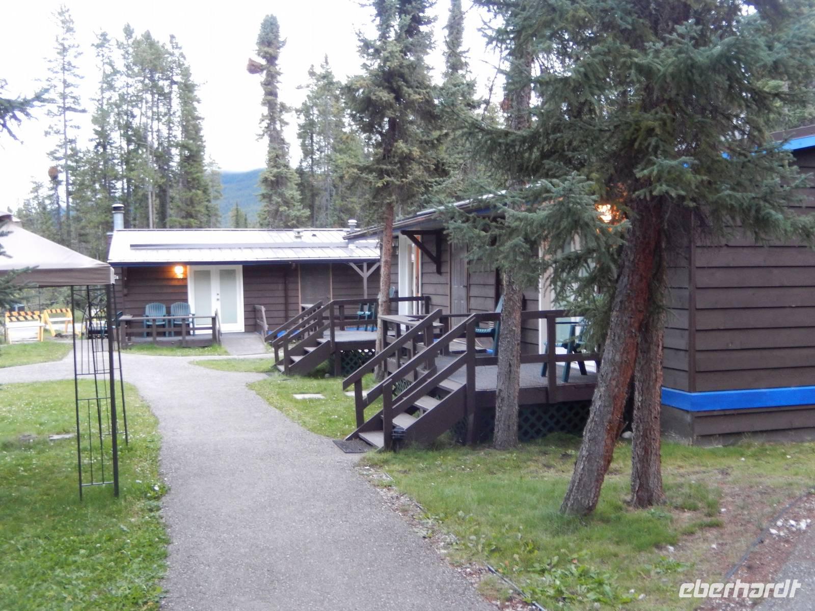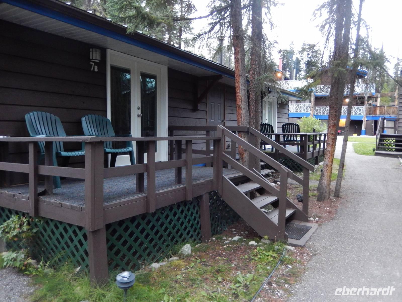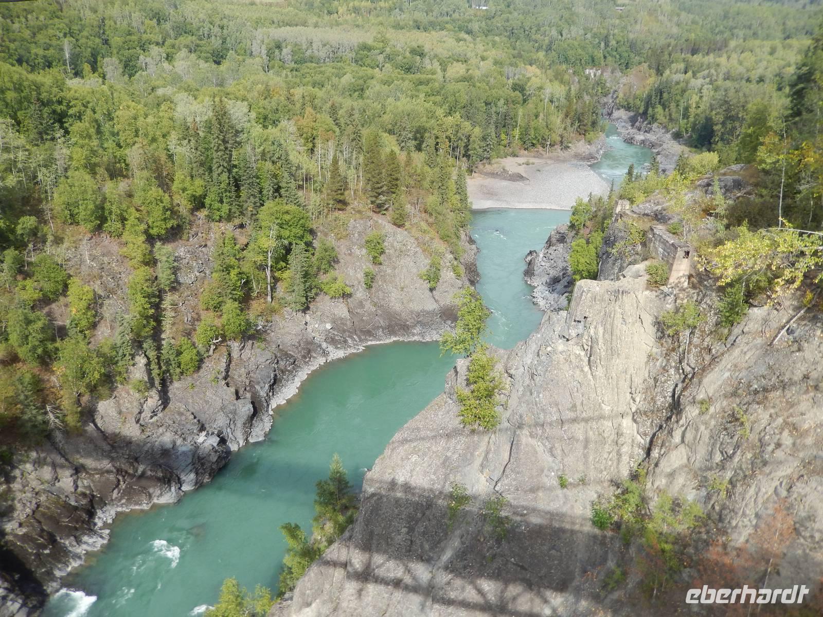 Auf nach Alaska! Oder zumindest beinahe, denn heute würden wir Stewart, direkt an der Grenze liegend, erreichen. Zuerst machten wir aber unseren routinierten vormittäglichen Halt, diesmal am tosenden Moricetown Canyon, wo wir einheimischen Fischern beim Lachse fangen zuschauen konnten. Danach erreichten wir das originalgetreu nachgebaute Indianerdorf Ksan in Hazelton. Bei einer Führung durch die verschiedenen Langhäuser erfuhren wir viel über die Kultur der alten Indianderstämme des Gitskan-Volkes. Wir bestaunten die zahlreichen handgemachten Alltagsgegenstände und die kunstvolle Ausschmückung innerhalb der Häuser. Eine echte Indianerin zeigte uns schließlich die traditionellen Tanzkostüme und sang und tanzte sogar für uns. Weiterhin konnten wir die gewaltigen Totempfähle außerhalb der Gebäude bewundern und einem Holzschnitzer bei der Arbeit über die Schulter schauen. Anschließend setzten wir unseren Weg nach Stewart fort und überquerten zu Fuß die „durchsichtige" Hängebrücke über dem 80 Meter tiefen Hagwiglet Canyon, deren Boden nur aus Stahlgeflecht besteht, durch das man in die Tiefe schauen kann. Wir stoppten an einer kleinen Tankstelle, damit Goran unseren Bus füttern konnte. Unterdessen betrachteten wir einmal aus der Nähe die mannshohen Pick up Trucks und SUVs der Kanadier, die in dieser Landschaft das übliche PKW-Modell zu sein scheinen. Wir entdeckten einen weiteren Schwarzbären, der vor uns die Straße überquerte und erreichten kurz vor unserer heutigen Endstation noch den Bear-Gletscher, der in der Abendsonne glitzerte. Zum Abschluss des Tages wurde uns in unserem Hotel in Stewart zum Abendessen je ein gegrilltes halbes Hähnchen serviert, das nicht nur gewaltig sondern auch sehr lecker war. Rund und satt fielen wir in unsere Betten.