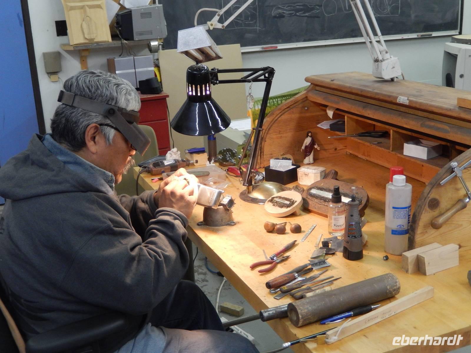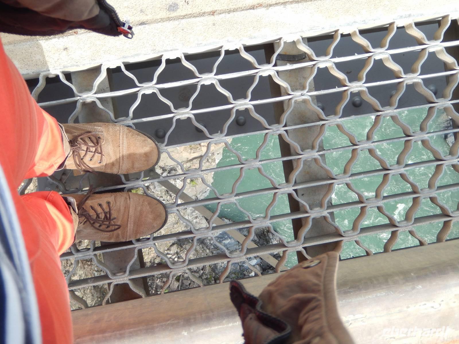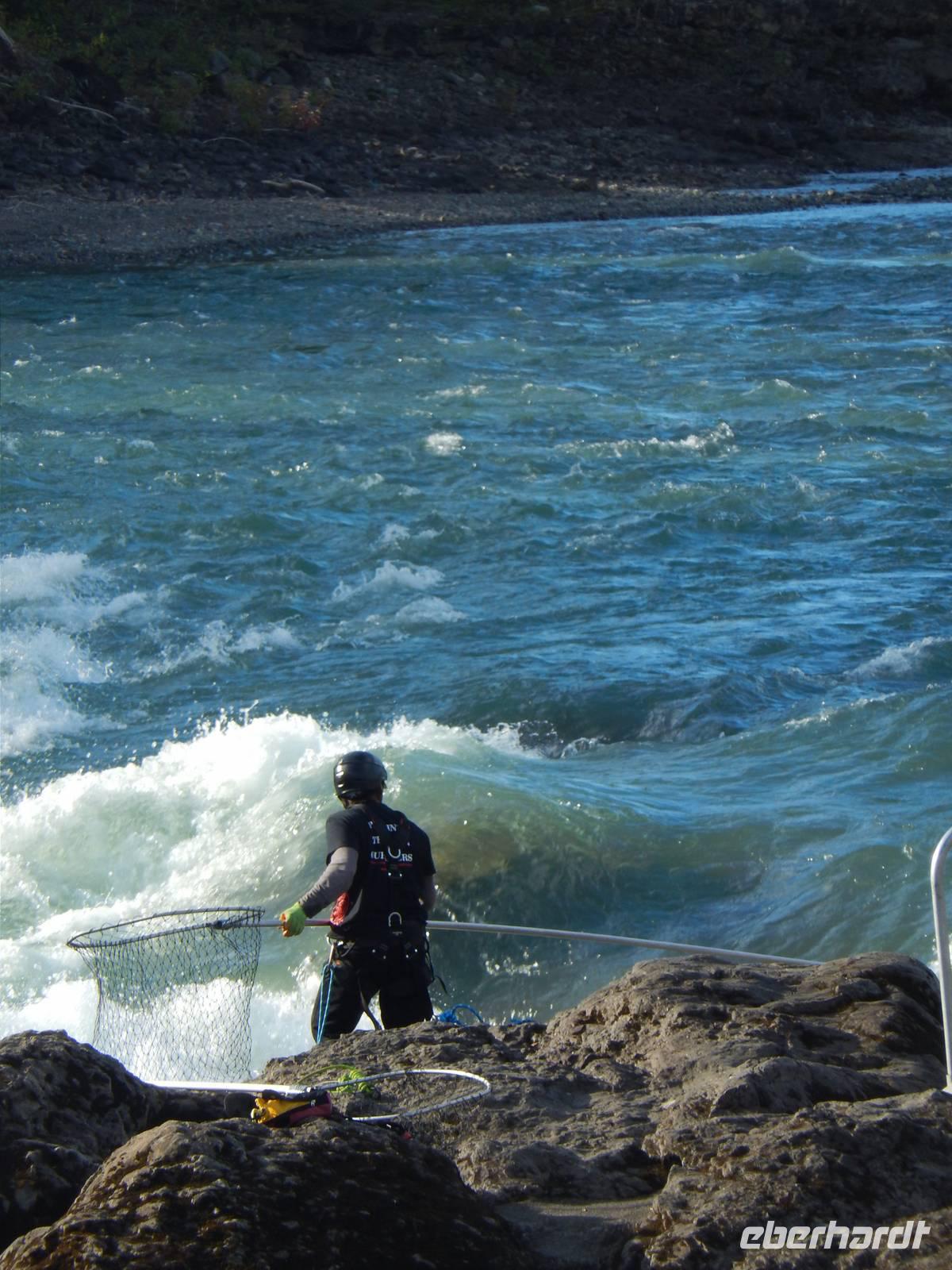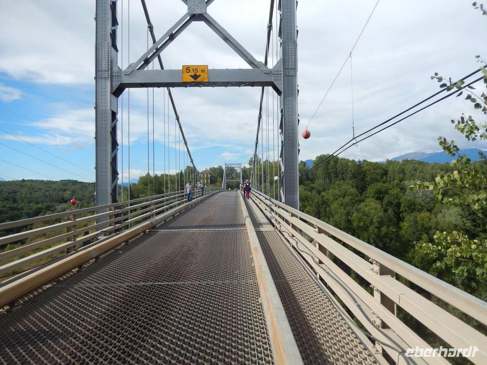Auf nach Alaska! Oder zumindest beinahe, denn heute würden wir Stewart, direkt an der Grenze liegend, erreichen. Zuerst machten wir aber unseren routinierten vormittäglichen Halt, diesmal am tosenden Moricetown Canyon, wo wir einheimischen Fischern beim Lachse fangen zuschauen konnten. Danach erreichten wir das originalgetreu nachgebaute Indianerdorf Ksan in Hazelton. Bei einer Führung durch die verschiedenen Langhäuser erfuhren wir viel über die Kultur der alten Indianderstämme des Gitskan-Volkes. Wir bestaunten die zahlreichen handgemachten Alltagsgegenstände und die kunstvolle Ausschmückung innerhalb der Häuser. Eine echte Indianerin zeigte uns schließlich die traditionellen Tanzkostüme und sang und tanzte sogar für uns. Weiterhin konnten wir die gewaltigen Totempfähle außerhalb der Gebäude bewundern und einem Holzschnitzer bei der Arbeit über die Schulter schauen. Anschließend setzten wir unseren Weg nach Stewart fort und überquerten zu Fuß die „durchsichtige" Hängebrücke über dem 80 Meter tiefen Hagwiglet Canyon, deren Boden nur aus Stahlgeflecht besteht, durch das man in die Tiefe schauen kann. Wir stoppten an einer kleinen Tankstelle, damit Goran unseren Bus füttern konnte. Unterdessen betrachteten wir einmal aus der Nähe die mannshohen Pick up Trucks und SUVs der Kanadier, die in dieser Landschaft das übliche PKW-Modell zu sein scheinen. Wir entdeckten einen weiteren Schwarzbären, der vor uns die Straße überquerte und erreichten kurz vor unserer heutigen Endstation noch den Bear-Gletscher, der in der Abendsonne glitzerte. Zum Abschluss des Tages wurde uns in unserem Hotel in Stewart zum Abendessen je ein gegrilltes halbes Hähnchen serviert, das nicht nur gewaltig sondern auch sehr lecker war. Rund und satt fielen wir in unsere Betten.