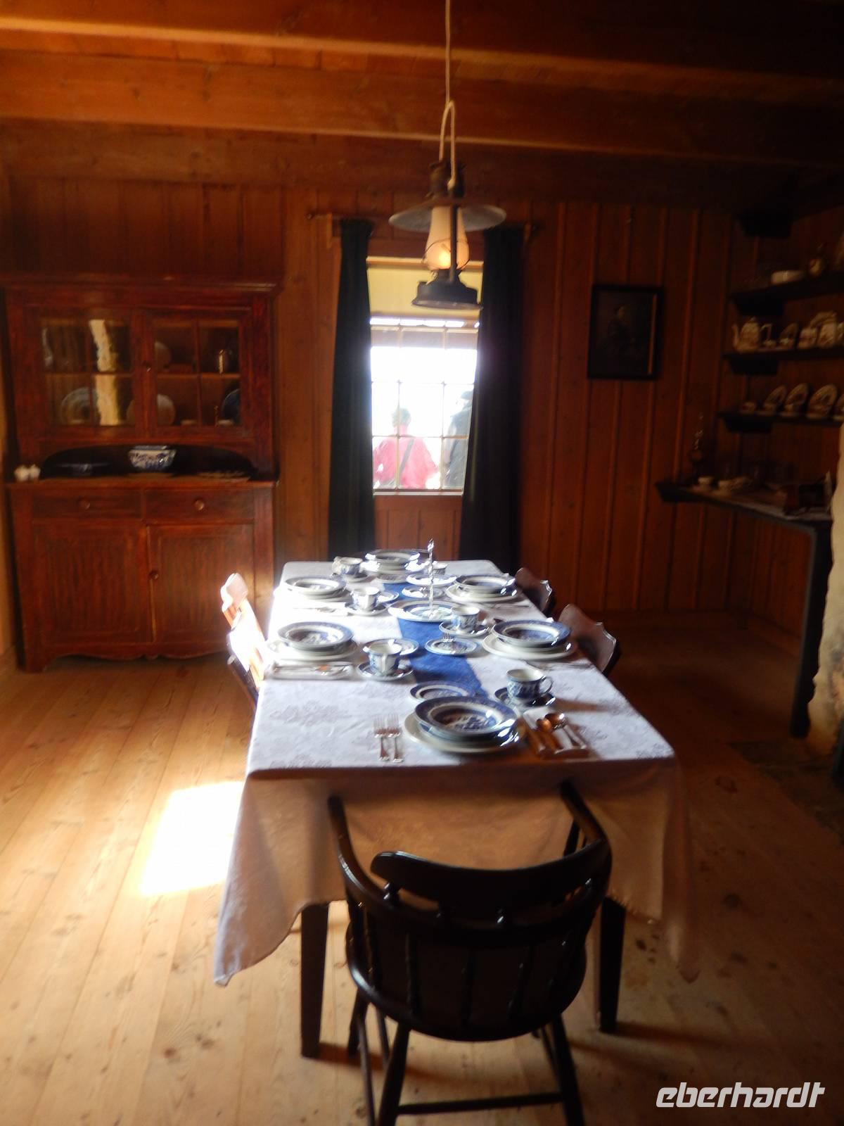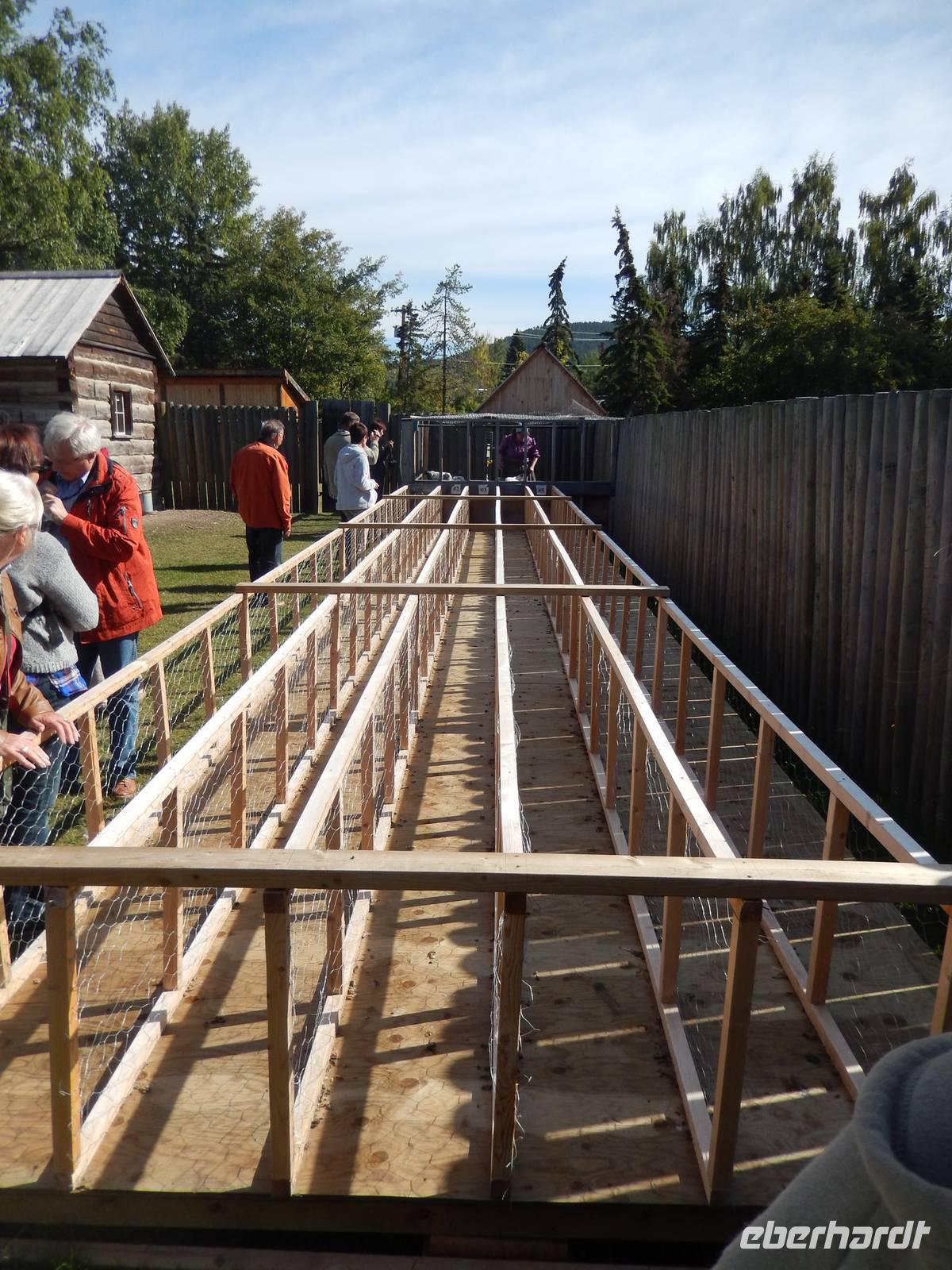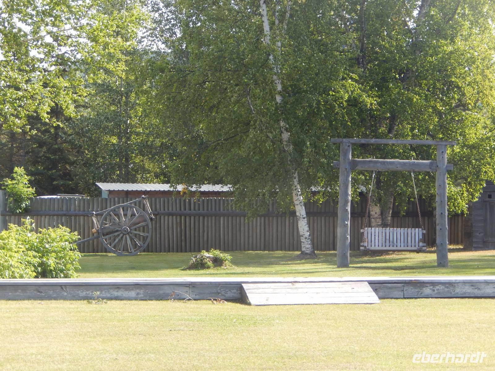 Nach einer Zwischenübernachtung in Prince George ging es heute weiter in Richtung Norden, nämlich in das kleine Städchen Smithers. Doch auf dem weg dorthin hatten wir noch einen besonderen Programmpunkt: Das Fort St. James, ehemaliger Handels- und Versorgungsposten aus dem Jahr 1806, der sich zum wichtigstem Handelspunkt für Pelze und Lebensmittel in New Caledonia entwickelte. Heute dient die kleine Siedlung als Freilichtmuseum und bietet einen authentischen Einblick in das harte und teilweise einsame Leben der Händler und Siedler, die damals hier lebten. Nach einer kurzen Filmvorführung konnten wir die einzelnen Gebäude besichtigen, wie zum Beispiel das Pelzlager, die Wohngebäude der Arbeiter oder den Laden. Historisch gekleidete Mitarbeiter erklärten uns den Zweck der einzelnen Räume. Natürlich konnten wir beim Hühner- und Entenrennen auch noch auf das schnellste Federvieh wetten und kleine Preise gewinnen. Im Anschluss setzten wir unsere Reise fort und machten ein Picknick am Stewart Lake. Was wir da noch nicht wussten war, dass gar nicht weit entfernt ein Schwarzbär herumstreifte. Als wir schließlich weiterfuhren, entdeckten wir ihn schließlich, als er gerade die Straße überquerte. Natürlich hielt unsere Fahrer Goran pflichtbewusst an, damit wir ein paar Bilder machen konnten, außerdem warnte er noch die Fußgänger in der Nähe und stoppte kurz am Polizeirevier, um dort Bescheid zu geben. Denn auch wenn sie scheu sind, ein Bär kann gefährlich werden, wenn man ihn überrascht und die Sicherheit der Anwohner ging in diesem Fall vor. Wir erreichten Smithers wie üblich am späten Nachmittag und richteten uns für eine Nacht ein, bevor wir am nächsten Tag schließlich die Grenze nach Alaska überqueren würden.