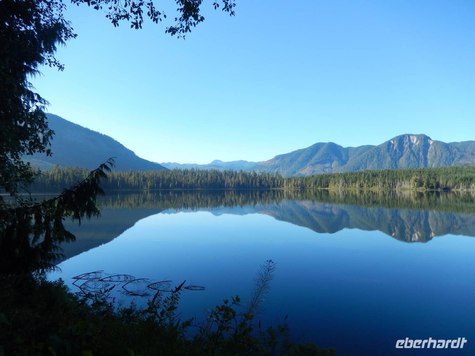 Mit kleiner Nachttasche für die heutige späte Ankunft ausgerüstet brachen wir heute noch im finsteren Morgengrauen zum Terminal der BC Ferries auf, um von Prince Rupert die etwa 500 Kilometer auf dem Wasser bis nach Port Hardy auf Vancouver Island zurückzulegen. An Bord der Fähre angekommen gab es erst einmal für alle Frühstück, bevor schließlich jeder für sich das herrliche Wetter an Deck genießen oder sich in den gemütlichen Sitzplätzen im Innern entspannen konnte. Wir durchquerten die fjordartige Insellandschaft der Inside Passage und entdeckten unterwegs Wale, verschiedene Vogelarten und natürlich hunderte Kilometer bewaldeter Küstenlandschaft. Nach einem Zwischenhalt im indianischen Küstenort Bella Bella setzten wir unsere insgesamt 17stündige Fahrt fort und erreichten schließlich spät am Abend unseren Hafen in Port Hardy. Zu dieser Uhrzeit wollte natürlich niemand mehr seinen schweren Koffer ins Zimmer hieven, zum Glück waren wir bestens vorbereitet.