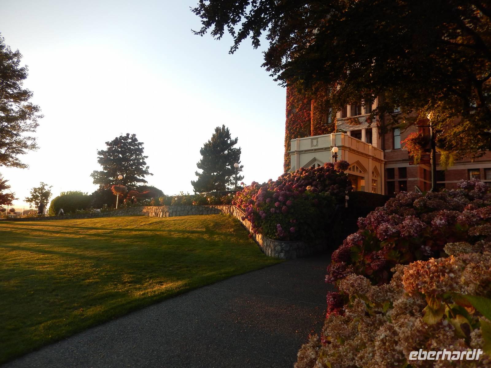 Nach ein paar sonnigen, freien Stunden in Victoria besuchten wir heute am späten Vormittag die wunderschönen Butchart Gardens, die von Jenny Butchart, der Frau eines Zementfabrikanten, ab 1904 angelegt wurden. Er befindet sich in einem ehemaligen Kalksteinbruch, in dem ihr Ehemann zuvor Gestein abbaute. Unterteilt in einen Japanischen Garten, einen „versunkenen" Garten, einen Rosengarten und viele mehr, bietet die Anlage alles, was das Herz eines Blumenfreundes begehrt und noch mehr. Im anliegenden Restaurant konnte man etwas zum Mittag essen oder sich in den Kunsthandwerkgeschäften die Zeit vertreiben, bis es schließlich zum Fährhafen ging, von wo aus wir wieder aufs nordamerikanische Festland übersetzten. Vor uns lag die nun aktuelle Hauptstadt British Columbias: Vancouver. Mit ihrer Architektur, den historischen Vierteln und der hohen Lebensqualität gilt sie als eine der schönsten Städte der Welt. Am Nachmittag erreichten wir schließlich unser Hotel und freuten uns auf die morgige Stadtrundfahrt und die nachmittägliche Freizeit. Zuvor verabschiedeten wir uns natürlich noch angemessen von unserem grandiosen Fahrer Goran, der heute seinen letzten Tag mit uns hatte.