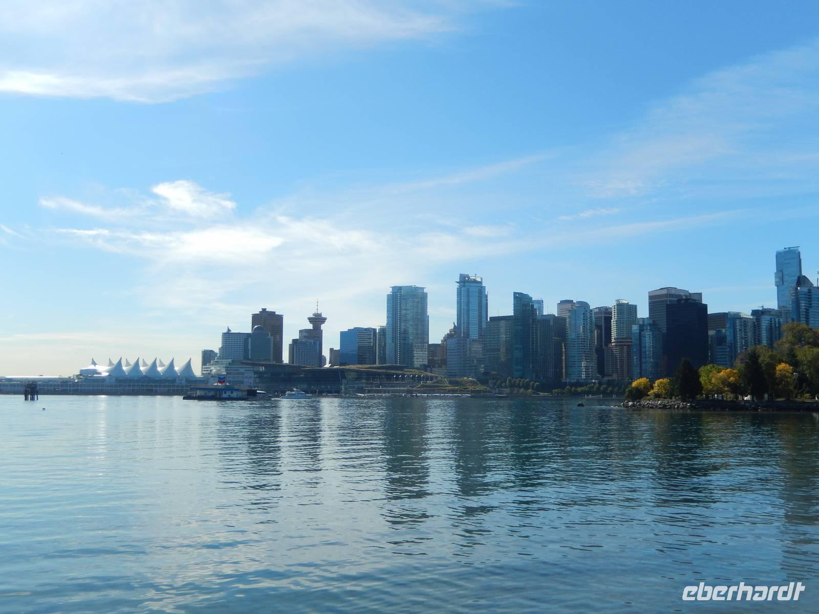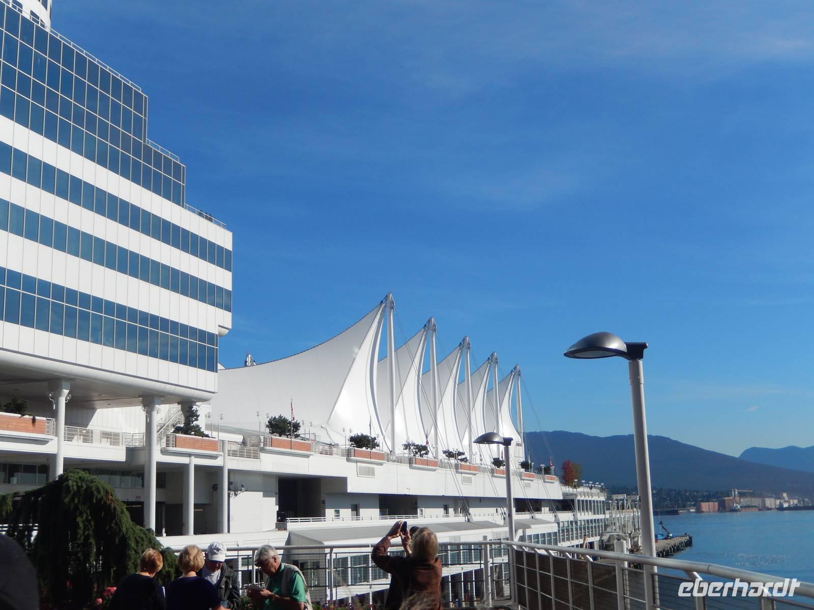 Bei unserer heutigen Stadtrundfahrt in der Metropole mit unserem neuen Fahrer Arnie besuchten wir zuerst Gastown, den ältesten Stadtteil mit seinen viktorianisch anmutenden Gebäuden und der alten Dampfuhr, die qualmend und musikalisch die Zeit ansagt. Weiter ging es zum Canada Place, direkt am Meer und danach zum Stanley Park mit Blick auf die berühmte Lions Gate Bridge und zahlreiche schmuckvolle Totempfähle inmitten alter Bäume. Natürlich konnten wir auch einige Fotos von der futuristischen Skyline der Stadt erhaschen. Über den Mittag besuchten wir den kleinen Stadtteil Granville Island, der umgeben von Wasser inmitten der Stadt liegt und viele Künstlerbetriebe und alternative Geschäfte beherbergt - und eine Zementfabrik, die jedoch ebenfalls kunstvoll bunt bemalt wurde. Wir verbrachten etwas Zeit in der reich ausgestatten Markthalle, in der man Kunsthandwerk und frische Lebensmittel aller Art erwerben kann. Gestärkt traten wir den Rückweg an und ließen uns von Marion noch einmal die besten Geheimtipps für unser individuelles Abendessen erklären. Den Rest des Tages konnte jeder frei gestalten.