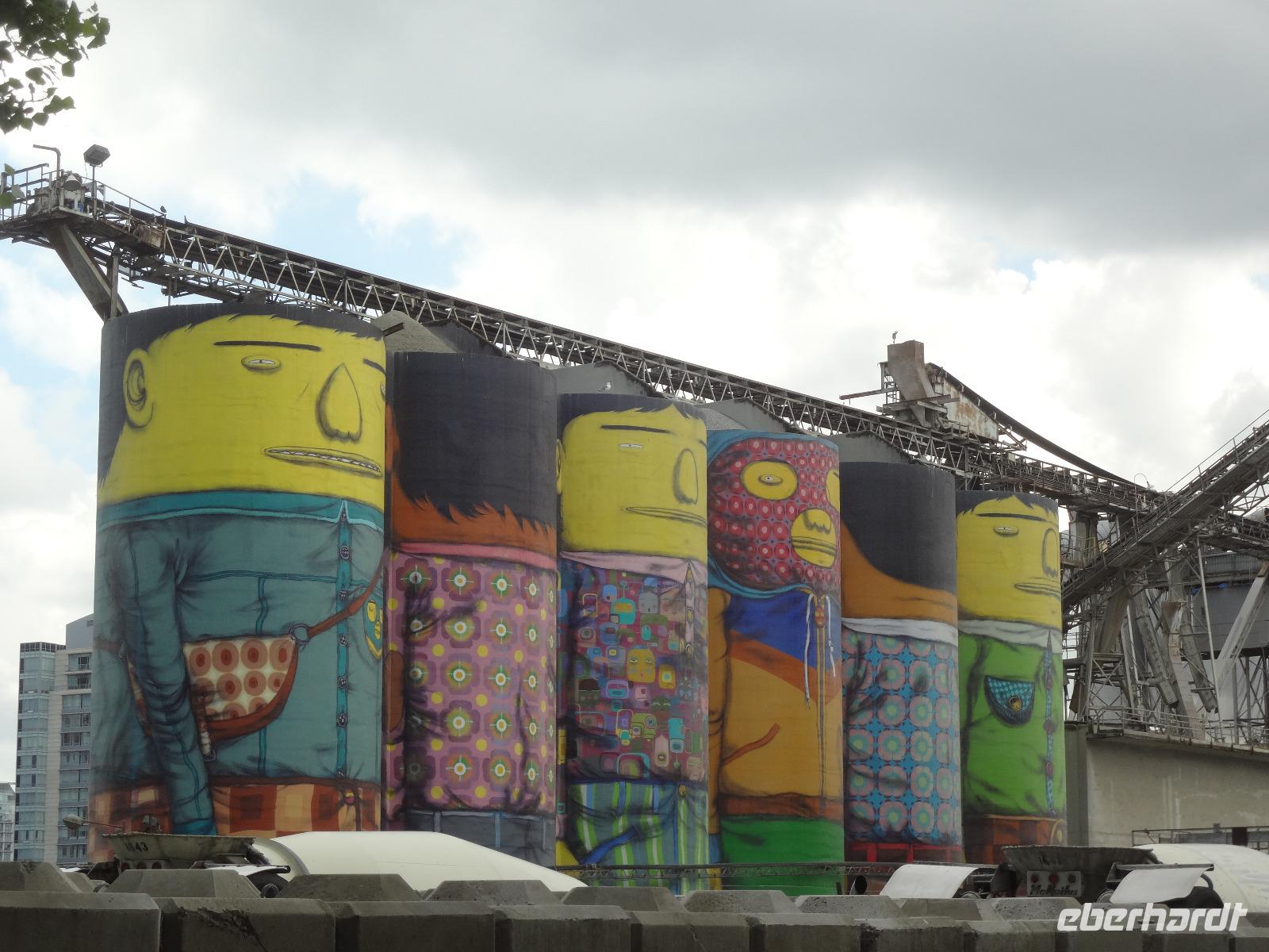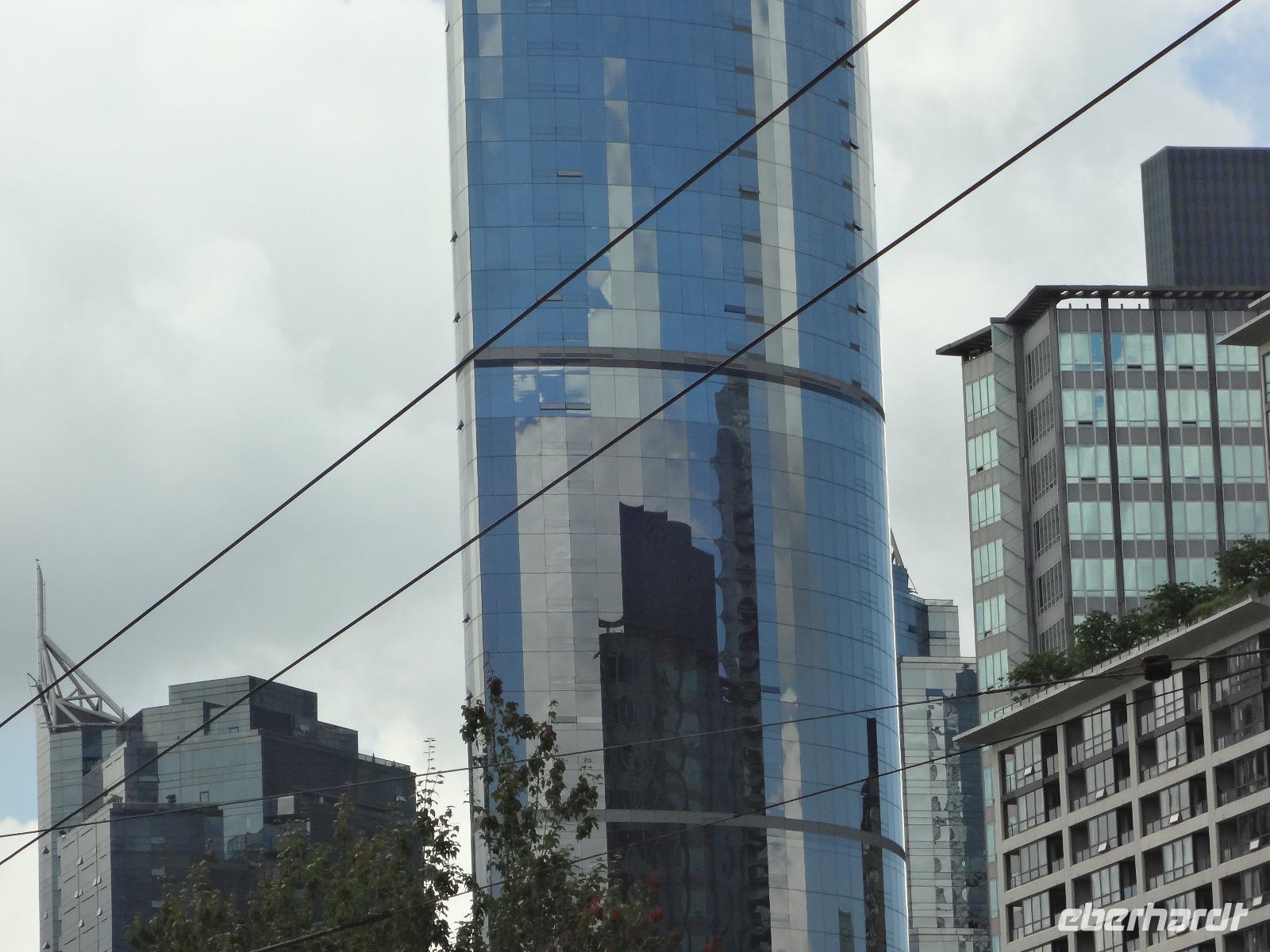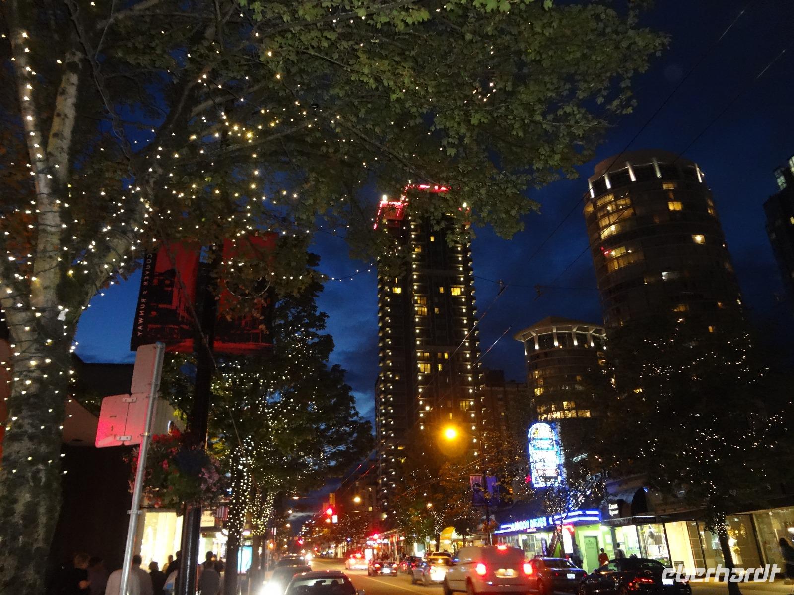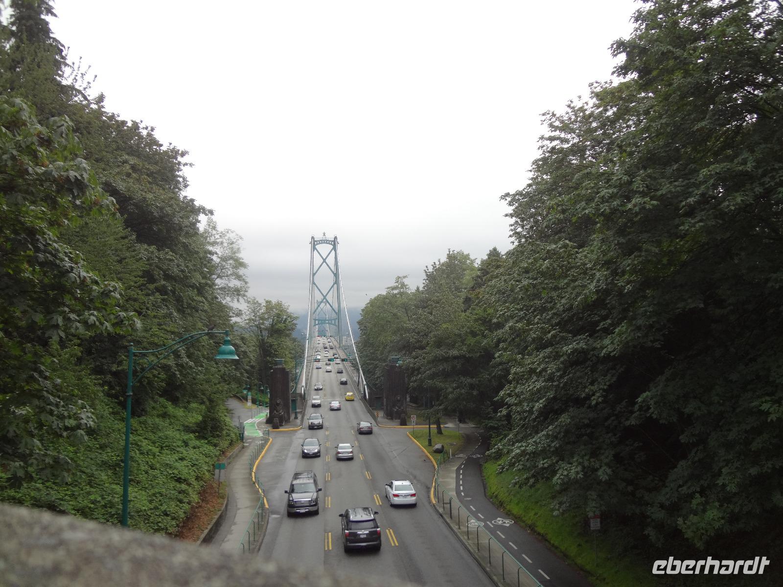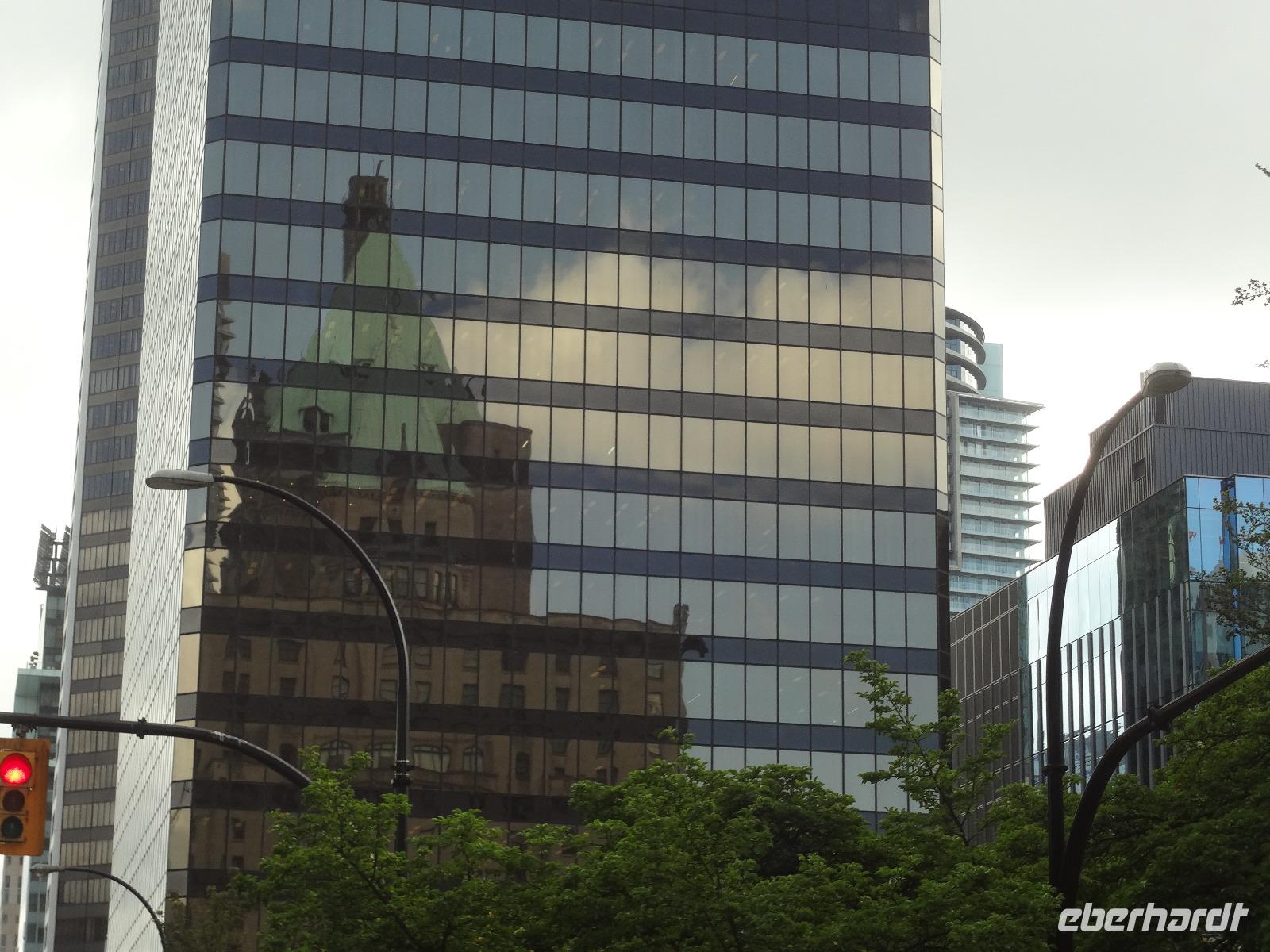 Judihui, wir haben heute eine halbe Stunde geschenkt bekommen. Unsere Stadtrundfahrt beginnt um 9 Uhr. Puenktlich, werden wir von Keith abgeholt denn er wird uns heute durch die Stadt fahren. Vorerst geht es zum Stadtpark, Stanley Park hat einen Rundweg von genau 10 Km und wir halten bei den geschichtserzaehlenden Pfaehlen mit dem schoenen Ausblick auf das Zentrum Vanouvers. Es gibt tatsaechlich noch einiges ueber die Totem zu berichten. Nun ruft aber der Kaffee im Shop und die Toiletten auch ! Wir schlaengeln uns durch die Stadt und befinden uns nach vielen Erlaeuterungen in Chinatown. Wir steigen alle aus und gehen zu Fuss durch diesen Stadtteil. Achtung nicht Nase ruempfen wenn wir an den getrockneten Fischen vorbeigehen die hier als Delikatesse angeboten werden. Noch ein Foto von dem viereckigen Huhn und den Gold Blaettchen und dann gehts weiter nach Gastown. Heute ist ein Radrennen in diesem historischen Stadtteil angesagt und das Fest ist genau dort wo die beruehmte Dampfuhr steht. Wir sind 11:45 dort und horchen dem Dampforchester zu ehe wir unseren Bus betreten. Wir sehen Canada Place, die Olympische Fackel, das beruehmte Hotel Vancouver und viel Verkehr, wir ueberqueren Bruecken und fahren durch staedtische Reservate bis wir auf Granville Island inne halten. Hier, unter der Granville Bruecke geht es lustig zu und her. Markthalle, Kuenstler, Glasblaeser, Restaurants, Seidenhersteller, Gallerien, Bars, Theater und Emily Carr's Universitaet befinden sich alle auf dieser aufgeschuetteten Insel + noch eine Zementfabrik. Dort treffen wir uns auch wieder alle nach 1 Stunde Aufenthalt. Die Lachspizza war koestlich. Alle, fahren wir mit Keith zurueck zum Hotel da wir ja heute Nachmittag frei haben und wir diese ueberschauliche Stadt selbst erkunden wollen.