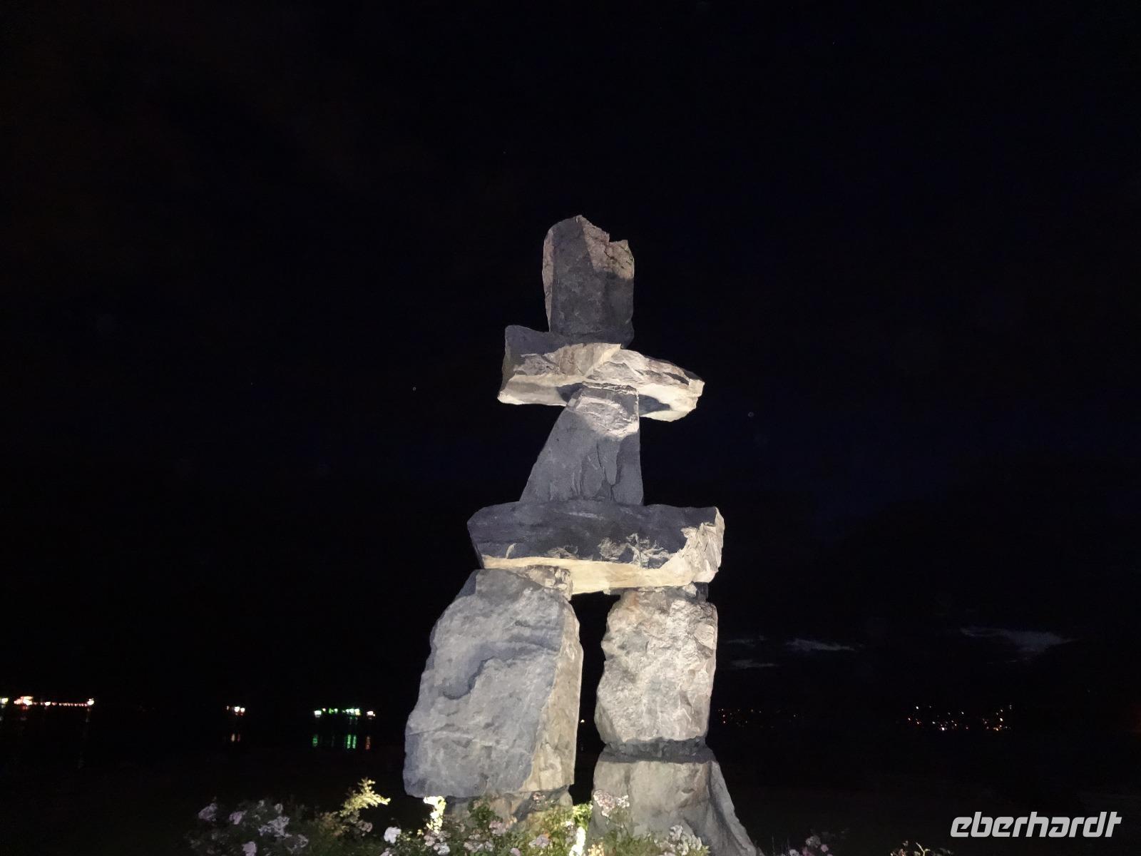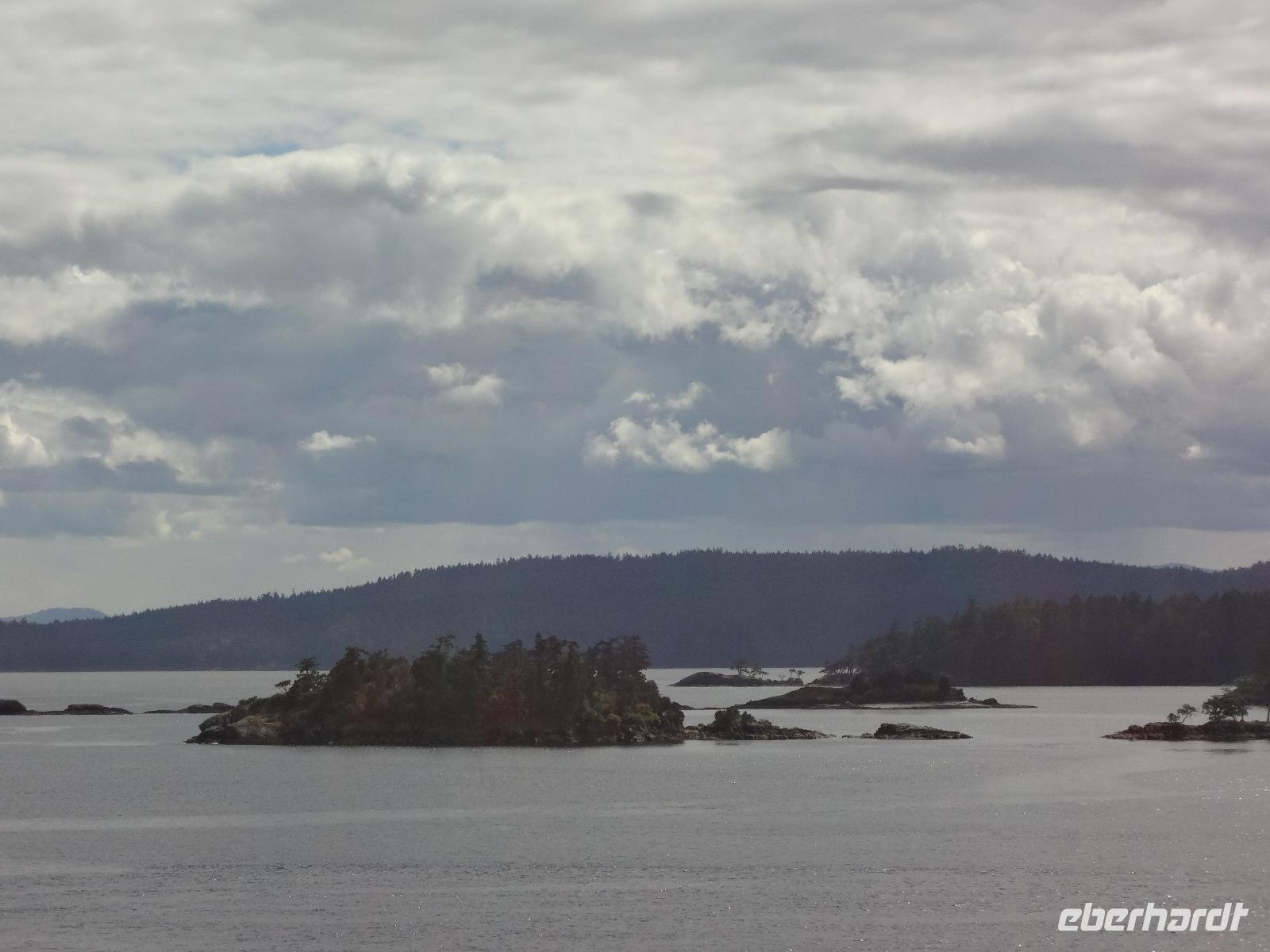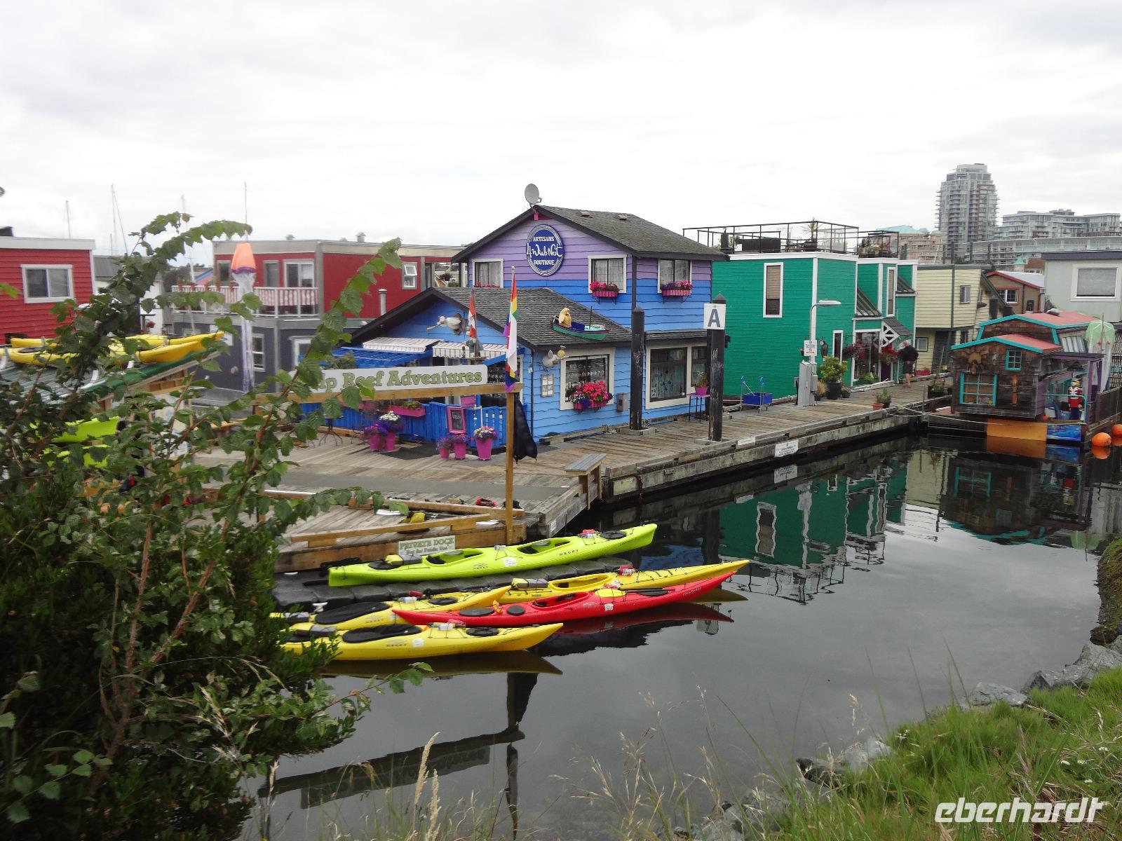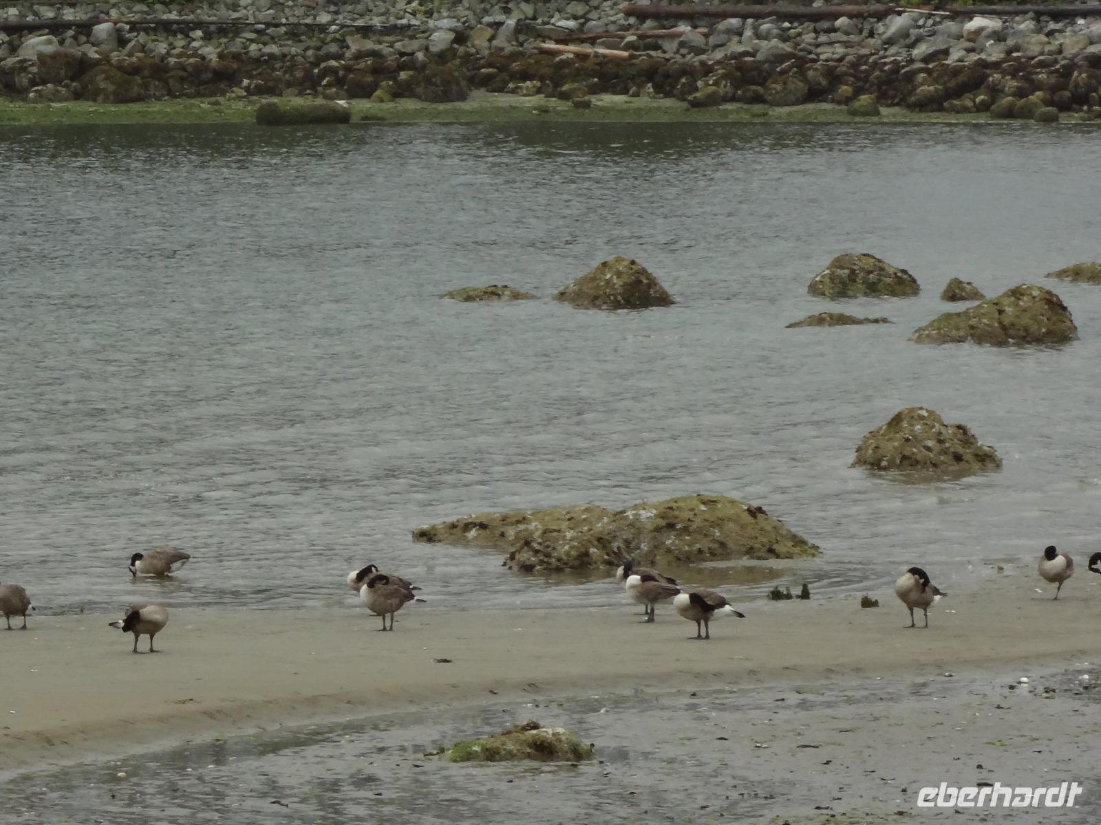 Nun ist Stadtrundfahrt im groesseren Victoria angesagt und froehlich fahren wir los um uns vorerst mal jene Haeuser anzuschauen die keine Grundsteuer zu bezahlen brauchen. Das schwimmende Dorf mit seinem Privat-Seehund wird von der Sonne so beleuchtet, dass jeder die Kamera und das Handy zueckt. Der Seehund hat allzuviele Fish n'Chips gegessen und taucht deswegen nicht mehr tief, guenstig fuer die Fotografen. Es geht weiter beim Kreuzschiffhafen vorbei bis zur Meile 0 der kanadischen Highway Nummer 1. Dort gehen wir auch Fuesse baden. Einmal die Fuesse in den frischen, sauberen Pazifischen Ozean stecken, auch dieser Wunsch wird nun erfuellt. An riesengrossen Privatvillen vorbei und einer atemberaubender Kueste entlang mit Sicht auf die Olympische Halbinsel die schon zu den USA gehoeren, fahren wir auf den hoechsten Berg dieser Gegend. Das Wetter spielt mit, wie bislang immer, auf dieser Reise und viele Fotos werden geschossen. Der Besuch bei den beruehmten Butchart Gardens ist anfangs sehr schoen und genuesslich. Wir sehen viele verschiedene Gaerten wie, Haengegarten, versunkener Garten, Rosengarten, Rhododendron Garten usw, und mitten im japanischen Garten, werden wir von einem Platzregen ueberrascht. Durchsichtige Regenschirme gibt es ploetzlich ueberall, wir gucken darunter hinaus und beeilen uns durch den franzoesischen und den italienischen Garten ins Restaurant. Nach der Mittagspause fahren wir zum Faehrehafen um nach Vancouver um aufs Festland hinueber zu fahren. Die Sonne lacht nun wieder und wir geniessen die Inselwelt die sich hier zeigt. Gerade in der engsten Passage, da wo sich die Faehren kreuzen ertoent die Stimme des 3. Offiziers. : Orcas tummeln sich, wir muessen die Fahrt verlangsamen, denn die Walfischbeobachtung - Boote und die Killerwale selbst, versperren fast die Passage. Wir sind alle schon zur Hand mit unseren Kameras und schauen dem Schauspiel zu. Was fuer ein Glueck. Nun haben wir alle grossen Tiere dieses Meeres gesehen. Wie auf Safari. Glueckseelig kommen wir in Vancouver an wo wir uns dann von unserem Fahrer Goran verabschieden muessen. Er war wohl der beste Fahrer den man sich haette wuenschen koennen. Ruhig, lustig, sicher, stark und gross das ist unser Goran, er hat uns nun 12 Tage durch den hohen Norden gefahren und er passte richtig in unsere Familie. Er verlaesst uns heute, da wir morgen bloss einige Stunden auf eine Stadtrundfahrt gehen werden. Grosse Verabschiedung ehe wir im Landmark Hotel auf der Robsonstrasse im Zentrum Vancouvers einchecken. Wir kaempfen uns durch die vielen Leute die hier leben und gehen heute Abend zum Italiener essen. Fein ist das Bestellte, genuesslich der Wein, bloss an den Laermpegel, da muessen wir uns wohl wieder gewoehnen muessen. Heute wirds nichts mit dem Rezitieren von eigenen Gedichten wie in vorhergehenden Restaurants. Mancher traeumt heute von den ewigen Waeldern, den glitzernden Gletschern, den tuerkisblauen Seen waehrend er in dieser pulsierenden Millionenstadt das Kissen drueckt und die Augenlieder von innen anschaut.
