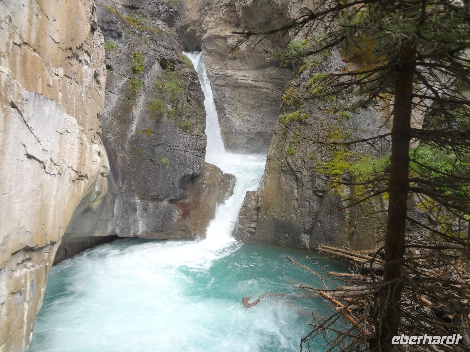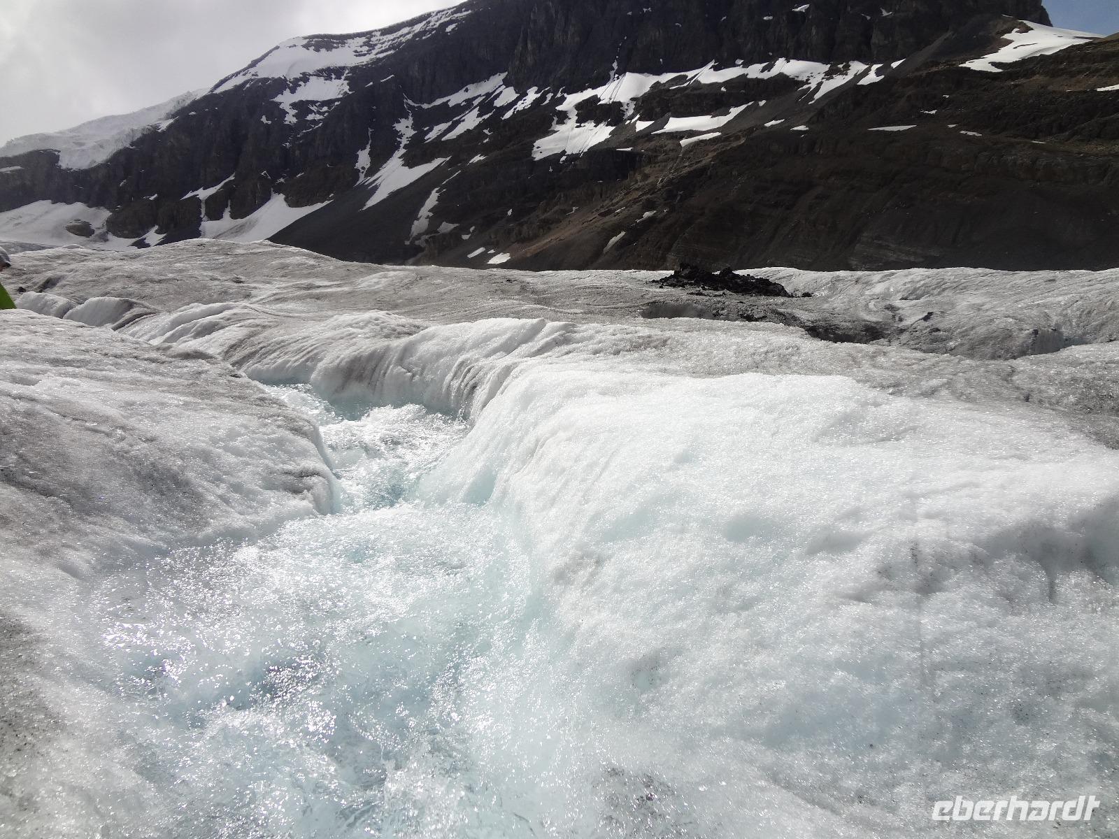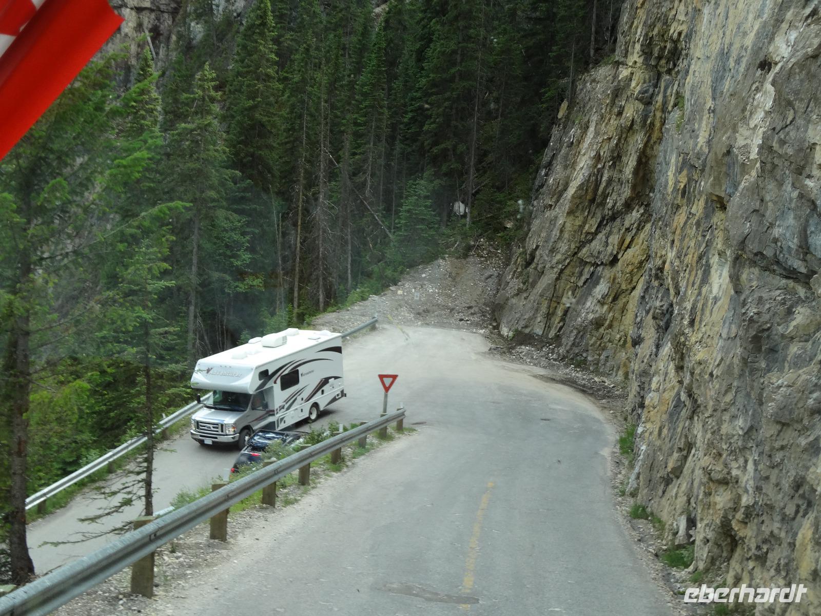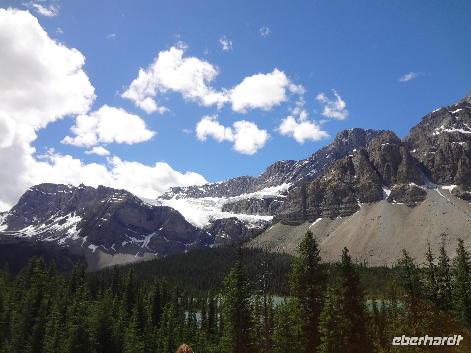 Die beiden Koffer haben ihre Besitzer wiedergefunden und die Freude ist gross. Dieses feine Fruehstueck in diesem Hotel werden wir sehr vermissen, denn nun heisst es, dem niedlichen Staedtchen Banff, auf Wiedersehen sagen. Nach einem kurzen Besuch beim beruehmten Banff Springs Hotel und den nahegelegenen Bow Falls fahren wir auf den hauseigenen Skiberg um die wunderbare Aussicht zu geniessen. Die alte Autobahn fuehrt uns nach 30 Minuten zu der Schlucht die Johnston Canyon heisst. Eine volle Stunde koennen wir entlang dieses Canyons wandern und dem tobenen Wasser zuhorchen und zuschauen. Bei den ersten Wasserfaellen staunen wir ueber die Schoenheit der Natur und lassen uns auch gerne etwas berieseln bevor wir wieder zu unserem Bus zurueckspazieren. Auf dem Weg zu dem eigentlichen heutigen Erlebnis halten wir bei Crawfoot Gletscher der wirklich ausschaut wie ein Kraehenfuss. Danach halten wir beim See, Gletscher und Berg des Bow Flusses und gleich darauf besuchen wir den atemberaubenden Peto Lake. Dort wo Alexander McKenzie im Jahre 1808 auf dem North Saskatchewan River paddelte nehmen wir unser Mittagessen ein. Danach aber kommt der Hoehepunkt, die Erlebnisfahrt auf dem Athabasca Gletscher mit einem speziell dafuer angefertigten Riesenfahrzeug. Einfach herrlich auf so einem Gletscher zu stehen, wir fuellen auch gleich unsere mitgebrachten Flaschen mit dem Ur-Wasser, es soll verjuengende Eigenschaften haben wird uns prophezeit. Die Familie zuhause wird uns nicht wiedererkennen ! Am spaeteren Nachmittag erreichen wir unser Hotel und ziehen auch gleich in unsere Waldhaeuschen ein. Es ist eine echte Lodge, mitten im Wald gelegen, urchig und schoen ohne Telefon aber mit Internet ! Das BBQ Abendessen ist koestlich und wir amuesieren uns auch sehr mit der Naturalistin Heidi, die uns vieles ueber die Fauna des Jasper National Parks erzaehlt. Ein wunderbarer Tag neigt sich nun und unsere Augenlieder sind nicht mehr offen zu halten. Die Betten rufen.