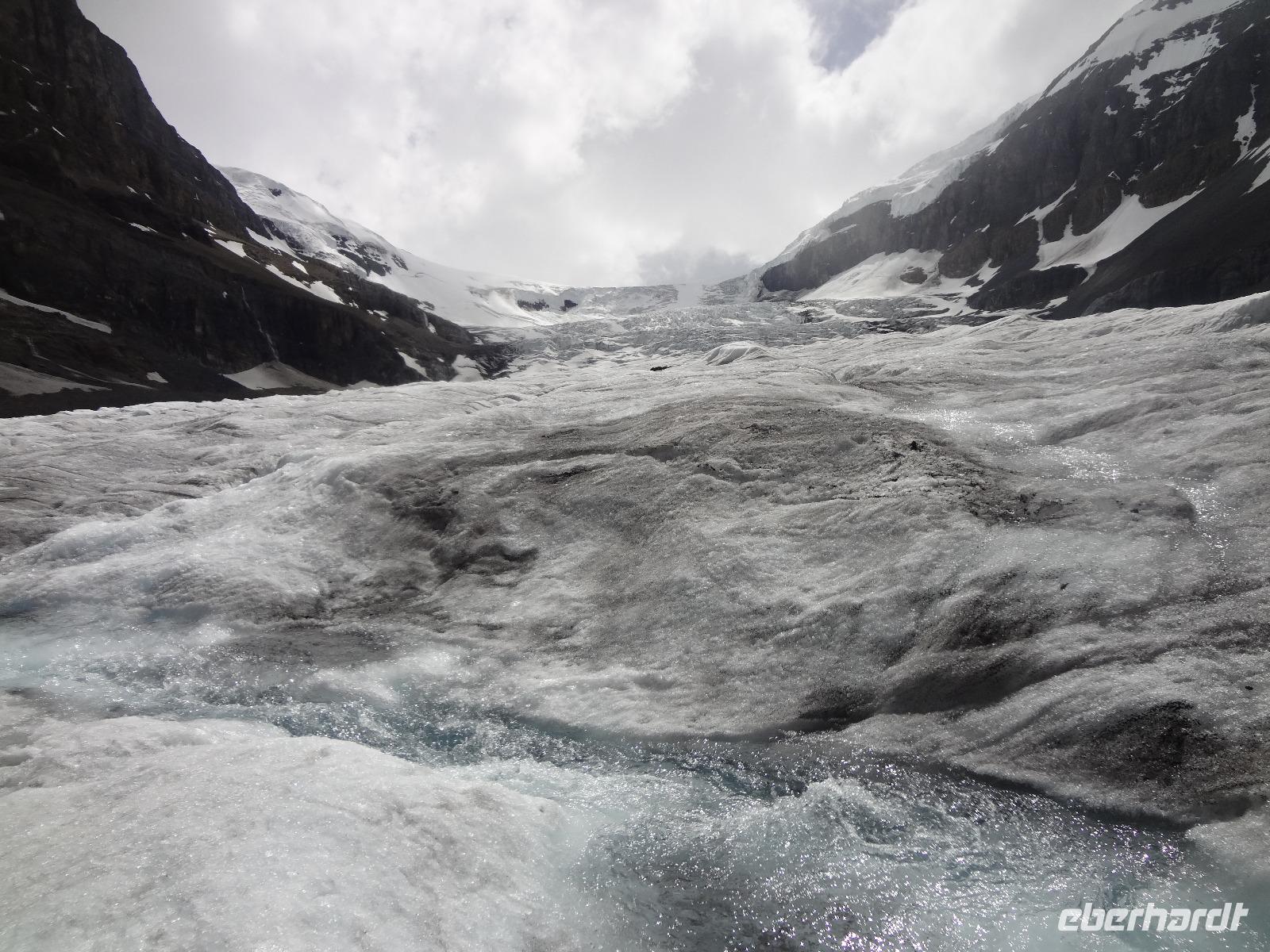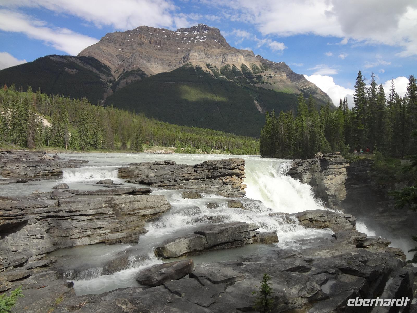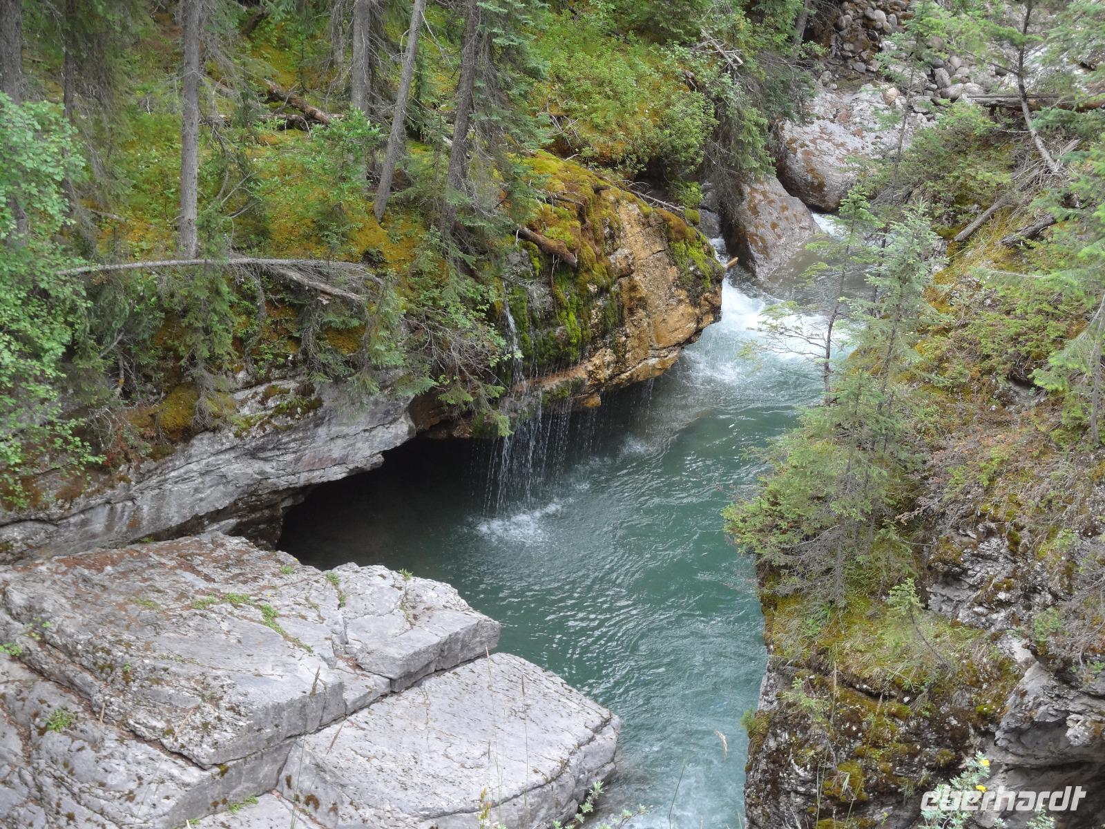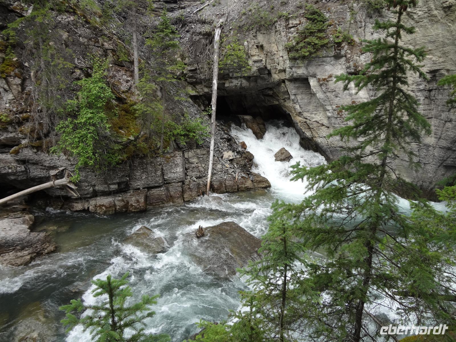 Die beiden Koffer haben ihre Besitzer wiedergefunden und die Freude ist gross. Dieses feine Fruehstueck in diesem Hotel werden wir sehr vermissen, denn nun heisst es, dem niedlichen Staedtchen Banff, auf Wiedersehen sagen. Nach einem kurzen Besuch beim beruehmten Banff Springs Hotel und den nahegelegenen Bow Falls fahren wir auf den hauseigenen Skiberg um die wunderbare Aussicht zu geniessen. Die alte Autobahn fuehrt uns nach 30 Minuten zu der Schlucht die Johnston Canyon heisst. Eine volle Stunde koennen wir entlang dieses Canyons wandern und dem tobenen Wasser zuhorchen und zuschauen. Bei den ersten Wasserfaellen staunen wir ueber die Schoenheit der Natur und lassen uns auch gerne etwas berieseln bevor wir wieder zu unserem Bus zurueckspazieren. Auf dem Weg zu dem eigentlichen heutigen Erlebnis halten wir bei Crawfoot Gletscher der wirklich ausschaut wie ein Kraehenfuss. Danach halten wir beim See, Gletscher und Berg des Bow Flusses und gleich darauf besuchen wir den atemberaubenden Peto Lake. Dort wo Alexander McKenzie im Jahre 1808 auf dem North Saskatchewan River paddelte nehmen wir unser Mittagessen ein. Danach aber kommt der Hoehepunkt, die Erlebnisfahrt auf dem Athabasca Gletscher mit einem speziell dafuer angefertigten Riesenfahrzeug. Einfach herrlich auf so einem Gletscher zu stehen, wir fuellen auch gleich unsere mitgebrachten Flaschen mit dem Ur-Wasser, es soll verjuengende Eigenschaften haben wird uns prophezeit. Die Familie zuhause wird uns nicht wiedererkennen ! Am spaeteren Nachmittag erreichen wir unser Hotel und ziehen auch gleich in unsere Waldhaeuschen ein. Es ist eine echte Lodge, mitten im Wald gelegen, urchig und schoen ohne Telefon aber mit Internet ! Das BBQ Abendessen ist koestlich und wir amuesieren uns auch sehr mit der Naturalistin Heidi, die uns vieles ueber die Fauna des Jasper National Parks erzaehlt. Ein wunderbarer Tag neigt sich nun und unsere Augenlieder sind nicht mehr offen zu halten. Die Betten rufen.