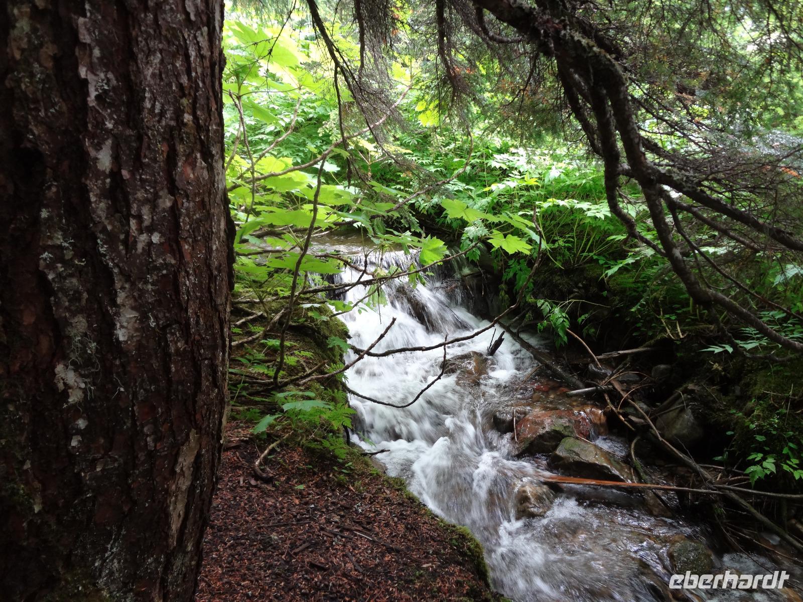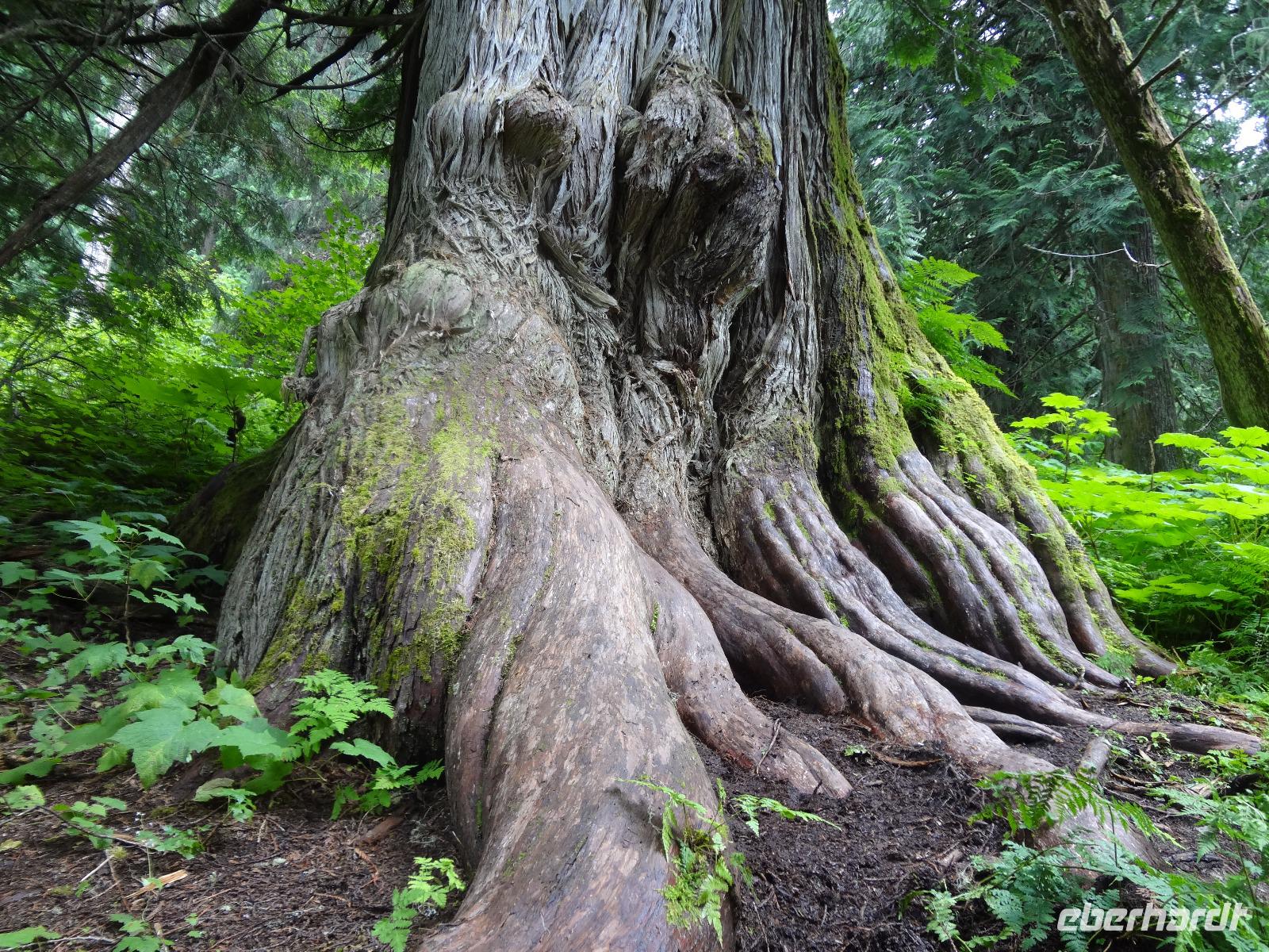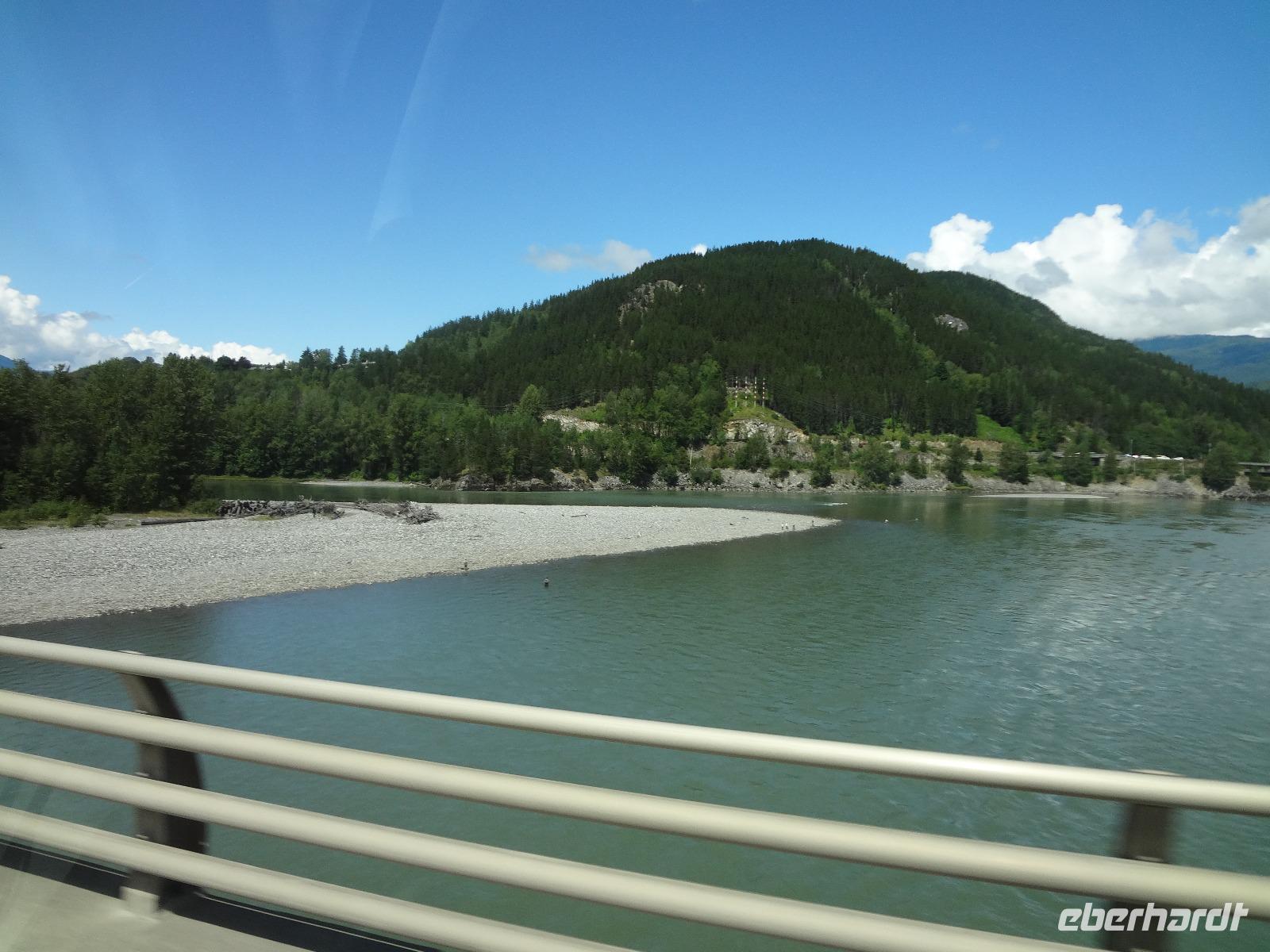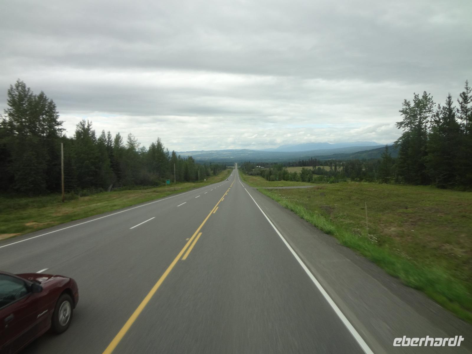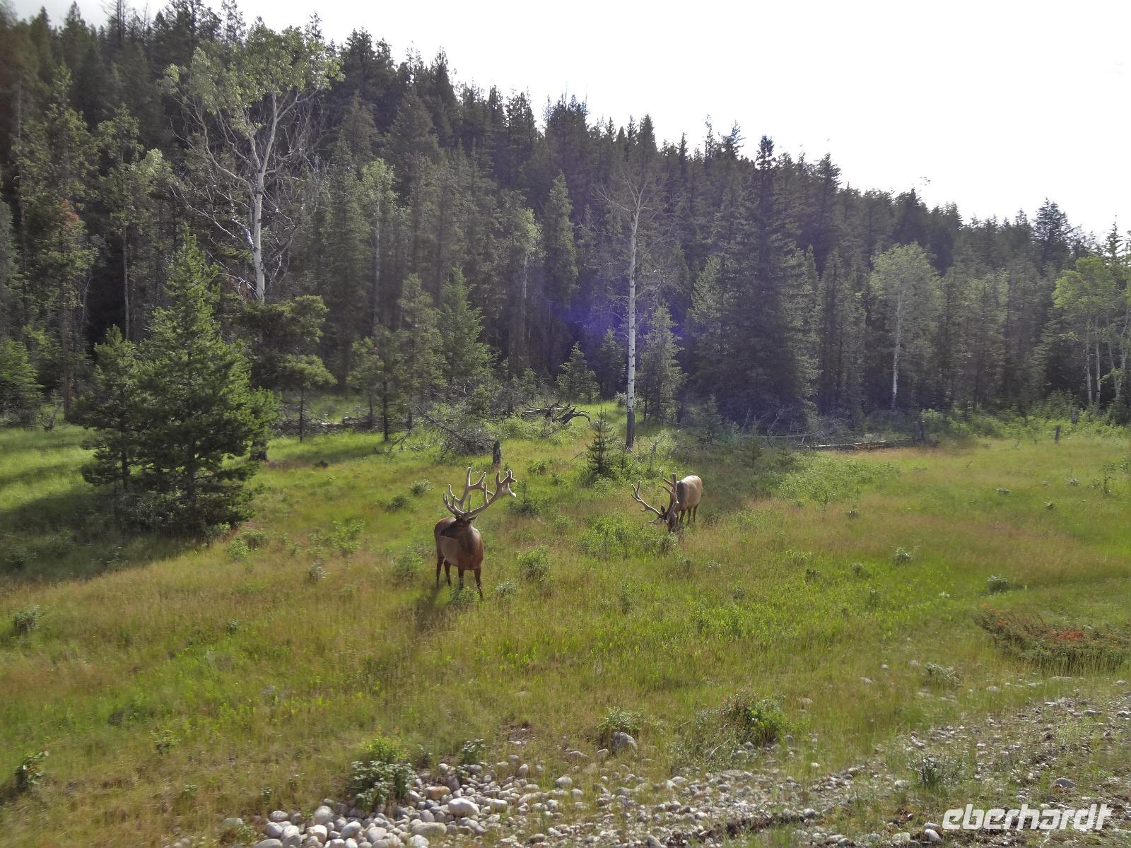 Auch heute werden wir wieder liebevoll mit Tuerklopfen geweckt, da es keine Telefone in den Cabins gibt. Nach dem feinen Fruehstueck fahren wir auch gleich los die Sunwapta Faelle zu bestaunen. Auf der Fahrt Richtung Jasper sehen wir auf einmal 2 erwachsene Wapitihirsche mit dem vollen Geweih, welches noch im Bast verpackt ist. Die beiden Hirsche sind jedoch mit Essen so beschaeftigt, dess sie uns gar nicht bemerkten. Jeder kann deswegen so richtig schoene Fotos knipsen. Vorbei an Jasper fahren wir zur Verabschiedung der Rocky Mountains noch zu zwei hochgelegenen Seen und dann weiter auf die Gelbkopfstrasse die uns aus der Provinz Alberta hinausfuehren wird und uns in die Provinz British Columbia leitet. Wir fahren auch ueber die kontinentale Wasserscheide und begegnen alsbald den beruehmten Robson River. Entlang dieses Flusses unternehmen wir heute auch unsere 1. Wanderung. Danach haben wir ein feines Mittagessen mit Sicht auf den Mt. Robson verdient. Nun heisst es aber Weiterziehen, da wir doch noch bis Prince George fahren moechten. Eine Kaffeepause in Mc Bride belebt unsere Gemueter sodass wir hellwach fuer unsere Fragestunden werden. Viele Themen werden durchgenommen und bloss der Schwarzbaer am Strassenrand unterbricht die Konversation. Endlich sind wir auch bei unserer naechsten kleinen Wanderung in einem der letzten noerdlichen Regenwaelder angekommen. Hier geniessen wir die frische Luft, diesen herrlichen Wald mit dem Ur-Baumbestand. Am spaeten Nachmittag kommen wir ins Staedtchen Prince George wo heute nicht viel los zu sein scheint. Wir essen im Hotel und der Sirloin Steak schmeckt vorzueglich. Die Federbetten rufen schon bald nach uns und wir verschwinden in unsere geraeumigen Zimmer.