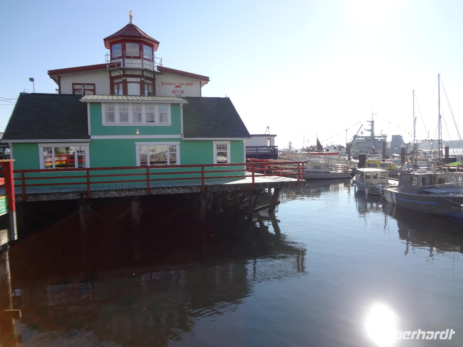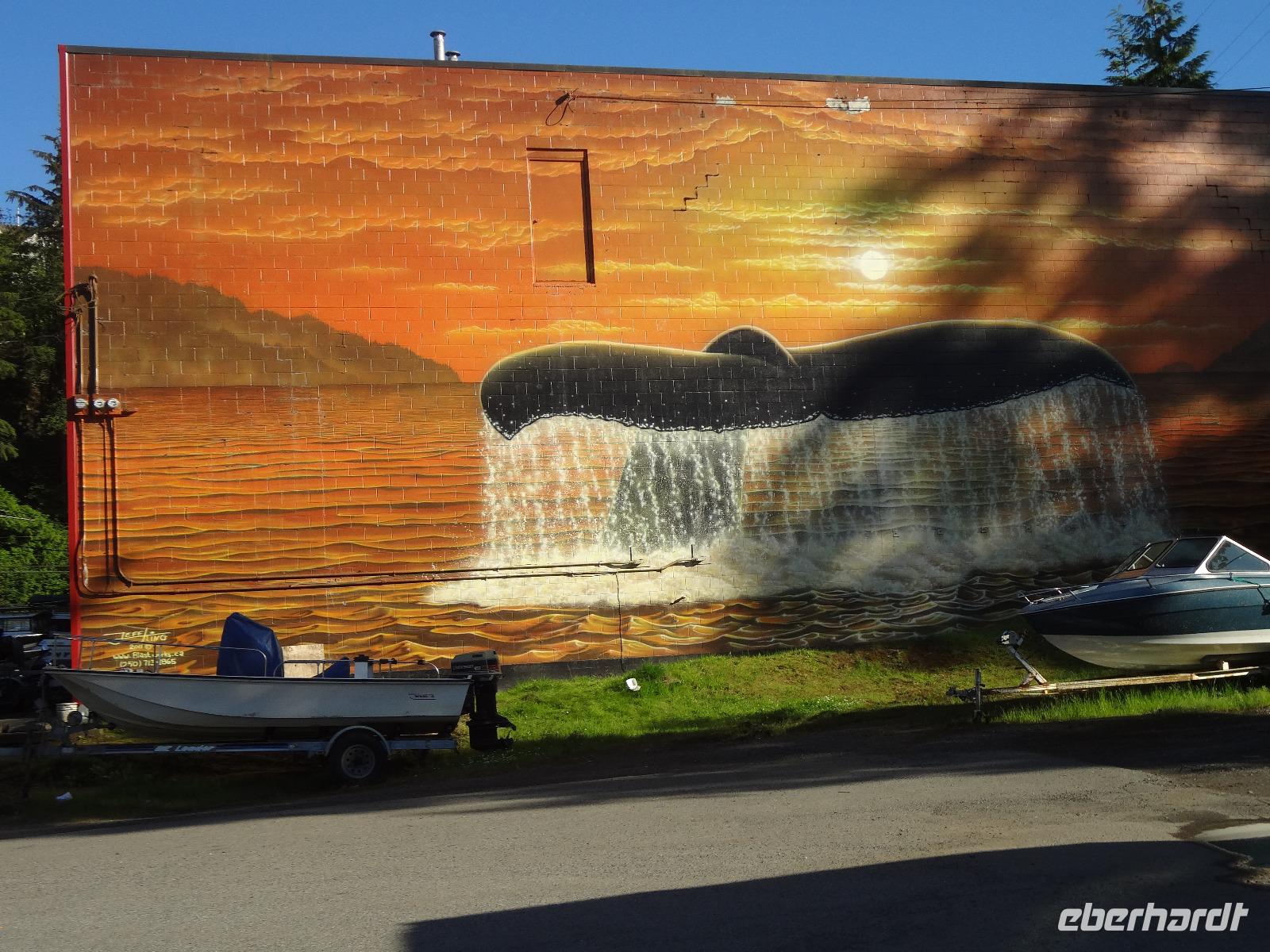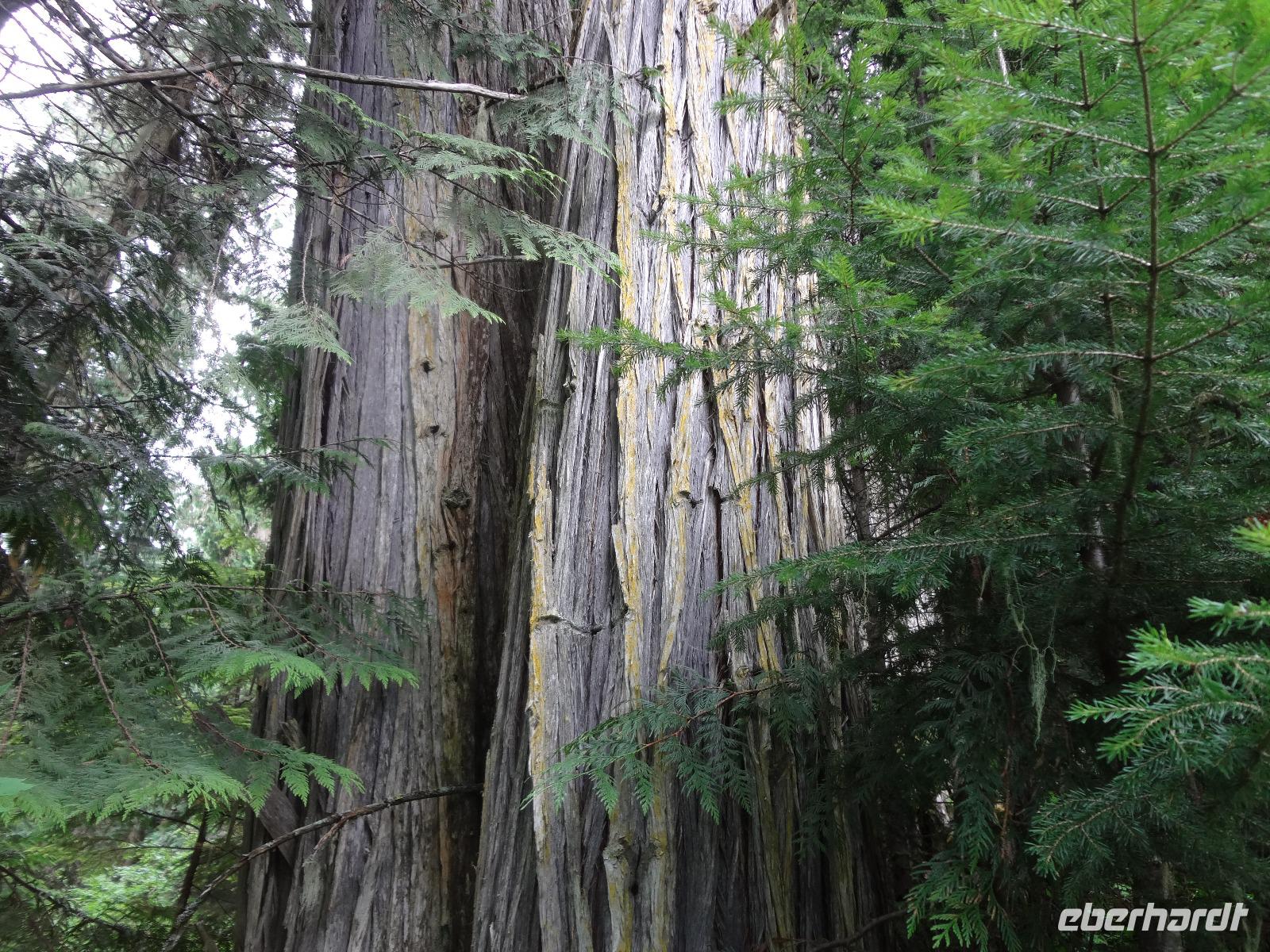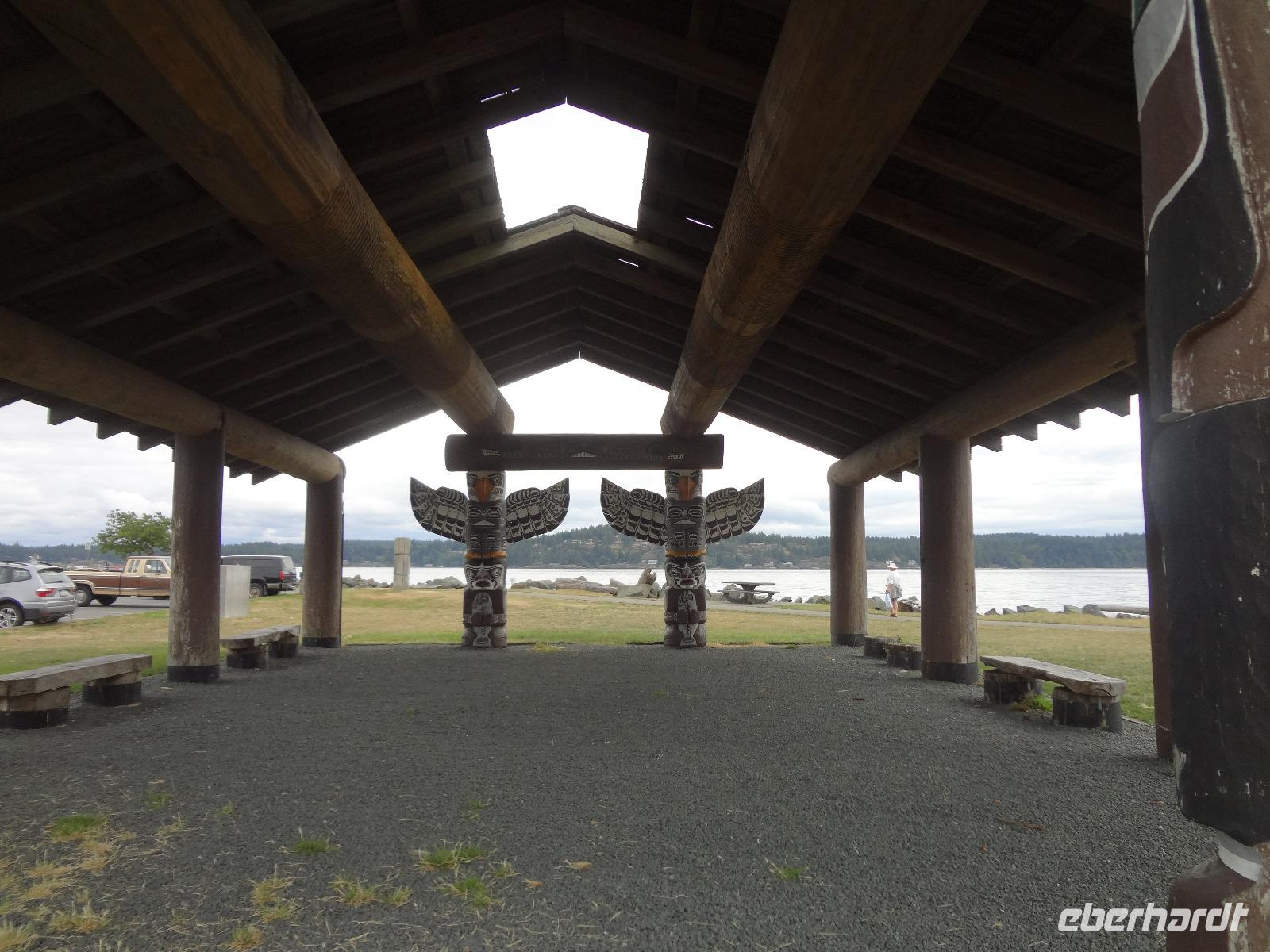 Heute haben wir eine weite Reise vor uns und fahren deshalb schon um 8 Uhr los. Wir koennen diese endlosen Waelder nochmal richtig geniessen und ausleben, ganze 4 Stunden lang ! Einige Geschichten, Anekdoten, Gesaenge und Schnarchgeraeusche spaeter halten wir auch in Cambpell River wo wir eine Kaffepause einlegen. Herrlich ist hier das Klima und Quadra Island blinzelt hinueber. Schoene Totem werden abgelichtet ehe wir zum Mittagessen weiterfahren. Ein Markt-Dorf erwartet uns. Der Markthalle Dach ist begruent und dort weiden auch Ziegen, vieles gibt es hier zu sehen, hoeren und kaufen, viele Objekte zu fotografieren. Nach einer Stunde gehts nun weiter zu unserem naechsten Ziel, Chemainus. Ein Freilichtmuseum. Die Hausmauern sind mit wunderschoenen Gemaelde bemalt welche die Geschichte Vancouver Island's festhalten. Wir gehen den gelben Fussspuren nach und staunen ueber die Kunstwerke und natuerlich auch ueber die vielen Holzstaemme die hier noch immer gefloesst werden. Am spaeteren Nachmittag kommen wir in Victoria, der Hauptstadt Britisch Kolumbiens, an. Die interessante Geschichte dieser Stadt und die Legenden ueber Rattenburry, Mc Donald, Lady Smith und Dr Helmecken machen uns schon ganz neugierig auf diese Stadt. Nach der Stadtrundfahrt checken wir auch gleich in unser schoenes, zentral gelegenes Hotel ein und sausen gleich los auf auf Erkundungstour. Abendessen ist heute fuer 16 Gaeste im Milestones Restaurant, gleich am Hafen. Das Essen ist wunderbar, das Empress Hotel, sowie das Parlament werden als Beilage beleuchtet und wir speisen wie die Koenige. Hat wirklich Eberhard das Parlament fuer uns beleuchtet ? Der Absacker ist heute im Irish Pub und irgendwie sind wir wieder die letzten Gaeste !
