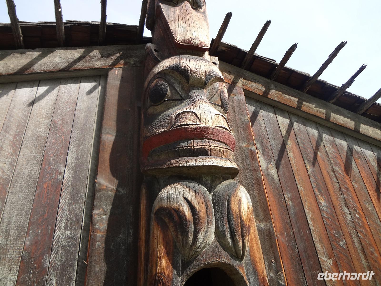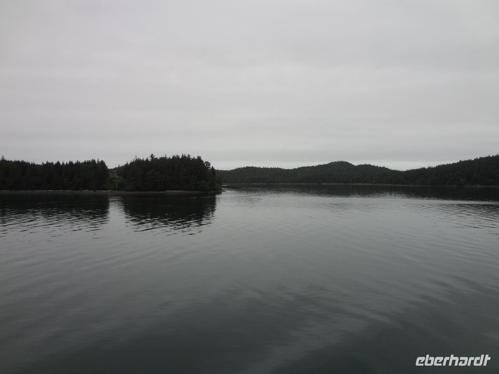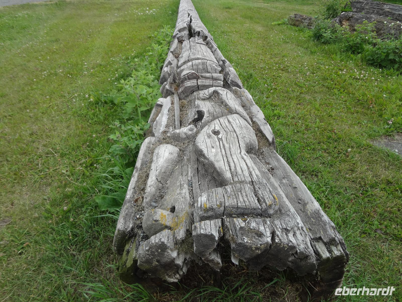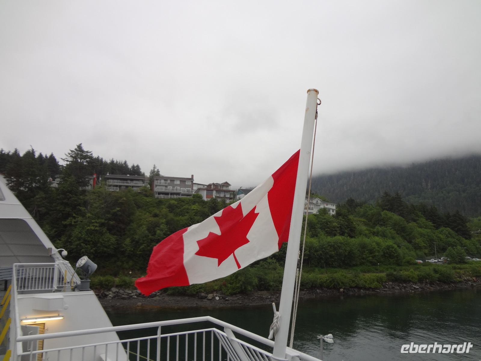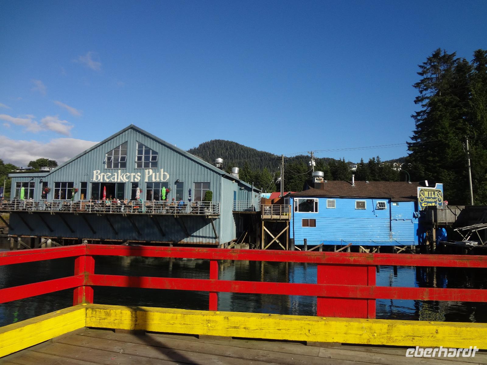 Nun verlassen wir das Staedtchen Stewart und winken noch allen Einwohner zu, die wir gestern kennengelernt haben. Es nieselt ein wenig und die Landschaft zeigt sich im Nebelkleid genauso wie sie von den Ersten Nationen gemalt und festgehalten wird. In Gitanyow machen wir Halt und haben auch genuegend Zeit uns dieses originelle Indianerdorf anzuschauen und von den Totem richtig schoene Aufnahmen zu machen. Wir wundern uns natuerlich auch ueber die Haeuser dieses Reservates und mancher schuettelt den Kopf beim Anblick der „Gaerten". Alles muss der Natur zurueckgegeben werden! Mittagessen nehmen wir heute echt kanadisch in einem Tim Hortons ein. Der Kaffee hat hier lustige Bezeichnungen, so bestellen einige eine Schwarze Suesse und andere einfach eine Blonde ! Dem weiten, majestaetischen Skeena Fluss fahren wir nun eine Stunde entlang und erfreuen uns der Schoenheit dieses Flusses und der steilen Kuestenberge. Die Sonne hat auch wieder ihren Weg durch die Wolken gefunden. Viele Fliegenfischer stehen am Ufer und Elisabeth wuenschte sich insgeheim, sie waere mit ihrer Angelrute unterwegs. Vor Prince Rupert halten wir noch einmal um diese wunderschoene Gegend auch bildlich festhalten zu koennen. Wir sehen in der Ferne auch schon die Silos wo das Getreide aus der Praerie kommend, verschifft wird. Schade, dass das Investorengeld von damals mit der Titanic untergangen ist, wir koennen uns vorstellen, wie dieses Staedtchen Prince Rupert den Namen Venedig des Nordens wuerdig gewesen waere. Wir moegen es trotzdem sehr, die Sonne lacht, die Haeuser sind bunt, der Hafen ist interessant mit seinen Fischkutter und die Alleen sind ein bisschen zu breit fuer die paar Autos die hier fahren. Nun aber gehts zu unserem unvergesslichen Abendbrot, jeder der dabei war wird sich in Zukunft schuetteln vor Lachen wenn er Ekmek auf der Speisekarte findet. So ziemlich alles geht heute Abend schief, so schief, dass wir 16 einen echten Lachkrampf erleiden. Der Bauch tut uns schon so weh, dass wir das, von Nachbar's Restaurant ausgeborgte Ekmek (griechische Suesspeise) kaum essen koennen. Heute muessen wir auch schnell schlafen gehen da es morgen schon sehr zeitig losgeht.