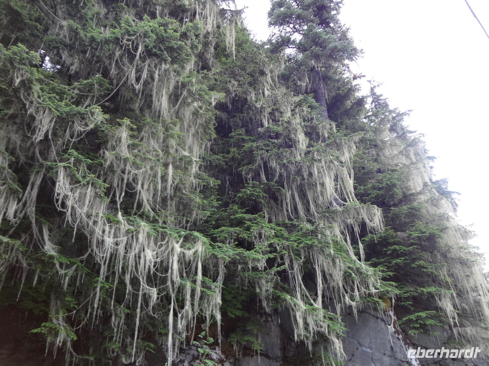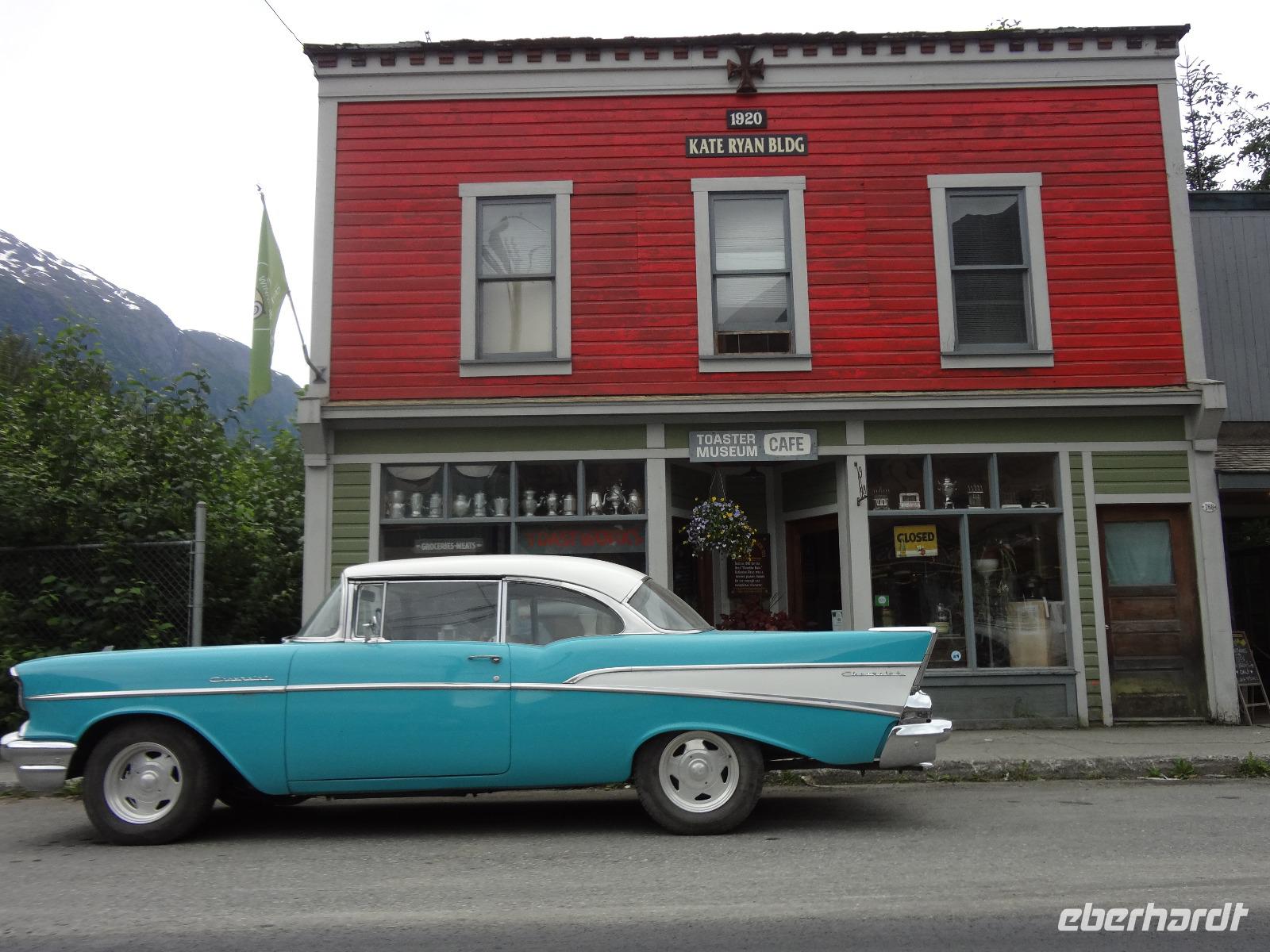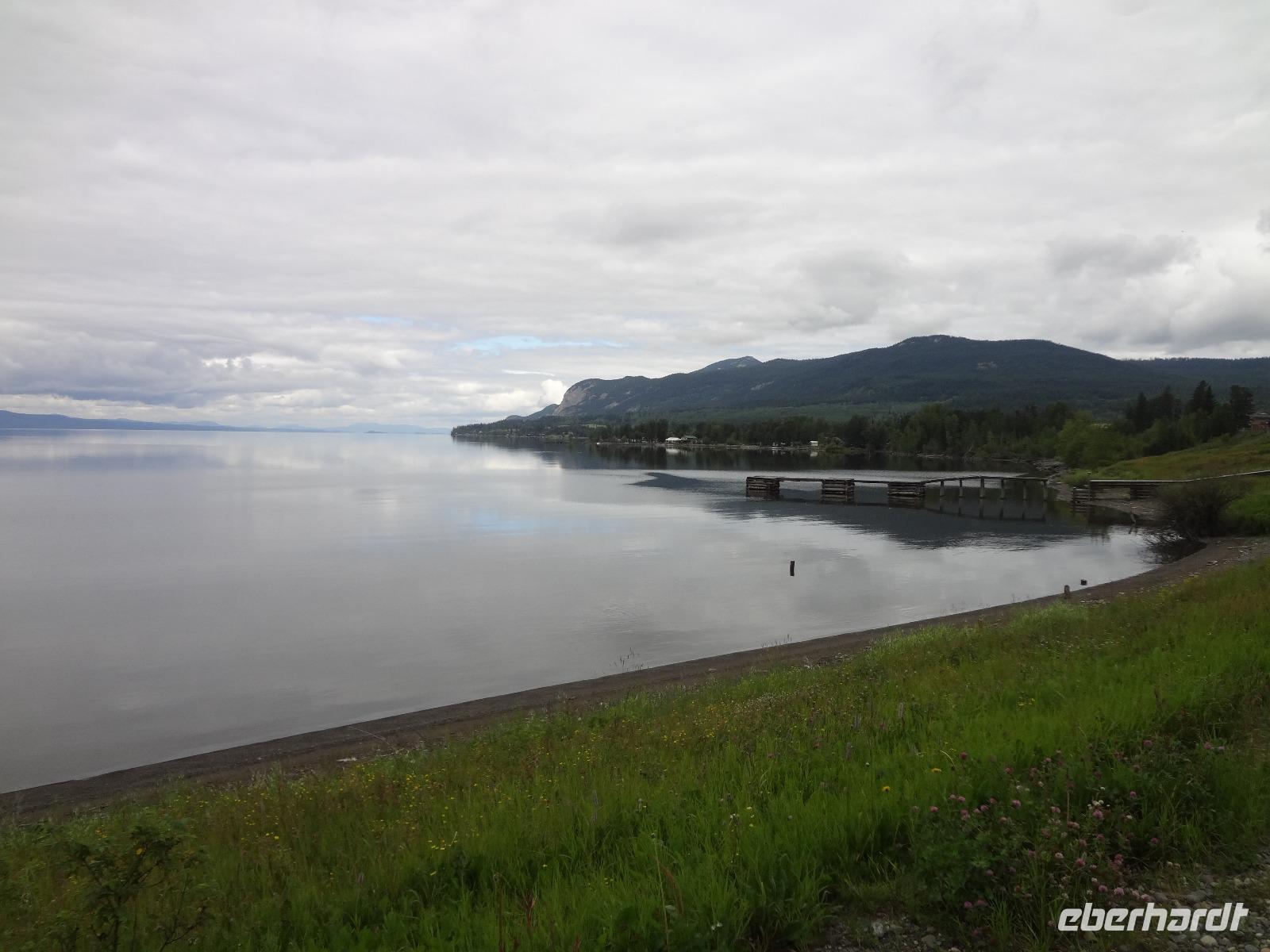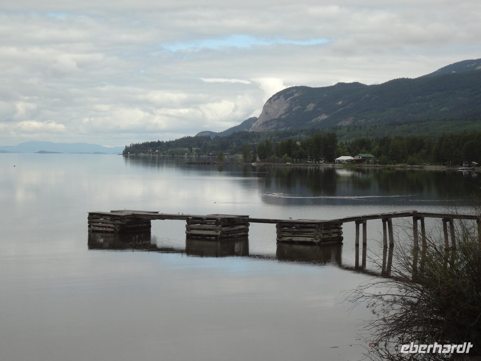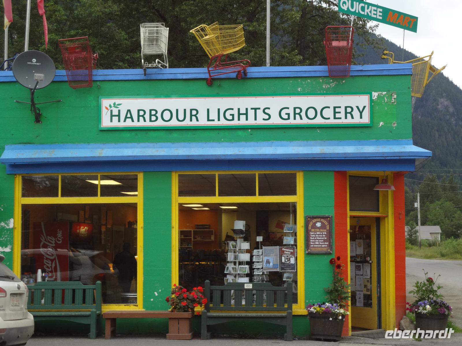 Nun verlassen wir das Staedtchen Stewart und winken noch allen Einwohner zu, die wir gestern kennengelernt haben. Es nieselt ein wenig und die Landschaft zeigt sich im Nebelkleid genauso wie sie von den Ersten Nationen gemalt und festgehalten wird. In Gitanyow machen wir Halt und haben auch genuegend Zeit uns dieses originelle Indianerdorf anzuschauen und von den Totem richtig schoene Aufnahmen zu machen. Wir wundern uns natuerlich auch ueber die Haeuser dieses Reservates und mancher schuettelt den Kopf beim Anblick der „Gaerten". Alles muss der Natur zurueckgegeben werden! Mittagessen nehmen wir heute echt kanadisch in einem Tim Hortons ein. Der Kaffee hat hier lustige Bezeichnungen, so bestellen einige eine Schwarze Suesse und andere einfach eine Blonde ! Dem weiten, majestaetischen Skeena Fluss fahren wir nun eine Stunde entlang und erfreuen uns der Schoenheit dieses Flusses und der steilen Kuestenberge. Die Sonne hat auch wieder ihren Weg durch die Wolken gefunden. Viele Fliegenfischer stehen am Ufer und Elisabeth wuenschte sich insgeheim, sie waere mit ihrer Angelrute unterwegs. Vor Prince Rupert halten wir noch einmal um diese wunderschoene Gegend auch bildlich festhalten zu koennen. Wir sehen in der Ferne auch schon die Silos wo das Getreide aus der Praerie kommend, verschifft wird. Schade, dass das Investorengeld von damals mit der Titanic untergangen ist, wir koennen uns vorstellen, wie dieses Staedtchen Prince Rupert den Namen Venedig des Nordens wuerdig gewesen waere. Wir moegen es trotzdem sehr, die Sonne lacht, die Haeuser sind bunt, der Hafen ist interessant mit seinen Fischkutter und die Alleen sind ein bisschen zu breit fuer die paar Autos die hier fahren. Nun aber gehts zu unserem unvergesslichen Abendbrot, jeder der dabei war wird sich in Zukunft schuetteln vor Lachen wenn er Ekmek auf der Speisekarte findet. So ziemlich alles geht heute Abend schief, so schief, dass wir 16 einen echten Lachkrampf erleiden. Der Bauch tut uns schon so weh, dass wir das, von Nachbar's Restaurant ausgeborgte Ekmek (griechische Suesspeise) kaum essen koennen. Heute muessen wir auch schnell schlafen gehen da es morgen schon sehr zeitig losgeht.