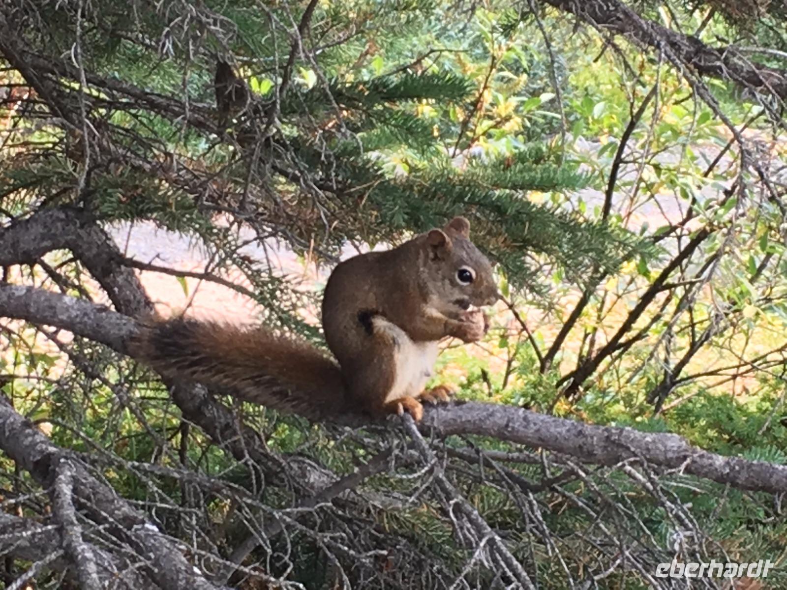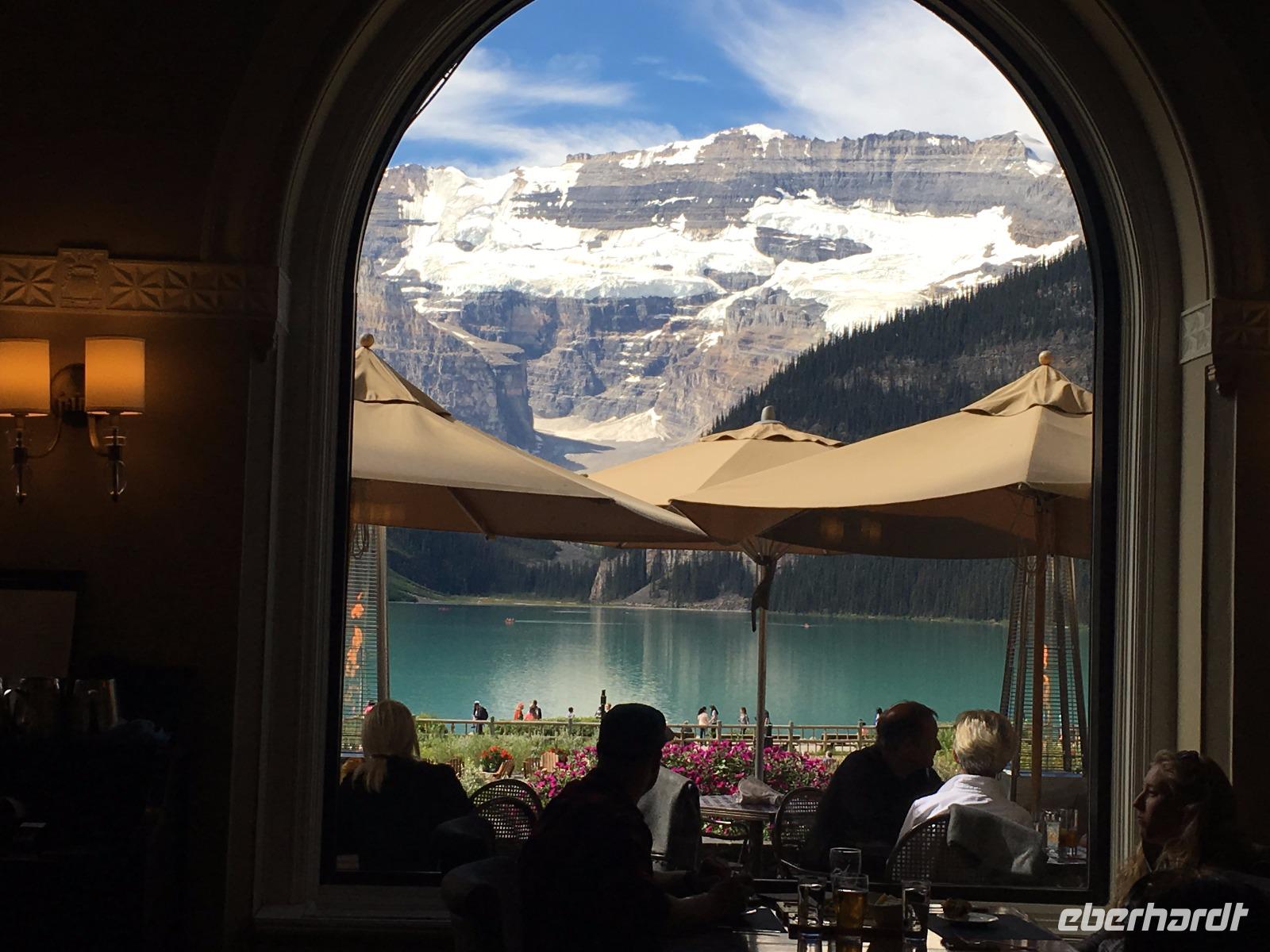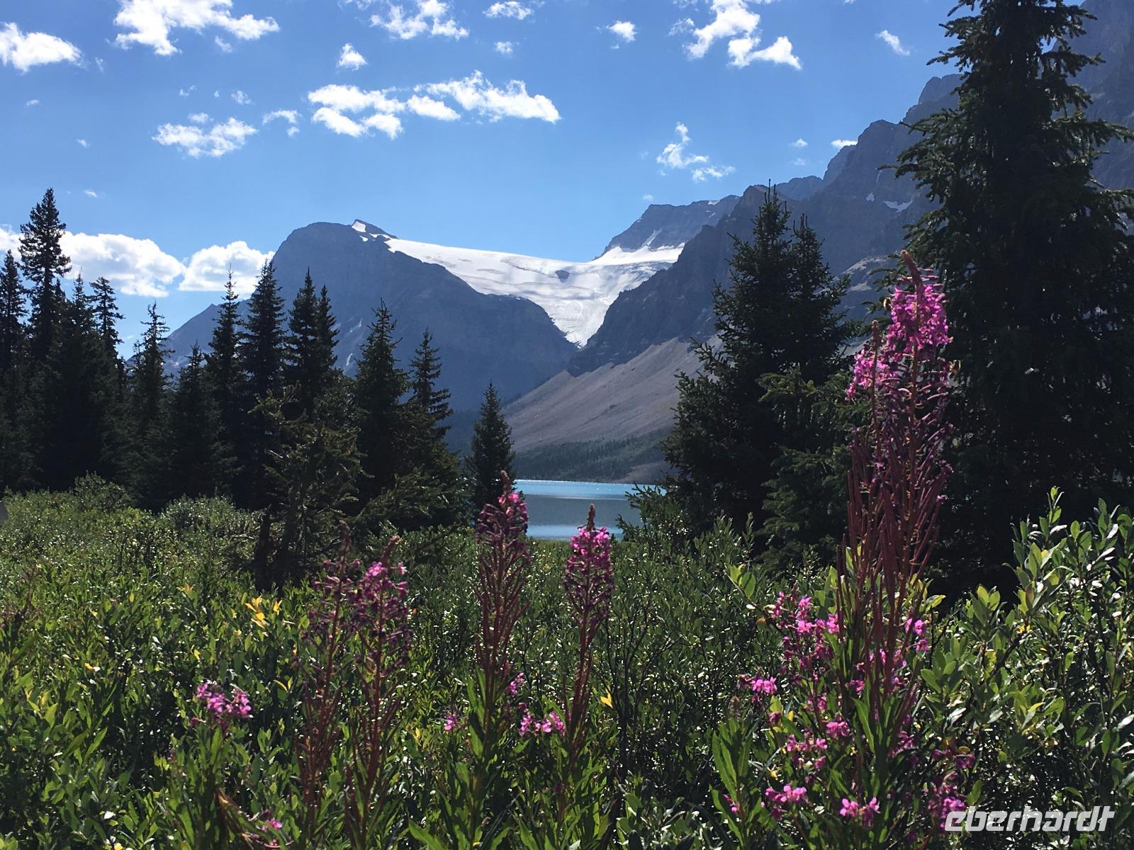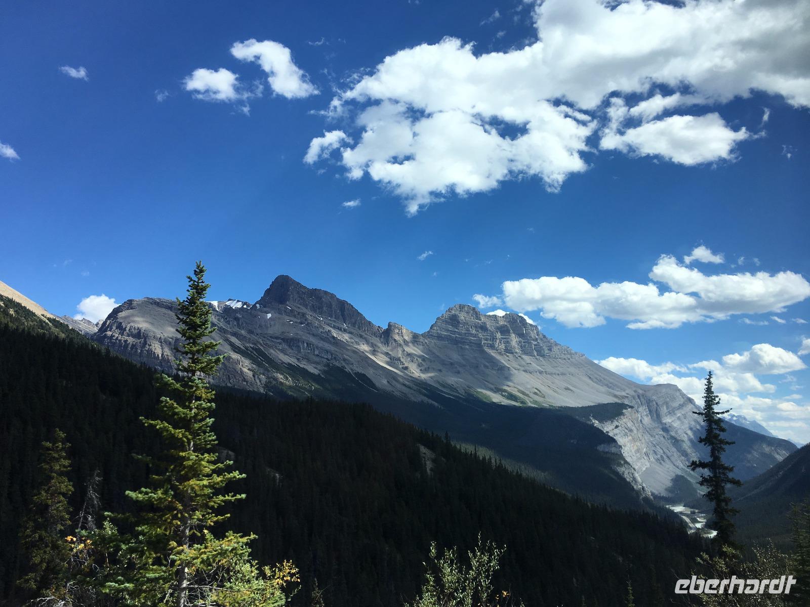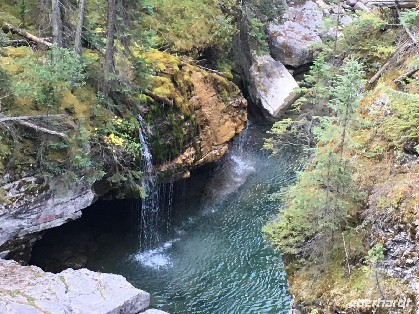 Auch heute scheint die Sonne wieder in unsere Zimmer was uns natuerlich gleich in Schwung bringt. Der Jet lag haelt uns noch immer einige Stunden pro Nacht wach, aber wir lassen uns nichts anmerken. Niemand sieht die Augenringe der anderen ! Auf gehts gleich zu einer kleiner Wanderung in einer Klamm. Der Johnston Canyon ist sehr beliebt und wir wandern die kurze Strecke bis zum Jacuzzi der Indianer und wieder zurueck. Eindruecklich ist dieser Canyon und bezaubernd sein Wasserfall. Nun gehts gleich weiter zu Lake Moraine. Die Aussicht, welche es sogar einemal auf eine 20 Dollar Note geschaft hat, geniessen wir in vollen Zuegen. So wunderschoen wie heute, zeigt sich dieser See nicht oft. Die paar roten Paddelboote darauf verschoenern das Bild dieses, von hohen Bergen eingerahmten, Sees. Heute wollen wir aber noch auf die beruehmte Icefield Parkway, die Prachtstrasse der Rocky Mountains. Erster Halt ist beim Crawfoot Gletscher, danach staunen wir ueber die Schoenheit des Bow Sees und seinem Gletscher und gleich danach bewundern wir Peto Lake, den Dackel. Hier, auf einmal sehen wir ihn, ein schoener ausgewachsenerSchwarzbaer laeuft am Strassenrand entlang. Wir sind die einzigen die ihn sehen, er hat ein wunderschoenes schwarzes glaenzendes Fell nur geht er leider auch bald wieder in den Wald hinein. Wir haben ihn bildlich festgehalten, was fuer eine Aufregung. Auf dem Seevogel See gibt es auch heute keine Entchen und so fahren wir weiter zur Mittagspause im Saskatchewan River Crossing. Waehrend der Fahrt hinauf zum Athabasca Gletscher sehen wir ploetzlich rechts oben auf der Boeschung 3 Krummhornschafe. Sie passen perfekt ins Landschaftsbild, man sieht sie kaum denn ihr Fell hat genau dieselbe Farbe wie ihre Umgebung. Nun gehts aber weiter zu unserer Gletscherfahrt. Auch dies ist ein Spektakel, bei warmen schoenen Wetter fahren wir mit einem Sondergefaehrt auf den Athabasca Gletscher, welcher Teil des Columbia Eisfeldes ist. Dort steigen wir oben auch aus. Eberhardt hat uns auf diesen Ausflug eingeladen, also stossen wir auch gebuehrend auf diese Einladung ein, mit kanadischem Whiskey. Dath Eisch wird immer rutschiger und lustig werden wir wieder zurueckgefahren wo Goran schon auf uns wartet damit er uns sicher in die Sunwapta Lodge bringen kann. Einige spazieren danach noch an die Wasserfaelle gleich neben dem Waldhotel und andere ruhen sich mal ein wenig aus. Das BBQ heute abend ist fantastisch und Kerstins lustige Erklaerungen ueber die Tierwelt der Rocky Mountains runden diesen schoenen Tag ab. Keiner braucht ein Gute-Nacht-Liedchen.