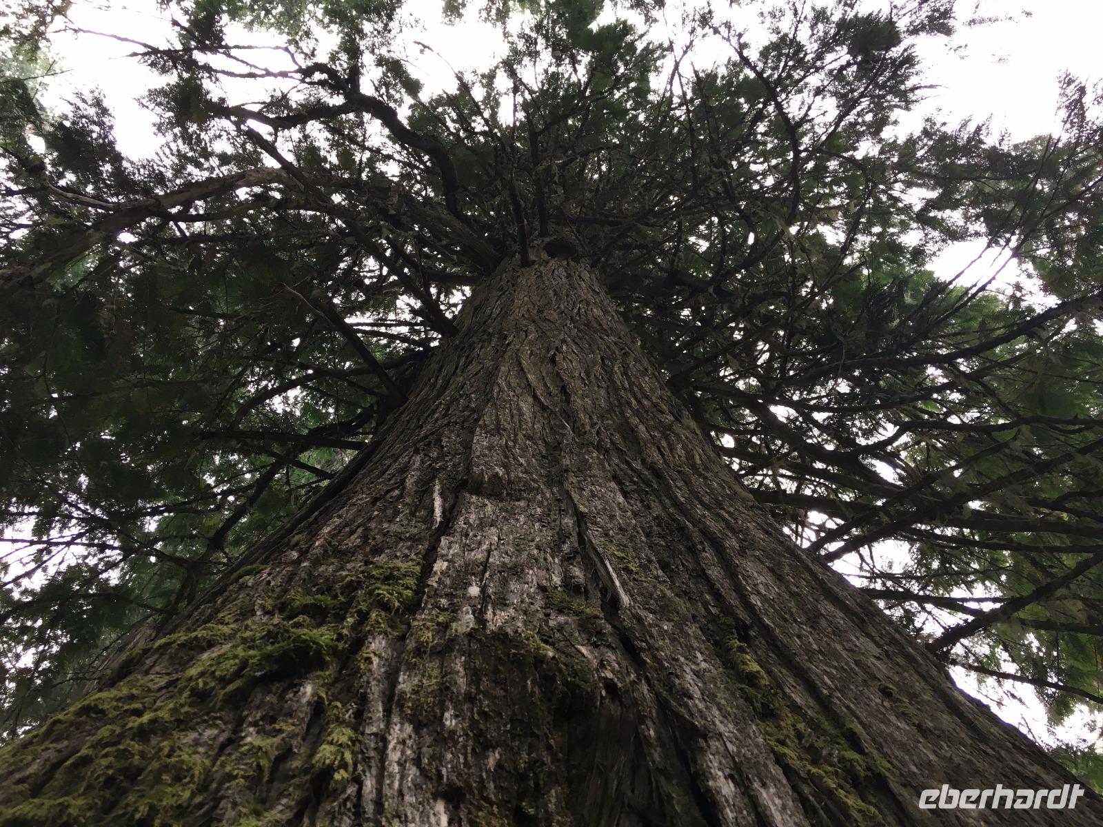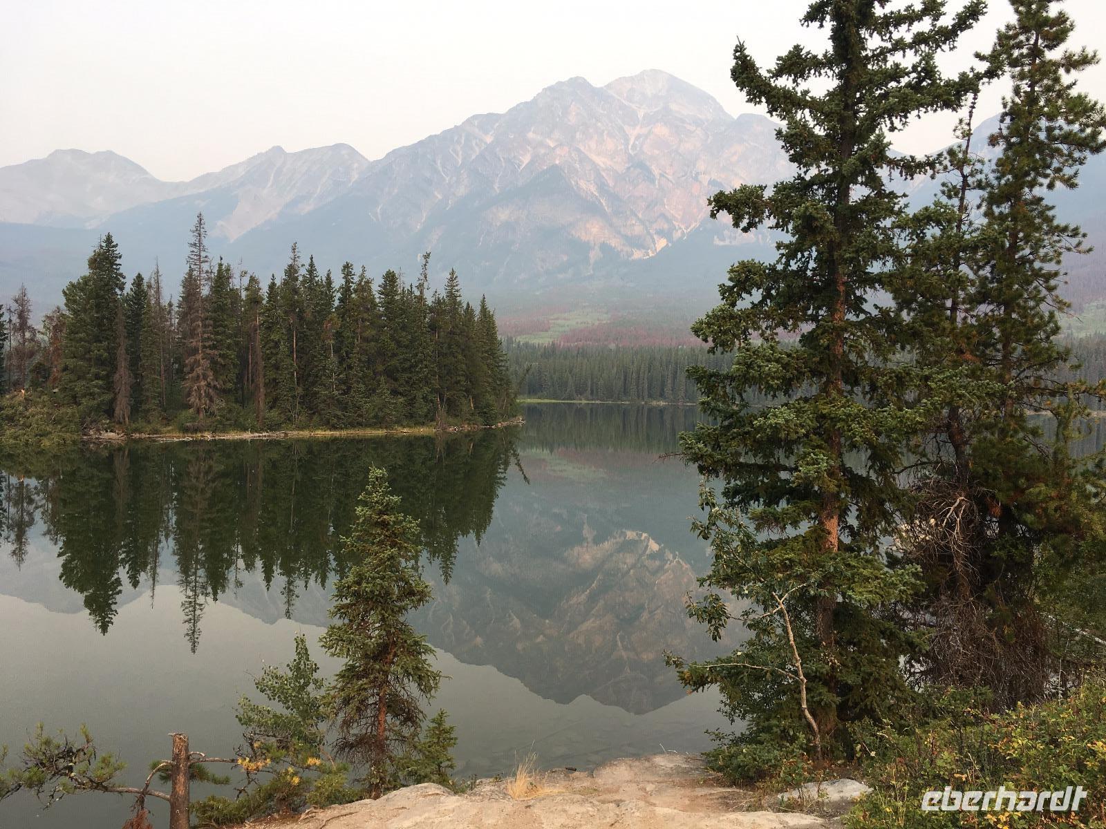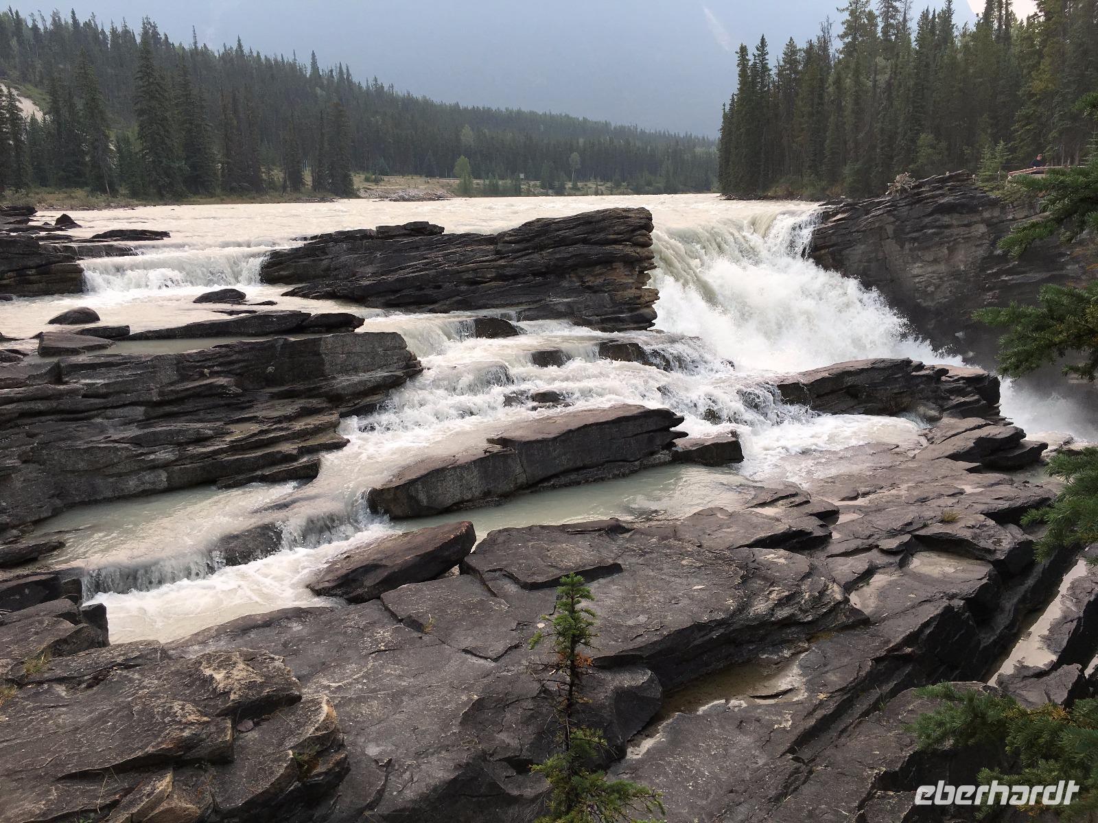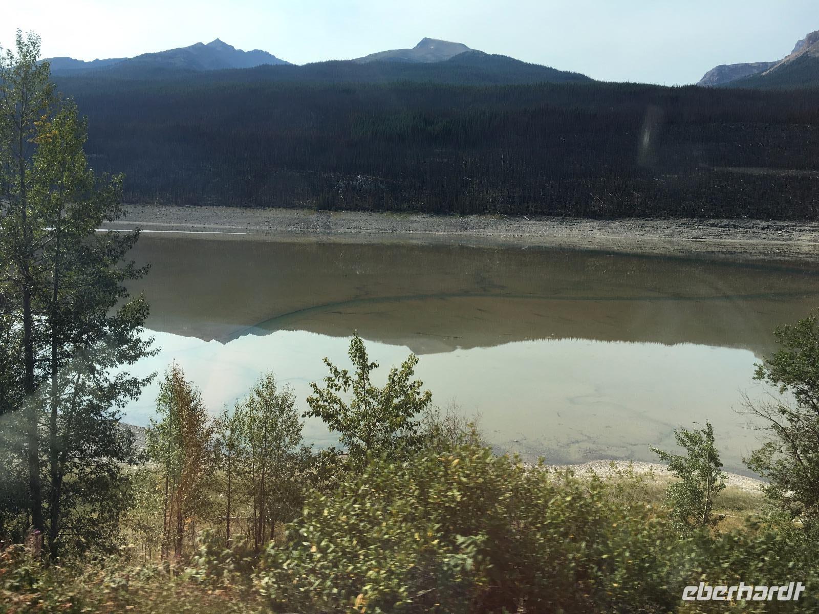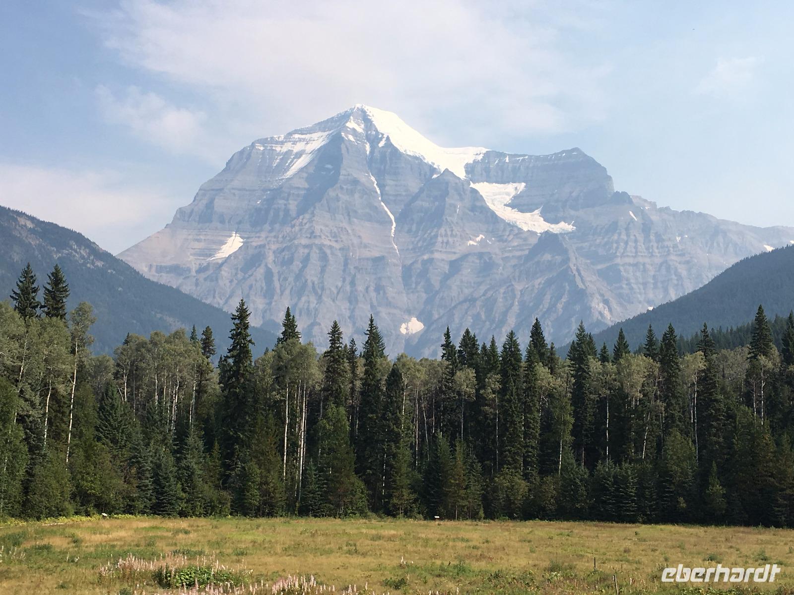 Ein wunderbarer Tag bricht an. Es ist zwar noch ein bischen diesig von den BC Rauchschwaden und die Temperaturen haben sich auf 12 Grad gesenkt. Es ist auch erst 7 Uhr in der Frueh und die kurzen Hosen lachen uns trotzdem schon aus dem Koffer an, denn die Wettervorhersage meint, es wuerde wie die vegangenen Tage, schoen warm. Vorerst besuchen wir die eindrucksvollen Athabasca Faelle. Koennte man doch bloss diese Momente einfangen ! Danach gibt es eine kleine Gesangseinlage, da sich jemand das rauschende Wasser zu lange angeschaut hat und in dessen Bann geraten war. Gerne helfen wir alle aus der Patsche und singen lauthals das ausgelesene Volkslied mit. Ein beruehmter Chor werden wir wohl nicht, aber Spass haben wir trotzdem viel. Dies und die Geschichte der CPR Eisenbahn bringen uns schnellstens zu unserem naechsten Ausflug zu Pyramid Lake. Auf der kleinen Insel stehen auf einmal etwa 8 Wapitis vor uns. WOW, ein bisschen eingeschuechtert sind wir schon und bleiben brav in der Gruppe. Langsam gehen wir an den weidenden und liegenden Tieren vorbei und knipsen natuerlich wie wild. Hoffentlich wird das Gruppenbild mit Wapitis im Hintergrund auch ein gutes Foto zur Erinnerung an dieses Erlebnis. Nun gehts aber weiter zum Patricia Lake und seiner kuriosen Habakuk Geschichte. Die Geschichte mit dem Eisschiff ist kaum zu glauben, bloss die Fotos erinnern an diesen Schildbuergerstreich des Krieges. Auf der Yellow Head Highway sehen wir ploetzlich auf dem linken Strassenrand ein ausgewachsener Wapitihirsch. Wir haben wirklich sehr viel Glueck mit der Sichtung von Wild. Der Tag hat heute 25 Stunden, also 1 Stunde mehr Spielzeit. Judihui. Mittagessen tun wir bei Mount Robson und da gibt es auch BC Wein zur Verkostung auf der schoenen grossen Terrasse mit Blick auf den grandiosen Mount Robson. Danke Eberhardt ! Nun muessen wir aber noch viele Km fahren bis nach Prince George. Eine Kaffeepause in McBride beim Bahnhof. Viele Antworten auf Allgemeinfragen spaeter, kommen wir bei einem kleinen Park mit Urbaeumen vorbei. Das laedt auf eine einstuendige Wanderung ein. Wir staunen ueber die Riesen die man hier hat stehen lassen. Die Zedern sind gigantisch und das Unterholz tiefgruen, kleine Baeche veredeln das perfekte Bild. Endlich, am Spaetnachmittag, kommen wir in Prince George, auch liebevoll PG gnannt (gleiche Abkuerzung wie fuer Pijama!) an. Wir kaufen unser Picknick fuer morgen ein, ziehen in unser schoenes Coast Hotel ein, bedauern die Rauchschwaden der Waldbraende die das Atmen beschweren und geniessen ein feines Abendessen. Gute Nacht PG.
