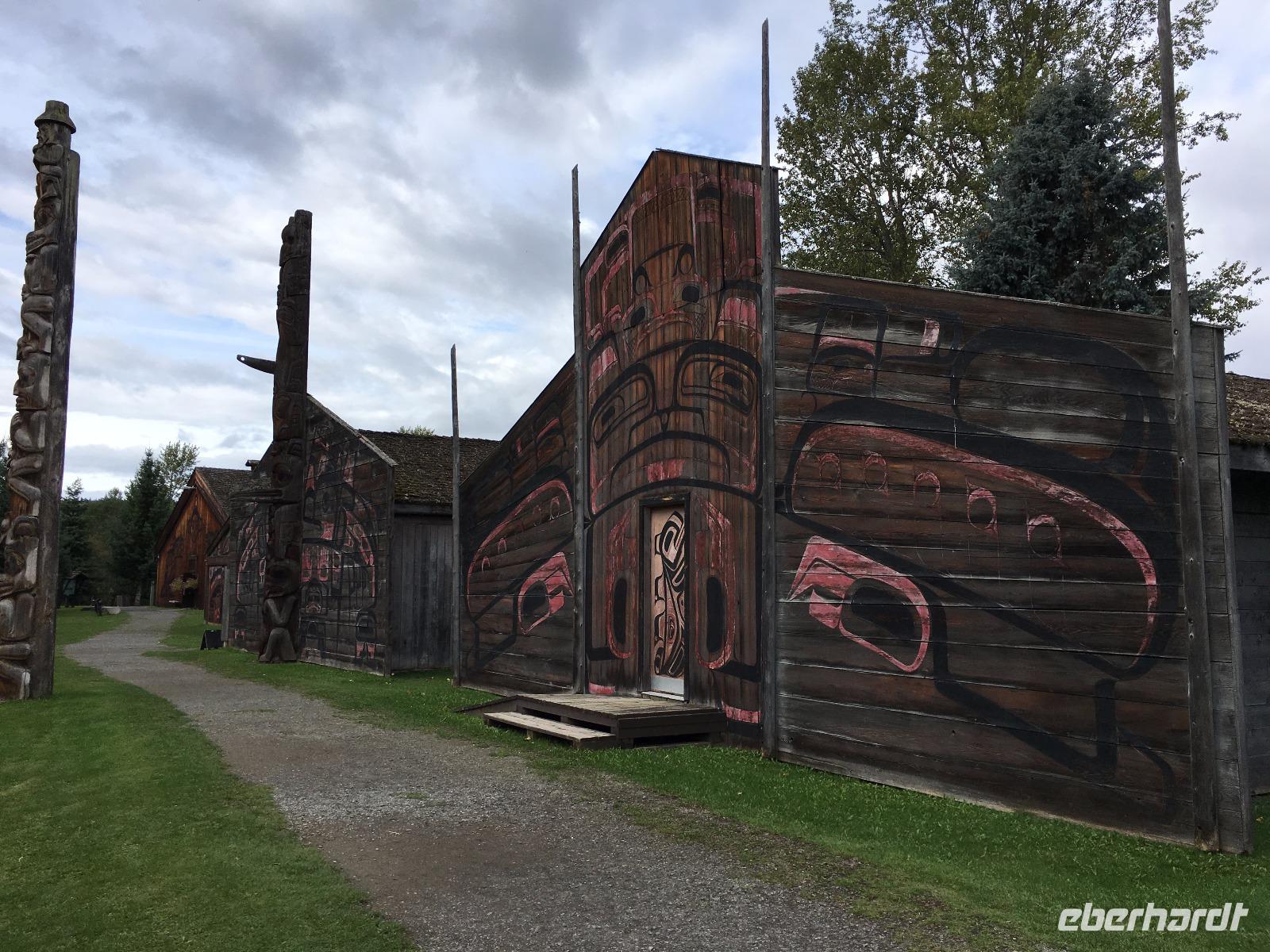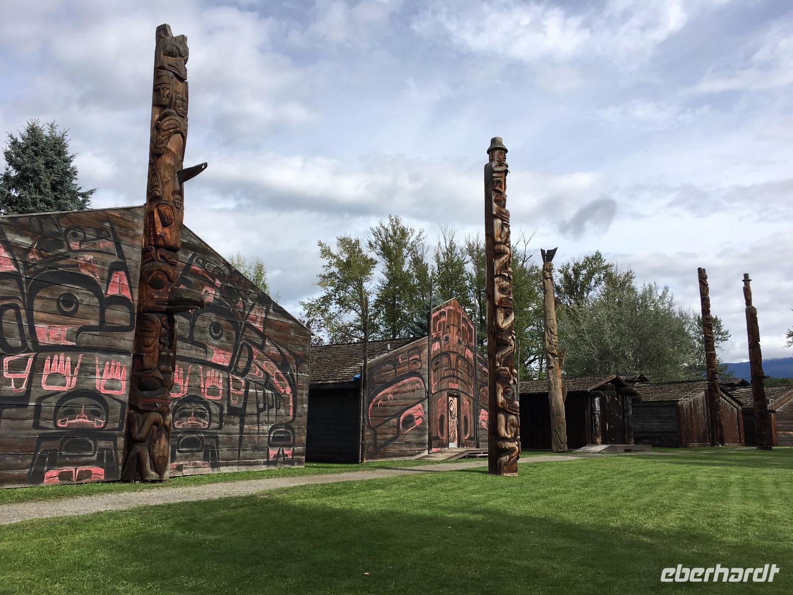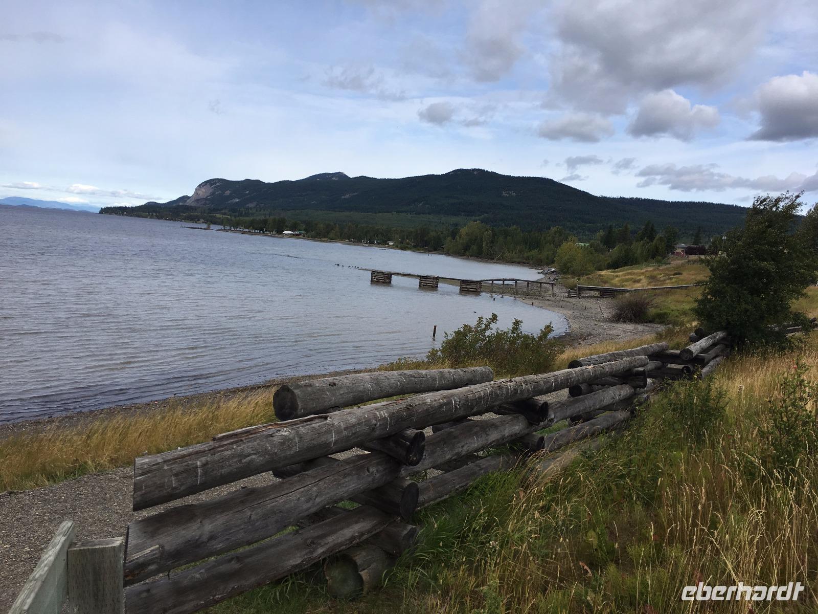 Heute wird Geburtstag gefeiert. Wir fahren nach Fort St James. Das Freilichtmuseum ist aeusserst interessant an dem schoenen Stewart Lake gelegen. Das Hudson Bay Handelshaus strahlt eine Ruhe aus die wir einfach geniessen. Das lustige Huehnerrennen amuesiert uns und wir haben in der Gruppe auch 2 Preise gewonnen. Vieles lernen wir hier ueber die Trapper und ihre Gepflogenheiten, die Haendler mit ihren Tauschgeschaeften, die Fort Manager und ihre Einsamkeit fernab ihrer Heimat und die Ersten Nationen dieser Gegend. Wir bleiben auch lange da bis nicht der Magen mit seinem Knurren uns an das mitgebrachte Picknick erinnert. Wir fahren zum Strand und lassen dort unser Geburtstagskind mit kanadischem Weisswein hochleben ehe wir uns dem Picknick weihen. Einle lange Strecke erwartet uns nun. Wir fahren wieder nach Vanderhoof, biegen dort auf die 16er Strasse Richtung Westen ab und bleiben darauf. An wunderschoenen Seen fahren wir vorbei. Sie liegen einsam in den endlosen Waelder versteckt. Doerfer die knappe 200 Personen zaehlen sehen wir. Wir sprechen unter anderem ueber den Goldrausch von 1858, denn heute ist doch unser Kolonial-Tag und da passt auch der Film von Charlie Chaplin «Goldrush» perfekt in die Landschaft. In Huston (nicht in Texas) halten wir kurz an, da wir den preparierten Grizzly sehen moechten. Nach dem einchecken in unserer Lodge in Smithers erkunden wir das deutsch angehauchte Doerfchen mit seinem Alphornblaeser zu Fuss. Das Haehnchen erfreut unsere Gaumen und gluecklich sind wir, wenn wir in den weichen Betten ins Traumland verfallen.