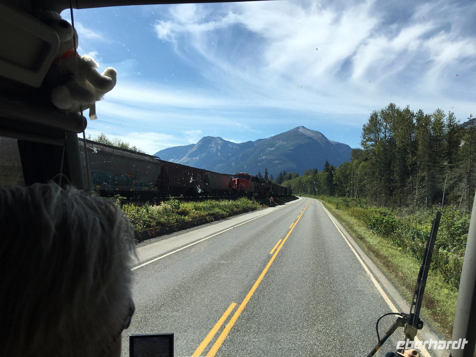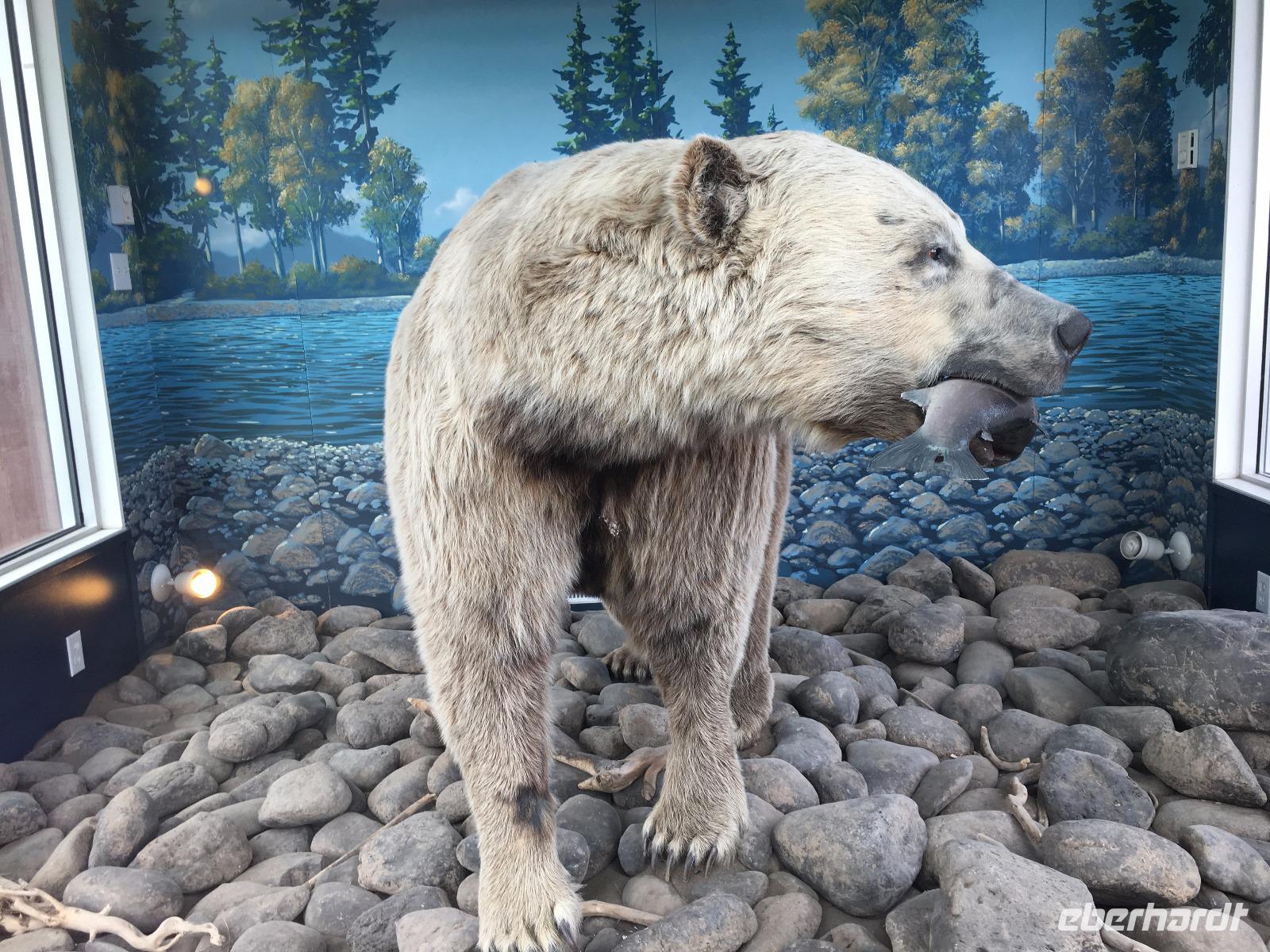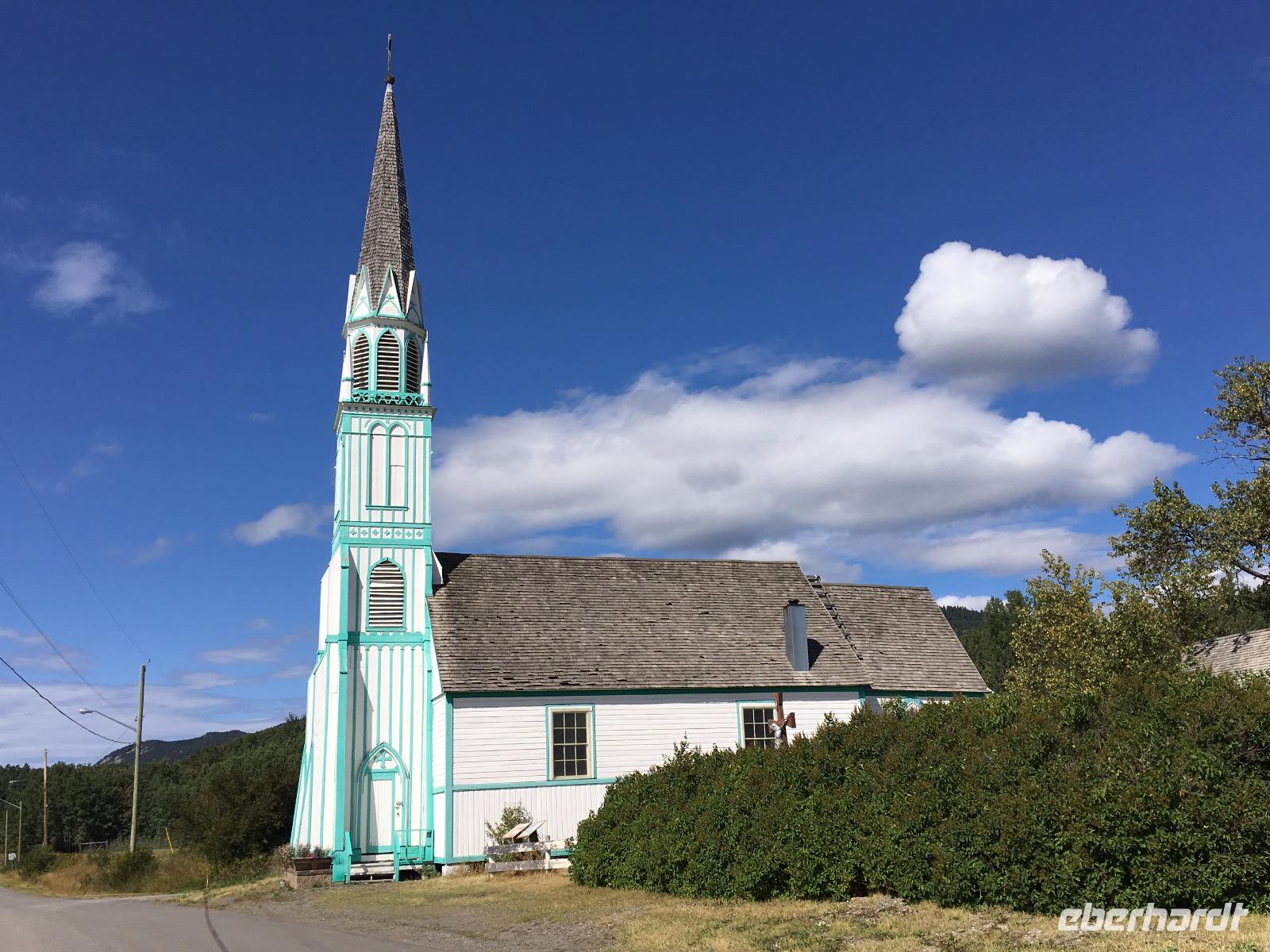 Heute wird Geburtstag gefeiert. Wir fahren nach Fort St James. Das Freilichtmuseum ist aeusserst interessant an dem schoenen Stewart Lake gelegen. Das Hudson Bay Handelshaus strahlt eine Ruhe aus die wir einfach geniessen. Das lustige Huehnerrennen amuesiert uns und wir haben in der Gruppe auch 2 Preise gewonnen. Vieles lernen wir hier ueber die Trapper und ihre Gepflogenheiten, die Haendler mit ihren Tauschgeschaeften, die Fort Manager und ihre Einsamkeit fernab ihrer Heimat und die Ersten Nationen dieser Gegend. Wir bleiben auch lange da bis nicht der Magen mit seinem Knurren uns an das mitgebrachte Picknick erinnert. Wir fahren zum Strand und lassen dort unser Geburtstagskind mit kanadischem Weisswein hochleben ehe wir uns dem Picknick weihen. Einle lange Strecke erwartet uns nun. Wir fahren wieder nach Vanderhoof, biegen dort auf die 16er Strasse Richtung Westen ab und bleiben darauf. An wunderschoenen Seen fahren wir vorbei. Sie liegen einsam in den endlosen Waelder versteckt. Doerfer die knappe 200 Personen zaehlen sehen wir. Wir sprechen unter anderem ueber den Goldrausch von 1858, denn heute ist doch unser Kolonial-Tag und da passt auch der Film von Charlie Chaplin «Goldrush» perfekt in die Landschaft. In Huston (nicht in Texas) halten wir kurz an, da wir den preparierten Grizzly sehen moechten. Nach dem einchecken in unserer Lodge in Smithers erkunden wir das deutsch angehauchte Doerfchen mit seinem Alphornblaeser zu Fuss. Das Haehnchen erfreut unsere Gaumen und gluecklich sind wir, wenn wir in den weichen Betten ins Traumland verfallen.