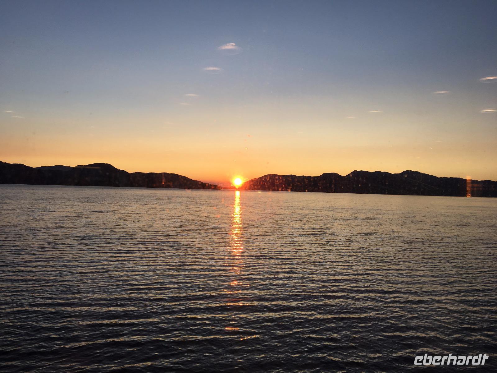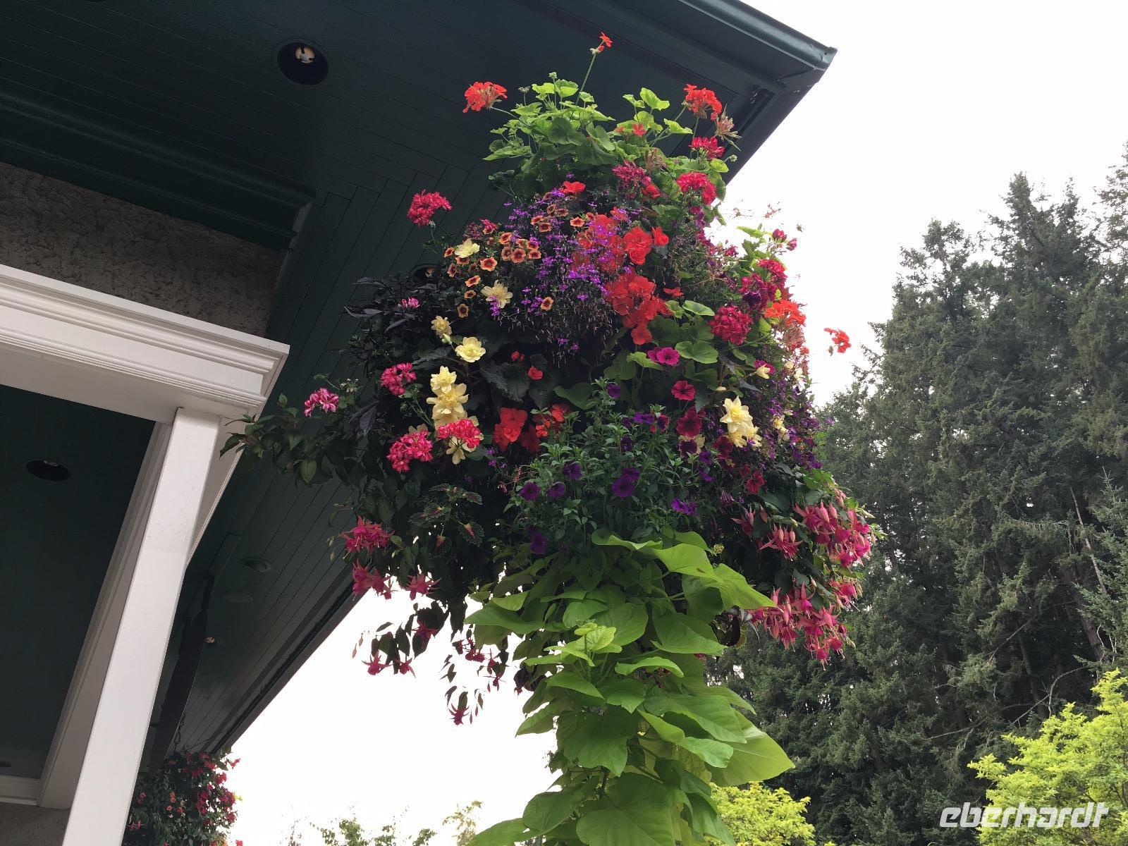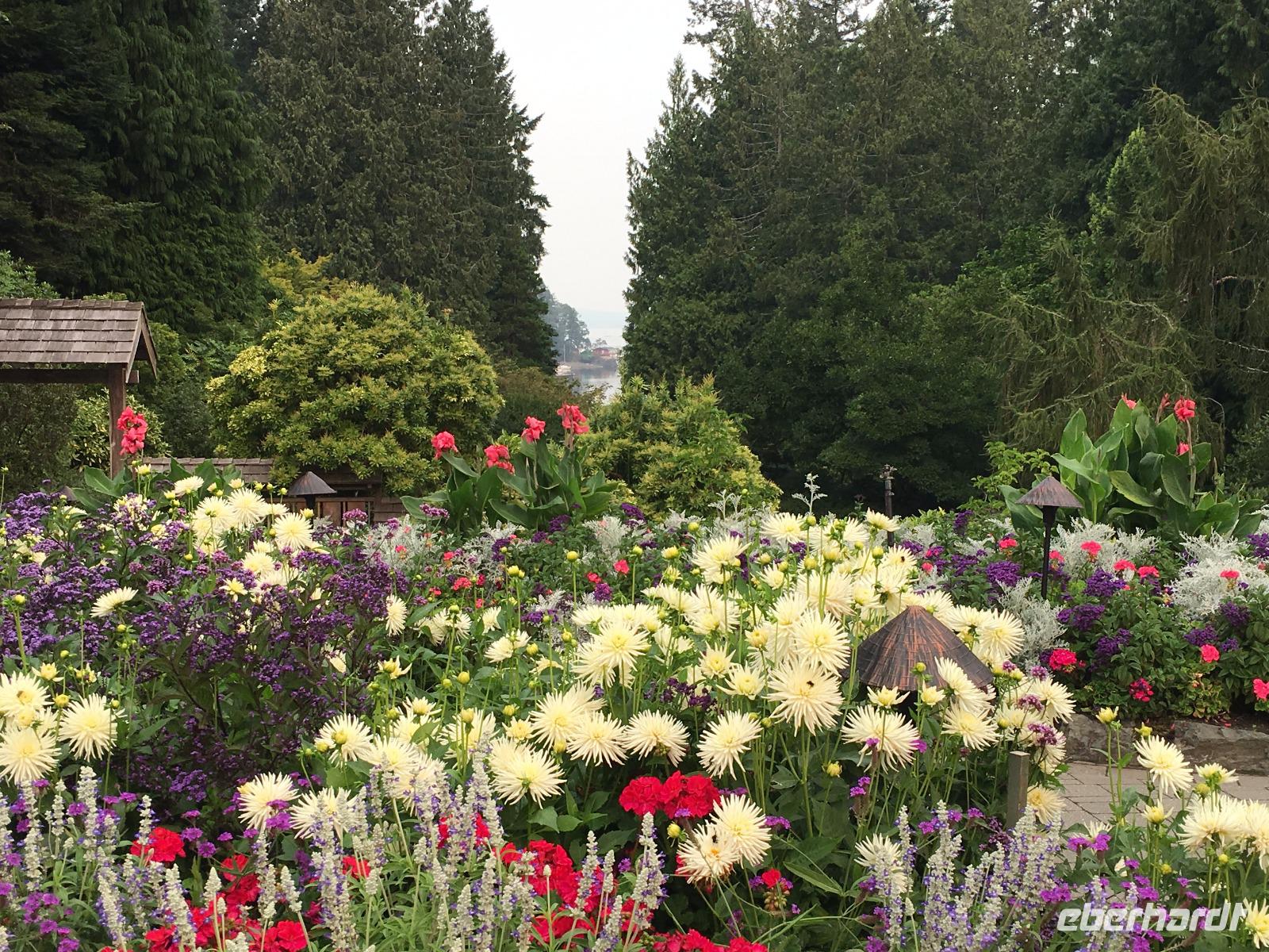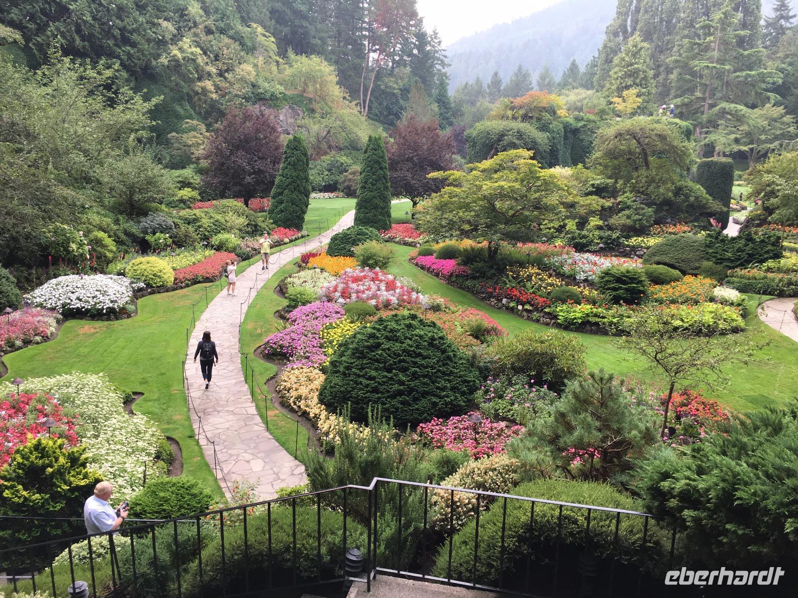 Die Rauchschwaden der Waldbraende in der ganzen Provinz zeigen uns heute eine gluehend rote Sonnescheibe. Es ist fast schoen. Autsch, das Fruehstuecksbuffet ist aber gar nicht so ueppig und schoen hergerichtet wie alle anderen Tage. Wir merken auch bald, dass wir sehr verwoehnt wurden auf dieser wunderbaren Reise. So trinken wir den Kaffee und Orangensaft aus den Pappbechern und essen auf den abgezaehlten Teller ehe wir zu den weltbekannten Butschart Garden fahren. Wie wunderschoen sind doch diese Gaerten! Jenny hatte echt einen gruenen Daumen, dass heute ueber 1 Mio Leute herkommen um sich an ihrer Realisierung dereinzigartigen Gartengestaltung zu erfreuen. Es gibt einen Haengegarten, einen versunkenen Garten, einen italienischen- franzoesischen- und japanischen Garten. Die Rosen im Rosengarten stammen aus der ganzen Welt und der Schornstein der ehemaligen Zementfabrik lugt heute noch hinter seinen Pappeln hervor. Voller Tatendrang und guter Ideen der Gartenarchitektur treffen wir uns nach 1 ½ Stunden wieder beim Eingang. Meine lieben Herren, sie wissen was auf Sie wartet nach diesem Urlaub, staerken Sie sich, legen Sie sich Muskeln an, denn das Baggern und Ausheben zu Hause wird bald beginnen ;-) Auf der Faehre zwischen Vancouver Island und Vancouver feiern wir auch noch einen Geburtstag. Gott Sei Dank ist wieder ein Geburtstag. Froehlich wird mit BC Wein auf das Wohl des Geburtstagskindes angestossen. Bei Ankunft auf dem Festland, heisst es jedoch nun wirklich Abschied nehmen. Unser ruhiger Pol im Bus, unser bester Fahrer von allen, unser Goran, wird uns heute noch ins Hotel bringen und danach auf seine naechste Tour gehen. Ja, und ich, Elisabeth, muss heute leider auch diese nette und liebe Gruppe verlassen und nach Frankfurt zurueckfliegen. Eigentlich verpasse ich ja bloss eine Stadtrundfahrt durch die Stadt meiner Wahl und Heimat fuer fast 20 Jahre, aber meine Kollegin ist genauso versiert und ich kann das Ruder gelassen weitergeben. Es war wunderschoen mit meiner Reisefamilie durch die Weiten des Westen Kanadas zu reisen und Sued-Alaska zu erleben. Das Wetter war unuebertrefflich gut sowie die Energie in unserer Gruppe. Danke schoen, liebe Reisefamilie. Hoffentlich bis bald mal wieder. Denn vergisst nie : carpe diem !