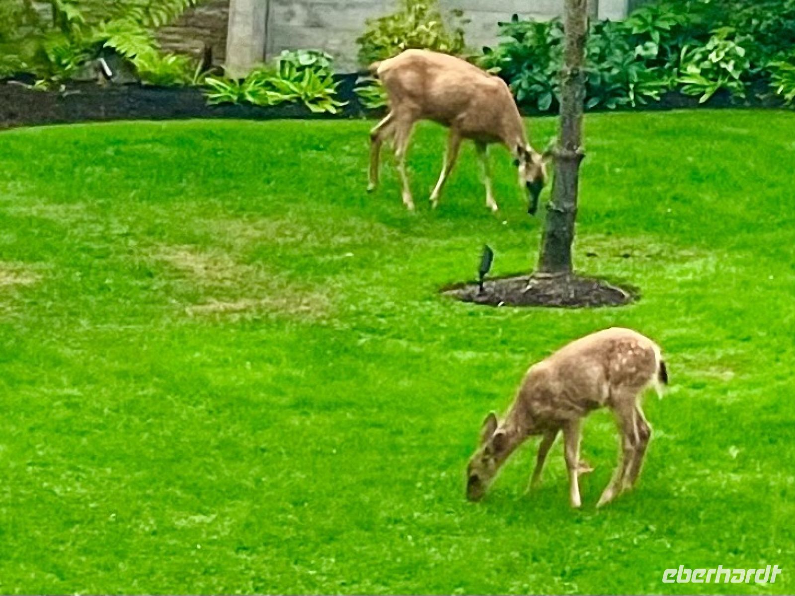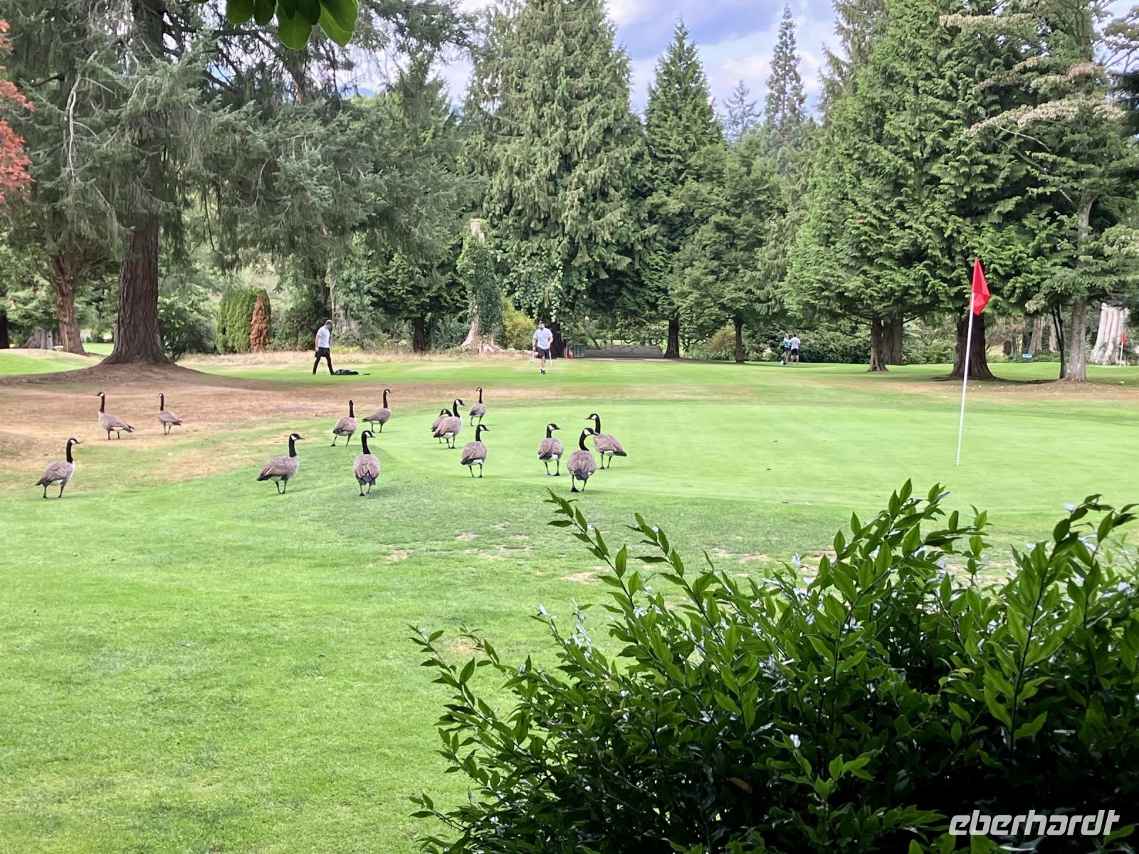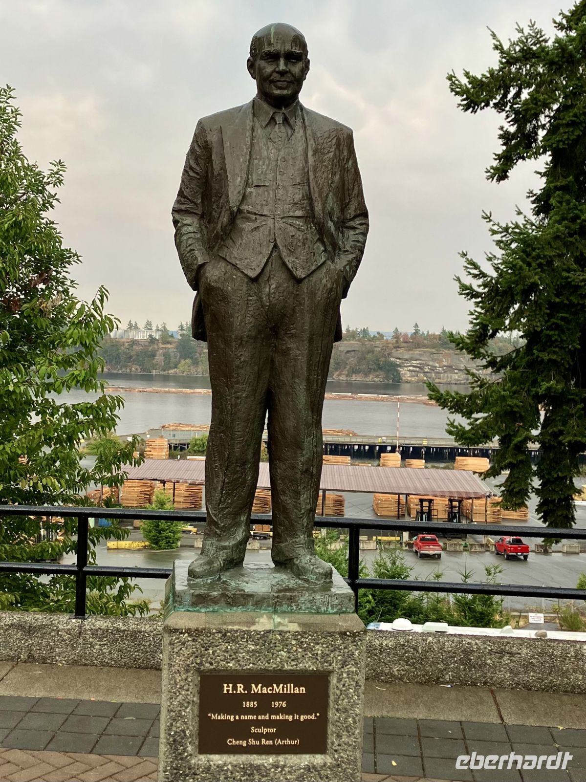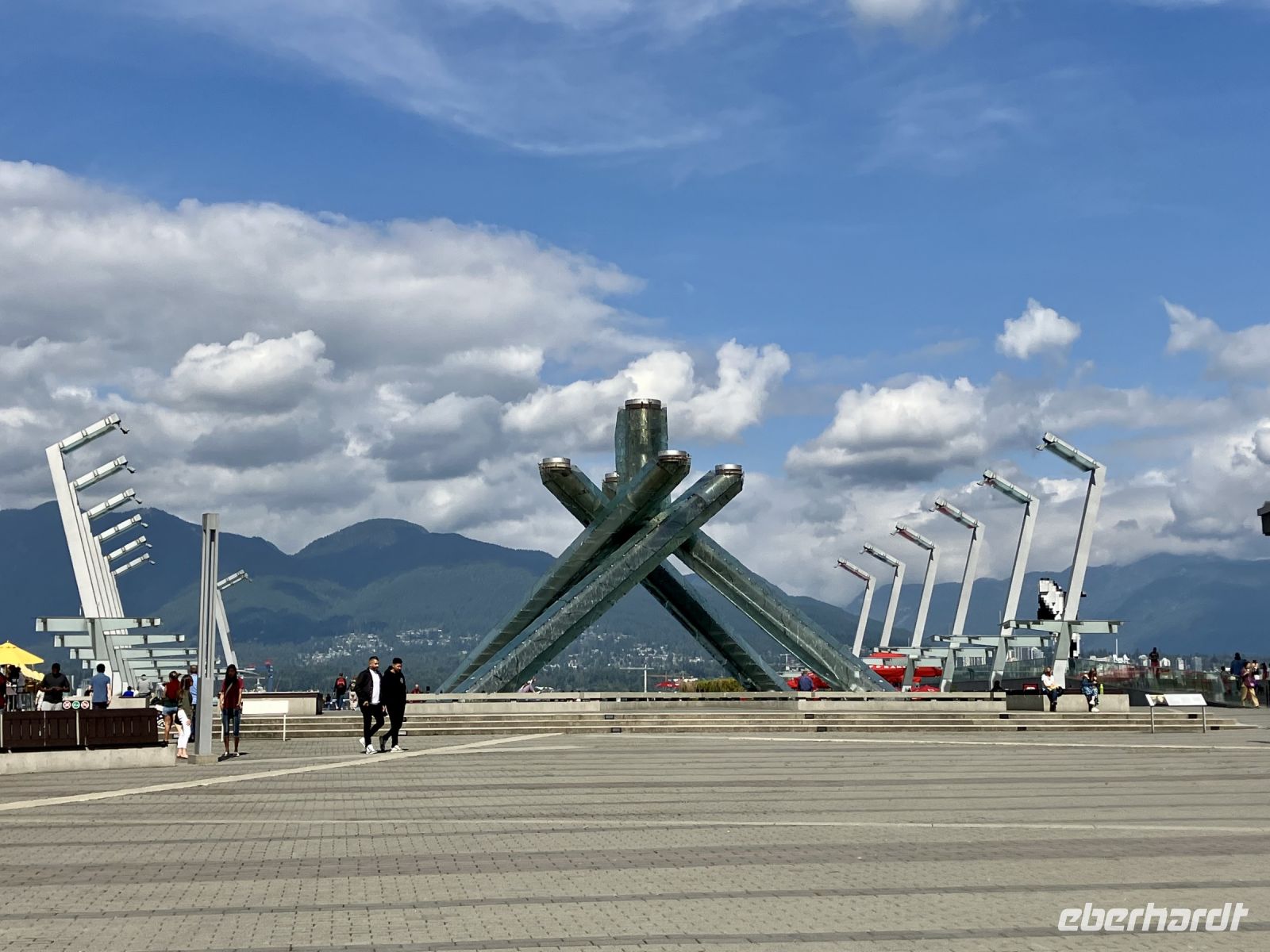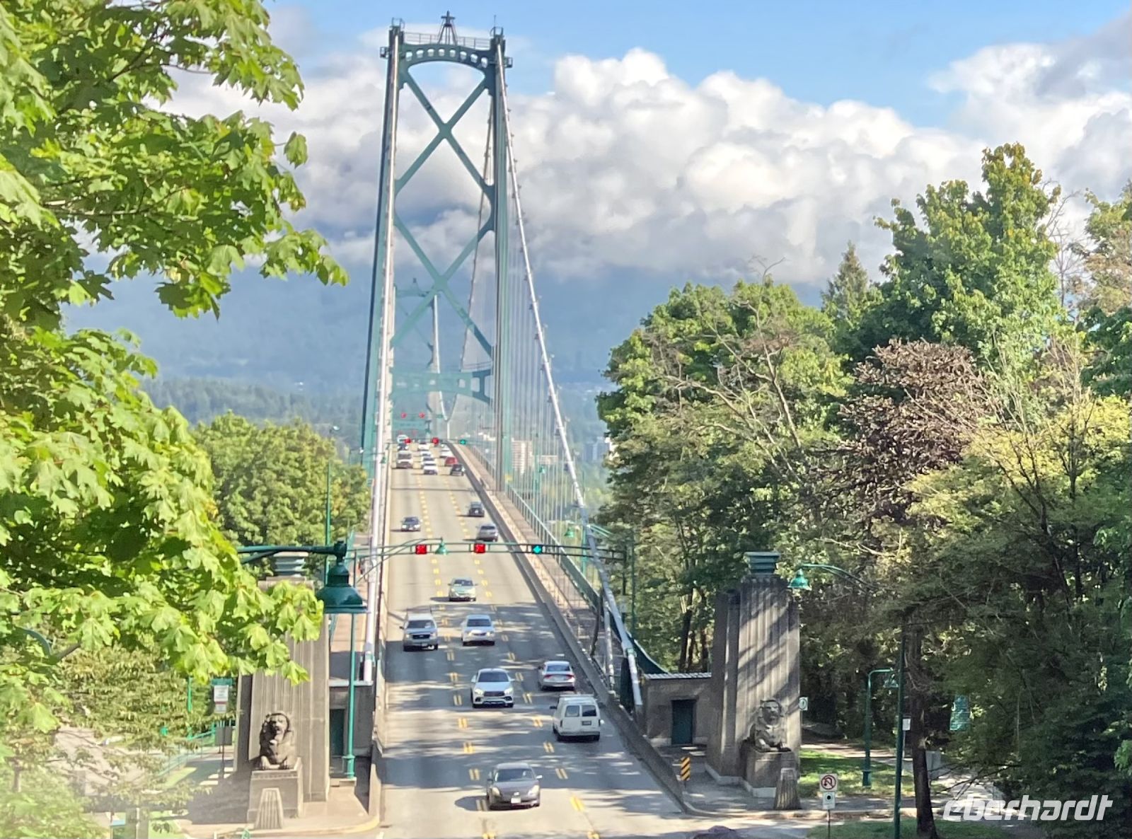 Heute ist Stadtrundfahrt angesagt und ein grosser, neuer, schoener, weisser Bus mit verry pretty Preet am Steuer wartet bereits auf uns. Als erstes haben wir Chinatown auf unserem Programm. Wir fahren durch das Herz von Vancouver und sehen diese wunderbaren Spiegelungen der vielen Glass-hochhaeuser. Auch das Hotel Vancouver spiegelt sich sehr posierlich in einem blauen Glasspalast. Die alte anglikanische Kirche ist wie ein kleines Juwel inmitten der Wolkenkratzer. Leider ist Chinatown momentan von Heimatlosen und Drogensuechtigen ueberrannt. Also bleiben wir im Bus sitzen, fahren langsam durch diesen geschichtlich sehr interessanten Stadtteil, schauen uns die 3-stoeckigen Haeuser an von denen wir so viel gehoert haben und staunen ueber die getrockneten Fische und Fruechte die da feilgeboten werden. Ach schau, da, in der Metzgerei haengen 4-eckige Huehner, so hergerichtet passen die sicher besser in den Ofen. Wo sonst gibt es so ideale Huehner ? Viel wird ueber die Chinesen gesprochen und auch ueber ihr Leben im fernen Kanada. Unterdessen hat Vancouver bereits einen Spitznamen bekommen….Hong-Couver … Danach gehts nach Gastown. Es ist der aelteste Stadtteil Vancouvers auch mit einer bewegten Geschichte. Diesen Stadtteil besuchen wir per pedes. Die Dampfuhr hat soeben gepustet als wir an ihr vorbeikommen. Im Bus fahren wir danach an dem ehemaligen Bahnhof, an Canada Place und der olympischen Fackel von 2010 vorbei. Bei Canada Place sehen wir auch zwei Kreuzschiffe welche heute abend die inside Passage hinaufsegeln werden nach Alsaska. Eines ist die Volendam, auf der eine Eberhardt Gruppe im Juni gebucht war. Sie behergert bloss 1500 Personen nicht wie die meisten 3000 Gaeste. Ob die vielen Passagiere wohl auch so riesen Grizzlies beim Fischen sehen werden wie wir ? Ich hoffe es, die Erinnerung daran haftet in unserem Gedaechtnis und ist festgehalten in unserer Fotogalerie. Nun gehts weiter mit der Stadtrundfahrt in den Stanley Park. Gleich bei Beginn halten wir bereits bei den geschichtserzaehlenden Pfaehlen und besprechen auch ihre Bedeutung und einige Anekdoten. Diese Totem sind Geschenke der verschiedenen Nationen, die hier im Regenwald heimisch sind. Die Aussicht auf Downtown ueber Coal Harbour ist gigantisch. Das Wetter und die Temperaturen sind auch perfekt. Gemuetlich fahren wir rund um Stanley Park, sehen den Hafen, die Kuestenberge mit der North Shore, die schoene Lions Gate Bruecke die ausschaut wie die Golden Gate Bruecke in San Fran und dann die weissen Straende und der tiefe Wald. Hier im Regenwald hat es heuer kaum geregnet und der Wald leidet sehr. Die Hemlocktannen werden von Motten befallen, sodass sie nun ausschauen als waeren sie abgestorben. Vielleicht koennen sie sich im Winter wieder erholen und wir wuenschen es ihnen.