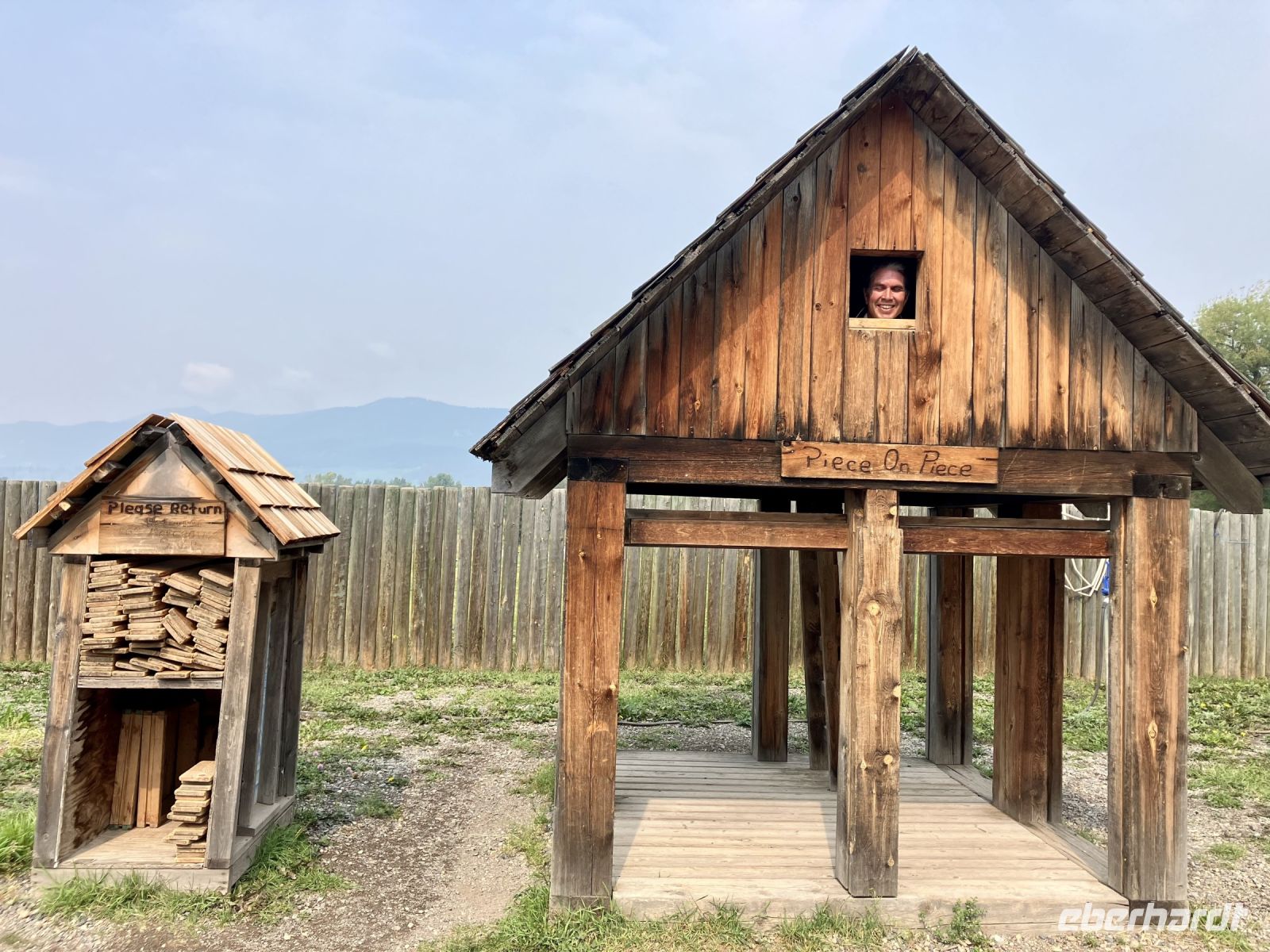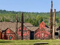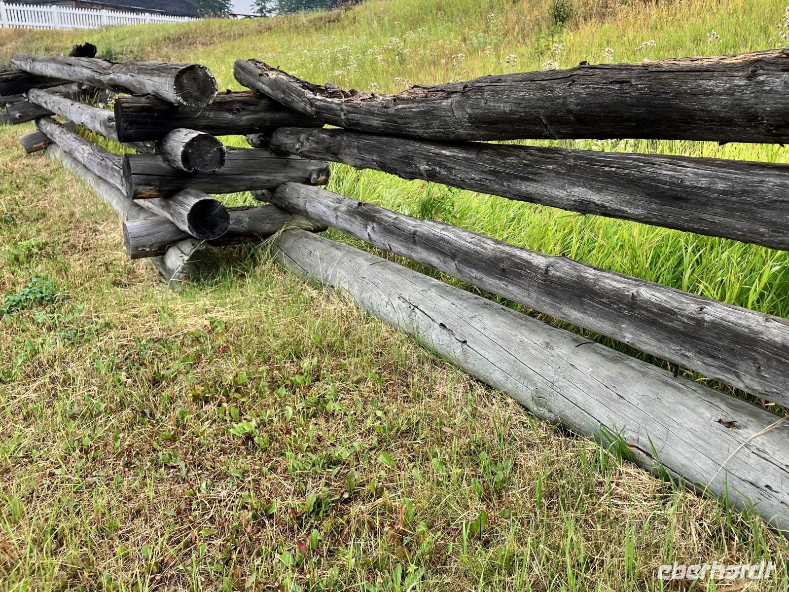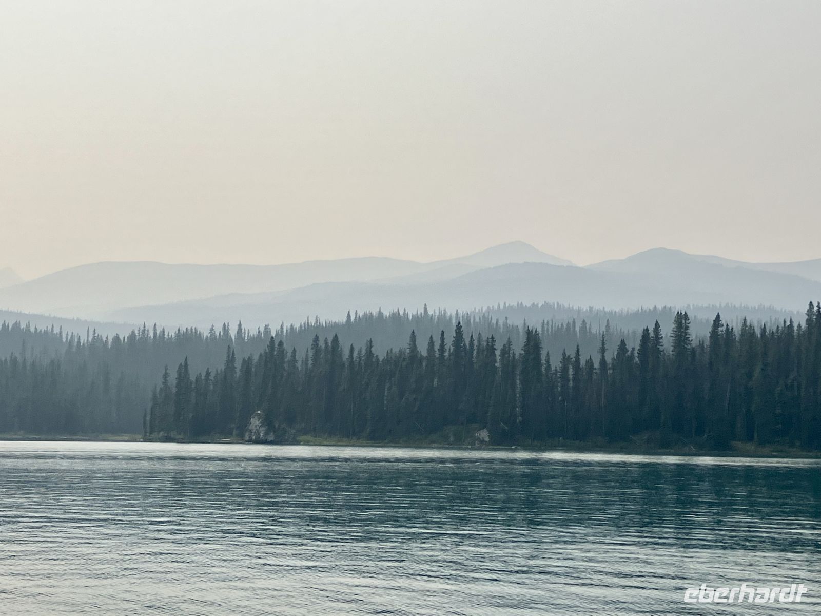 Heute ist unser Pioniertag und wir fahren nach Fort St James. Auf der Reise dorthin erfahren wir viele Geschichten ueber verschiedene kanadische Pioniere, die Polizei und die Forstwirtschaft. Schoen ist der grosse Norden mit seinem weiten Himmel. Fort St James ist eine Pelzhandelsstelle der Hudson Bay Company und nun ein Freilichtmuseum. Es ist aeusserst interessant an dem schoenen Stuart Lake gelegen. Ehe wir die verschiedenen Haeuser dieses Forts anschauen, machen wir lauthals am “weltbekannten” Haehnchen-Rennen mit. Viele unter uns gewinnen auch bei der Wette und ein schoener Knopf mit Huhn ist nun unser Markenzeichen. Nun aber zum Museum-Teil dieses Aufenthaltes. Das Hudson Bay Lagerhaus strahlt eine wunderbare Ruhe aus die wir einfach geniessen. Vieles lernen wir hier ueber die Trapper und ihre Gepflogenheiten, die Haendler mit ihren Tauschgeschaeften, die Fort Managers und ihre Einsamkeit fernab ihrer Heimat und die Ersten Nationen dieser Gegend. Auch das Maennerhaus mit seinen Geschichten versezt uns in die schwierige Zeit der damaligen Trapper und im Handelshaus sehen wir die Gueter die man hier einkaufen konnte gegen das “Bibergeld”. Wir bleiben auch lange da und schiessen viele Bilder. Zu Mittag hat Elisabeth uns eine lokale Spezialitaet bestellt. Es gibt Suppe und danach Bannock mit Schinken und Kaese dazu ein super kuehles und feines, von Eberhardt offeriertes Bierchen. Essen koennen wir draussen mit schoener Sicht auf den Stewart Lake. Was fuer ein schoener und gelungener Ausflug. Eine lange Strecke bis nach Smithers erwartet uns jedoch, also muessen wir nun aufbrechen. Auf der Highway no 16 fahren wir weiter in Richtung Westen an wunderschoenen Seen vorbei. Sie liegen einsam in den endlosen Waelder versteckt, genau wie es uns versprochen wurde. Doerfer die knappe 200 Personen zaehlen sehen wir. Wir doesen ein bisschen vor uns hin und schauen gleichzeitig einen Baeren-Film. So treffen wir problemlos 3 einhalb Stunden spaeter in Huston ein. Nein, nicht Houston, Texas. Hier halten wir kurz an, da wir ins Info Centre gehen- und den preparierten Grizzly sehen moechten. Nun dauert es nicht mehr lange bis nach Smithers. Wir lernen unterdessen, wie man einer hausgemachten Fliege das fliegen lehrt und wie man damit Fische fangen kann. Einmal in Smithers gibt es eine kurze Stadtrundfahrt ehe wir in unsere Lodge einchecken. Nun kaufen wir noch unser morgiges Picknick ein und kehren dann wieder zu unserem Hotel zurueck zum Abendbrot. Das Hotel ist schoen, das Restaurant auch und die Bar ist mit ihren vielen Fernseher und Einheimischen sehr autentisch. Wir aber haben einen eigenen Raum zum Essen, er ist nun echt nicht schoen. I am so sorry ! Wir sind alle recht muede nach dem langen Tag und freuen uns auf die gute Nacht mit frischer Luft ohne Rauchgeschmack. Nur gut, dass wir den Norden der Provinz Britsch Columbiens bereisen. Denn wir sind von den vielen Waldbraenden bislang verschont geblieben. In der Nacht regnet es wieder und Blitze erleuchten unsere Zimmer. Der Donner trommelt uns danach wieder in den Schlaf.